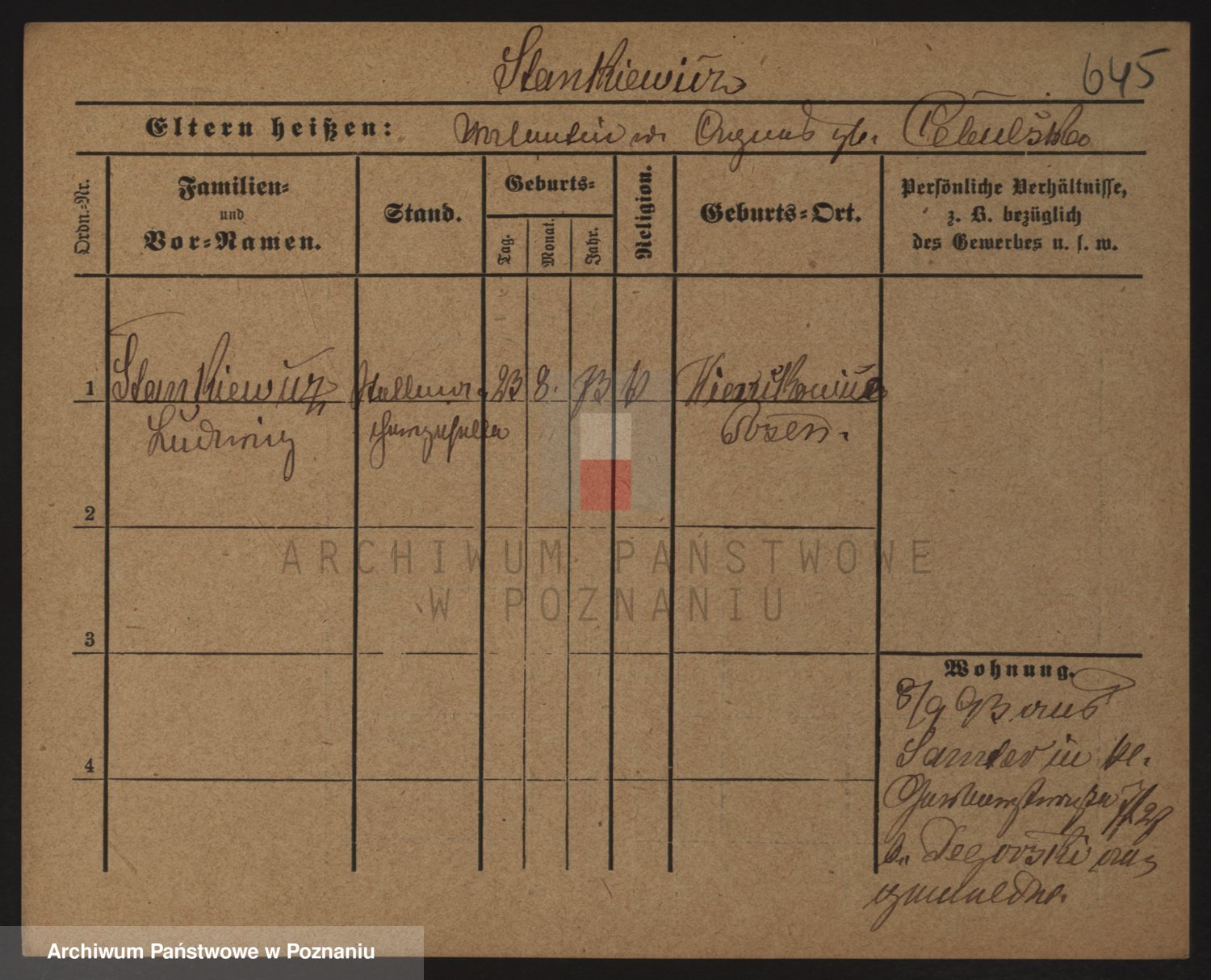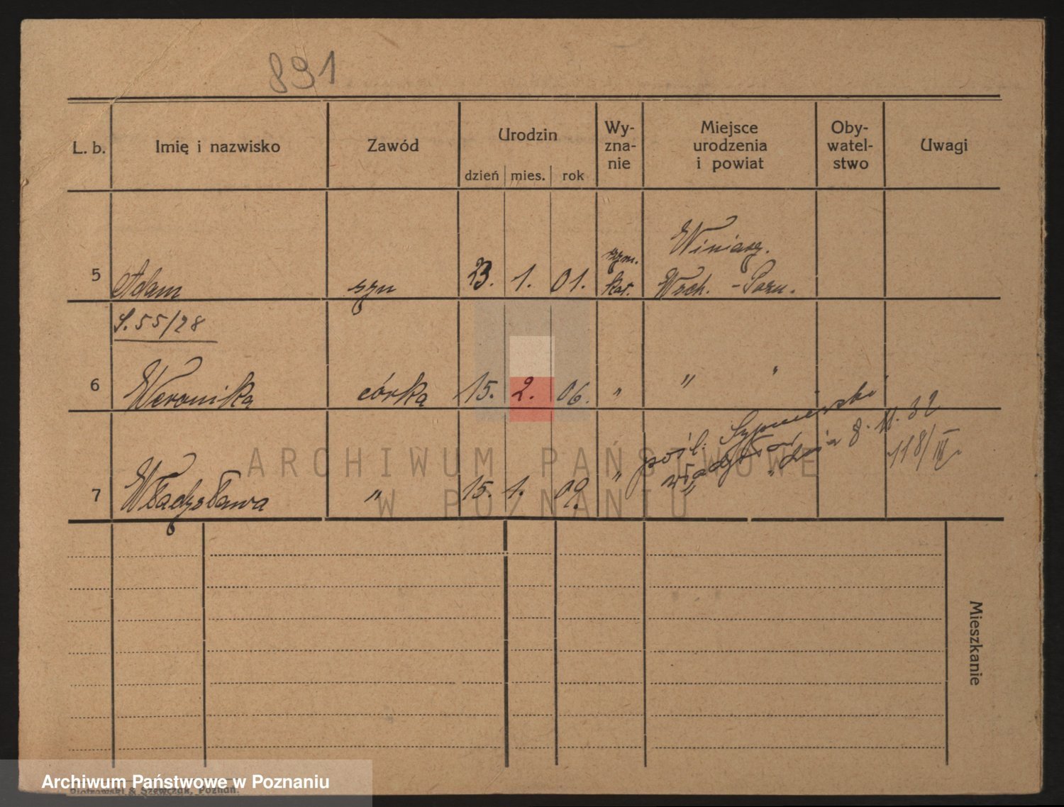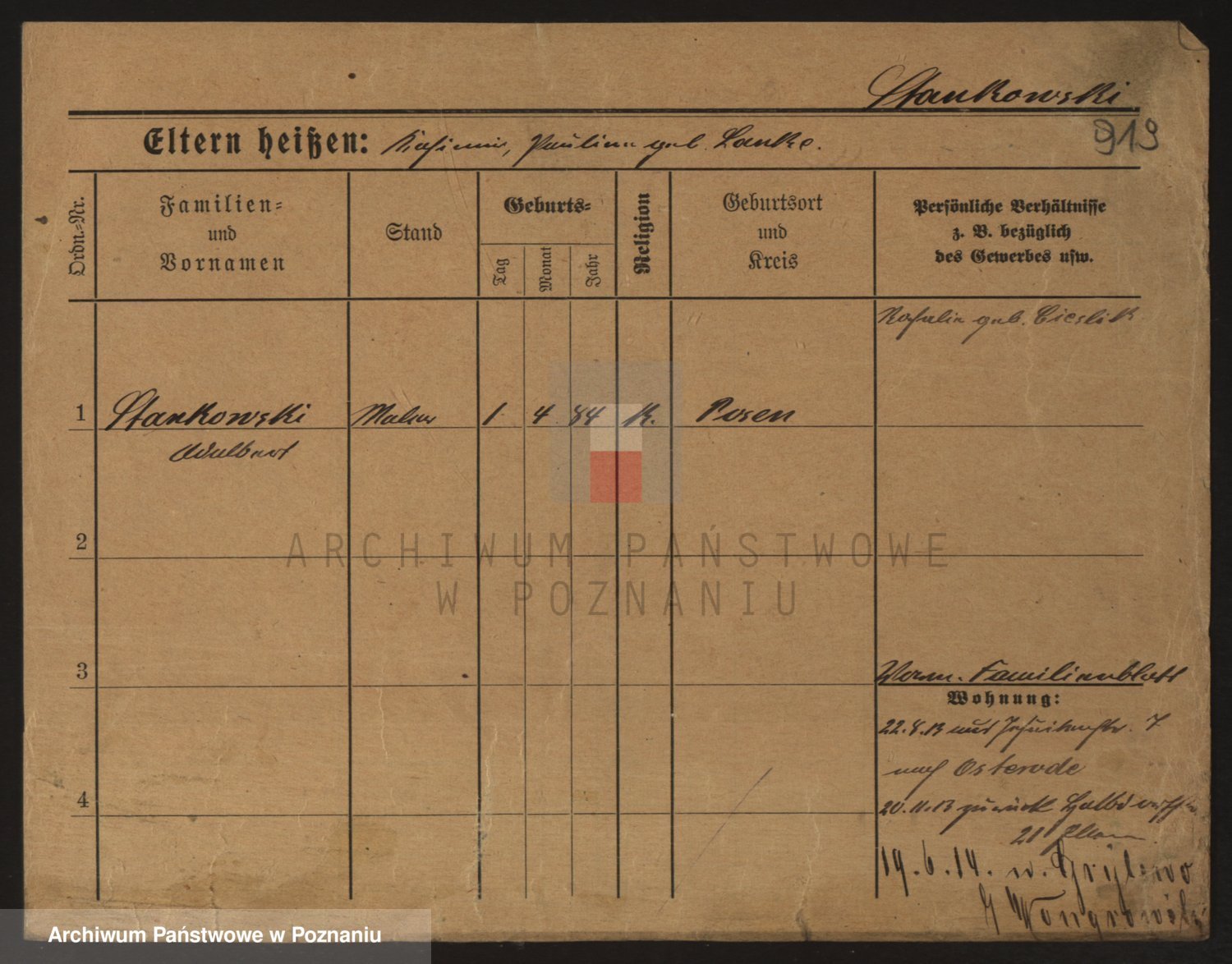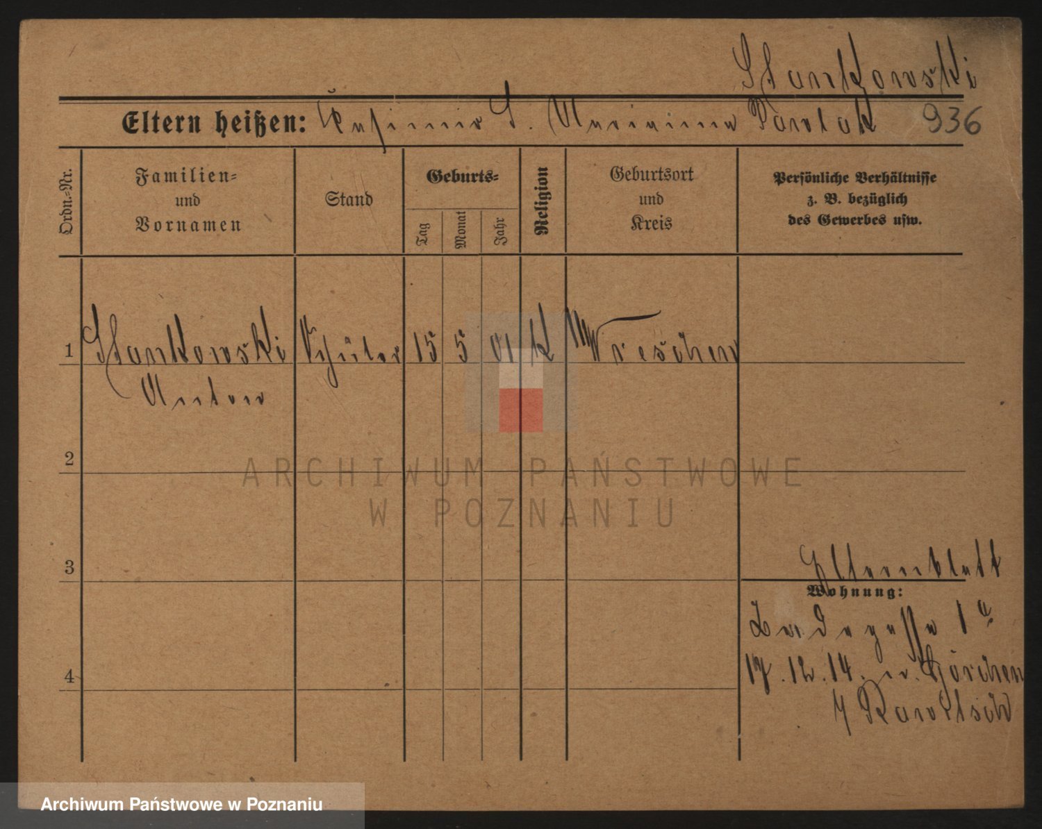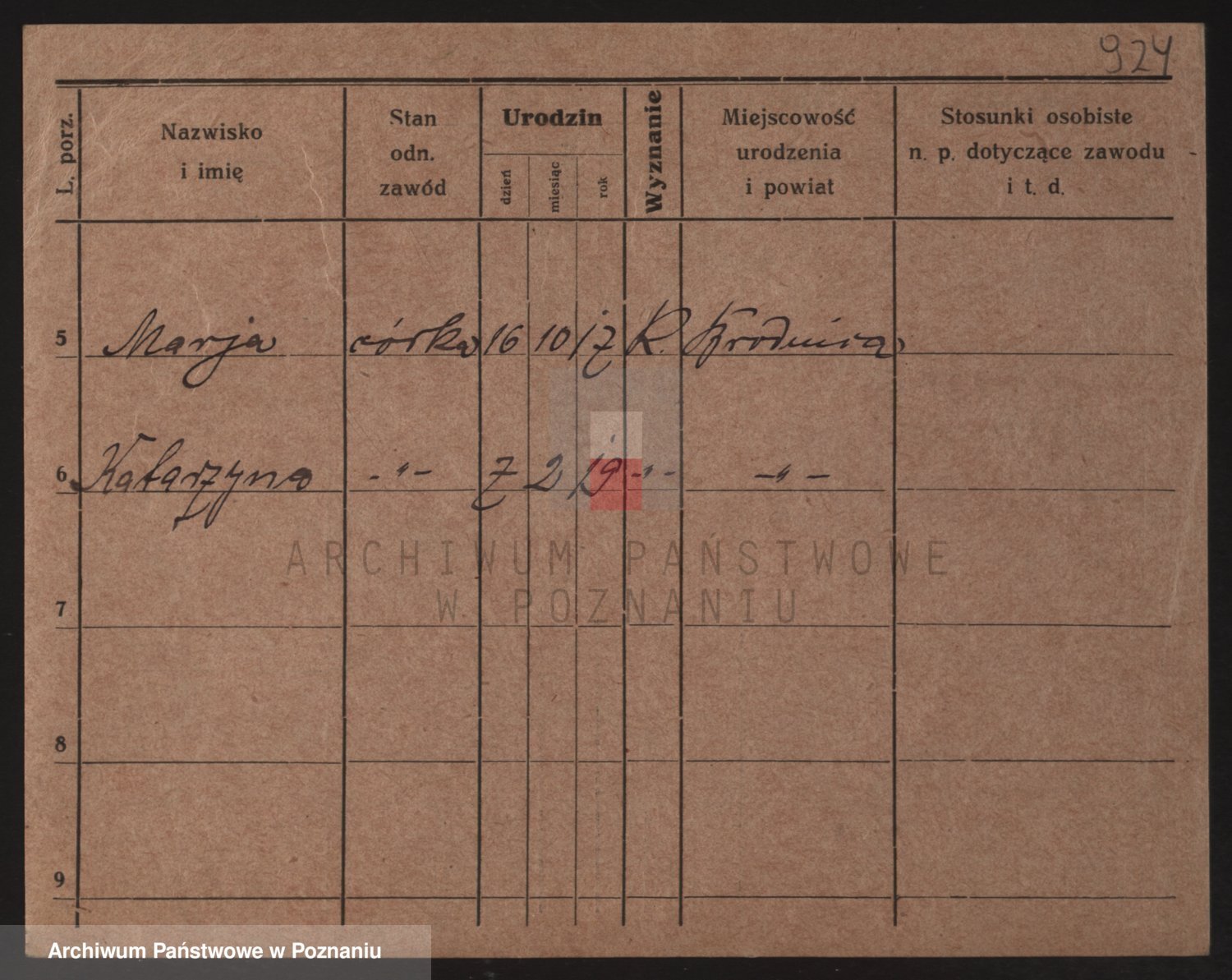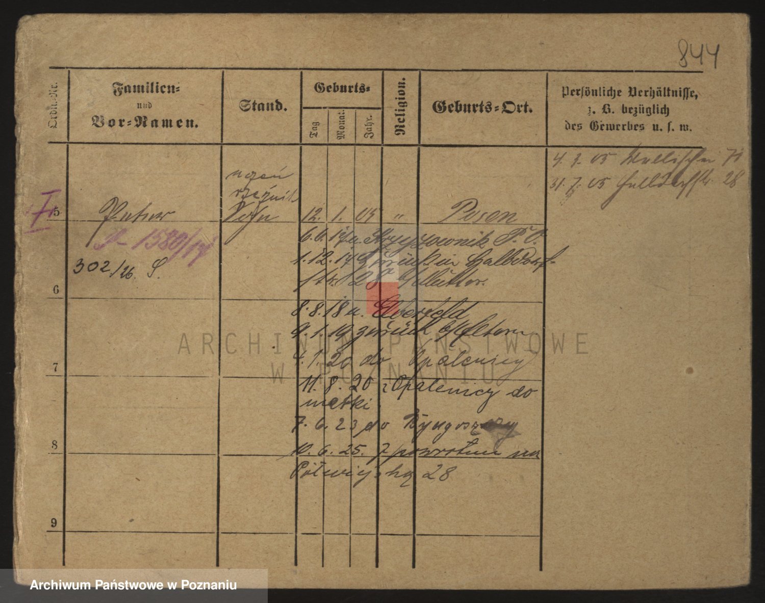Podgląd karty osobowej dostępny jest po kliknięciu na nazwisko lub ikonkę karty. Można dokonywać powiększenia (ikony na górze) lub przechodzić między kolejnymi skanami (strzałki po bokach).