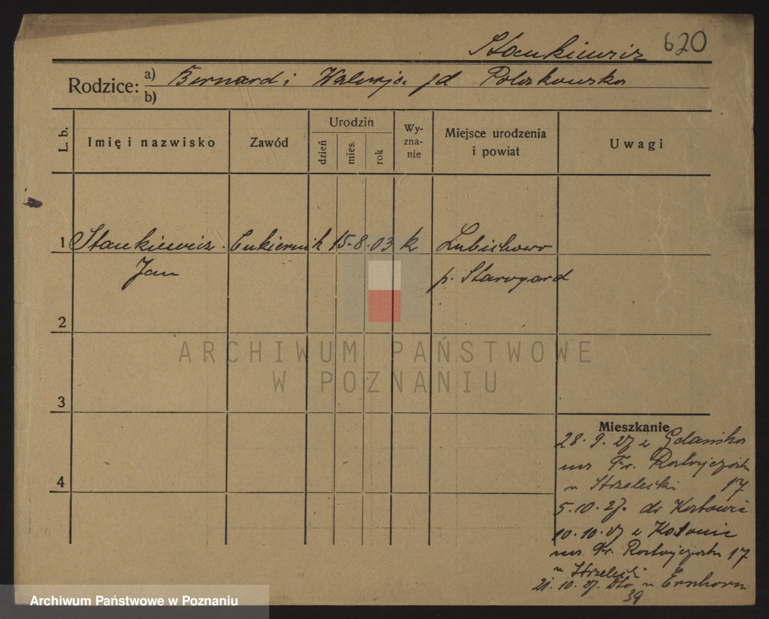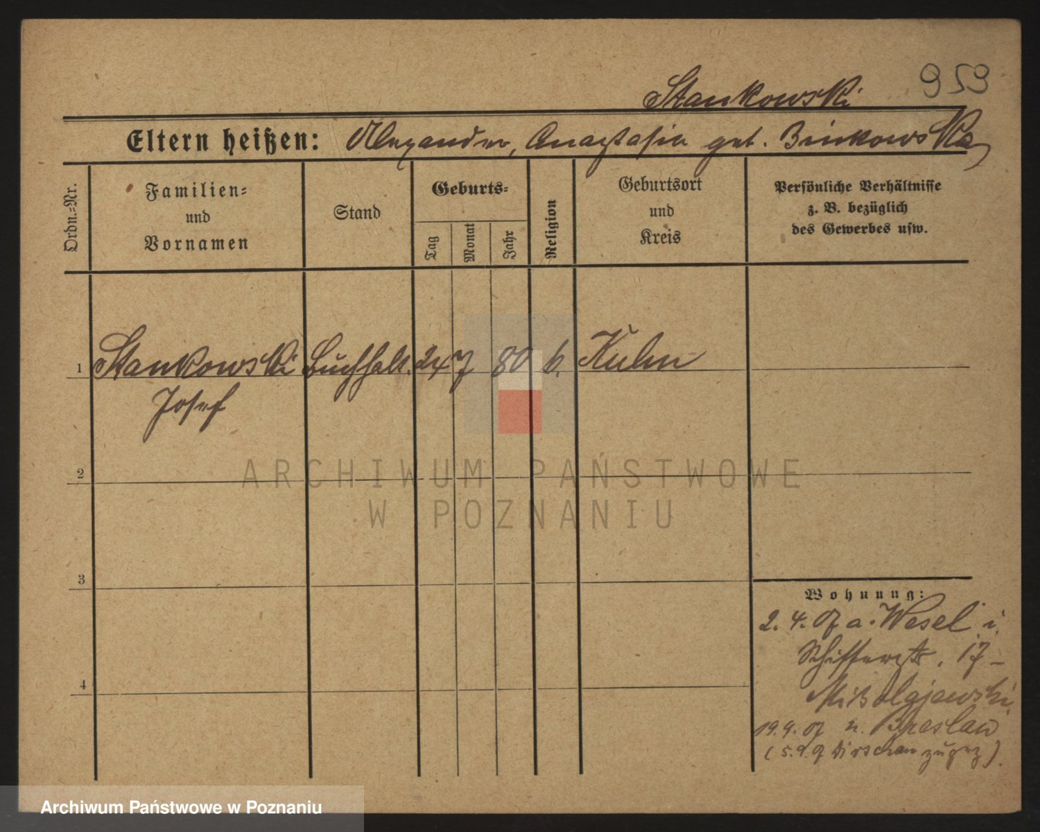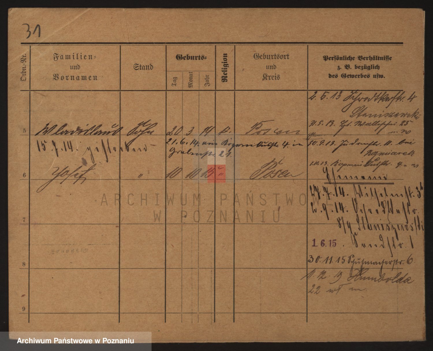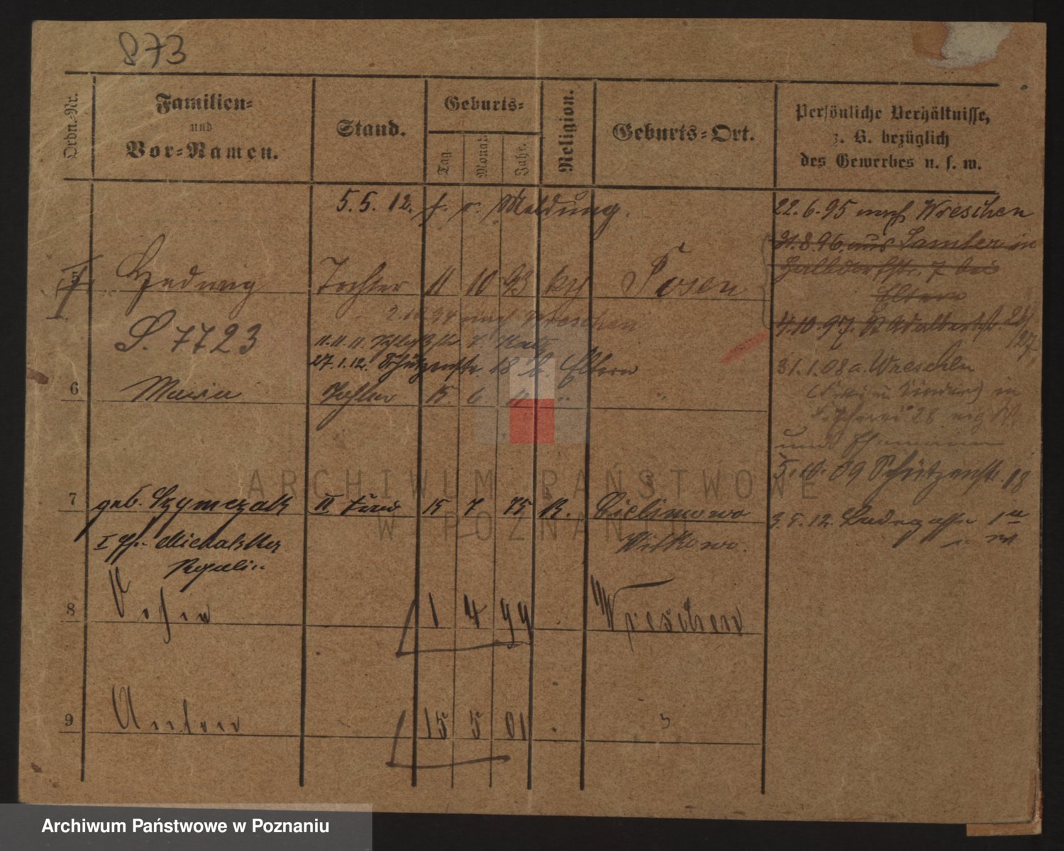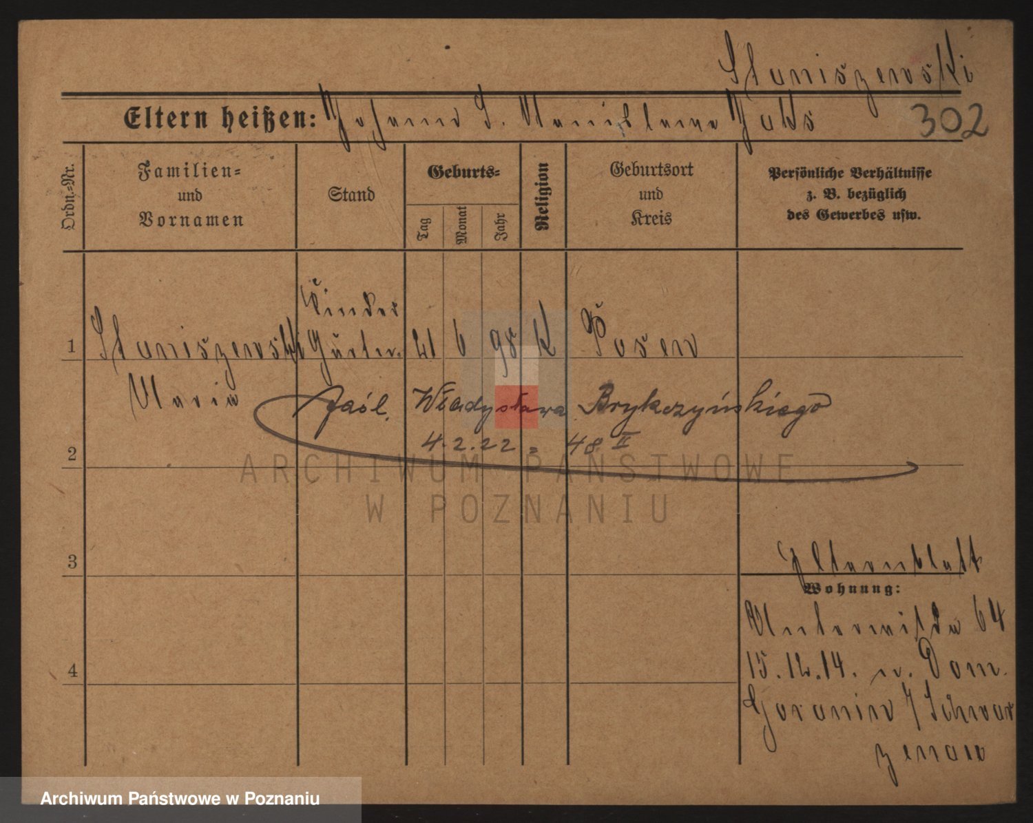 Podgląd karty osobowej dostępny jest po kliknięciu na nazwisko lub ikonkę karty. Można dokonywać powiększenia (ikony na górze) lub przechodzić między kolejnymi skanami (strzałki po bokach).