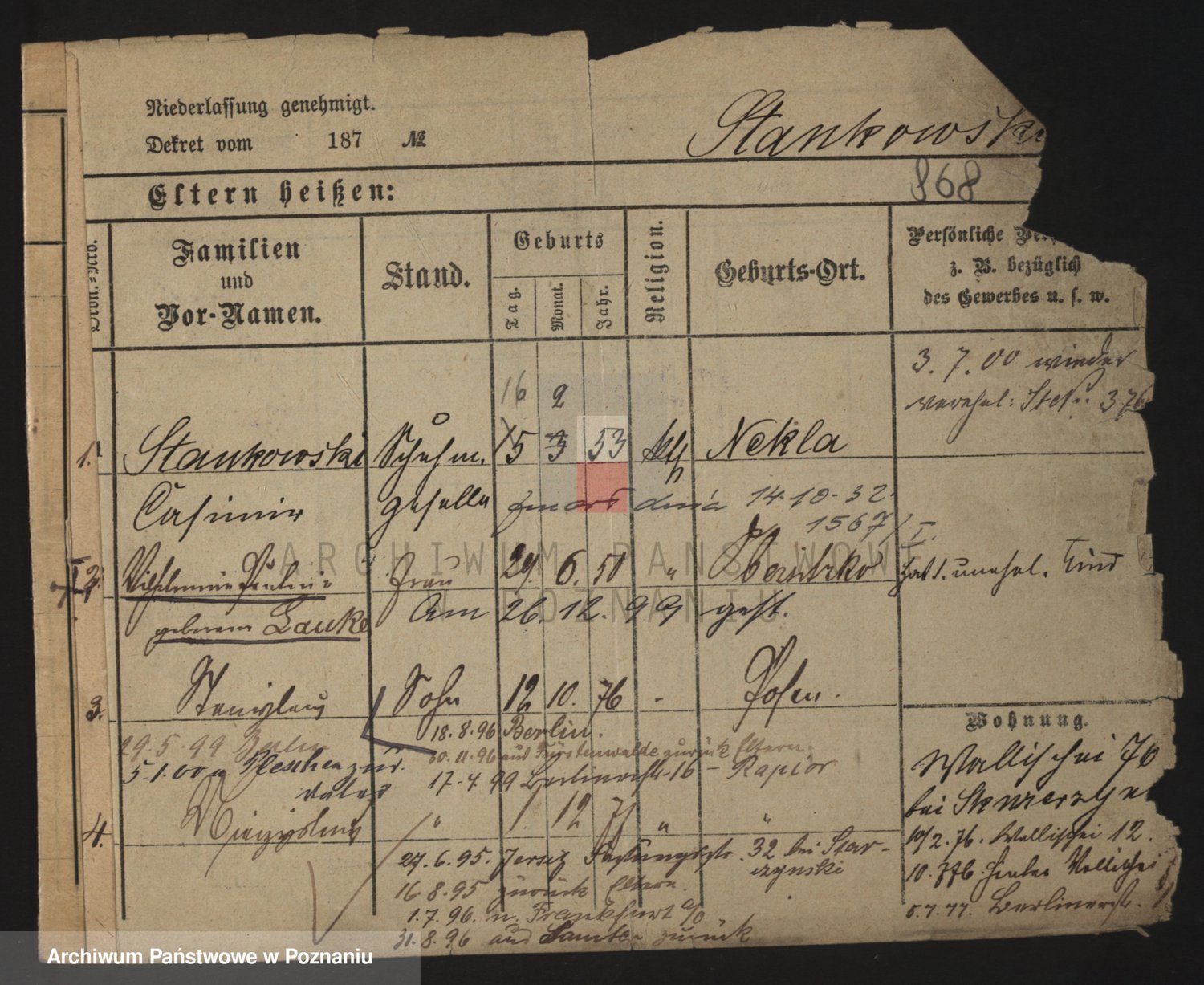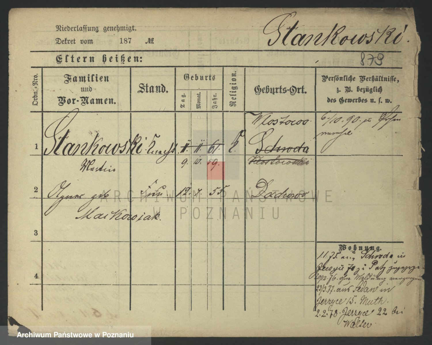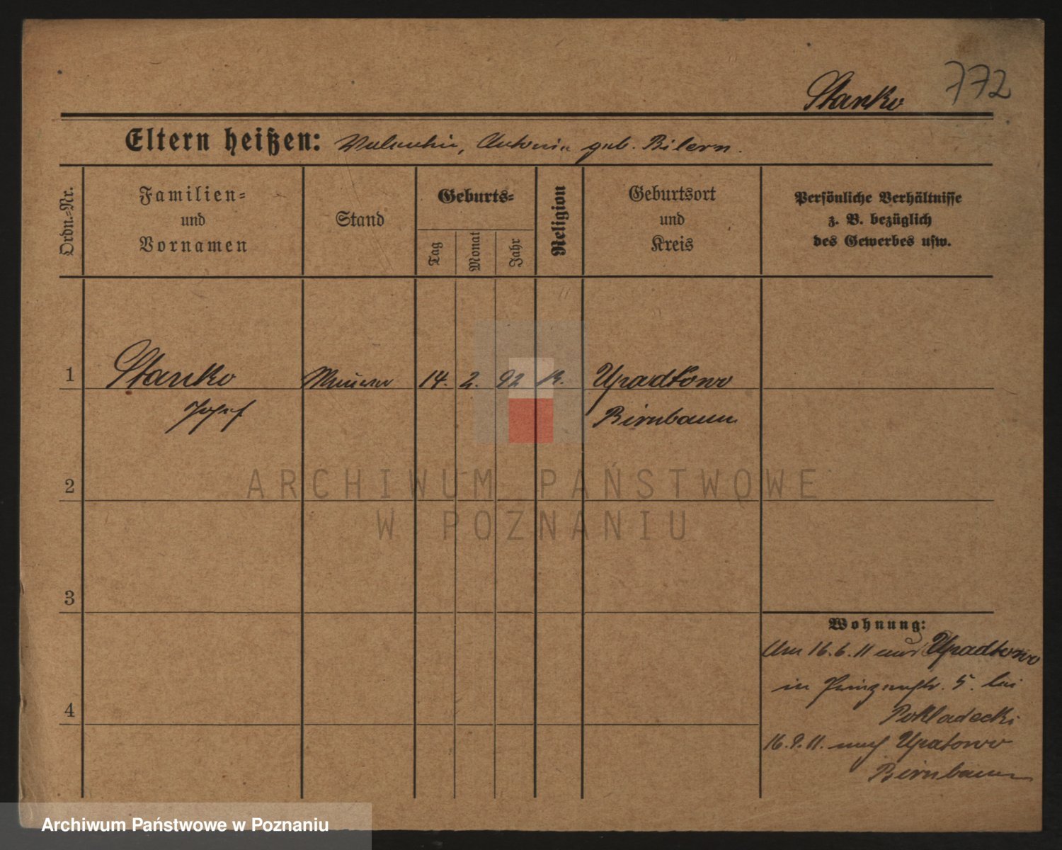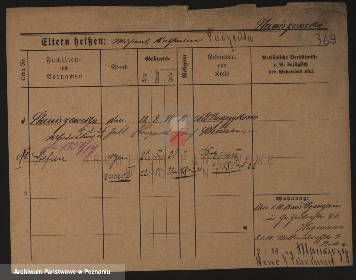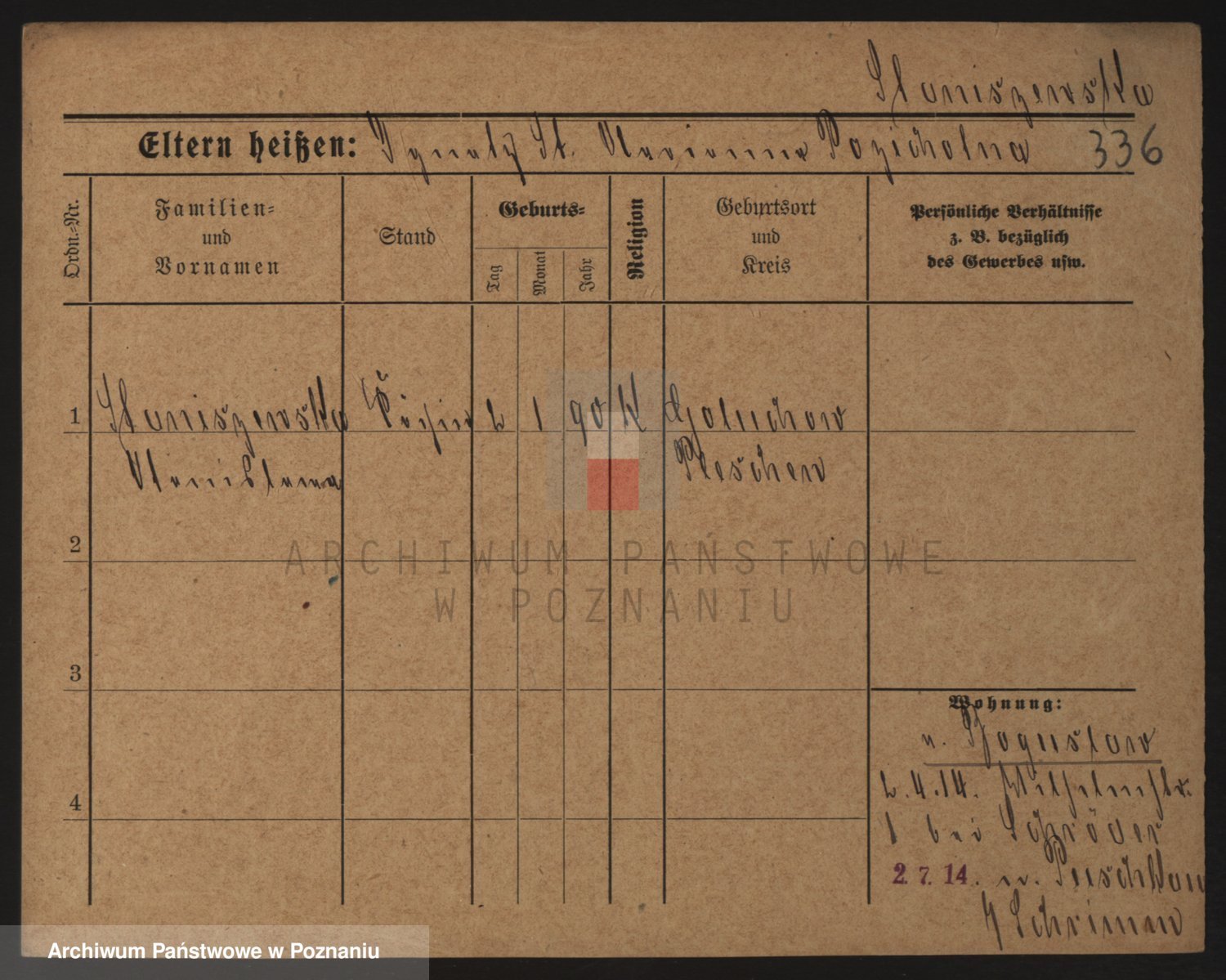 Podgląd karty osobowej dostępny jest po kliknięciu na nazwisko lub ikonkę karty. Można dokonywać powiększenia (ikony na górze) lub przechodzić między kolejnymi skanami (strzałki po bokach).
