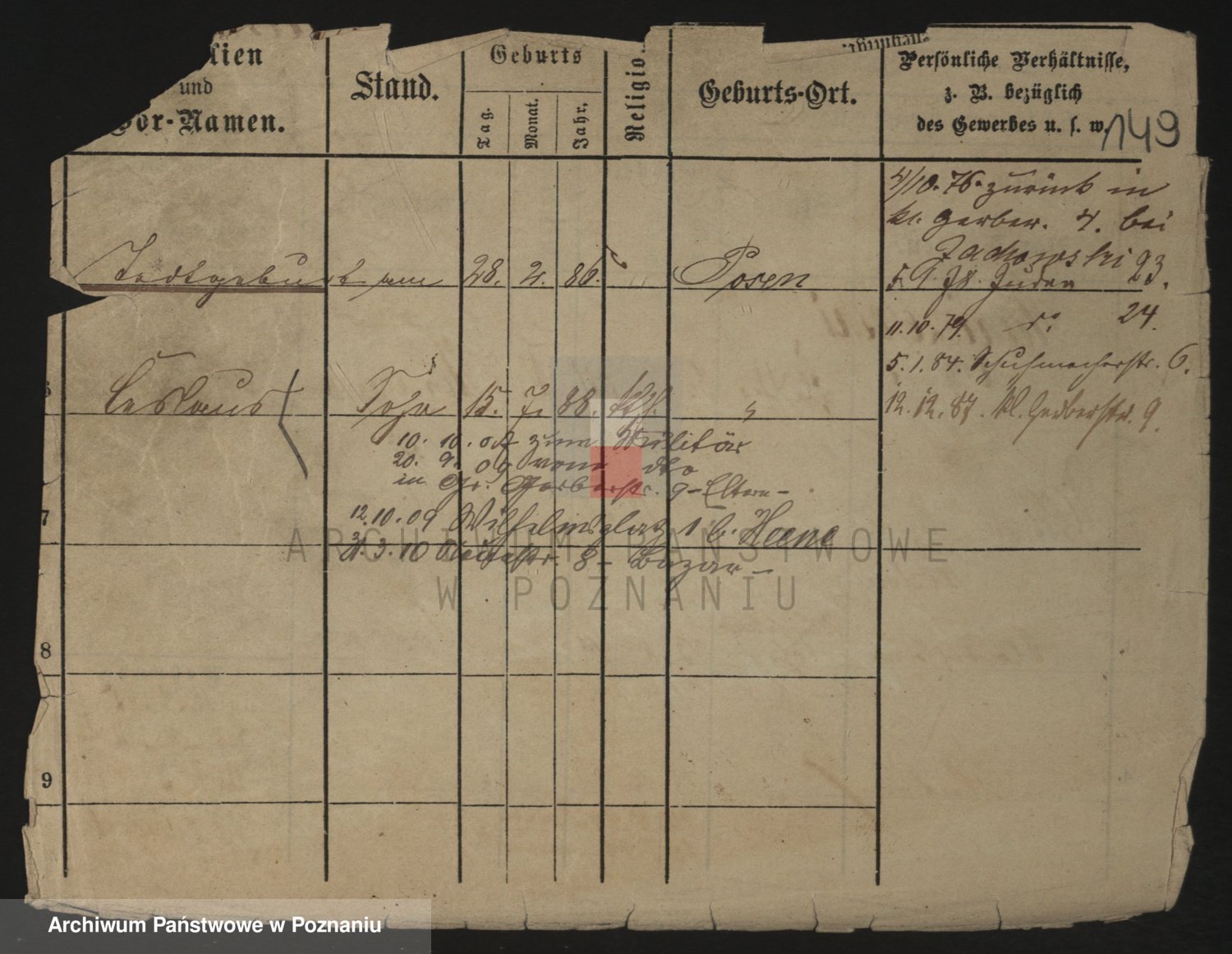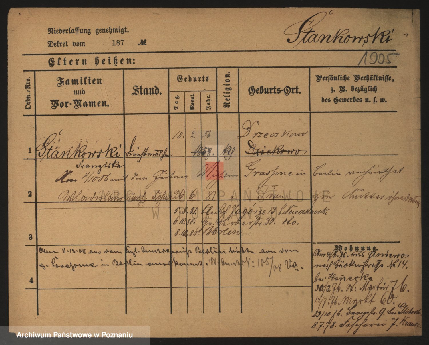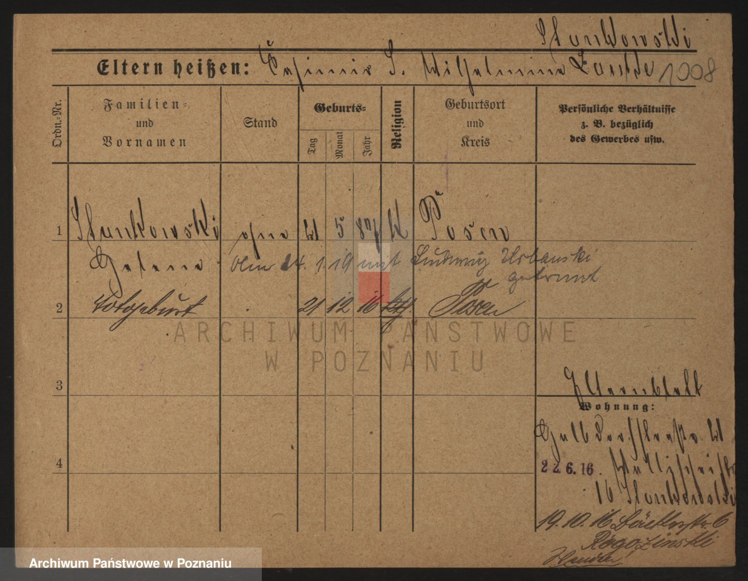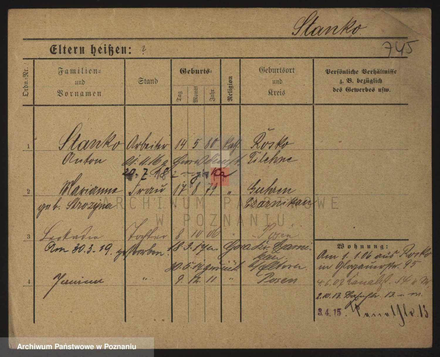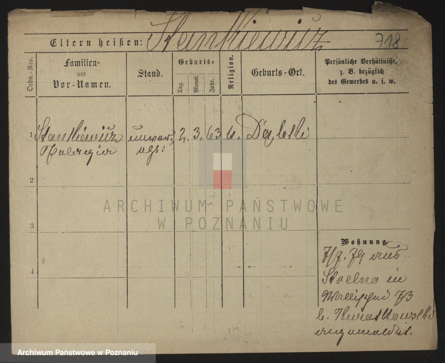 Podgląd karty osobowej dostępny jest po kliknięciu na nazwisko lub ikonkę karty. Można dokonywać powiększenia (ikony na górze) lub przechodzić między kolejnymi skanami (strzałki po bokach).