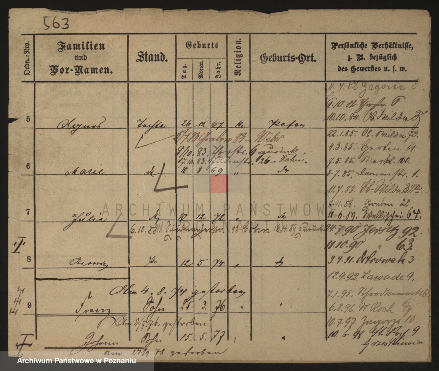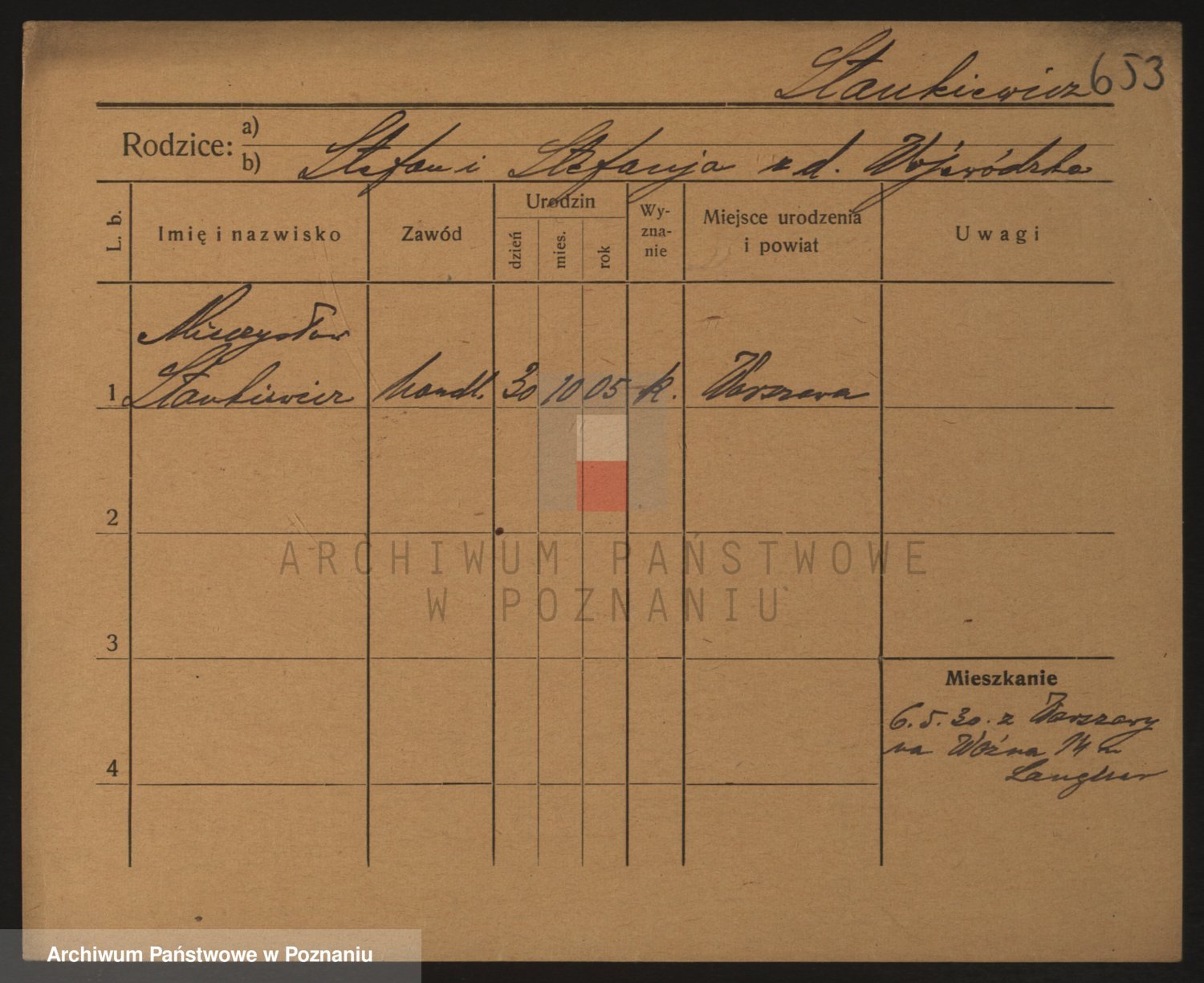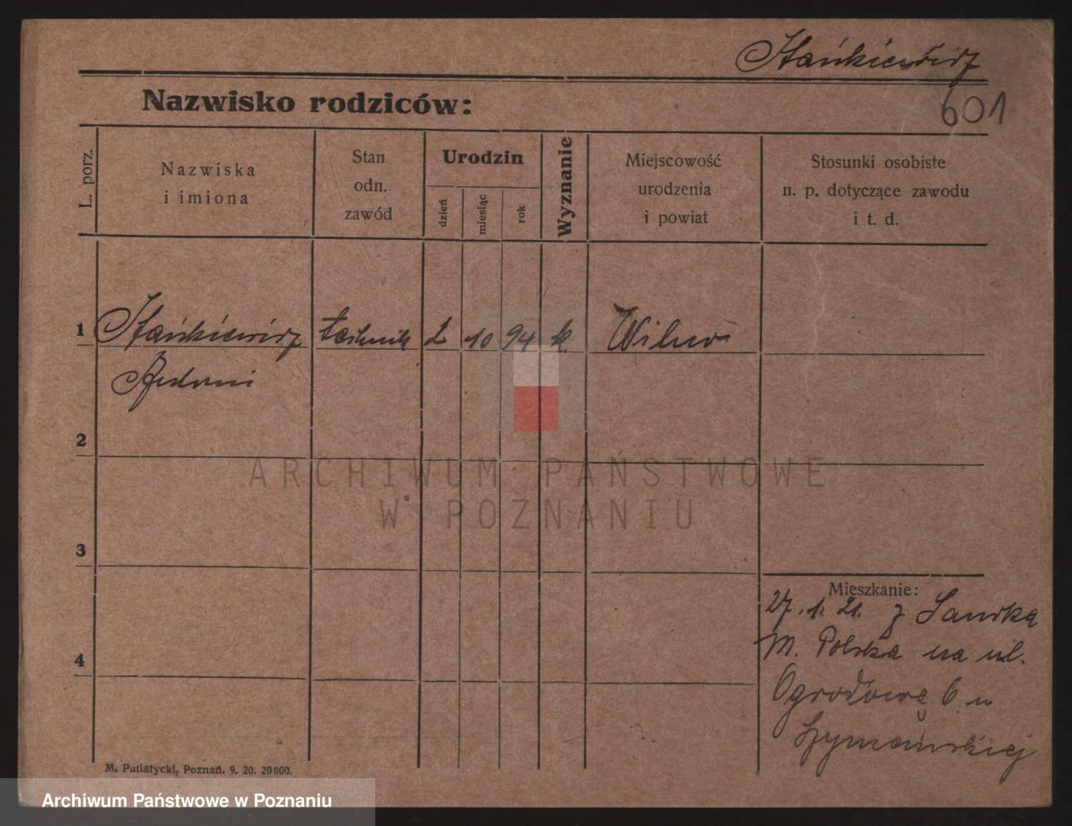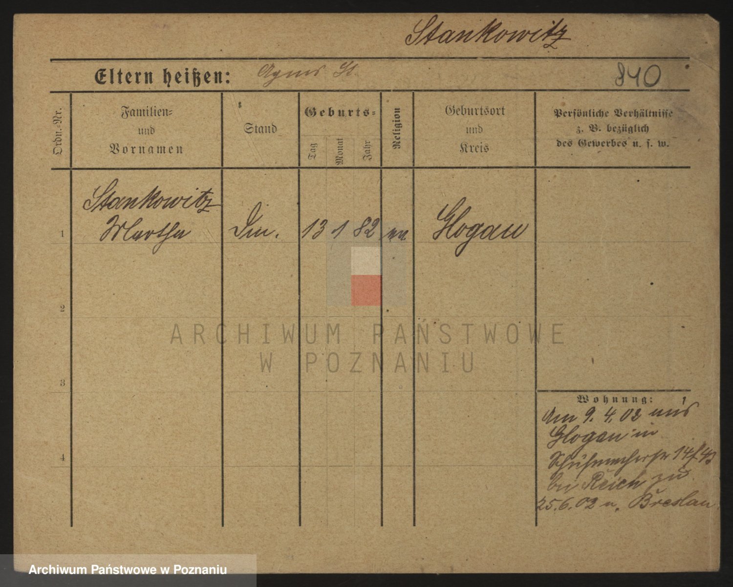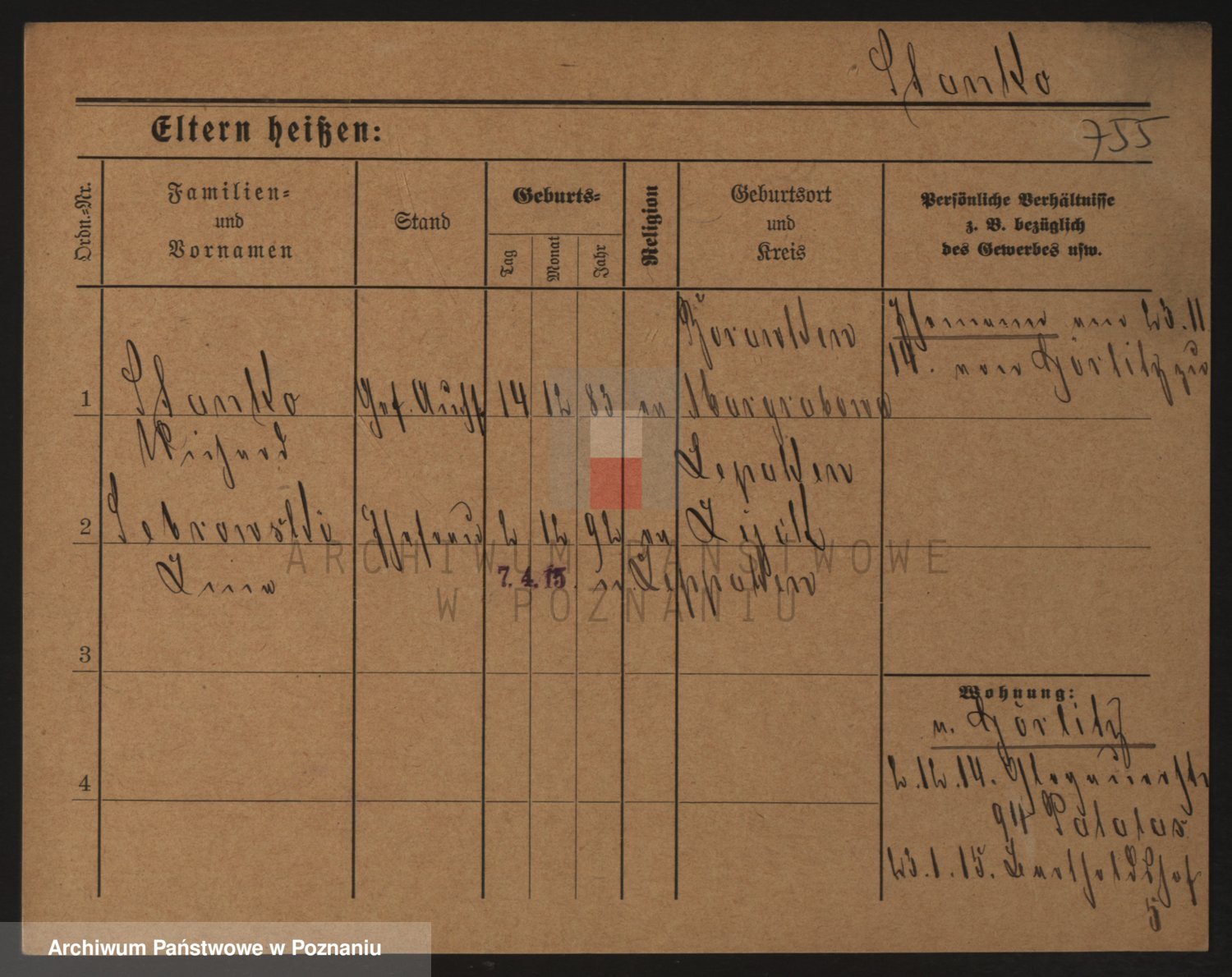 Podgląd karty osobowej dostępny jest po kliknięciu na nazwisko lub ikonkę karty. Można dokonywać powiększenia (ikony na górze) lub przechodzić między kolejnymi skanami (strzałki po bokach).