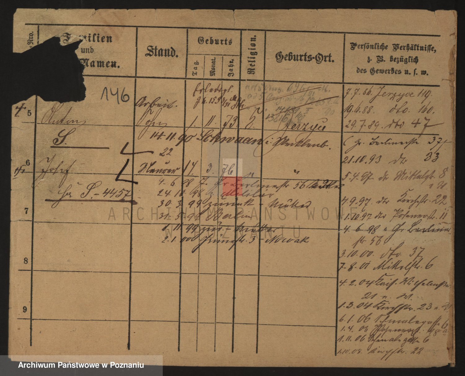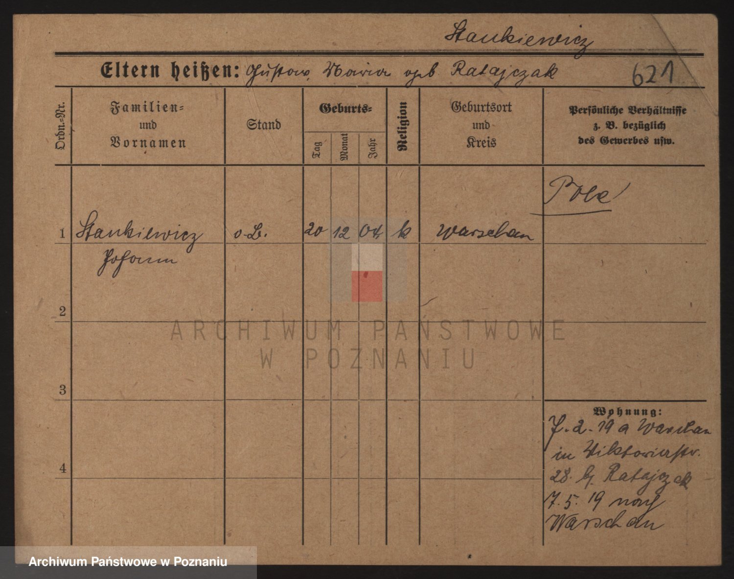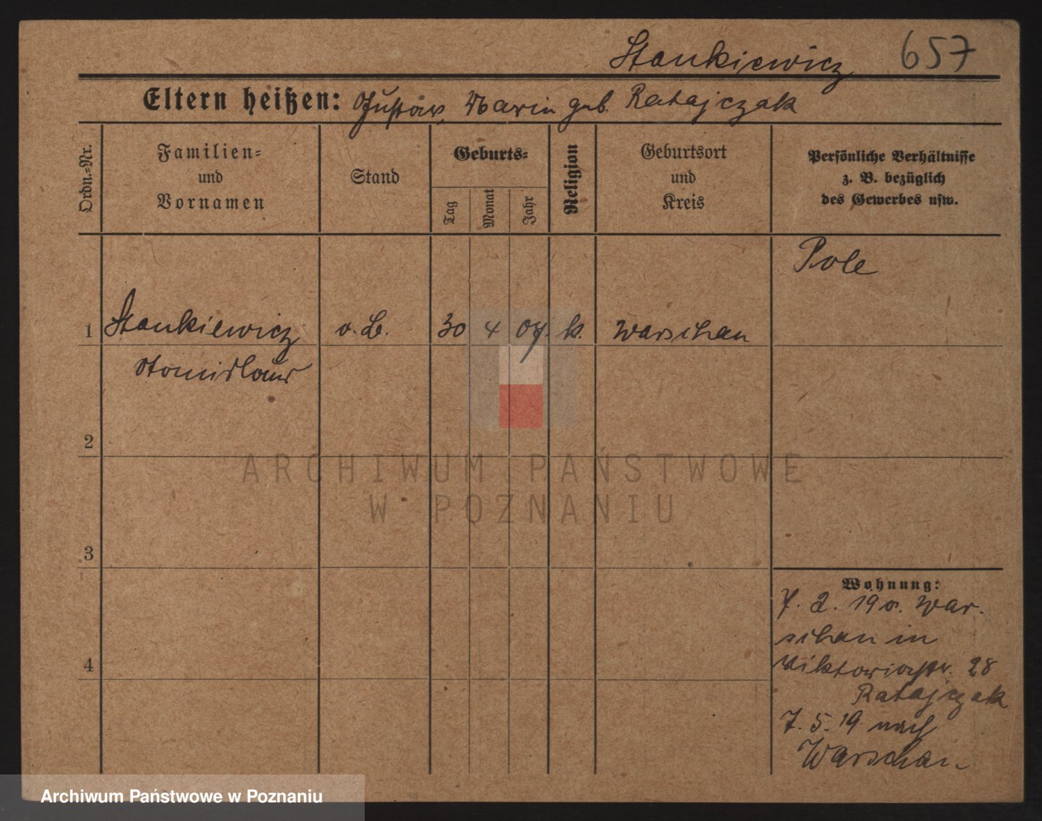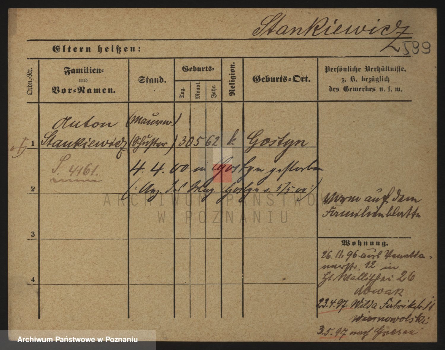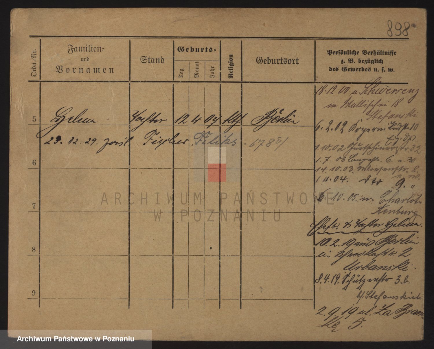 Podgląd karty osobowej dostępny jest po kliknięciu na nazwisko lub ikonkę karty. Można dokonywać powiększenia (ikony na górze) lub przechodzić między kolejnymi skanami (strzałki po bokach).
