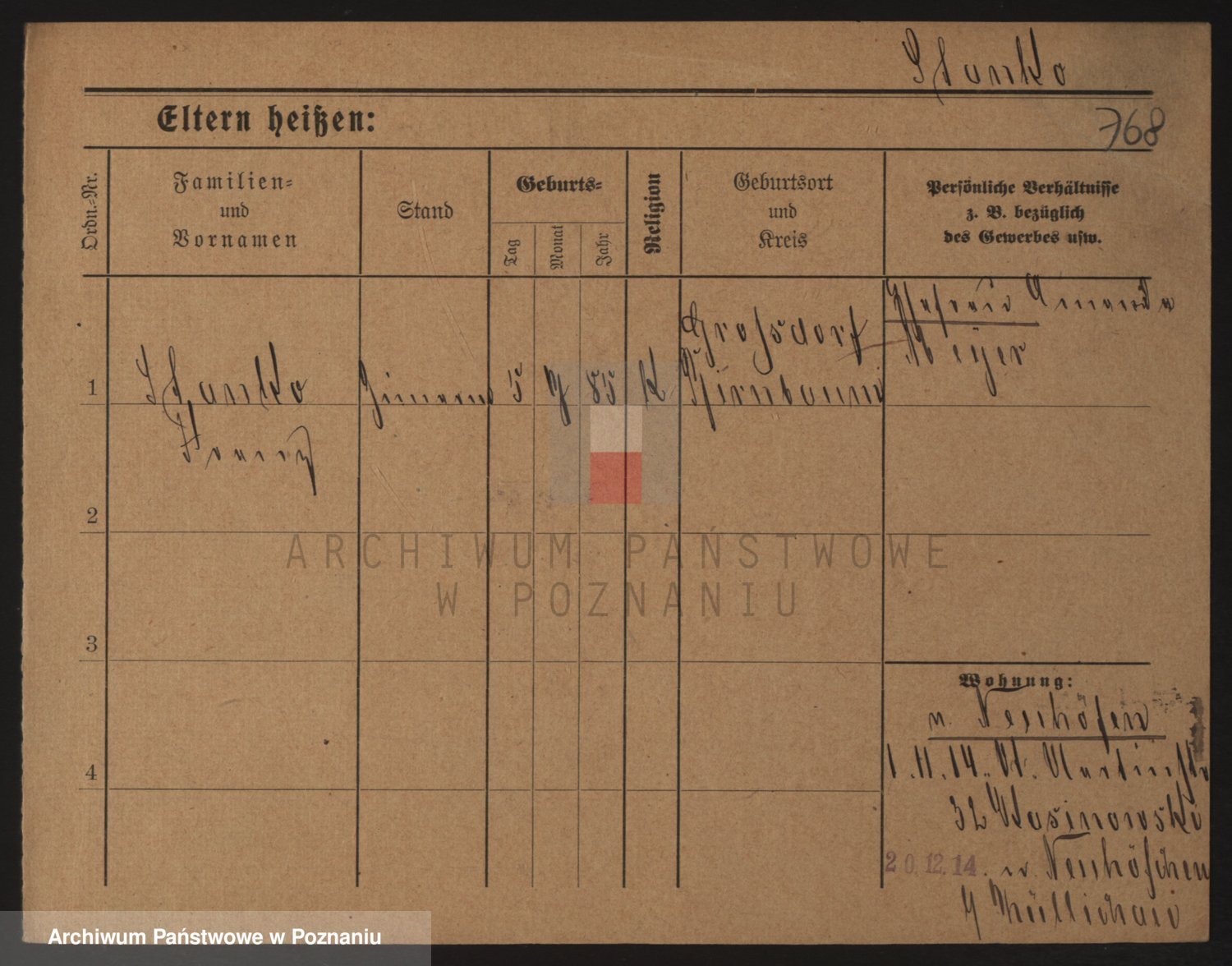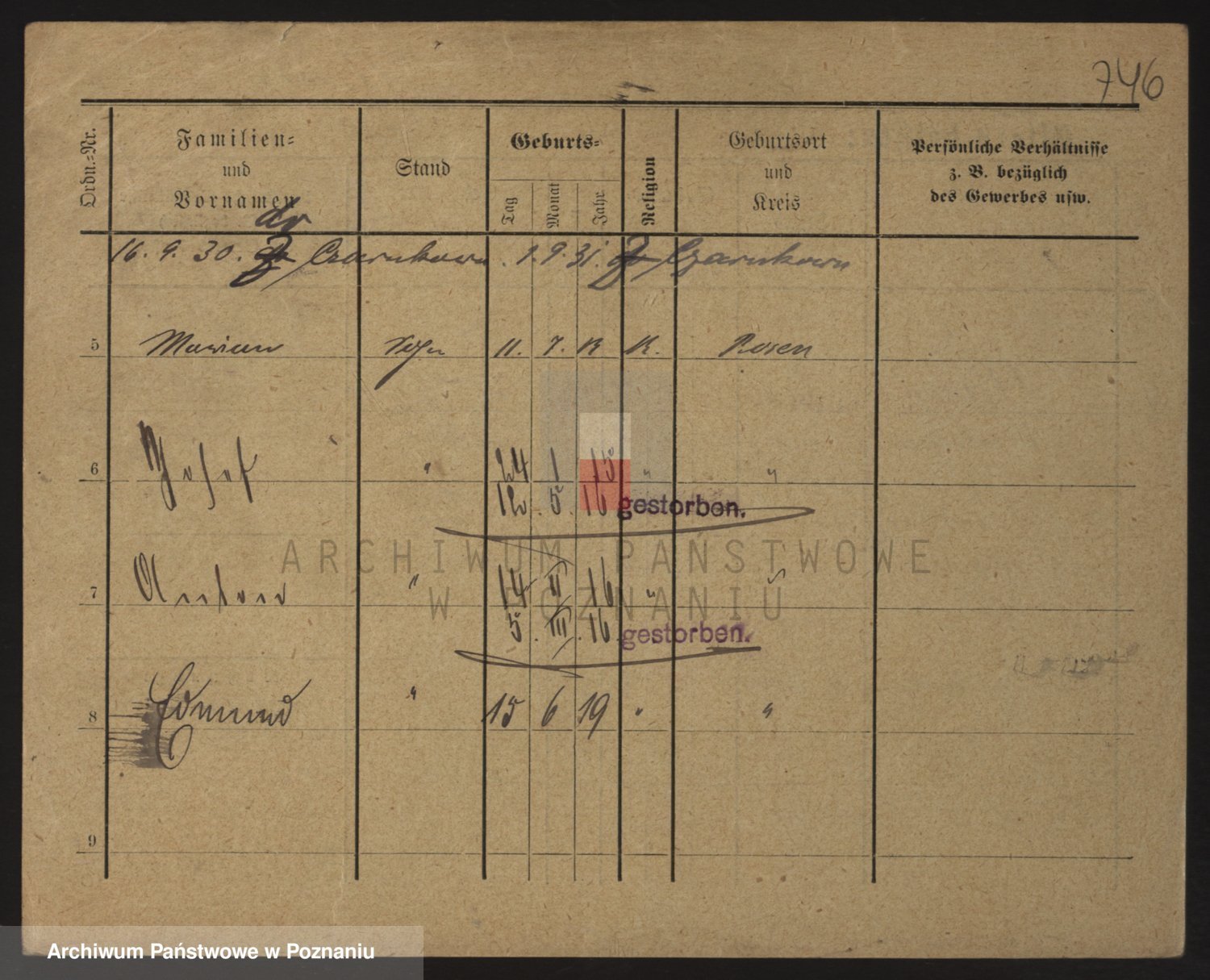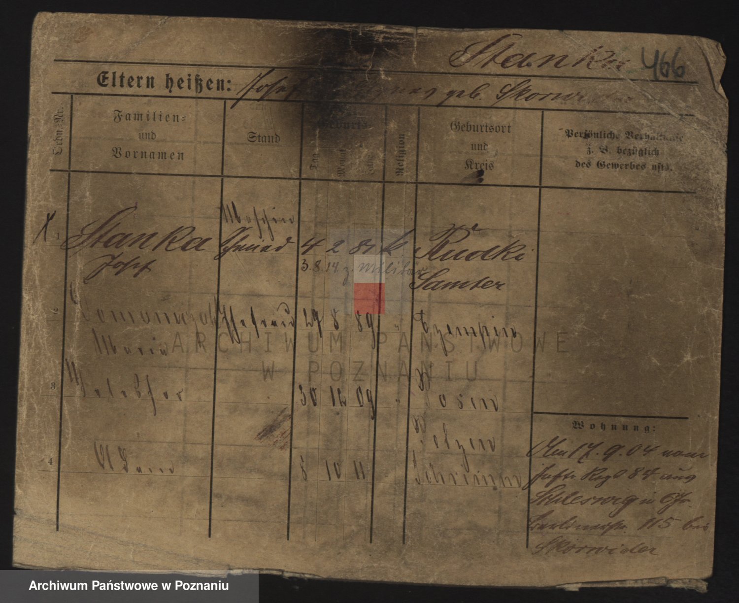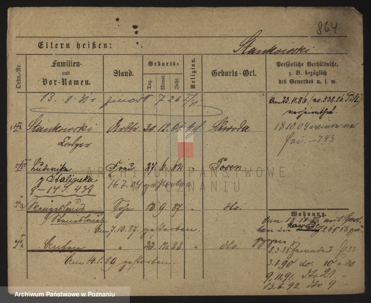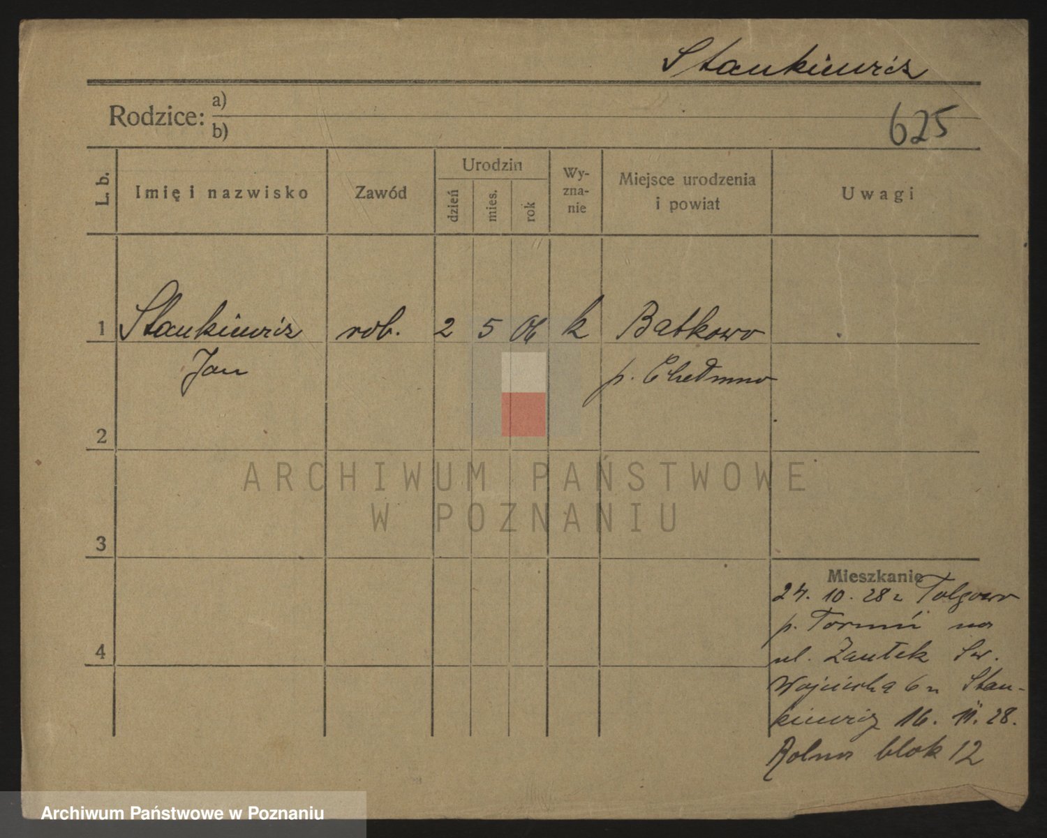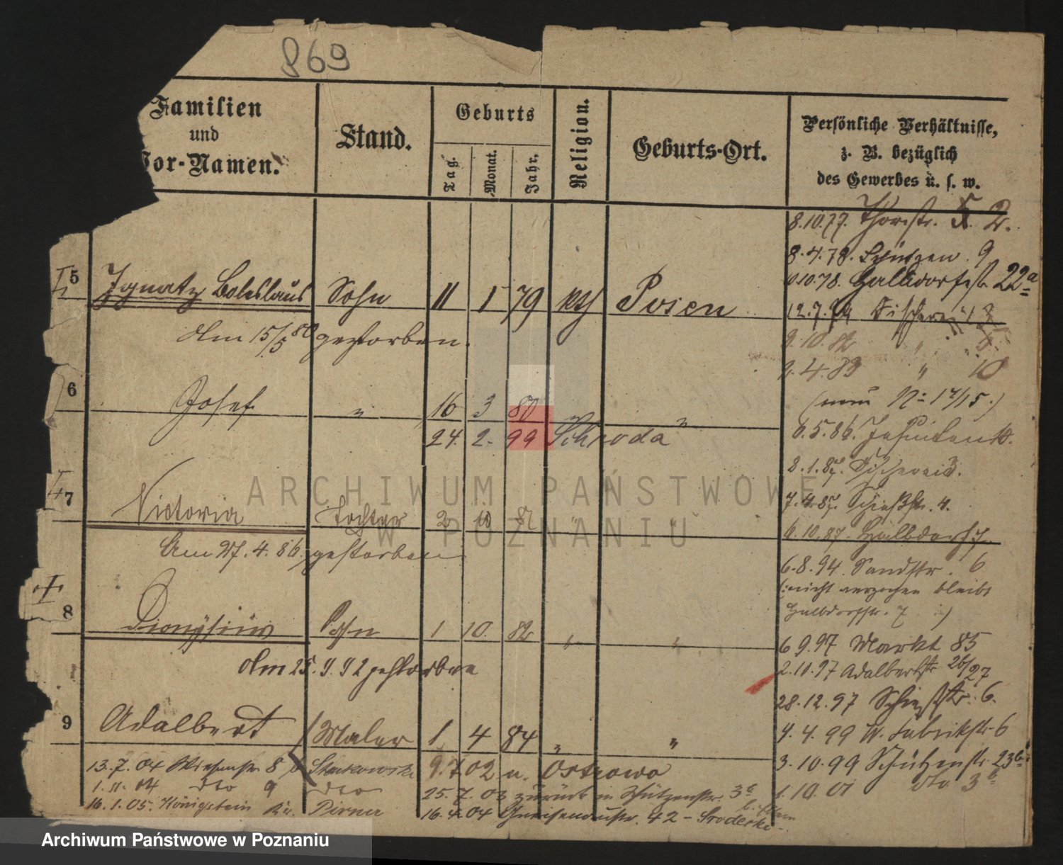 Podgląd karty osobowej dostępny jest po kliknięciu na nazwisko lub ikonkę karty. Można dokonywać powiększenia (ikony na górze) lub przechodzić między kolejnymi skanami (strzałki po bokach).