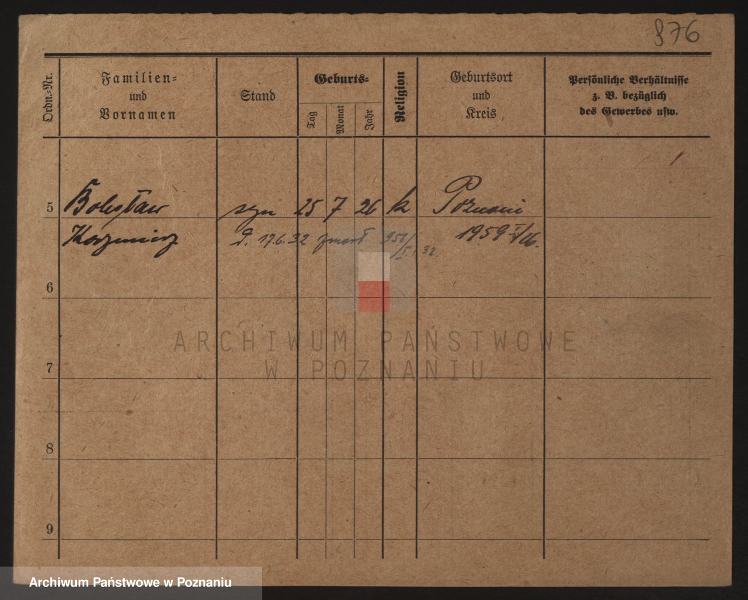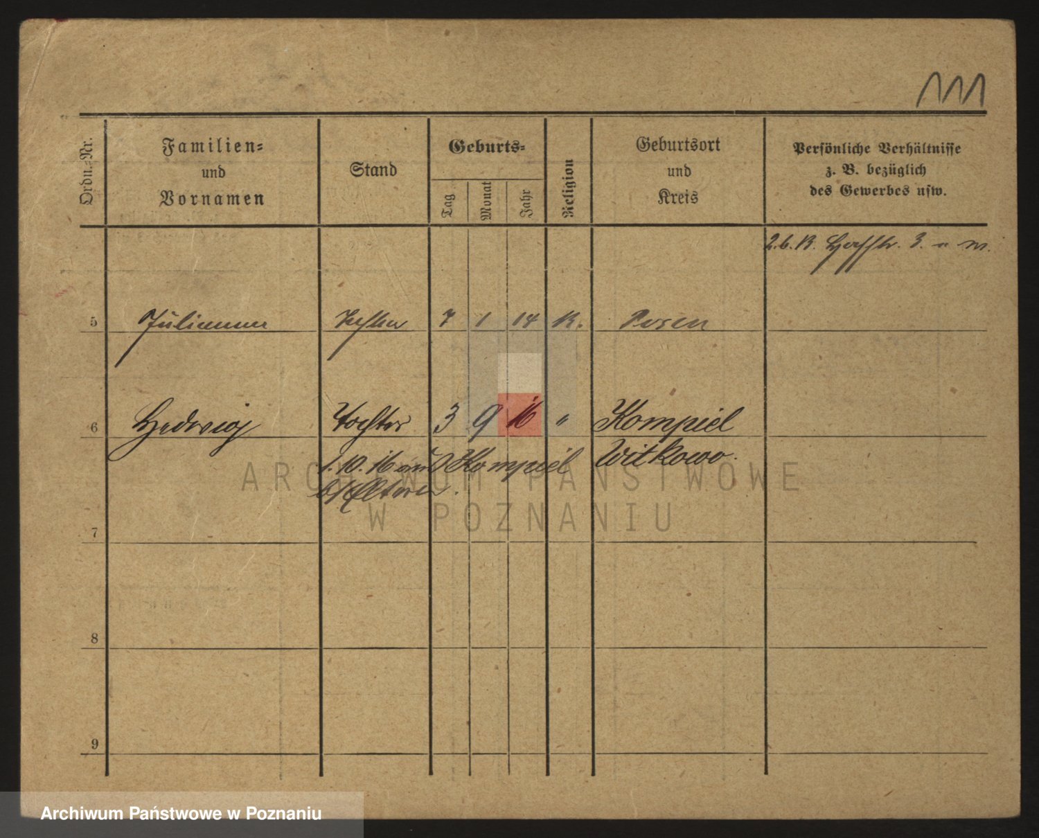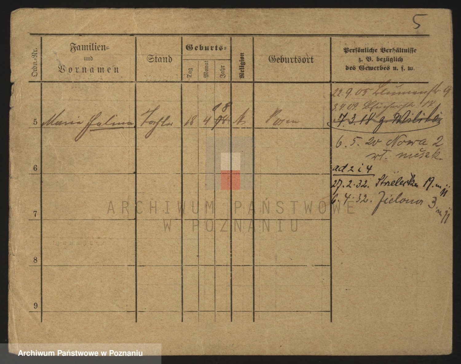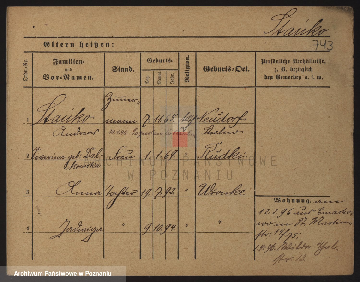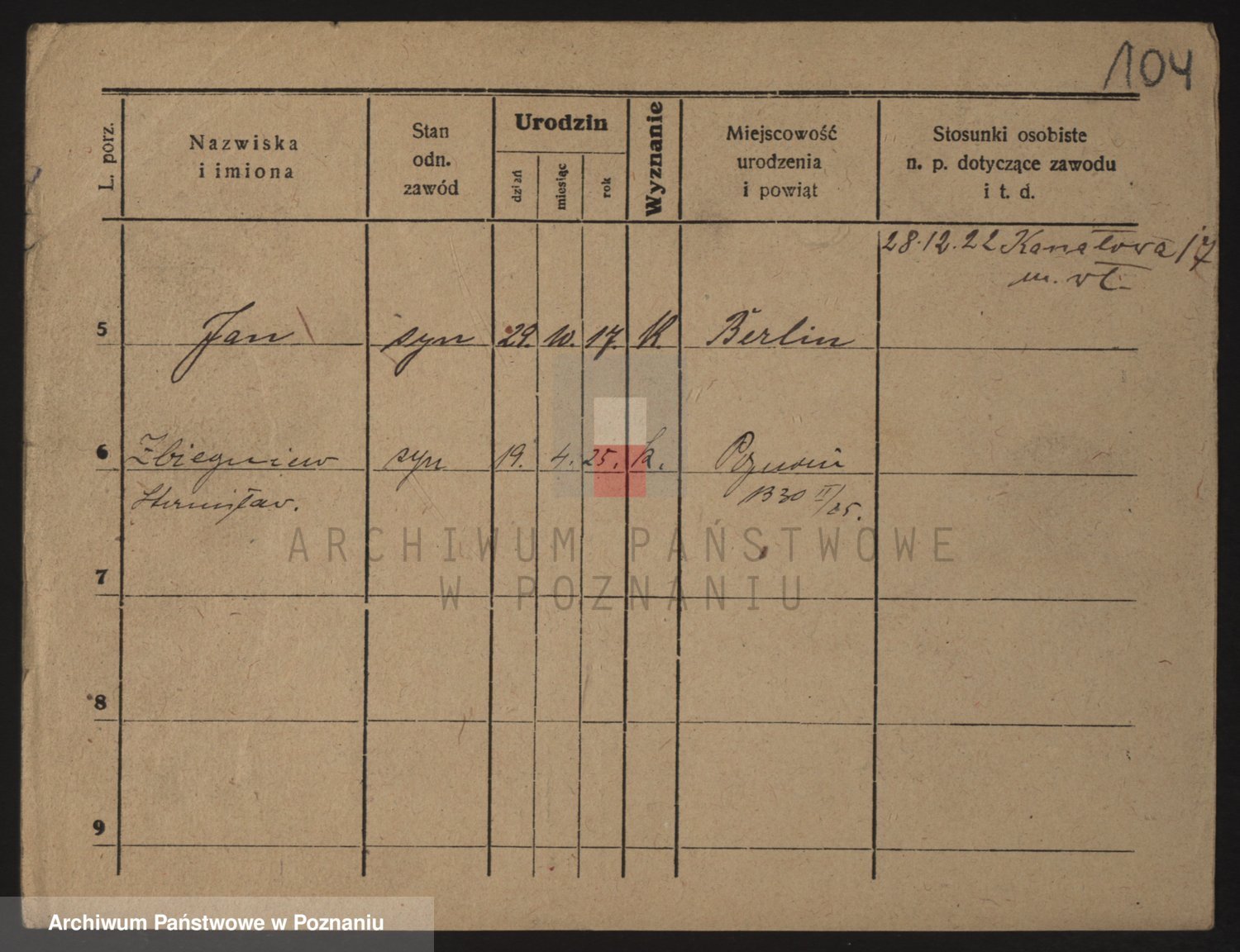 Podgląd karty osobowej dostępny jest po kliknięciu na nazwisko lub ikonkę karty. Można dokonywać powiększenia (ikony na górze) lub przechodzić między kolejnymi skanami (strzałki po bokach).