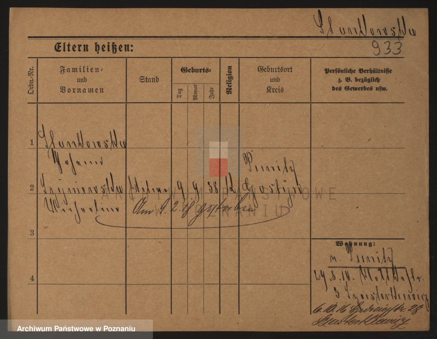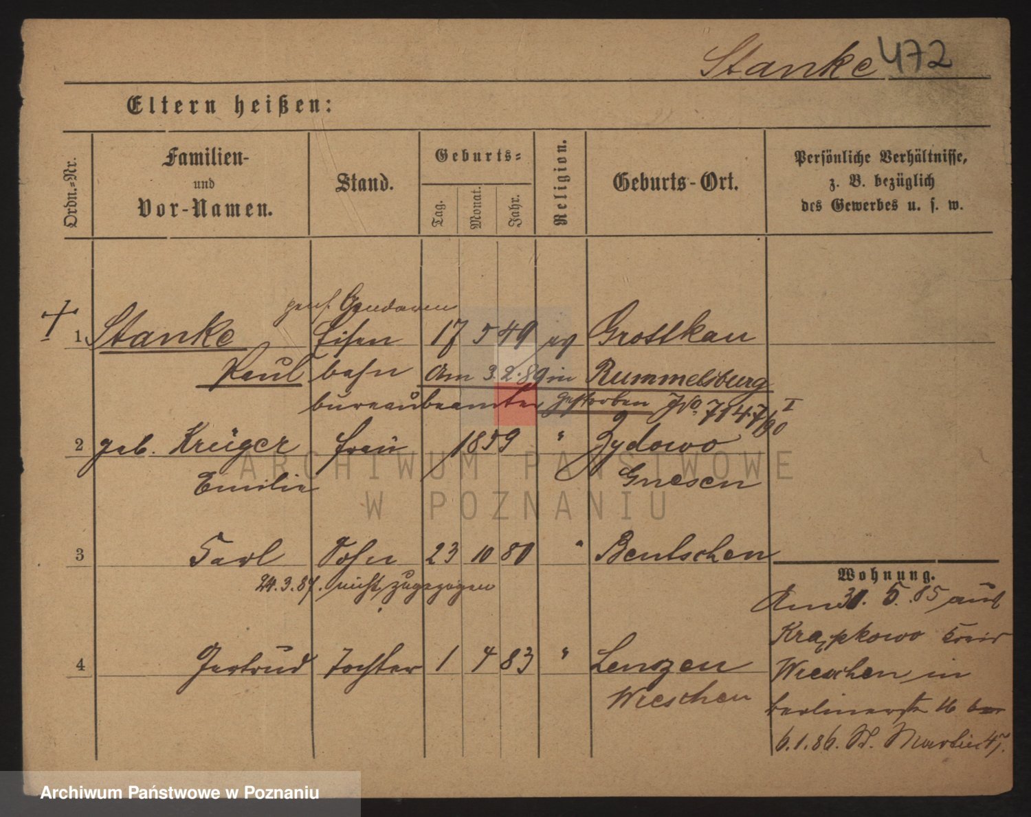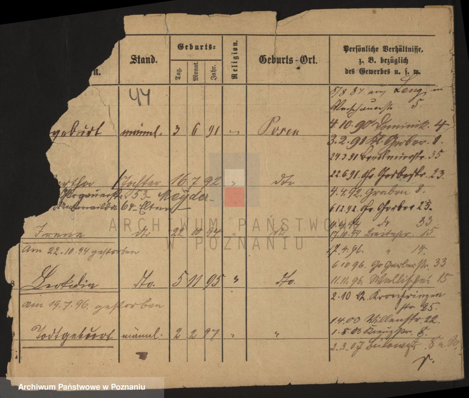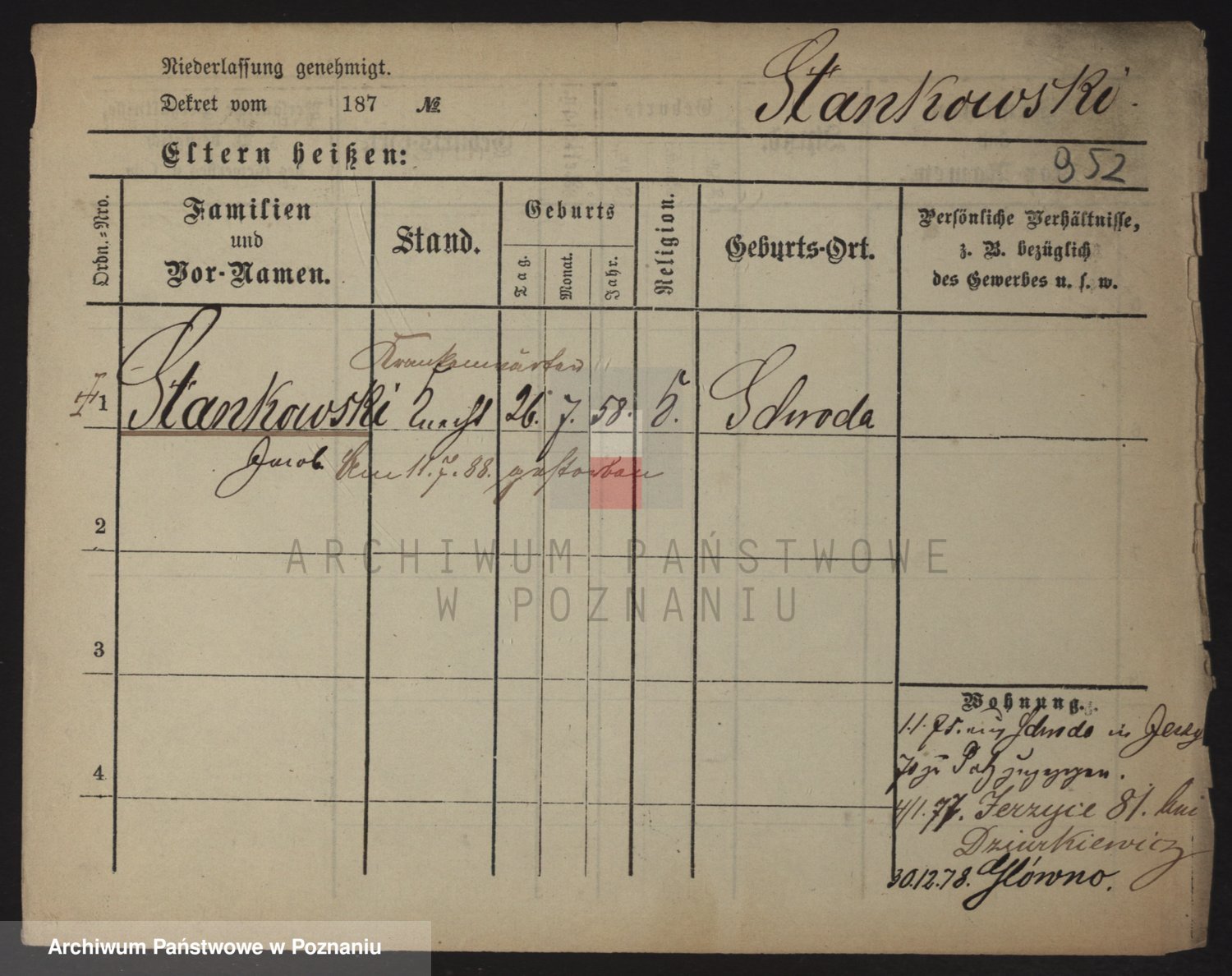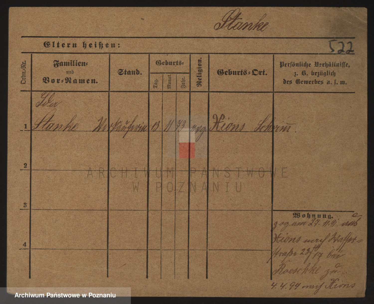 Podgląd karty osobowej dostępny jest po kliknięciu na nazwisko lub ikonkę karty. Można dokonywać powiększenia (ikony na górze) lub przechodzić między kolejnymi skanami (strzałki po bokach).