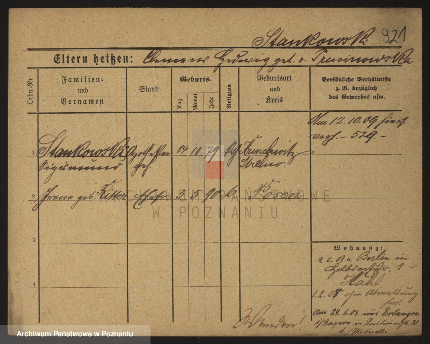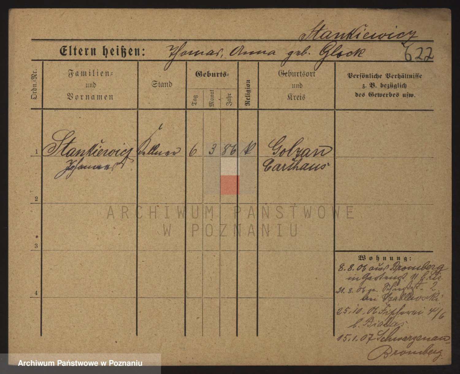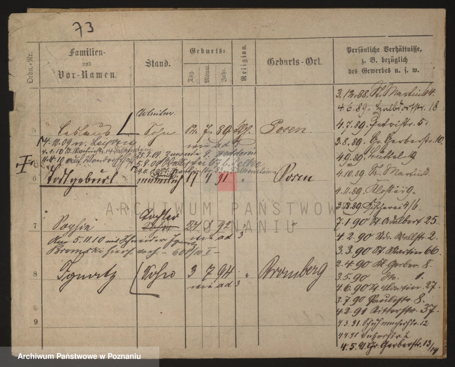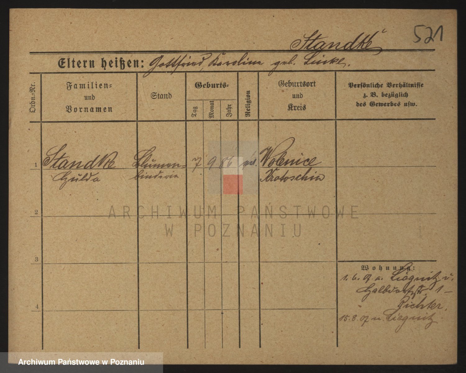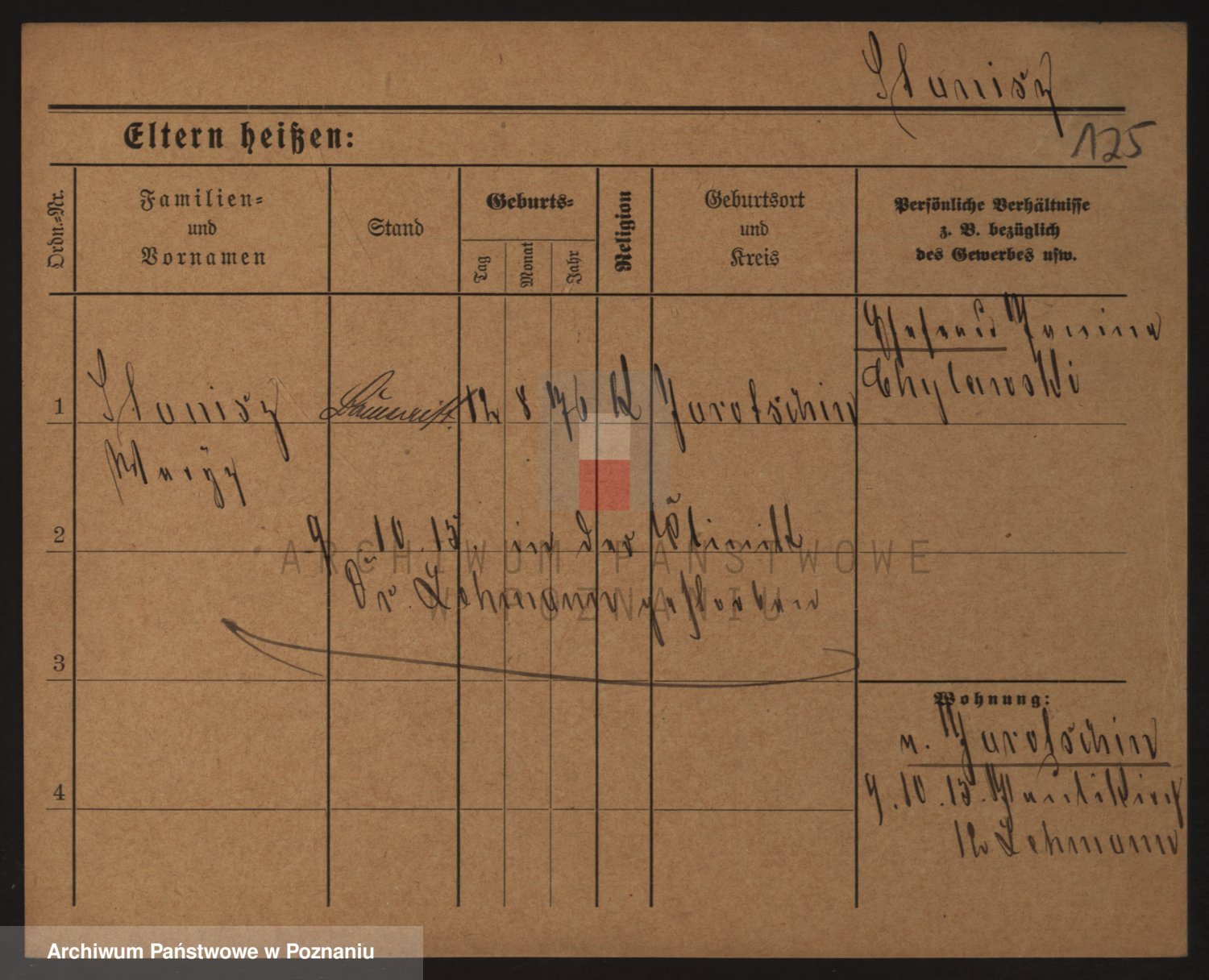 Podgląd karty osobowej dostępny jest po kliknięciu na nazwisko lub ikonkę karty. Można dokonywać powiększenia (ikony na górze) lub przechodzić między kolejnymi skanami (strzałki po bokach).