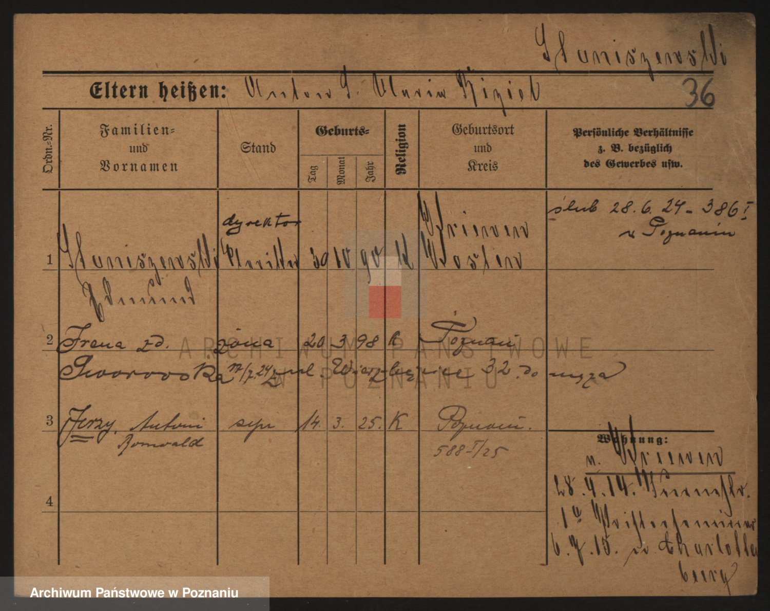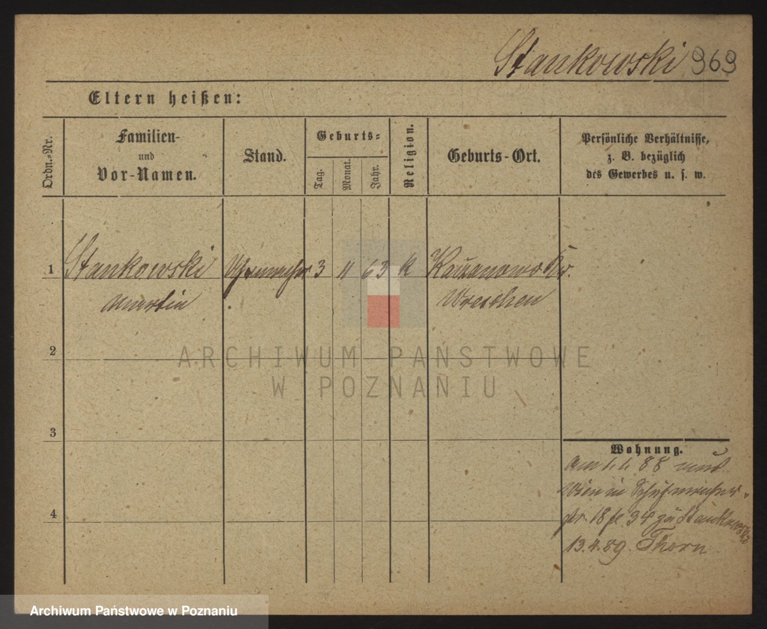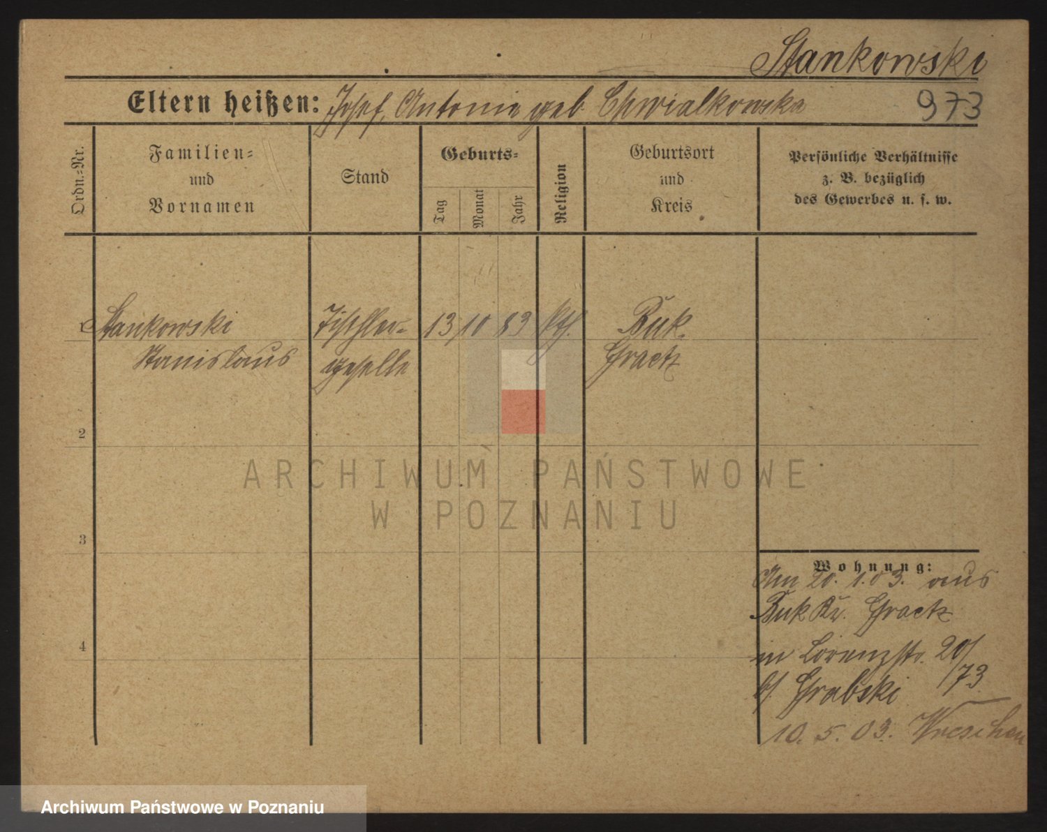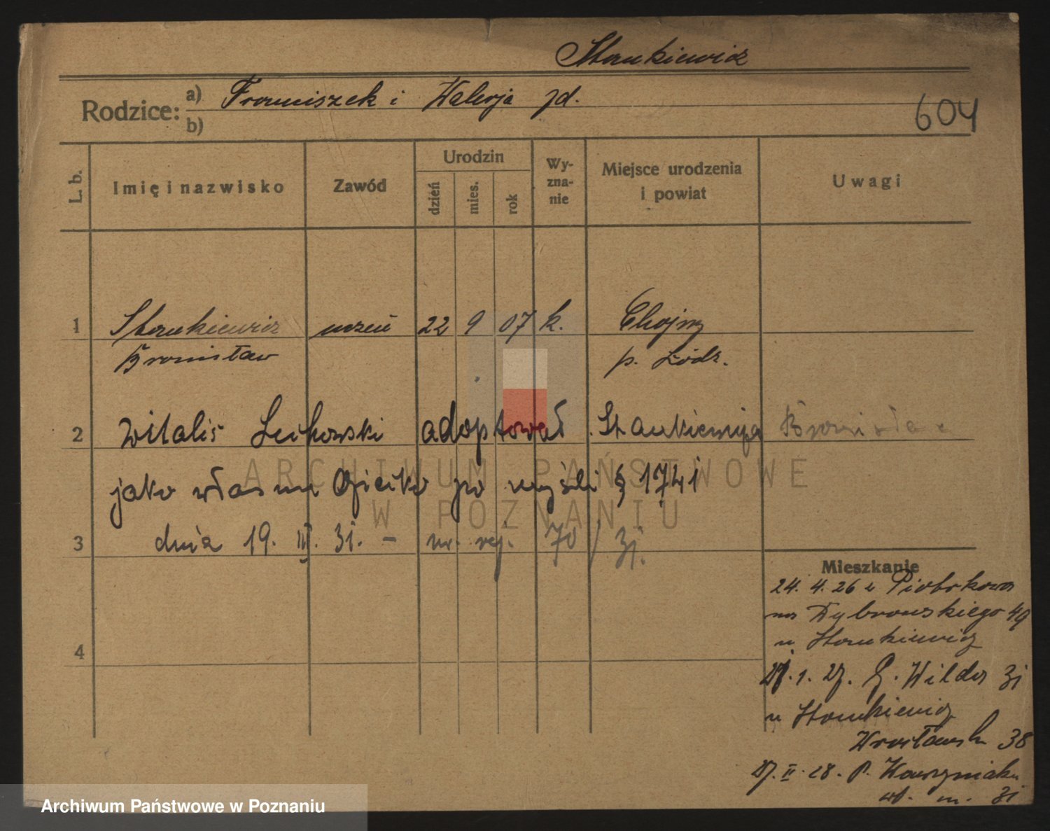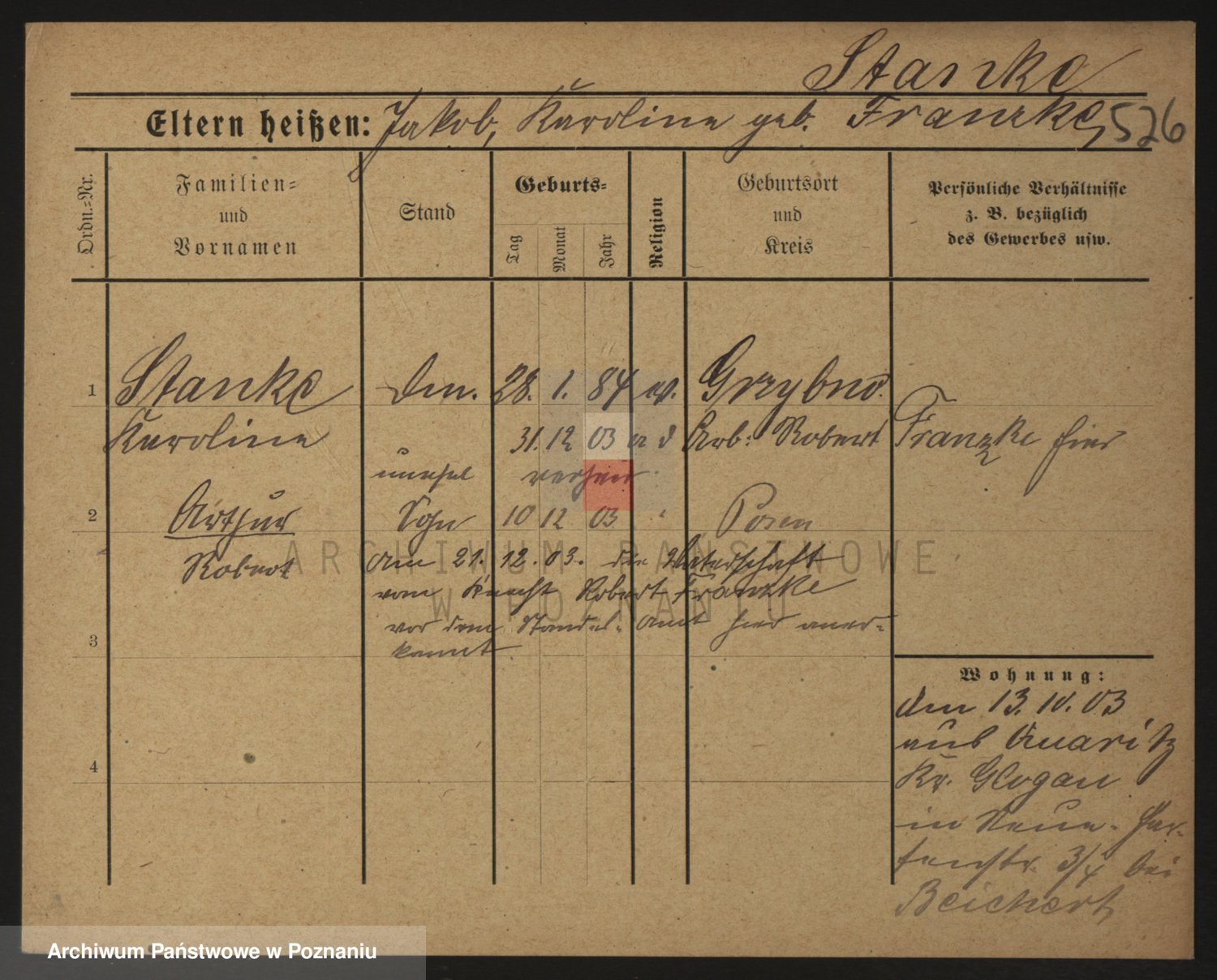 Podgląd karty osobowej dostępny jest po kliknięciu na nazwisko lub ikonkę karty. Można dokonywać powiększenia (ikony na górze) lub przechodzić między kolejnymi skanami (strzałki po bokach).