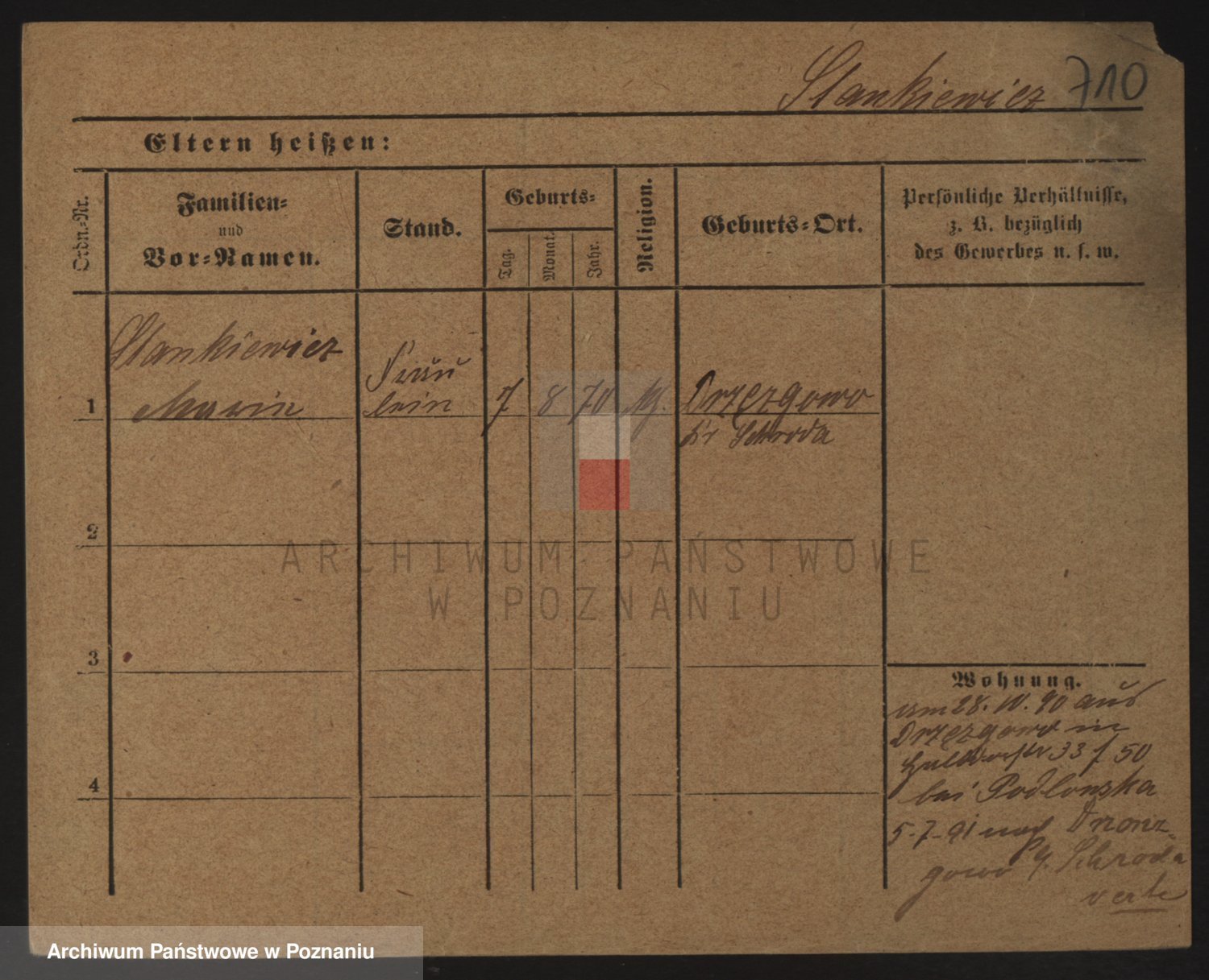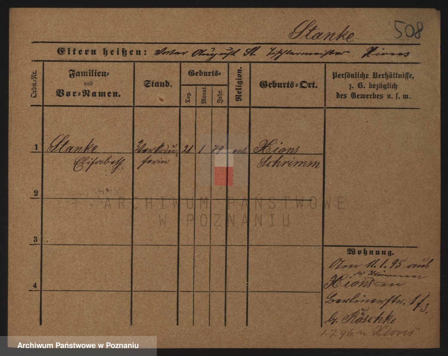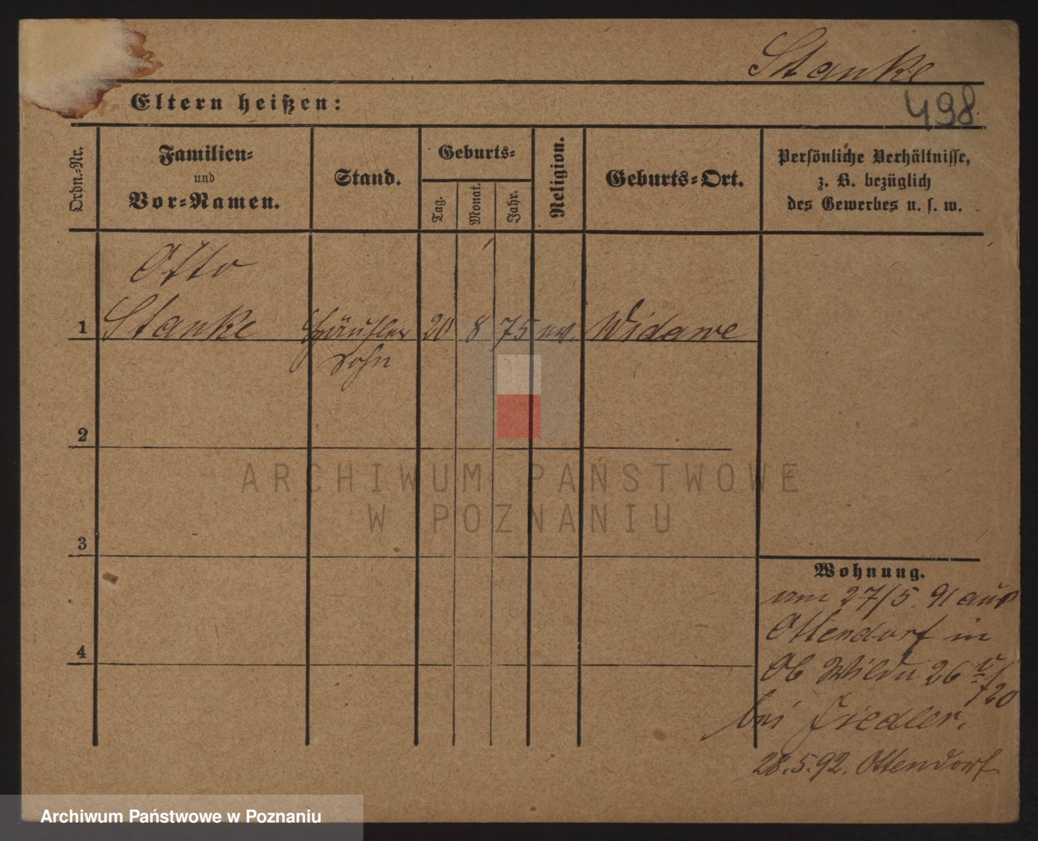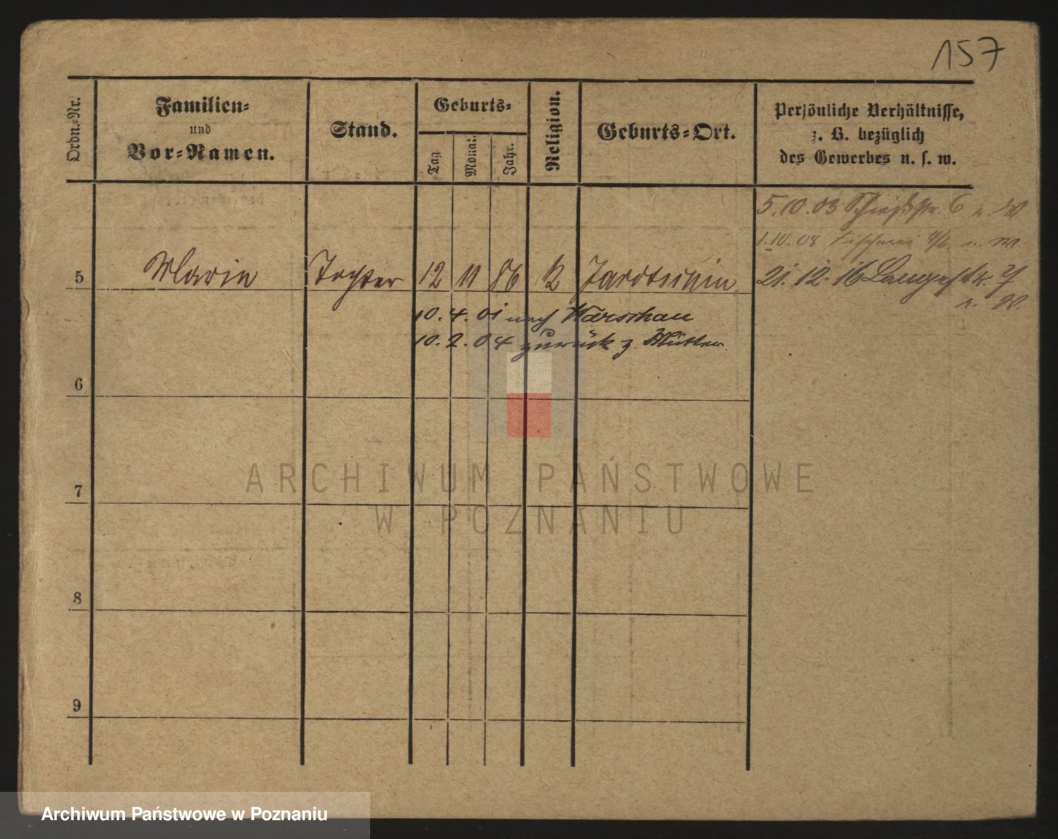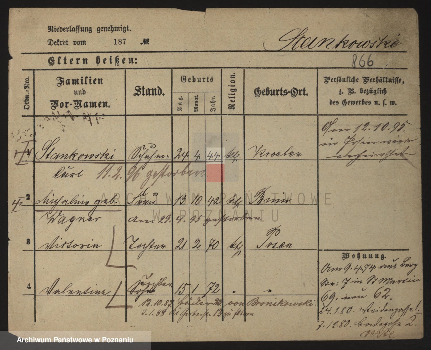 Podgląd karty osobowej dostępny jest po kliknięciu na nazwisko lub ikonkę karty. Można dokonywać powiększenia (ikony na górze) lub przechodzić między kolejnymi skanami (strzałki po bokach).