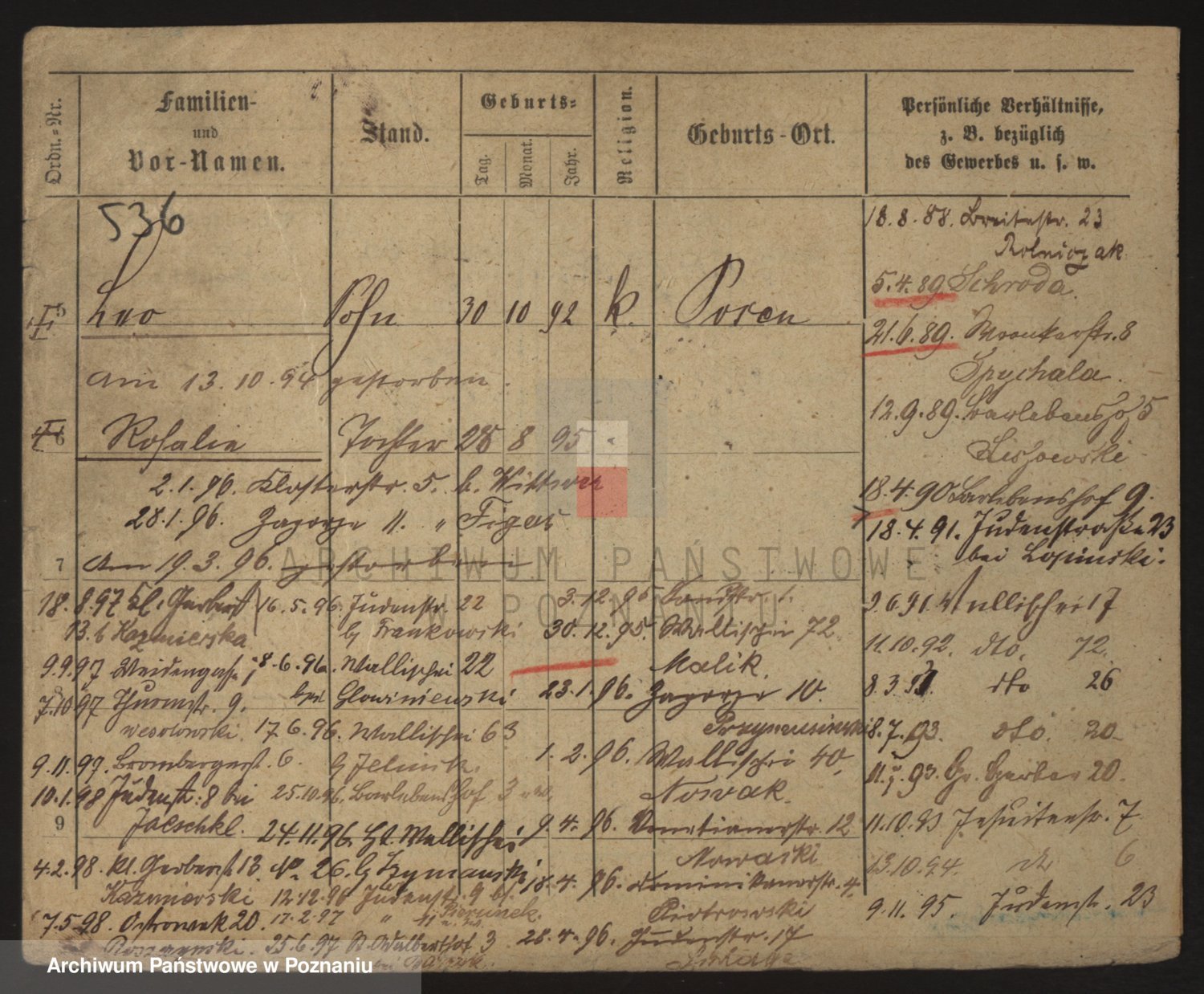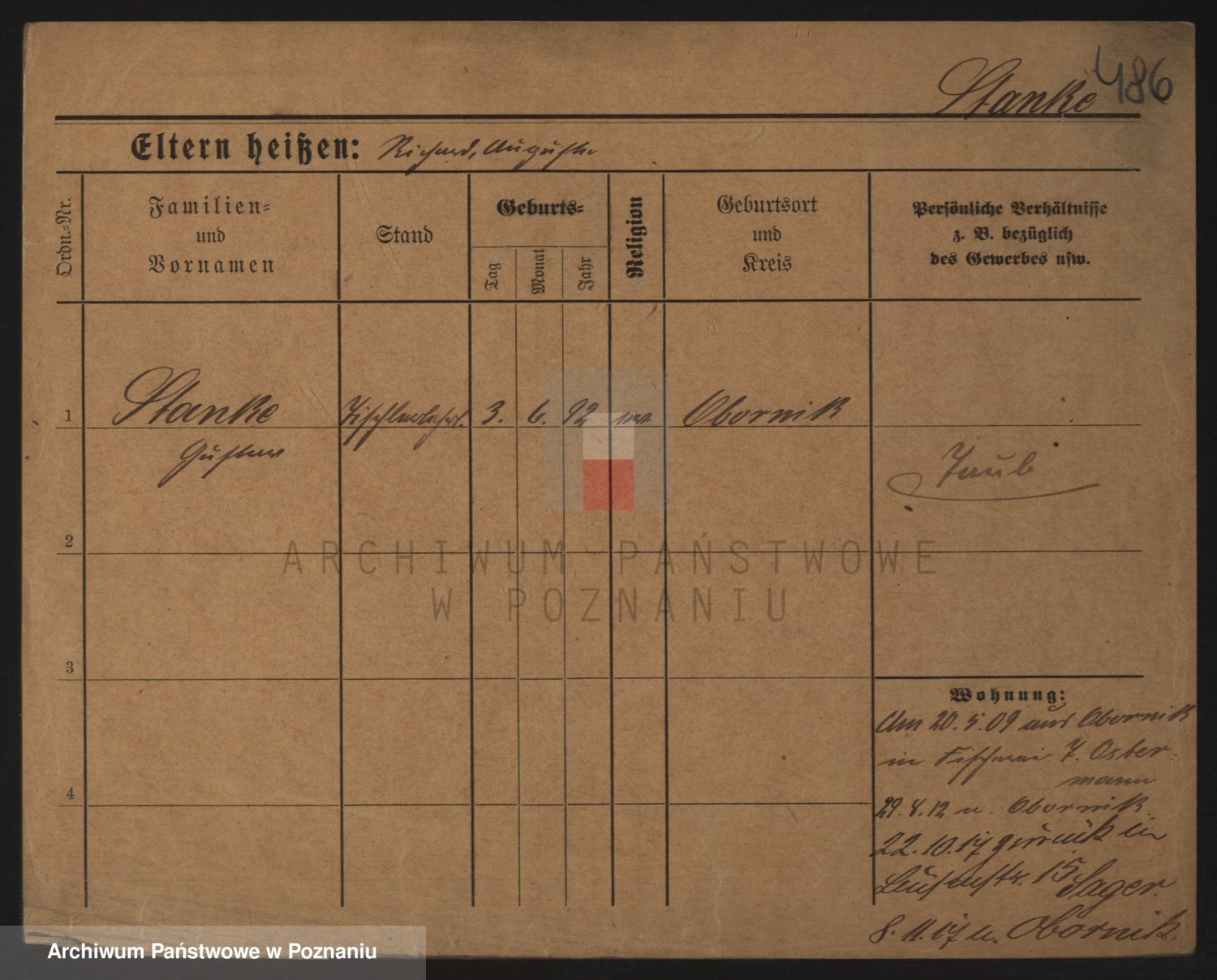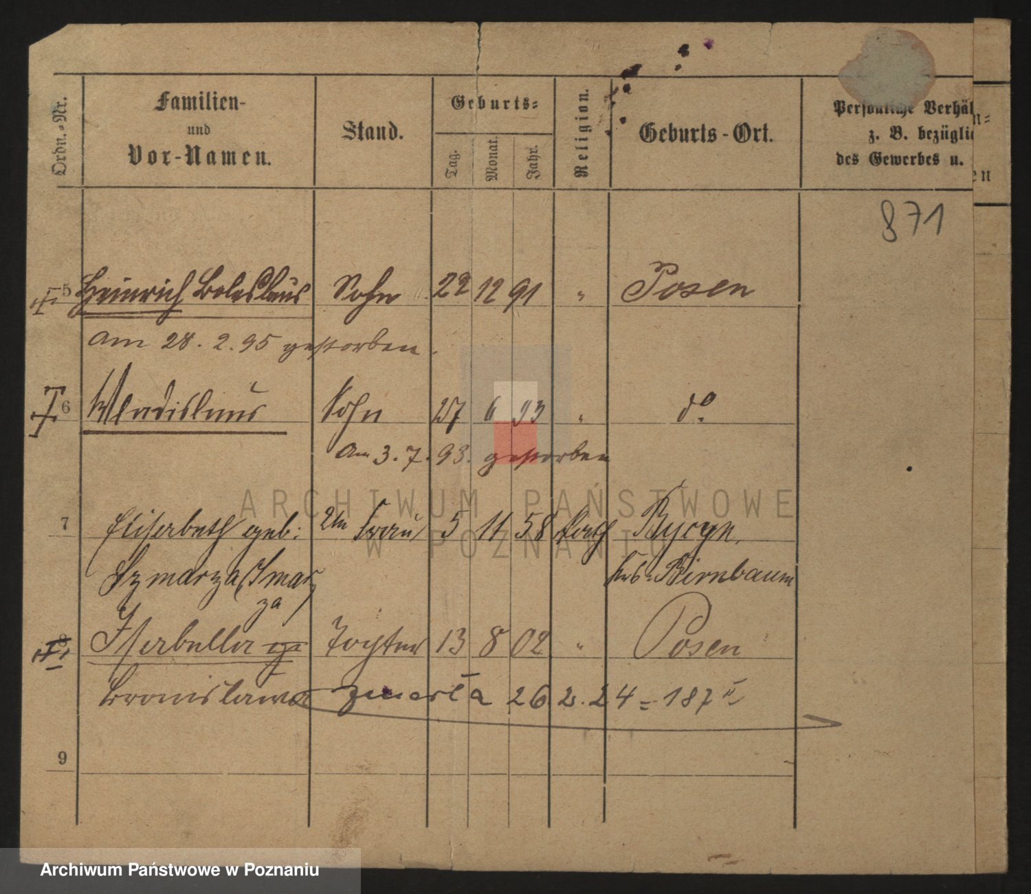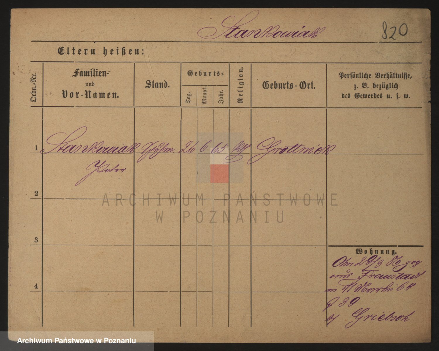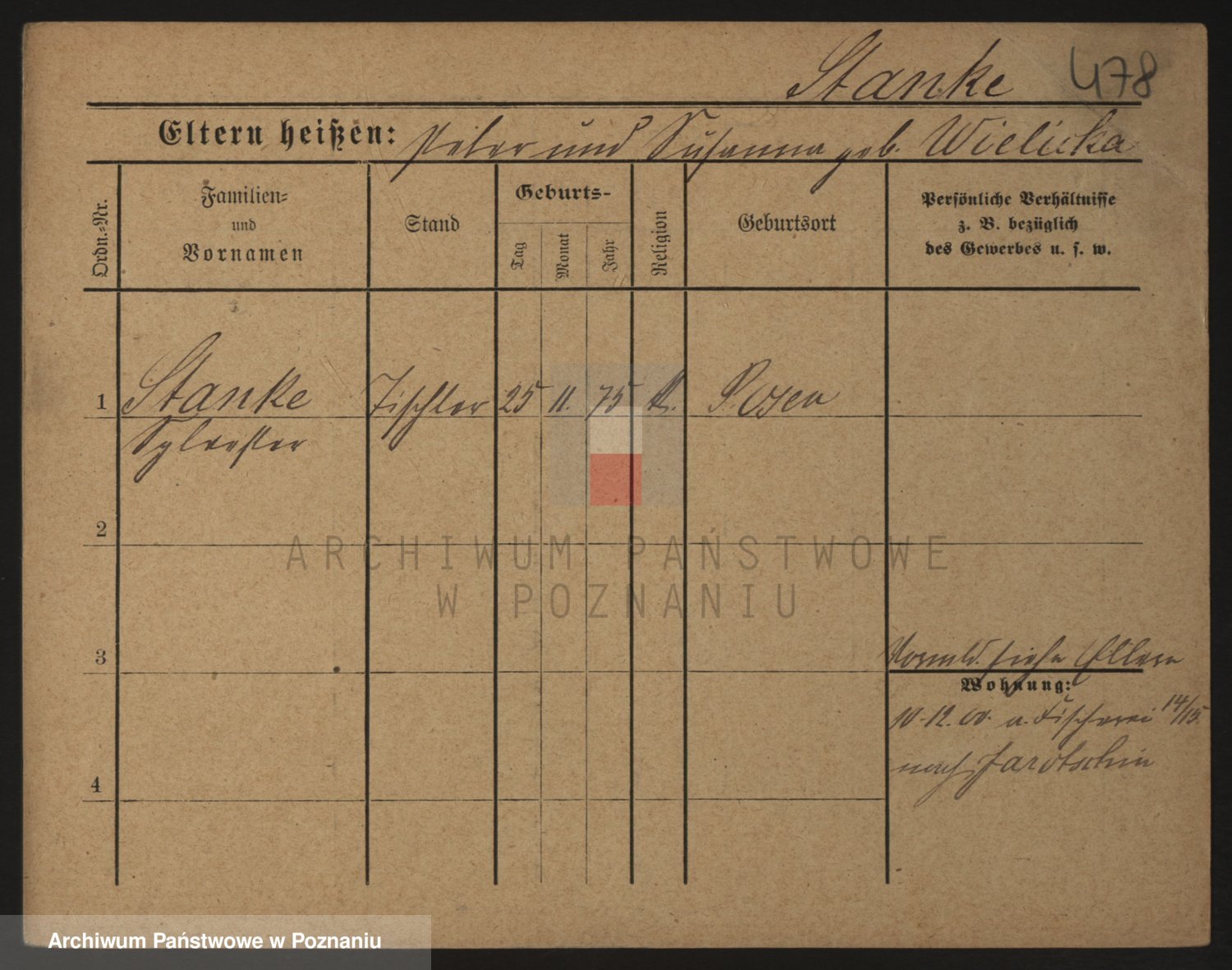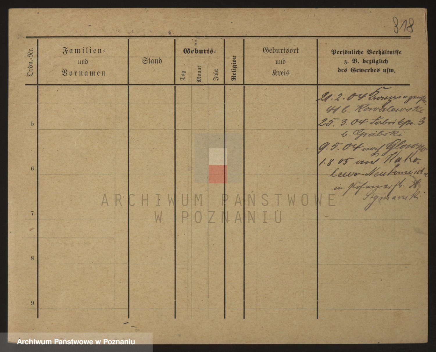 Podgląd karty osobowej dostępny jest po kliknięciu na nazwisko lub ikonkę karty. Można dokonywać powiększenia (ikony na górze) lub przechodzić między kolejnymi skanami (strzałki po bokach).