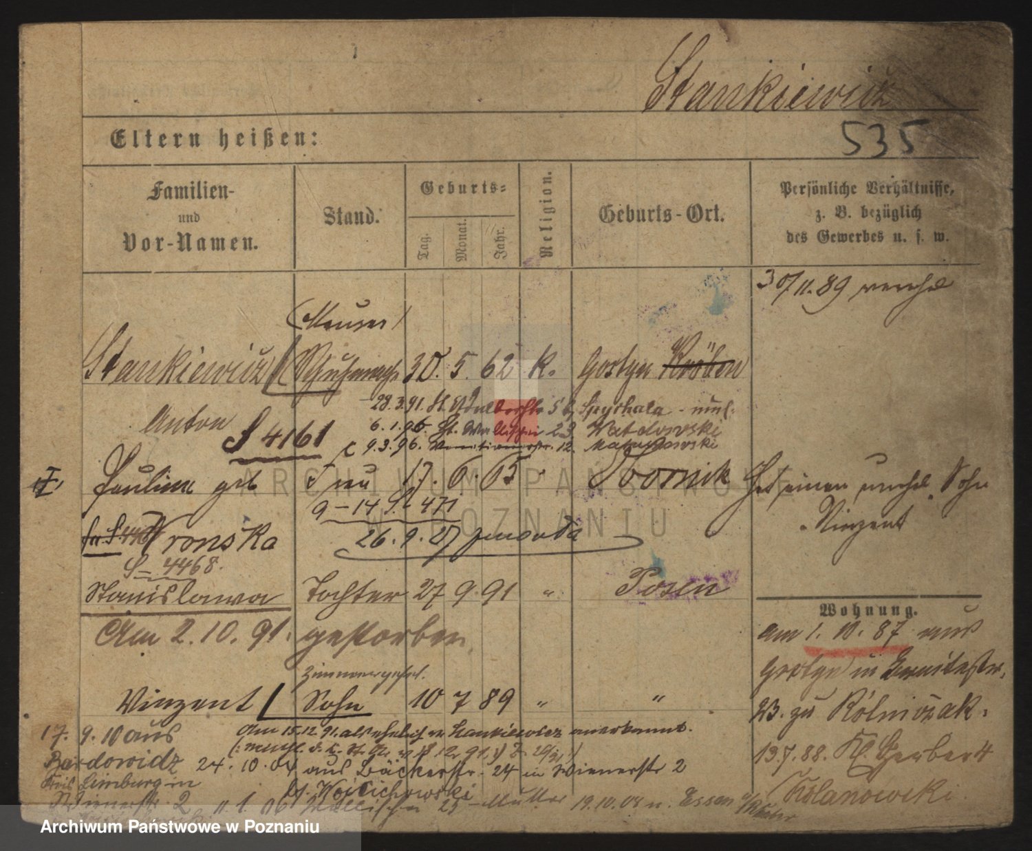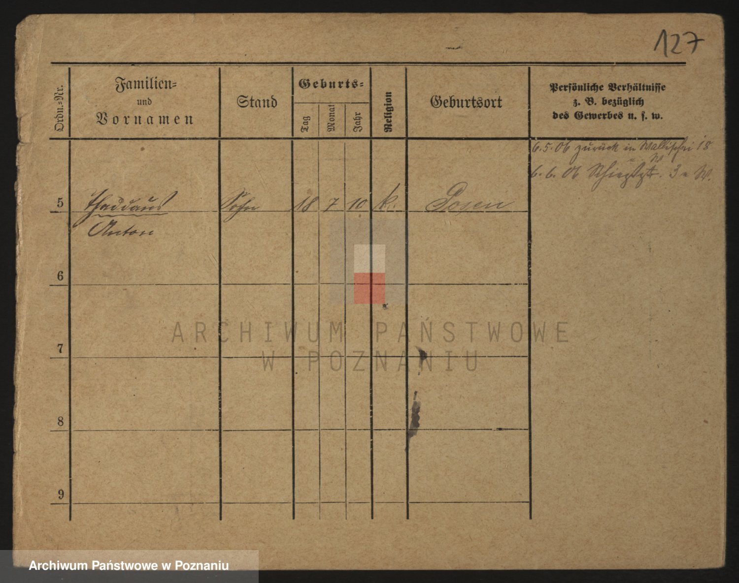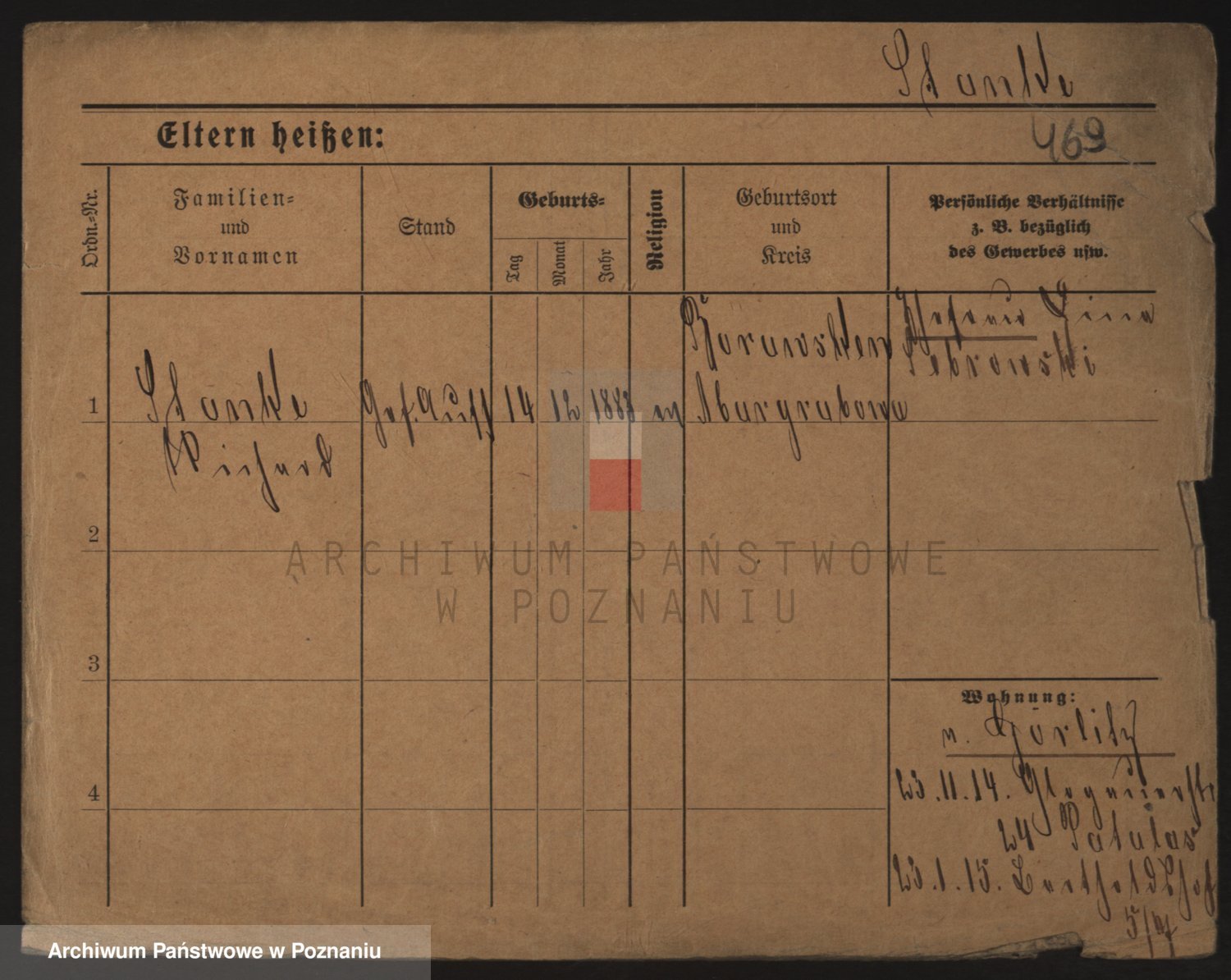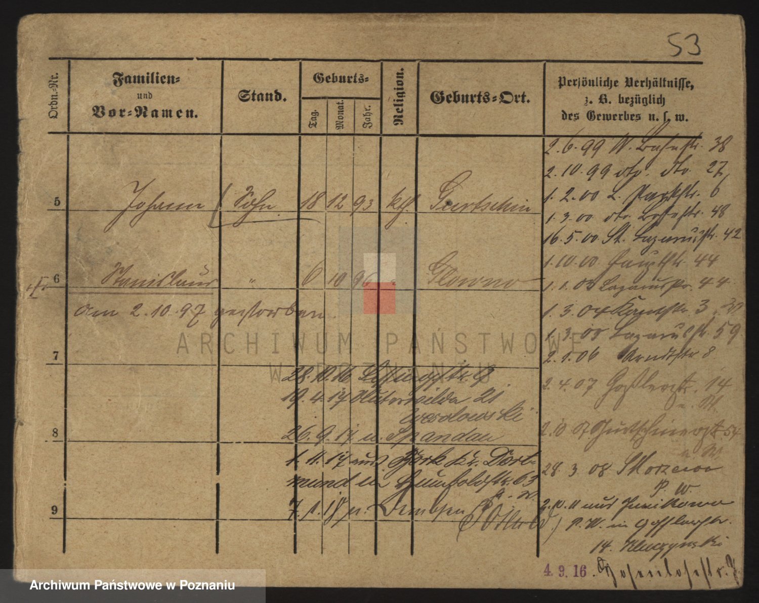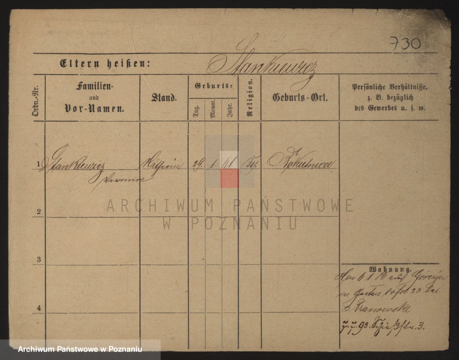 Podgląd karty osobowej dostępny jest po kliknięciu na nazwisko lub ikonkę karty. Można dokonywać powiększenia (ikony na górze) lub przechodzić między kolejnymi skanami (strzałki po bokach).
