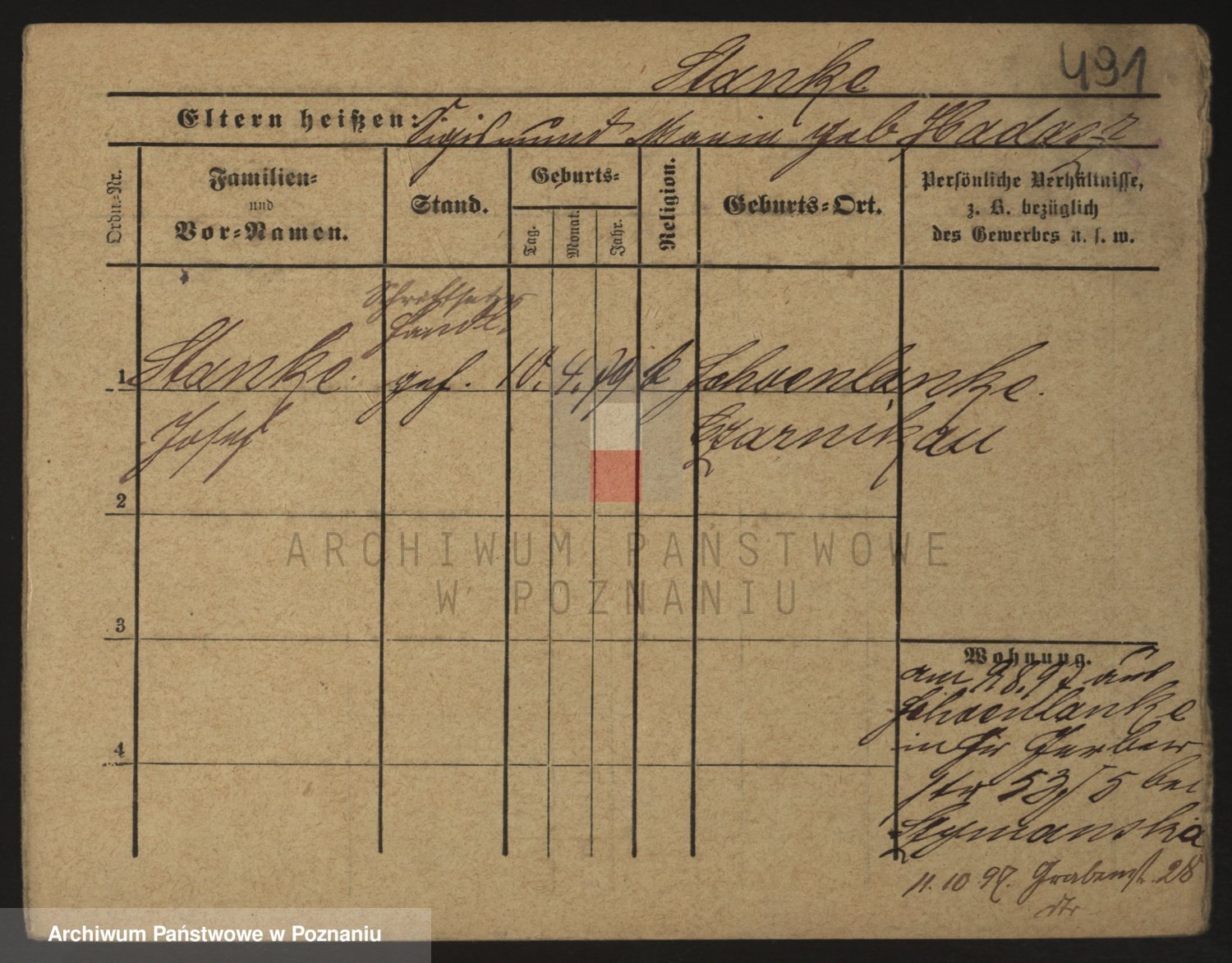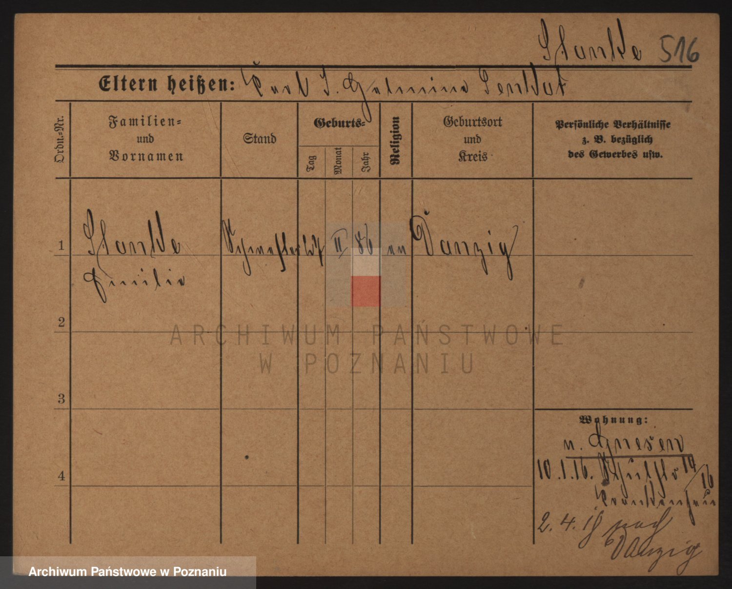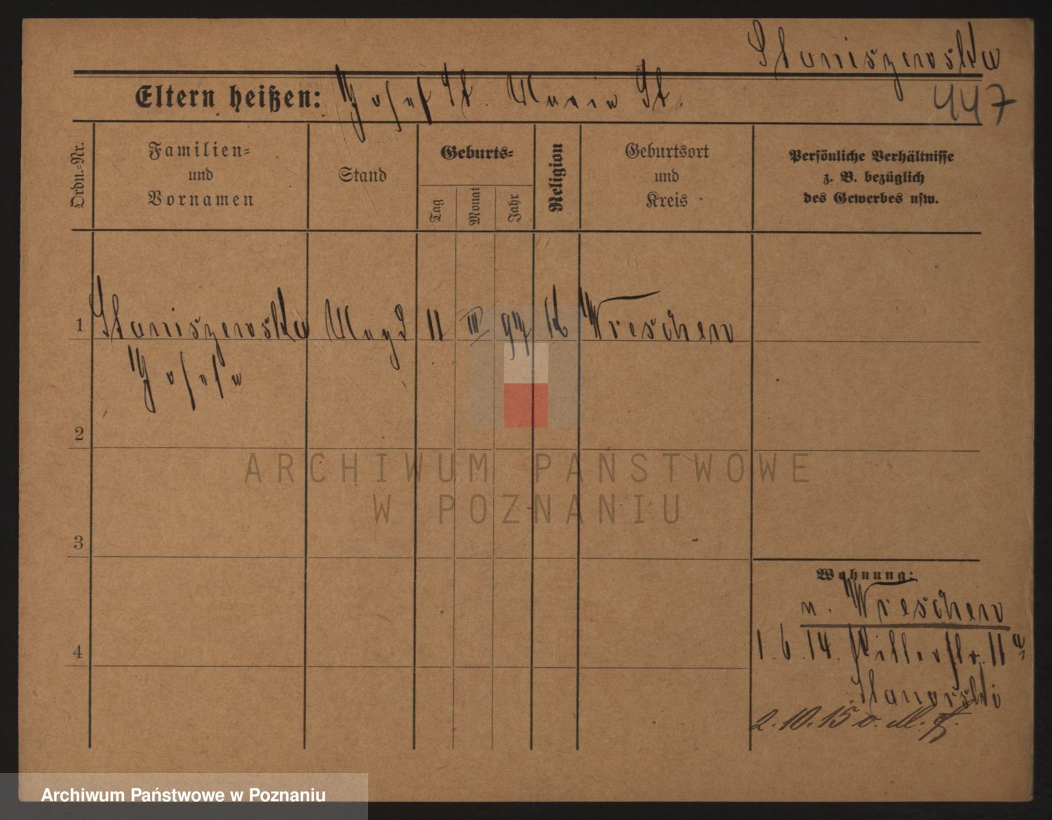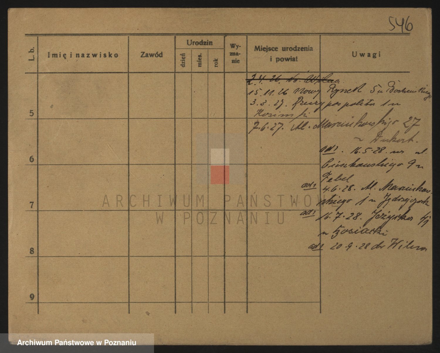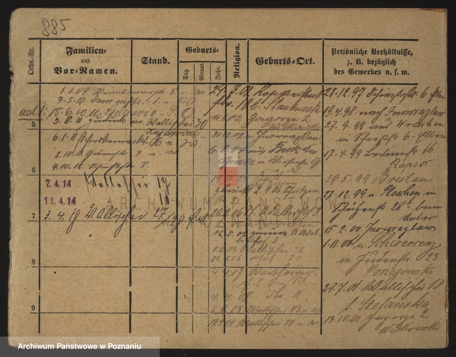 Podgląd karty osobowej dostępny jest po kliknięciu na nazwisko lub ikonkę karty. Można dokonywać powiększenia (ikony na górze) lub przechodzić między kolejnymi skanami (strzałki po bokach).