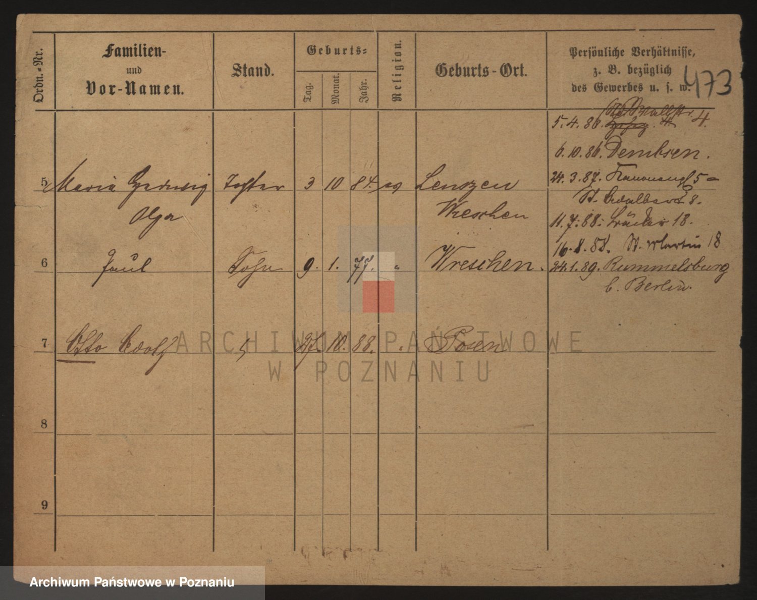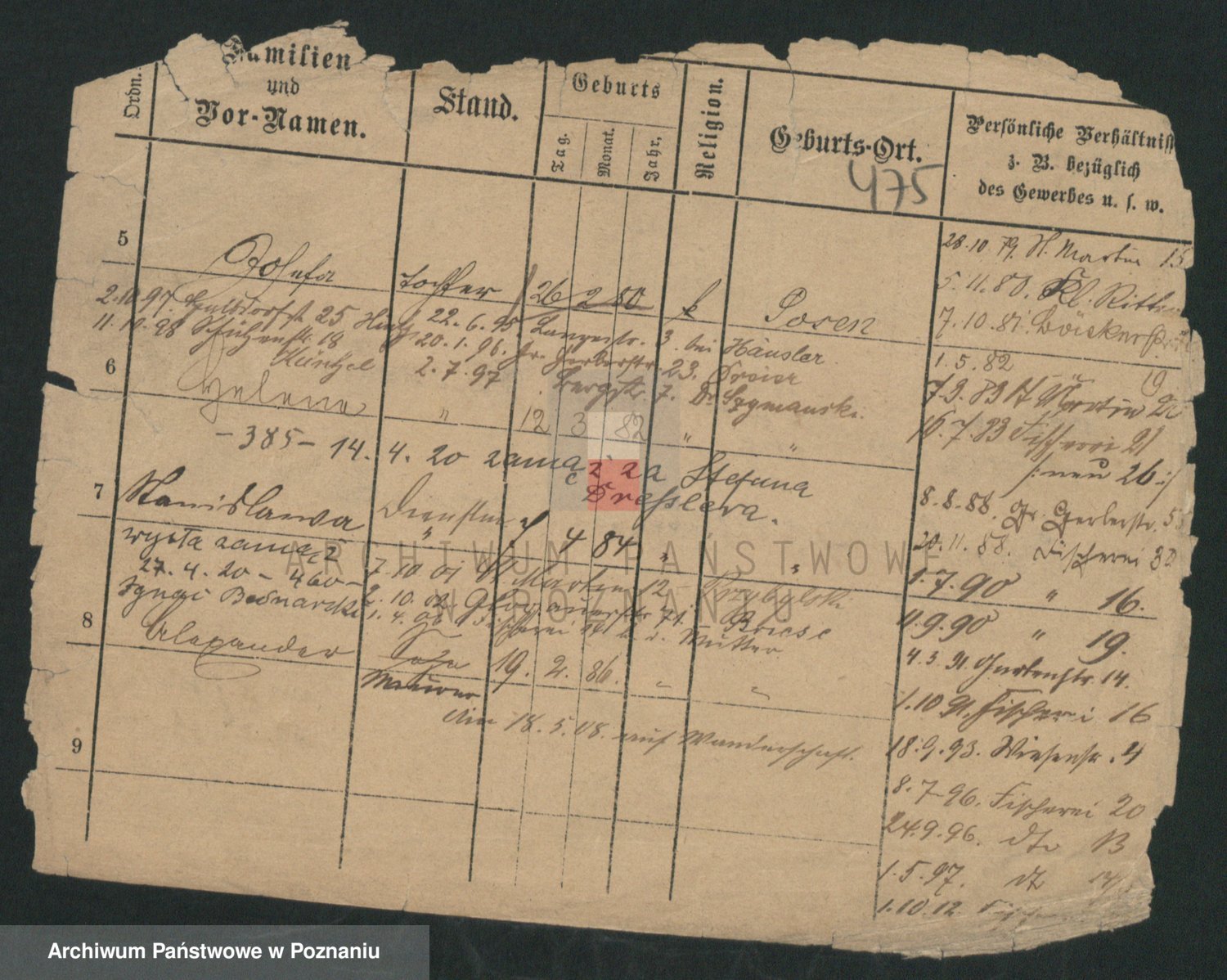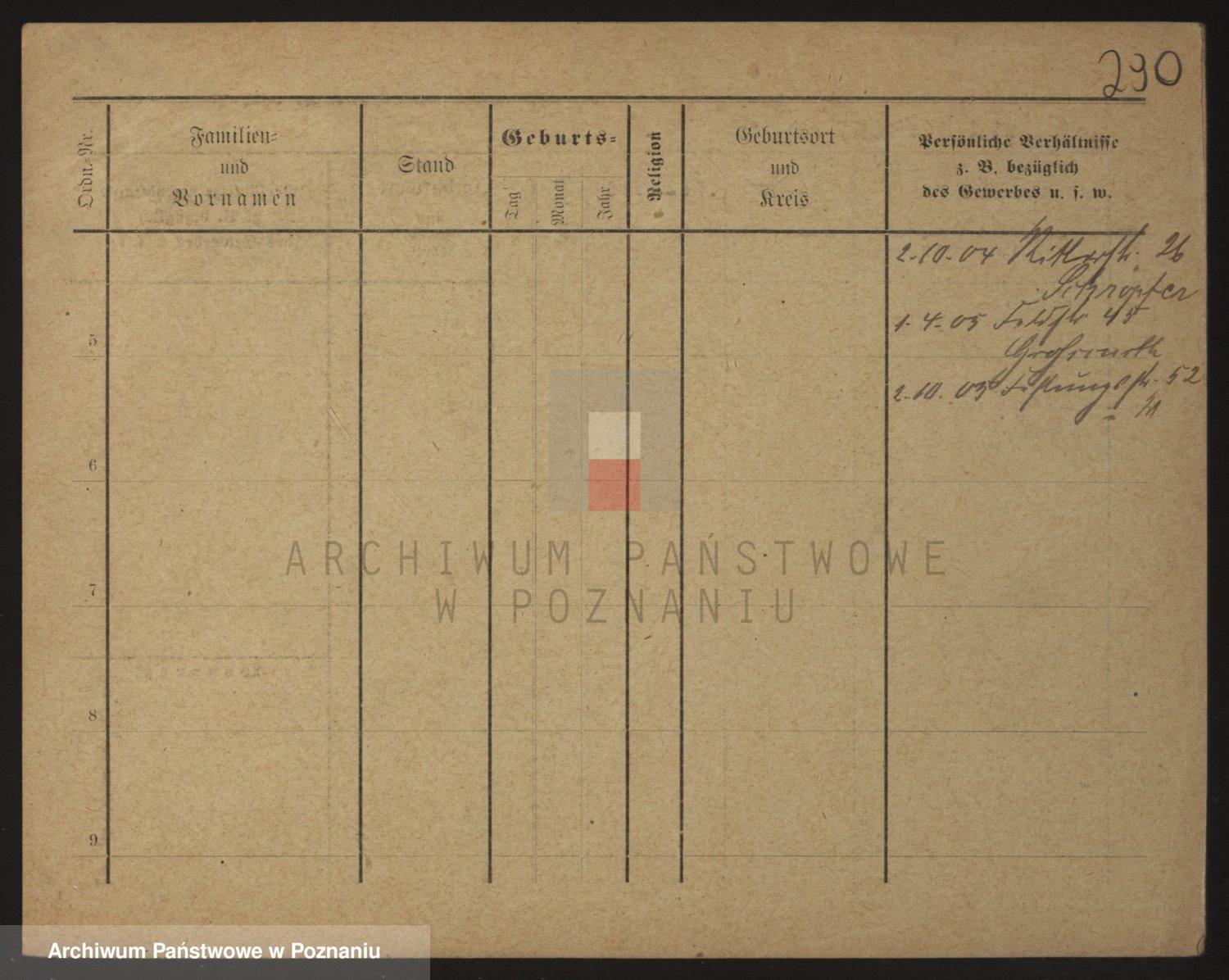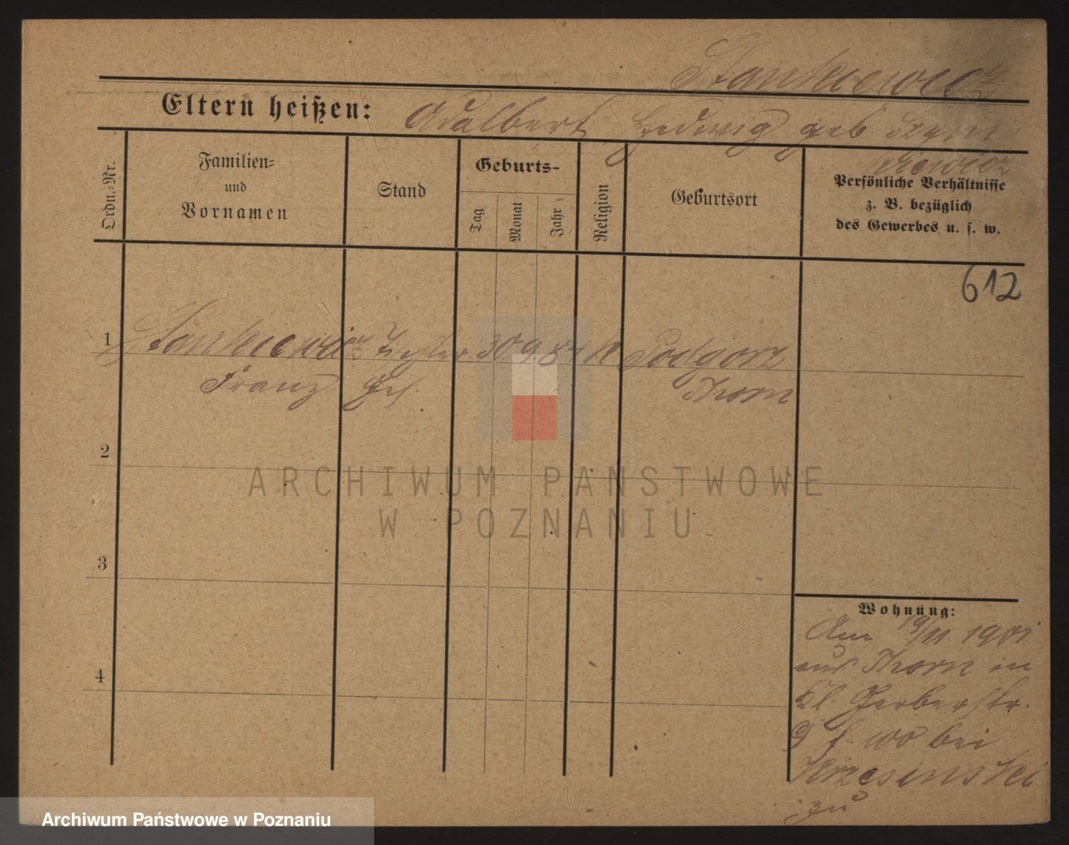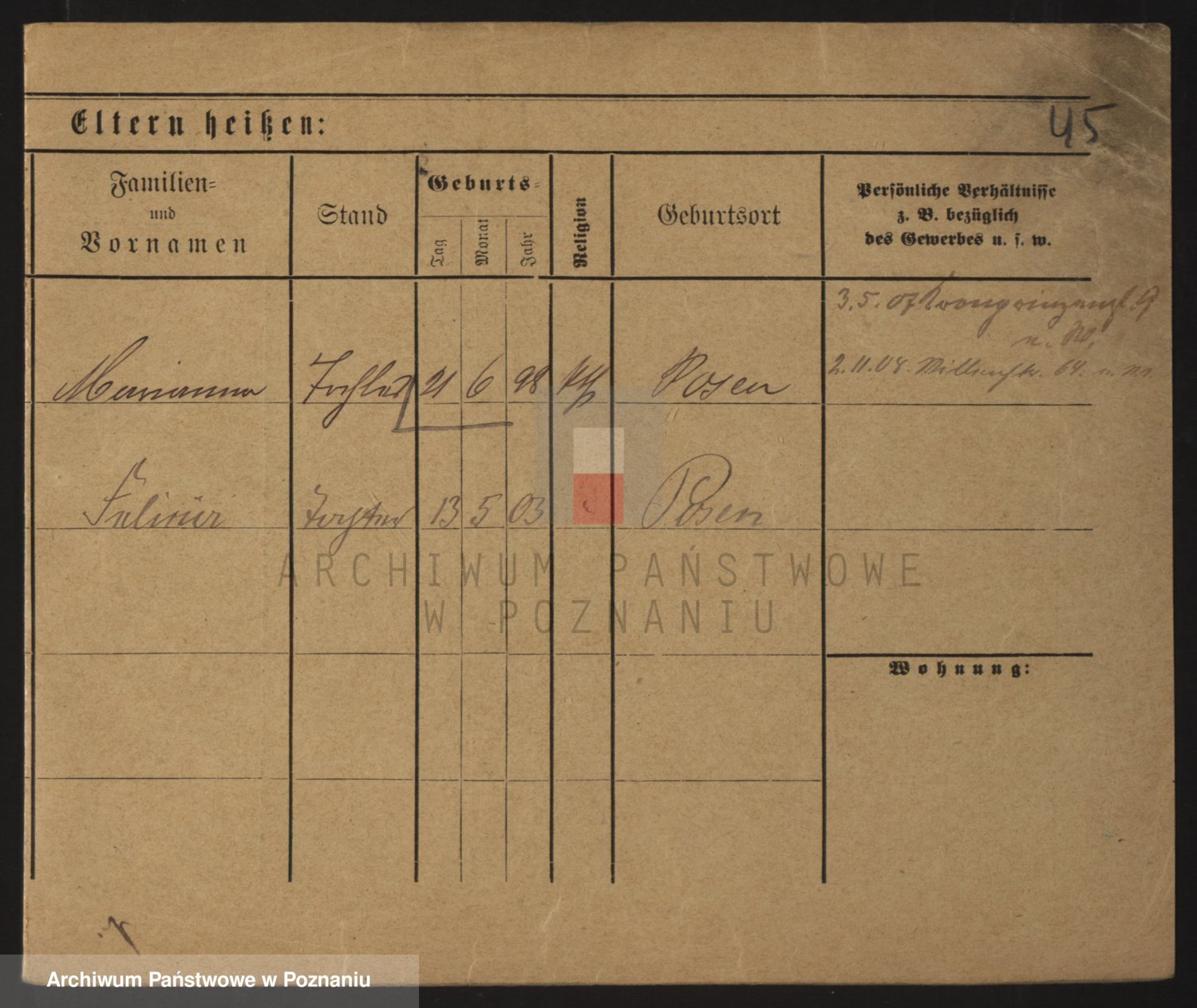 Podgląd karty osobowej dostępny jest po kliknięciu na nazwisko lub ikonkę karty. Można dokonywać powiększenia (ikony na górze) lub przechodzić między kolejnymi skanami (strzałki po bokach).
