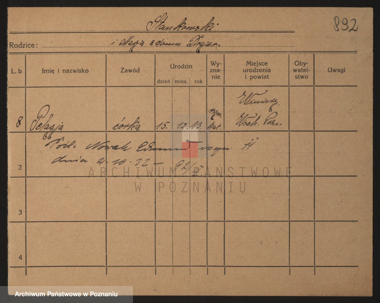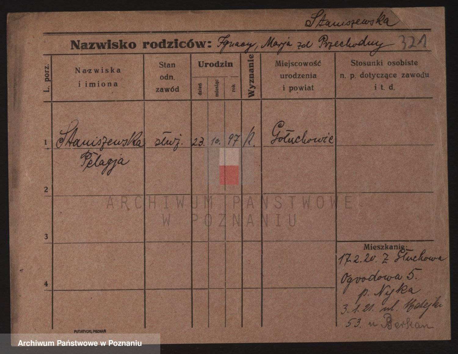 Staniszewski zd. Szymkowiak, Pelagja