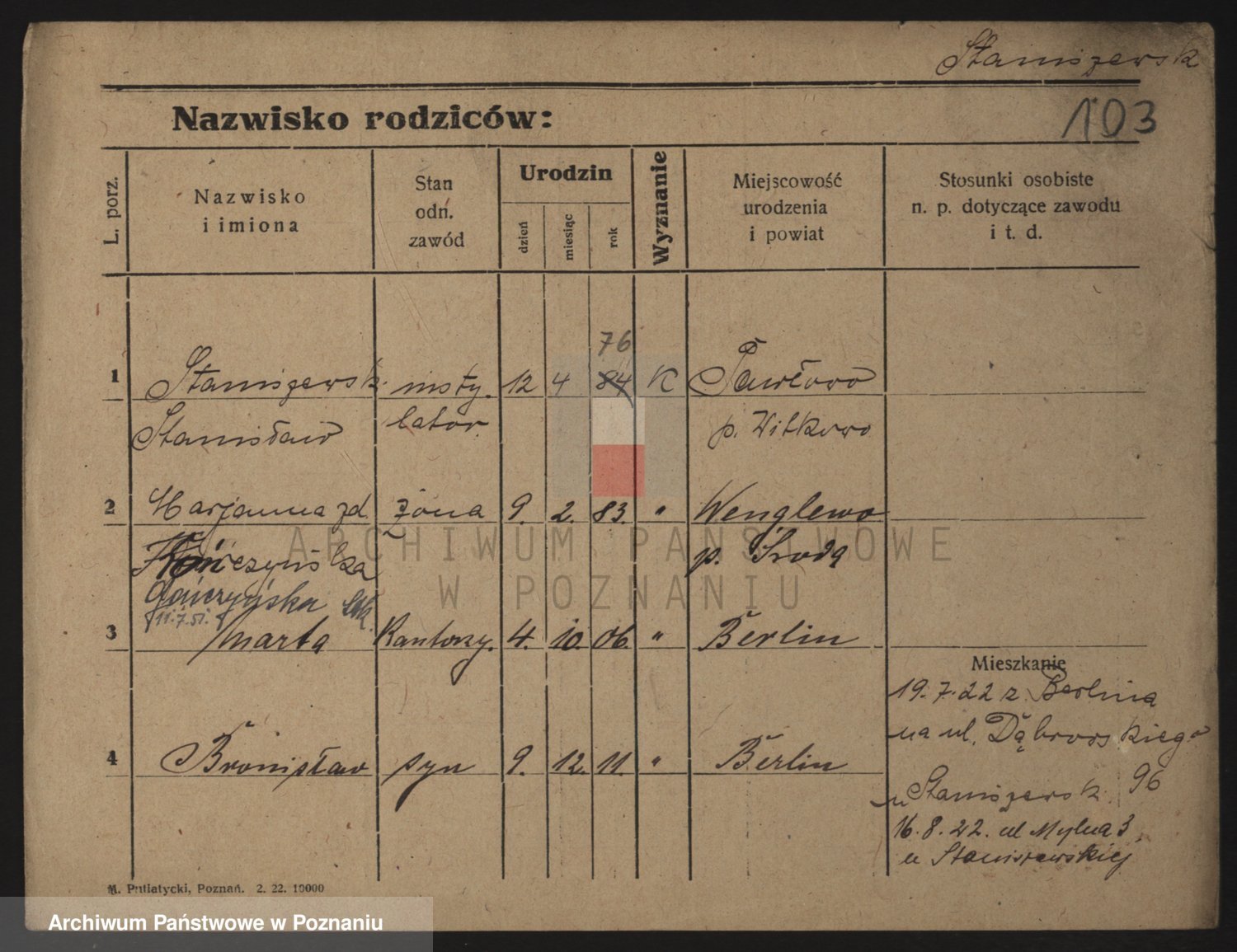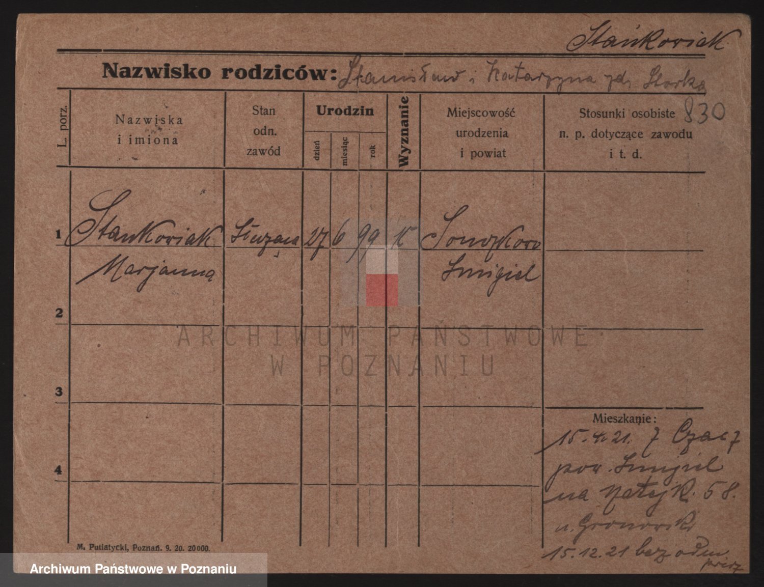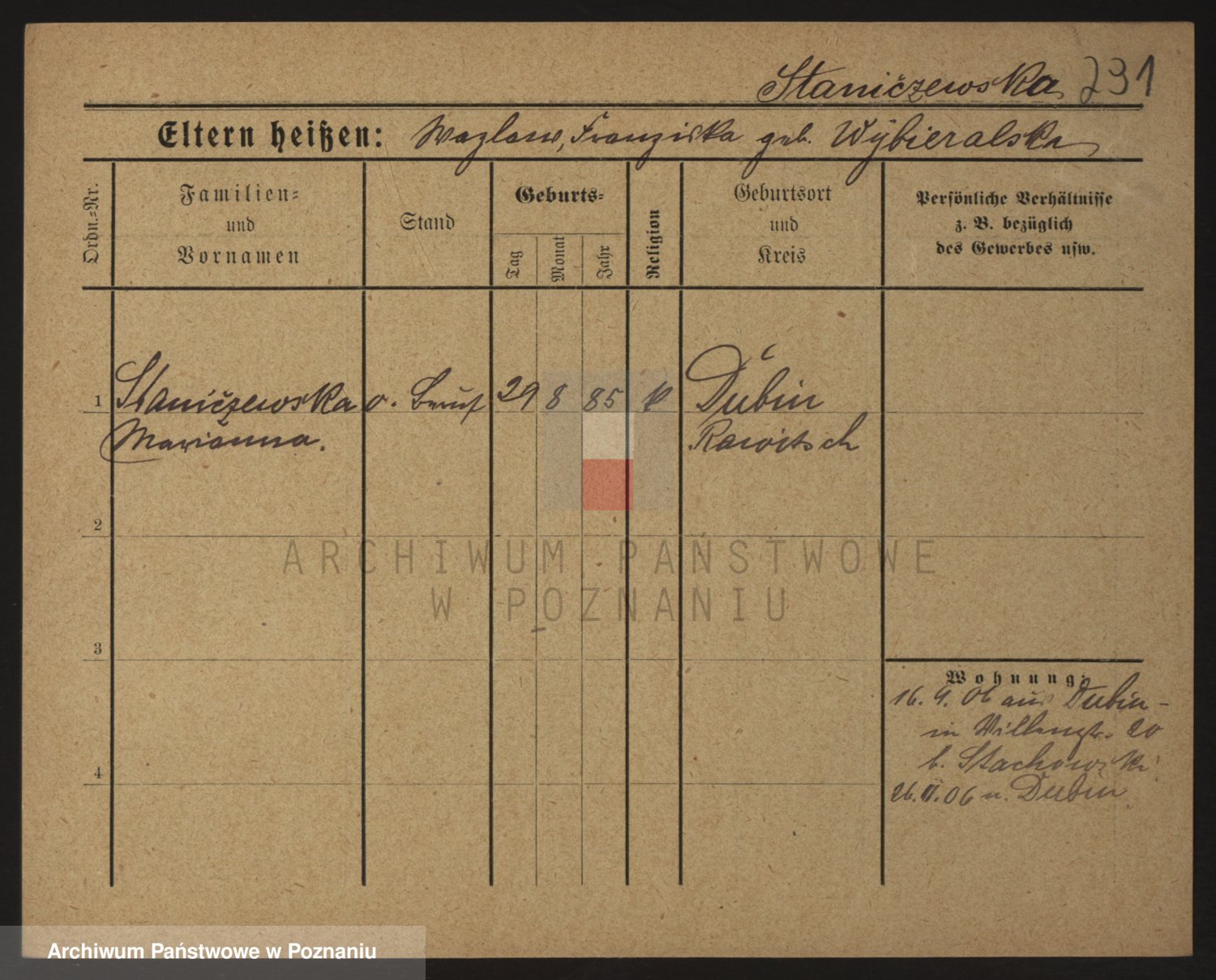 Staniszewski zd. Genzicka, Marja