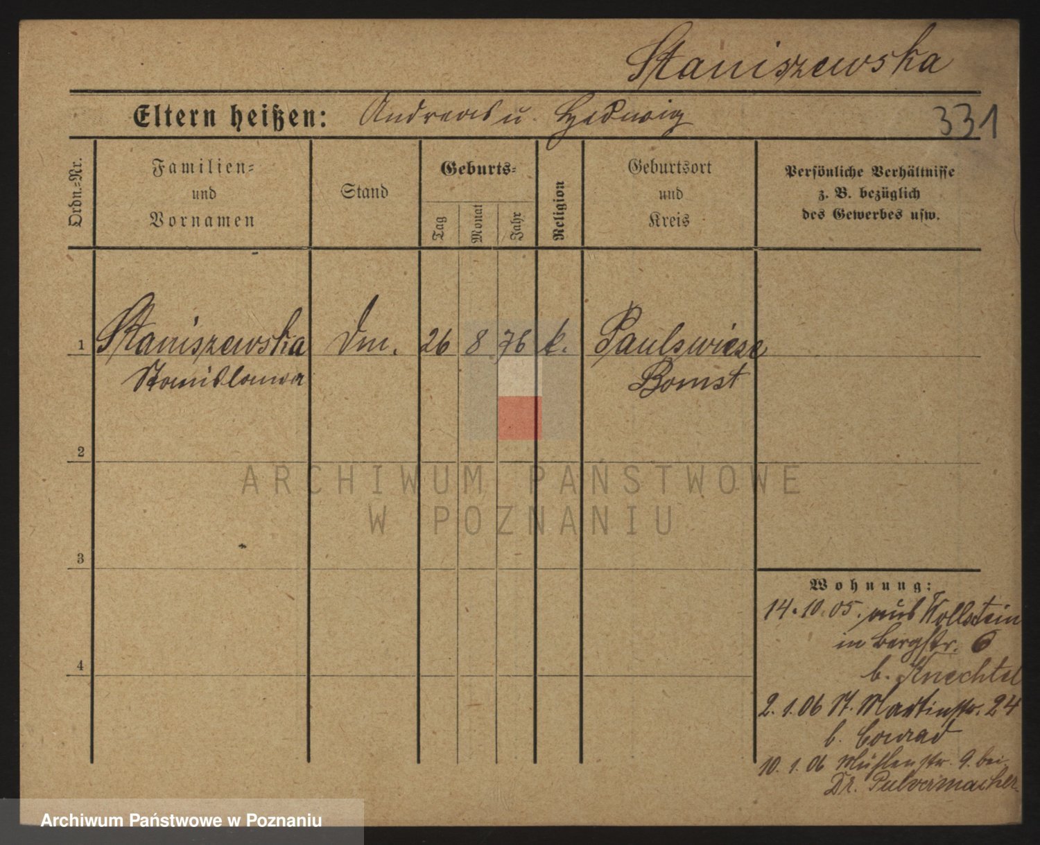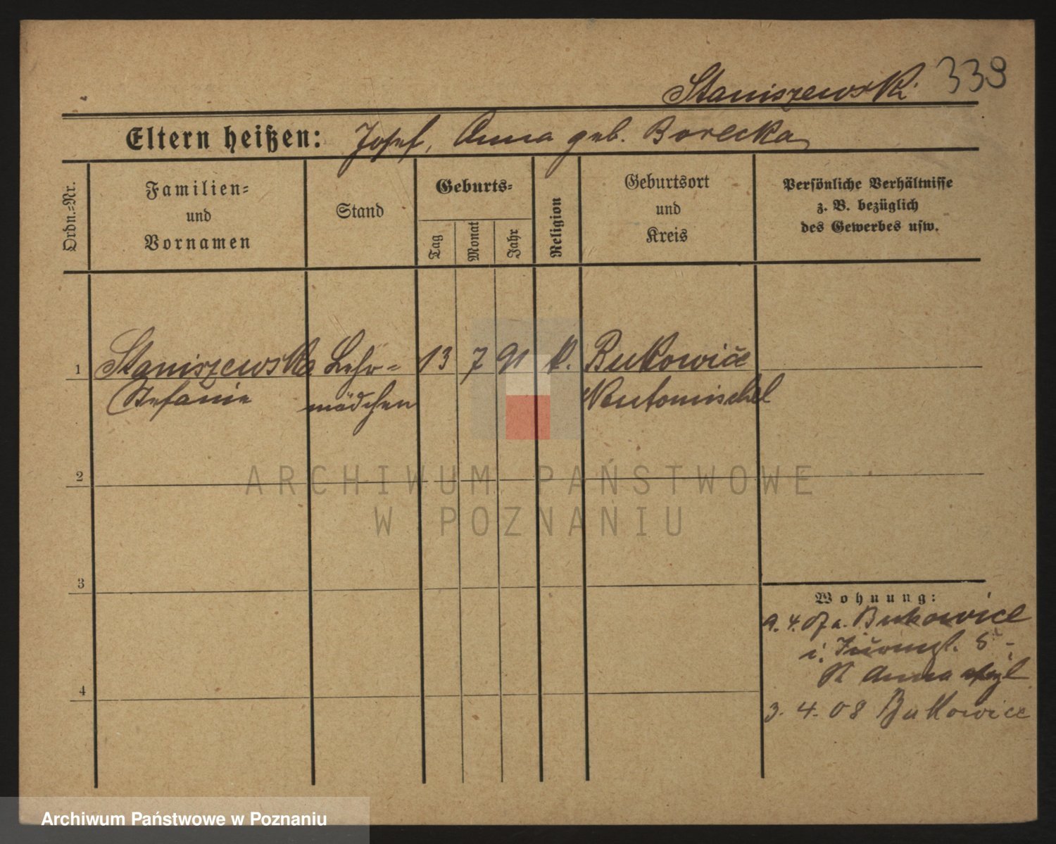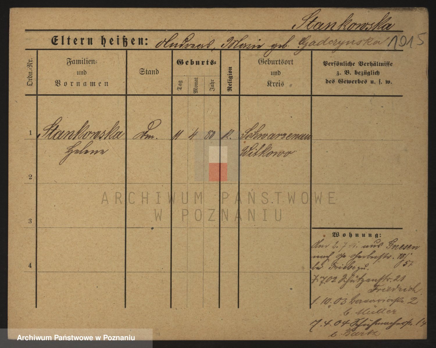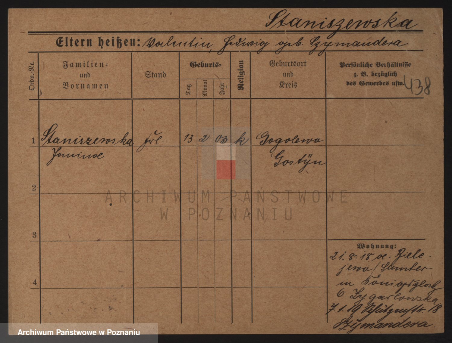 Staniszewski zd. Gawronska, Franziska