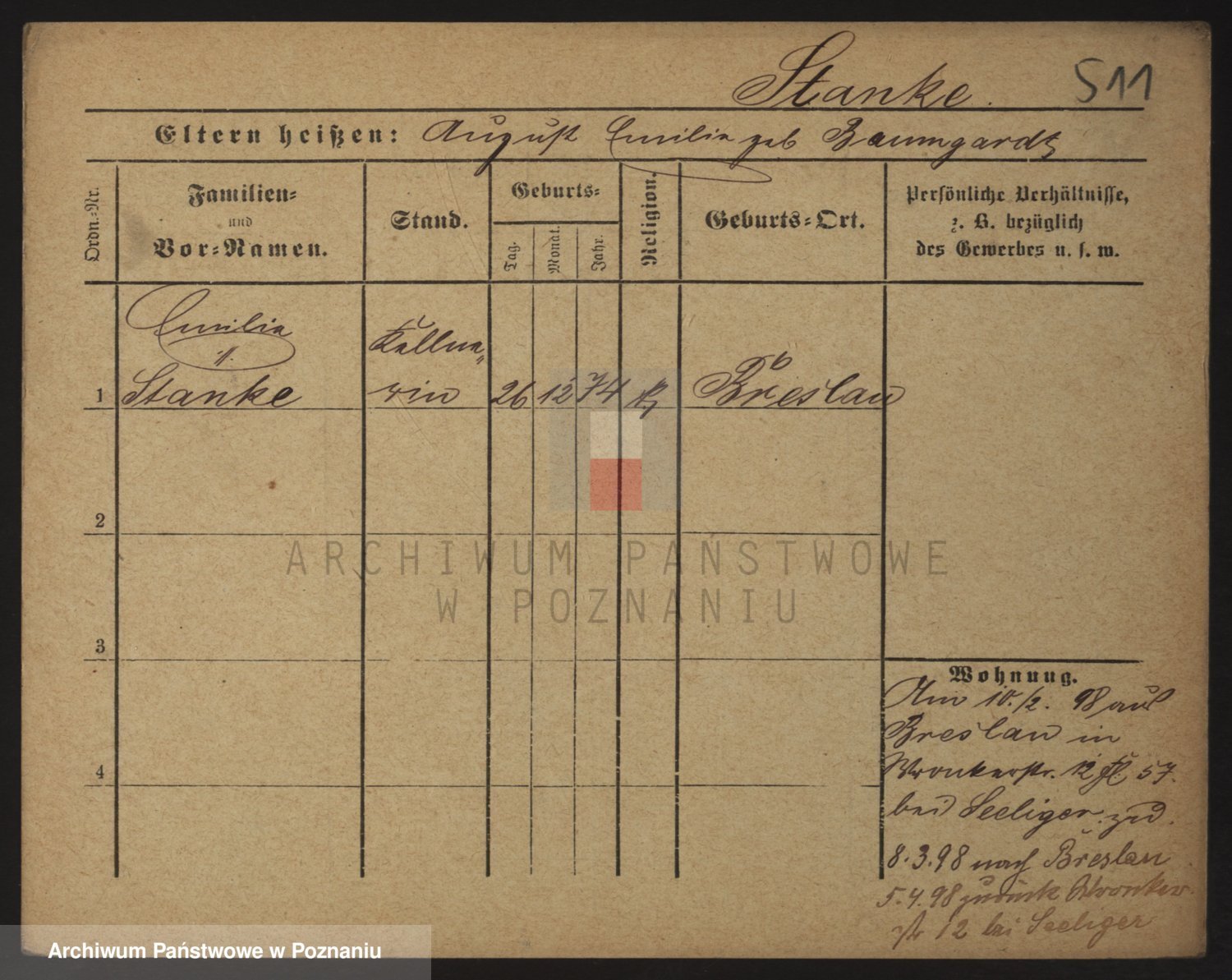 Staniszewski zd. Bromska, Cäcilie