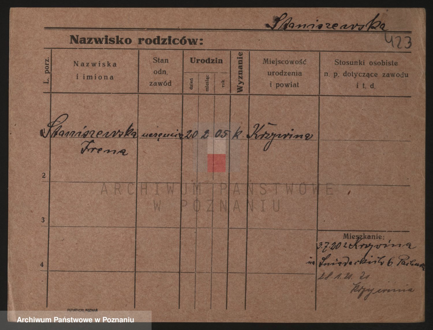 Staniszewski zd. Kaniewska, Irena Zofja