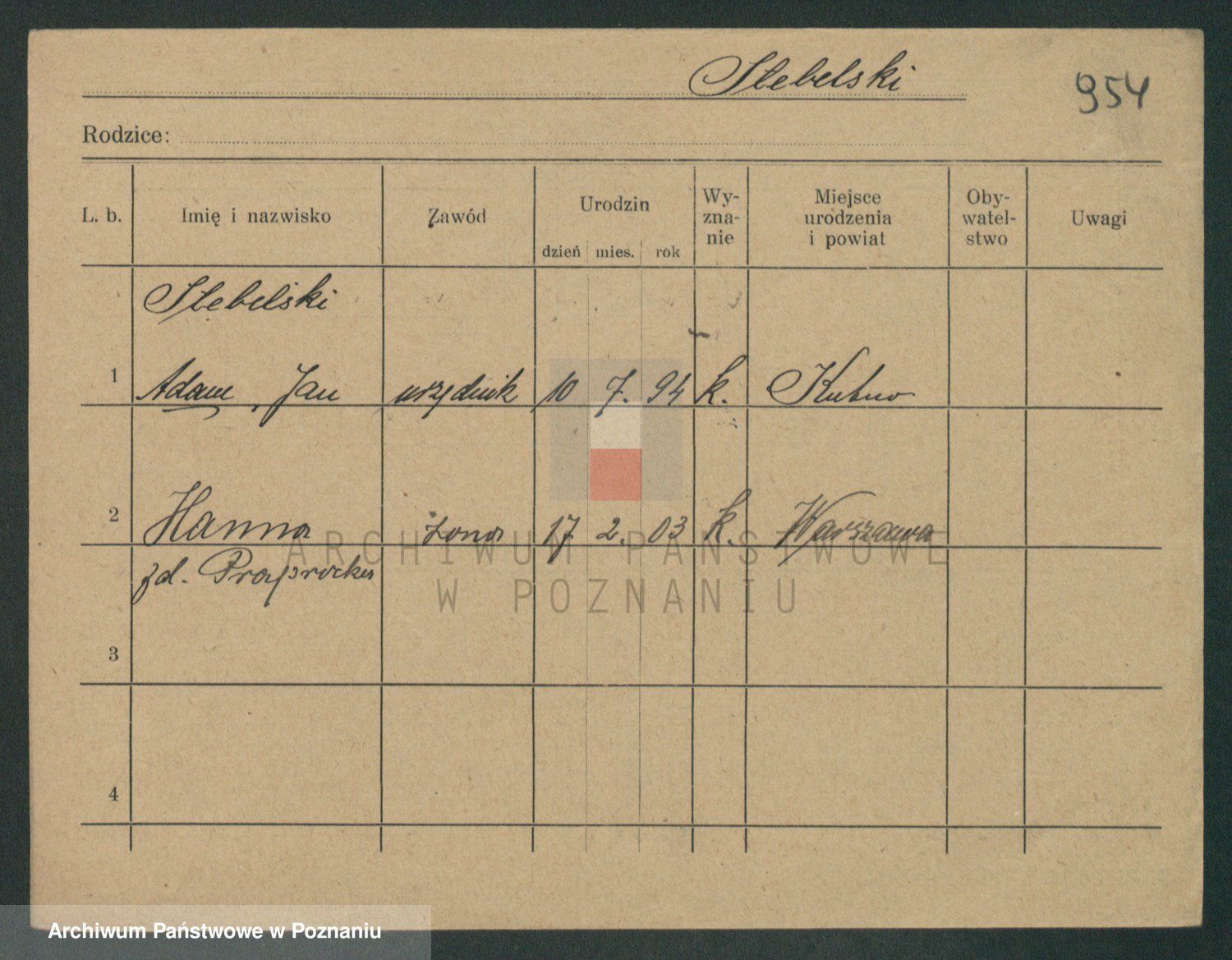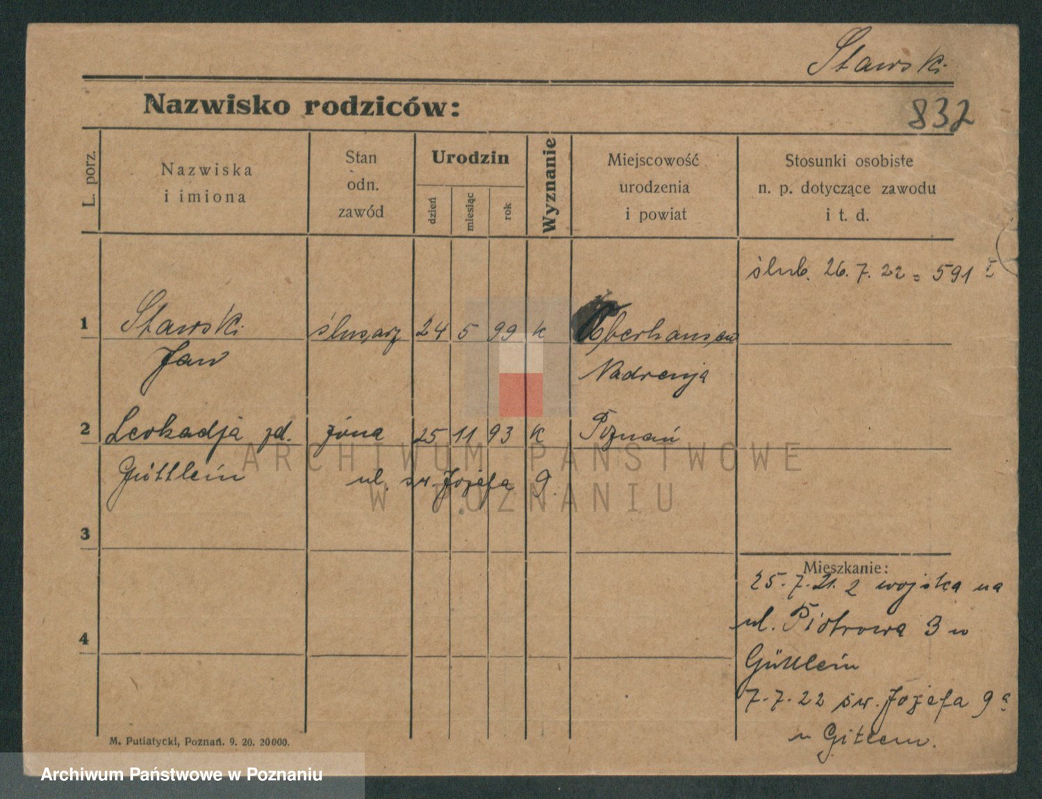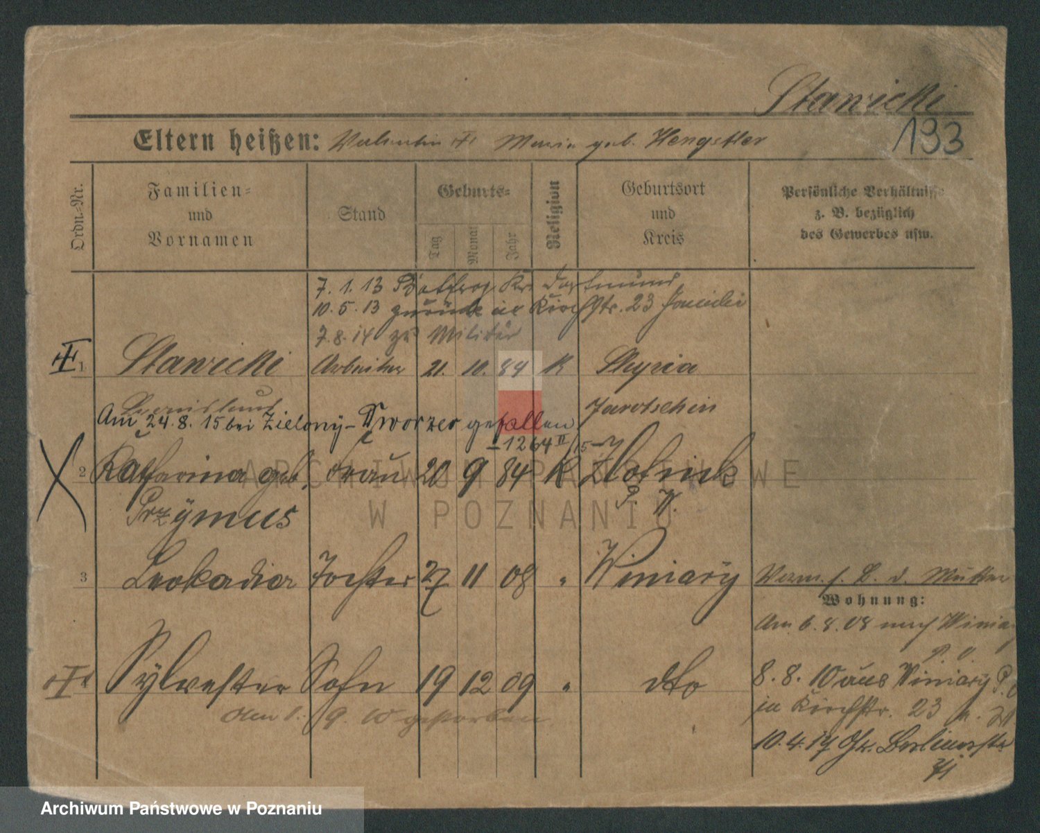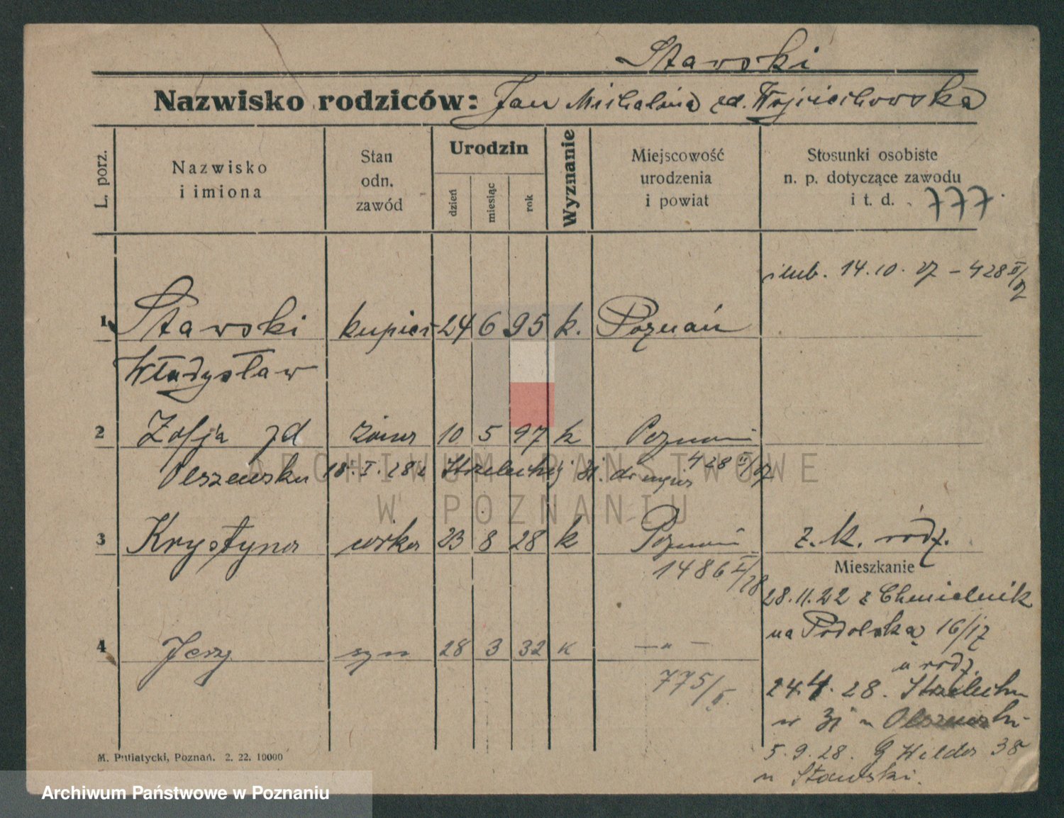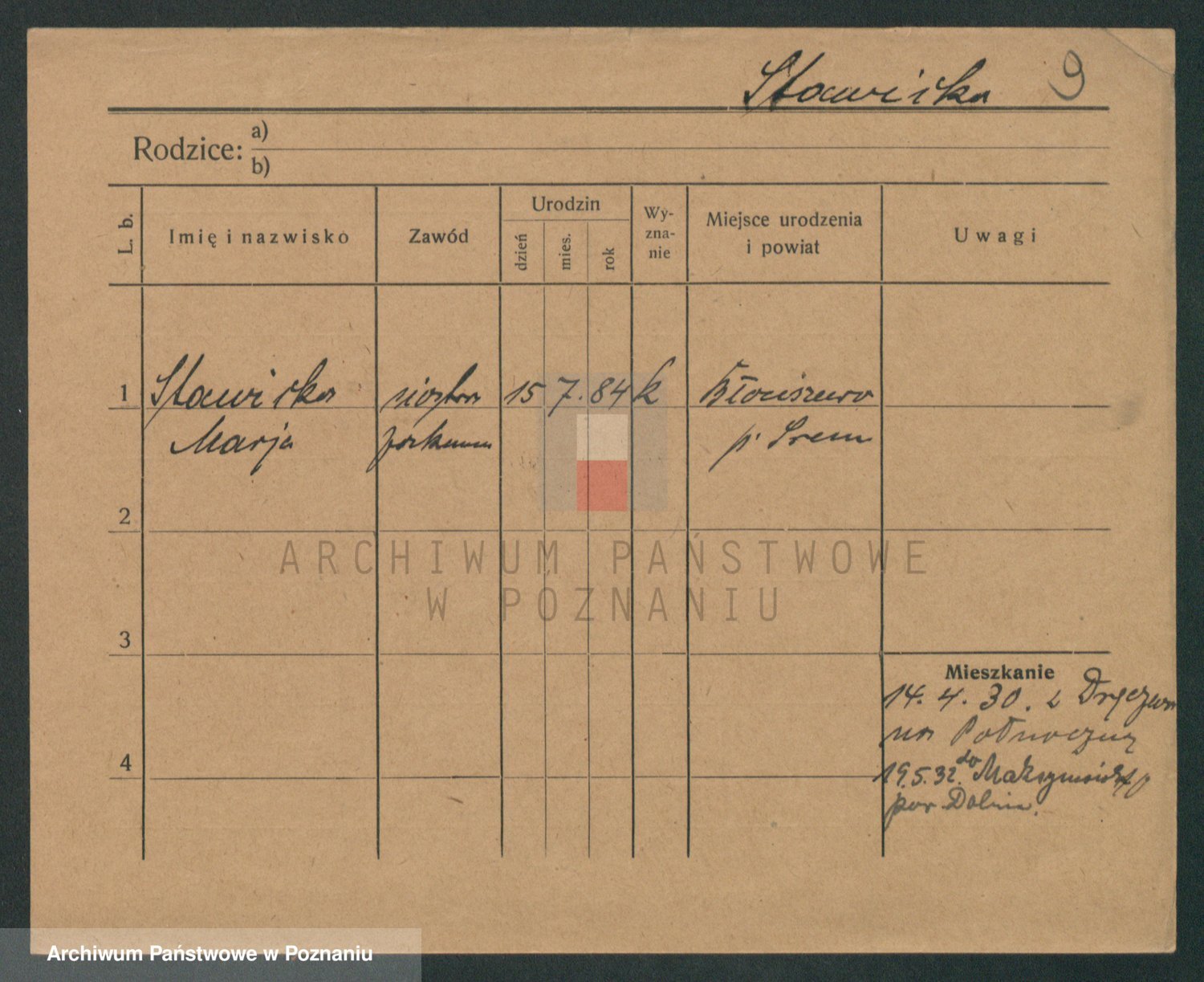 Podgląd karty osobowej dostępny jest po kliknięciu na nazwisko lub ikonkę karty. Można dokonywać powiększenia (ikony na górze) lub przechodzić między kolejnymi skanami (strzałki po bokach).