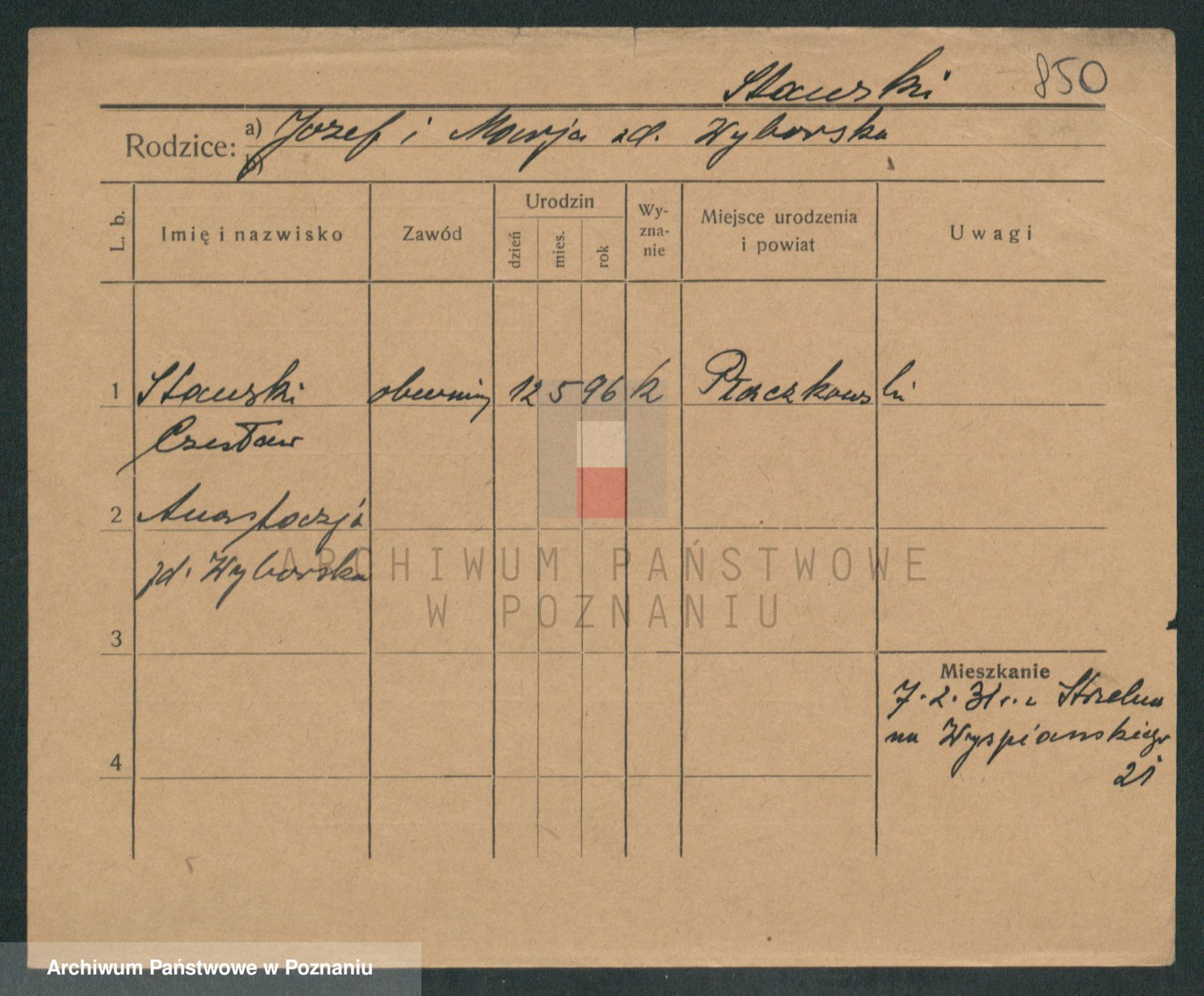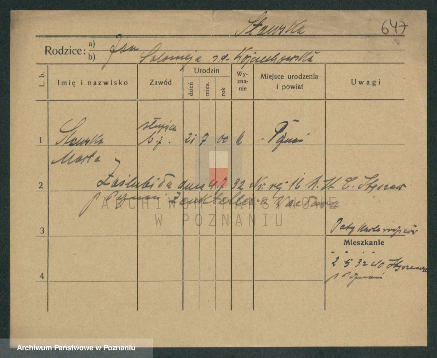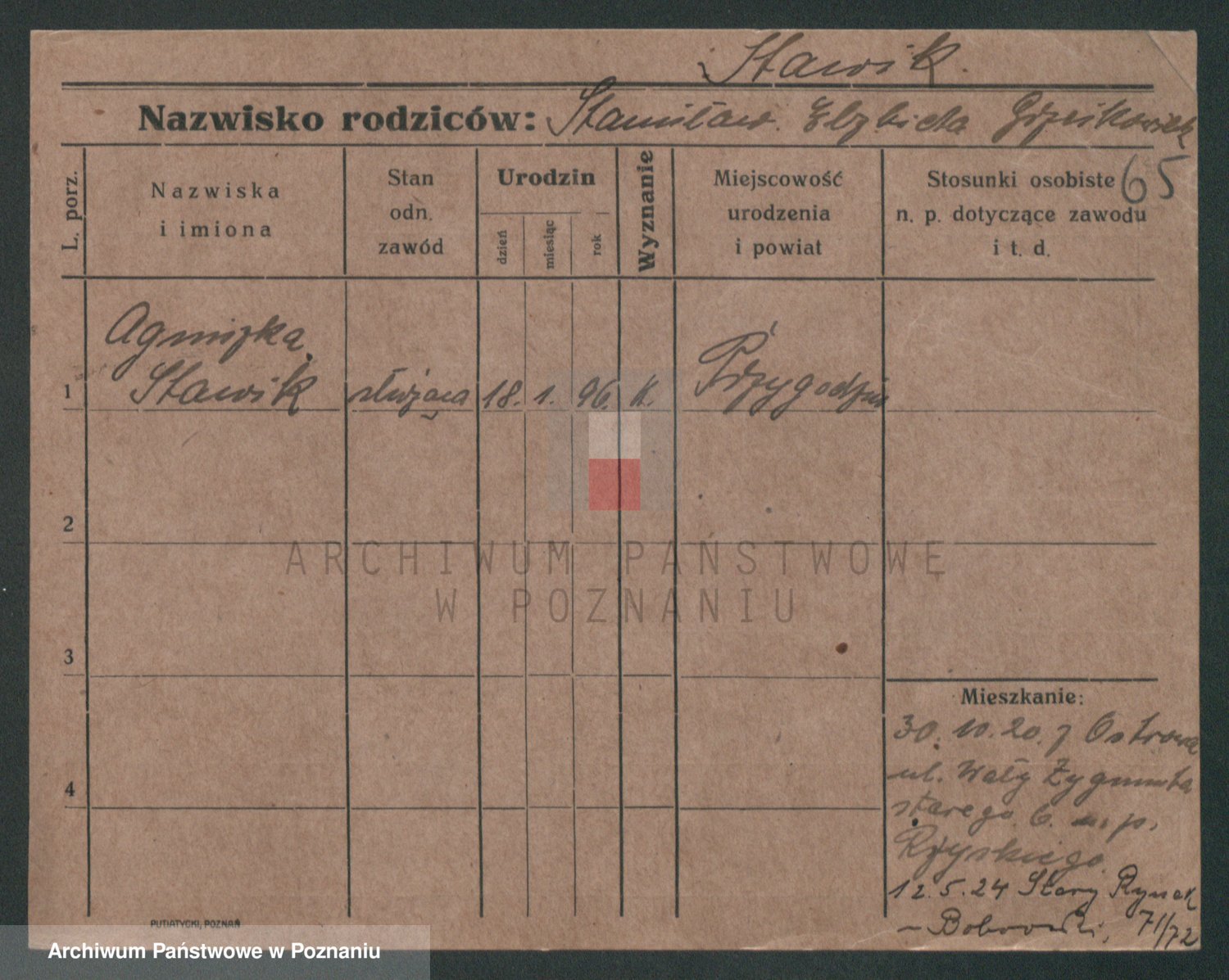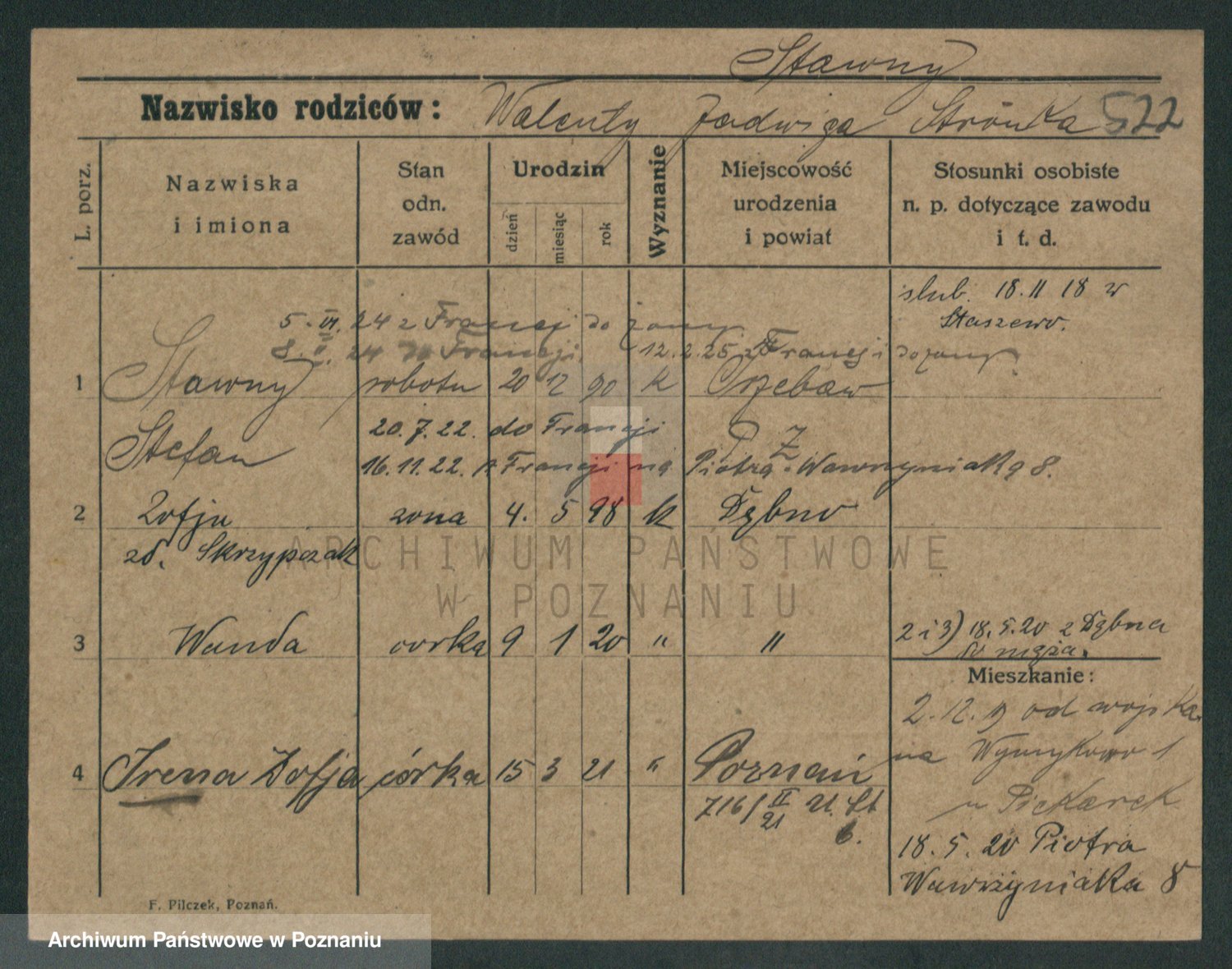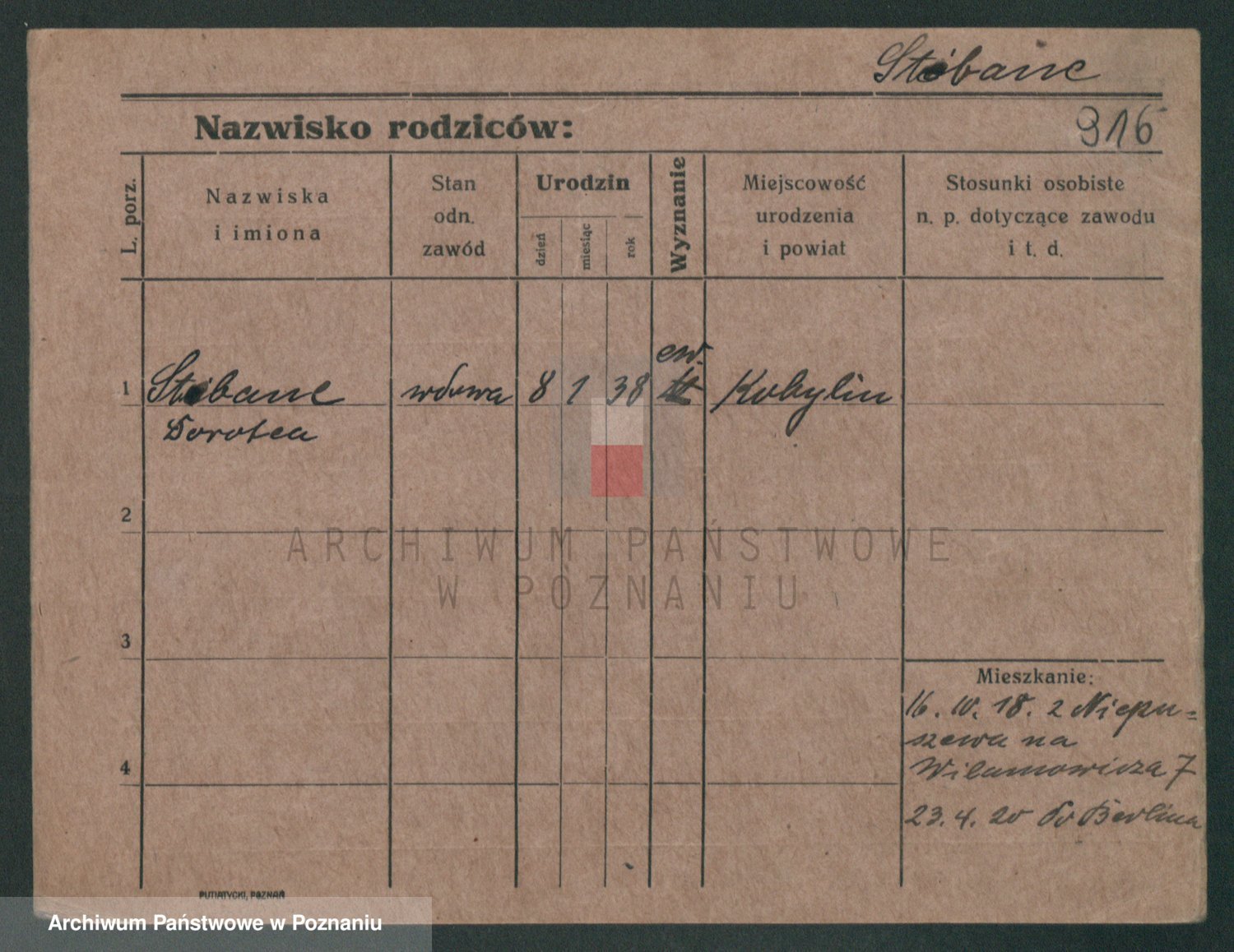 Podgląd karty osobowej dostępny jest po kliknięciu na nazwisko lub ikonkę karty. Można dokonywać powiększenia (ikony na górze) lub przechodzić między kolejnymi skanami (strzałki po bokach).