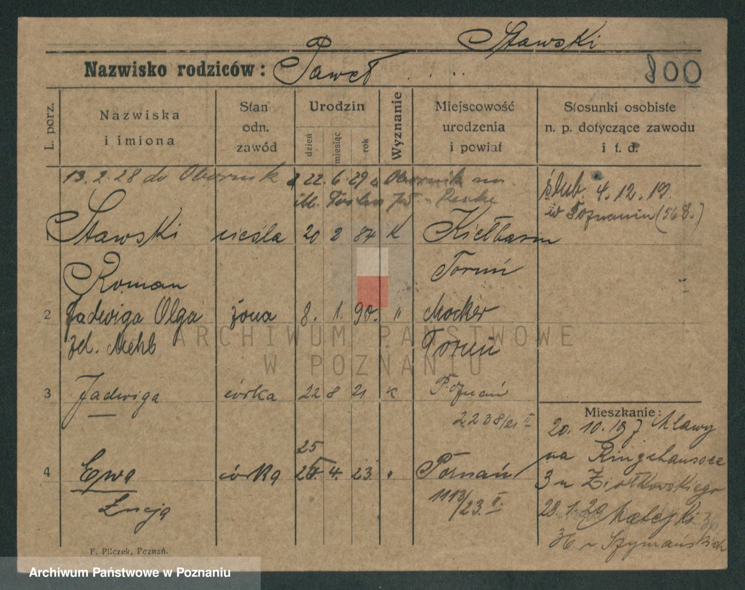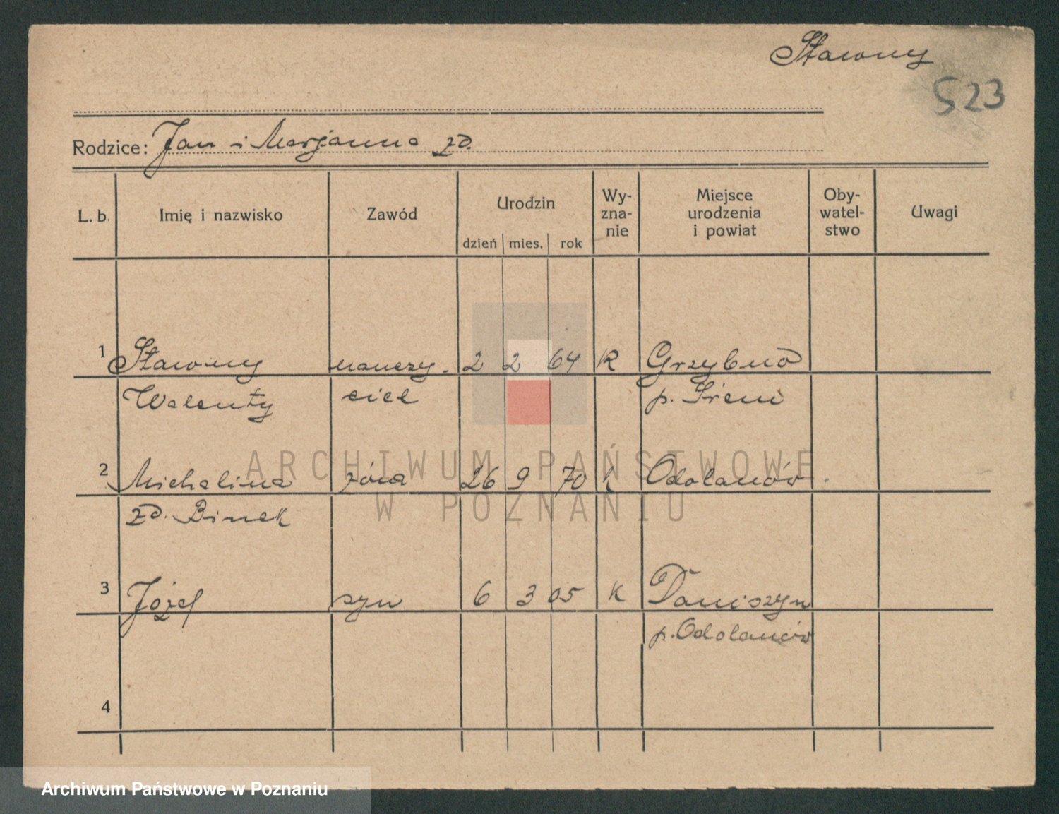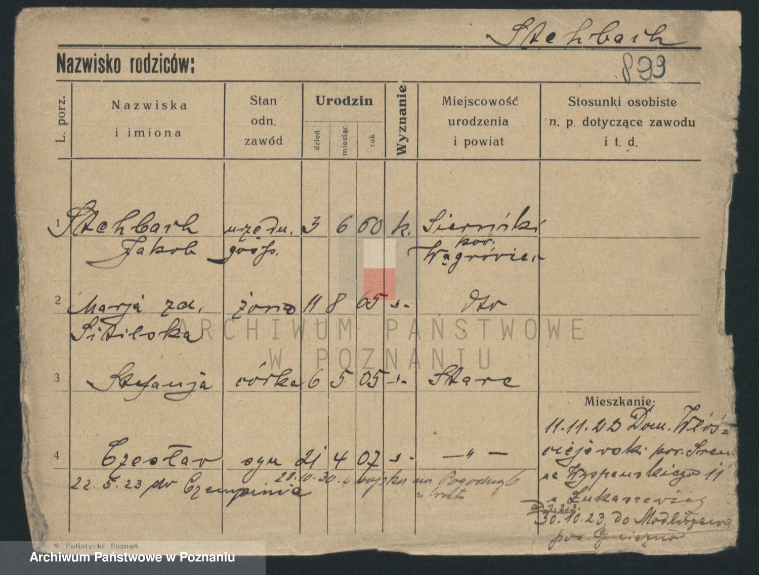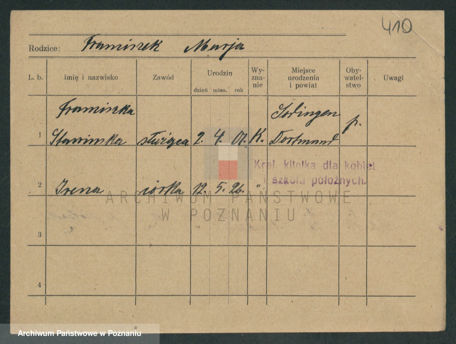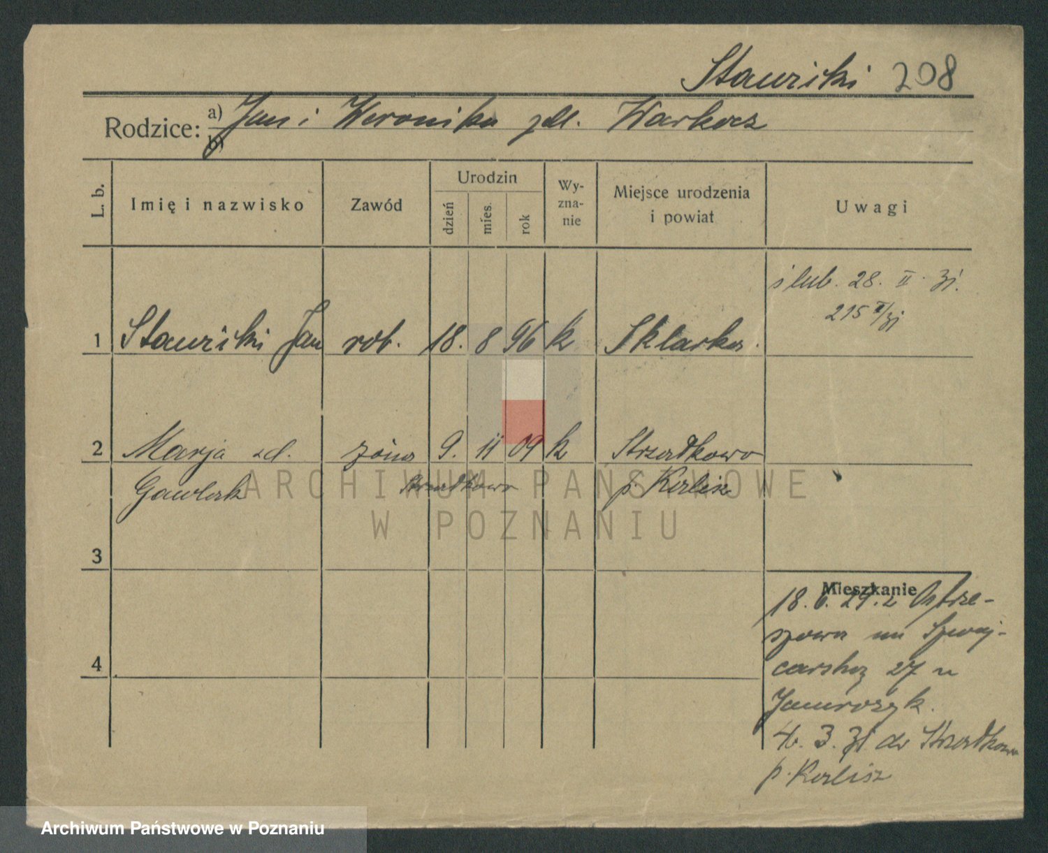 Podgląd karty osobowej dostępny jest po kliknięciu na nazwisko lub ikonkę karty. Można dokonywać powiększenia (ikony na górze) lub przechodzić między kolejnymi skanami (strzałki po bokach).