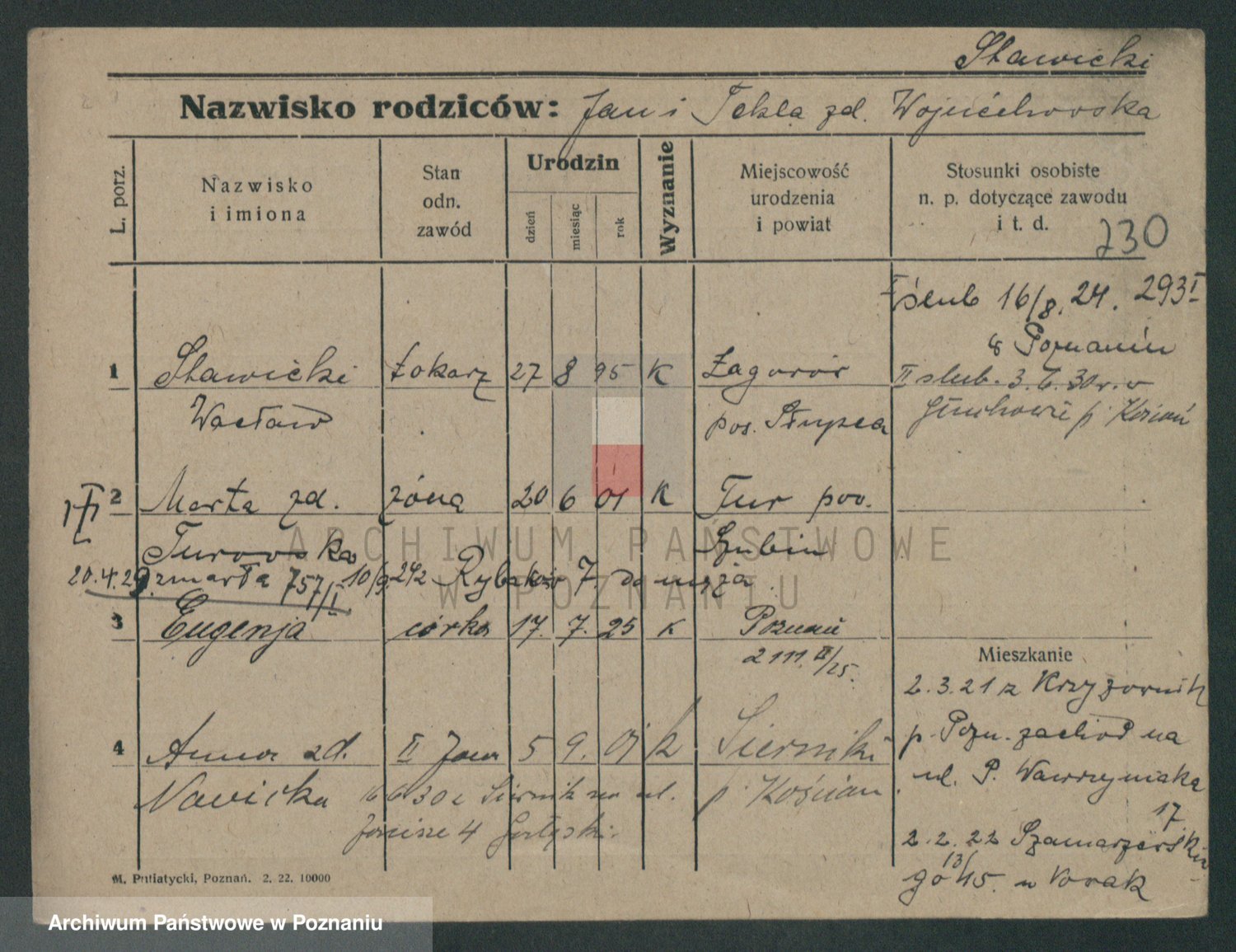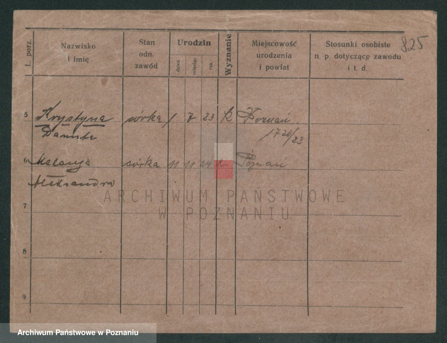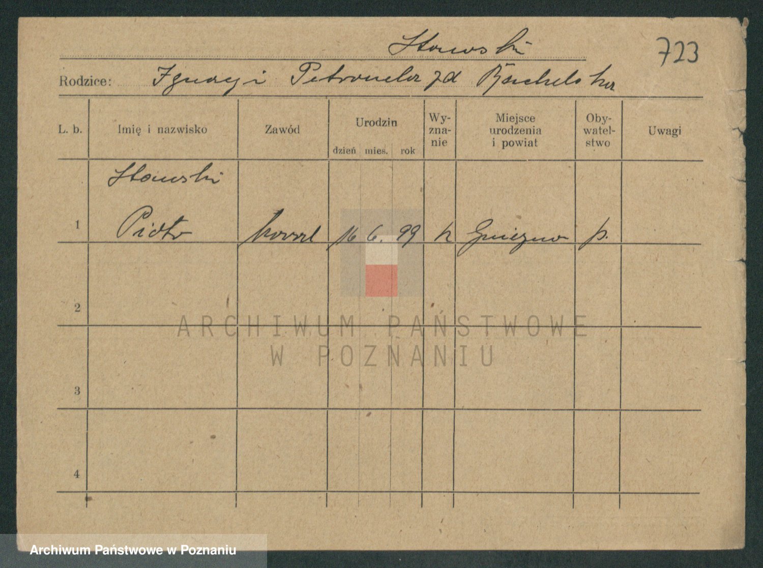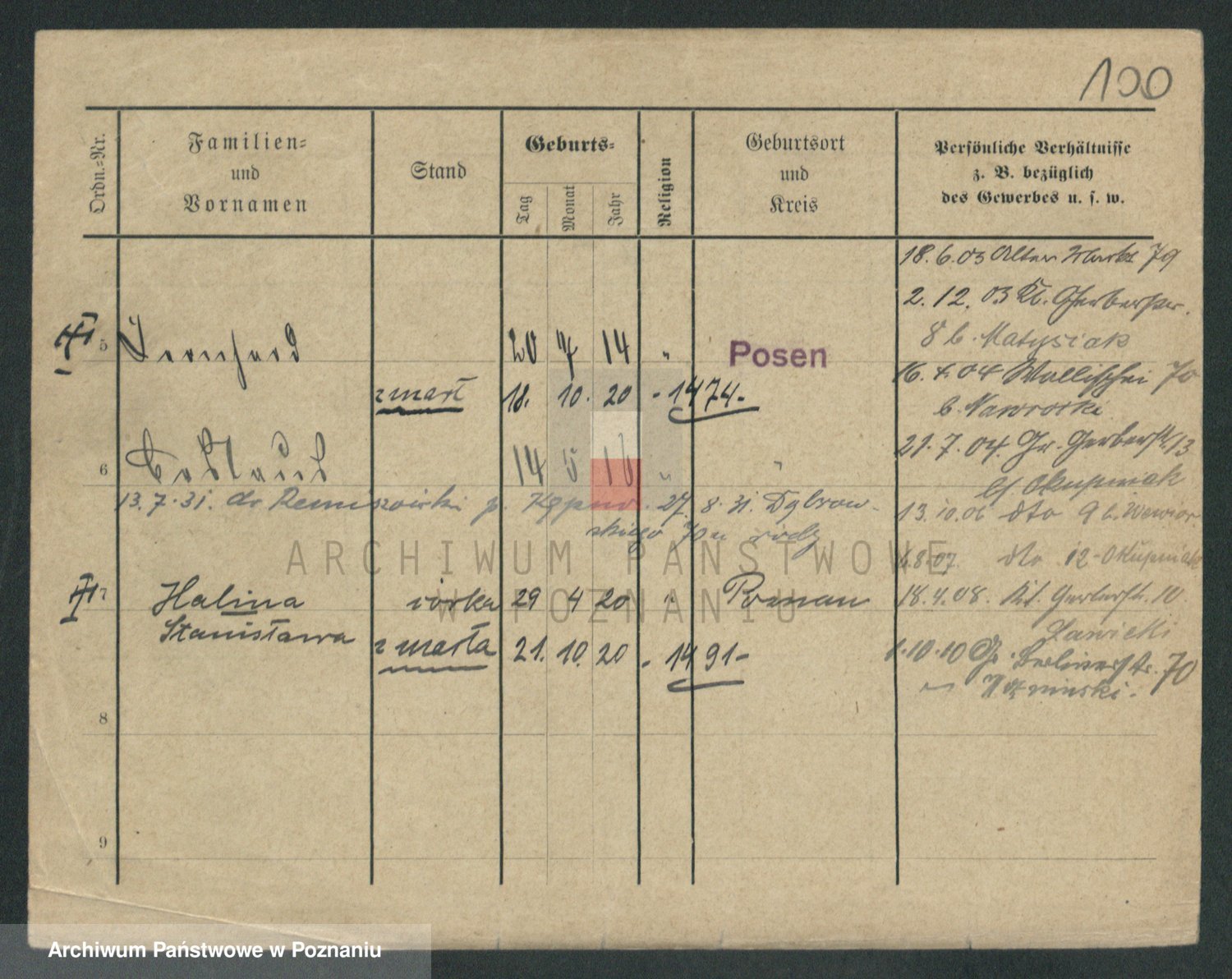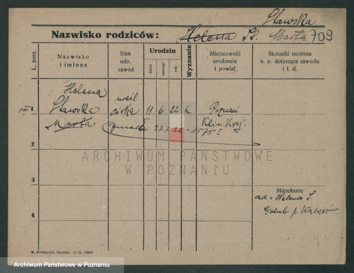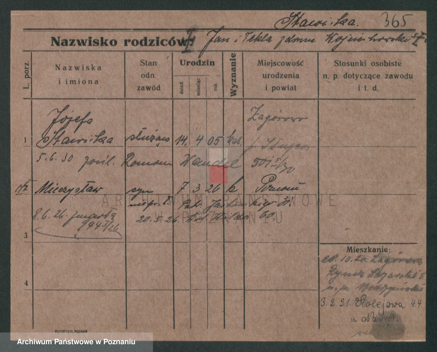 Podgląd karty osobowej dostępny jest po kliknięciu na nazwisko lub ikonkę karty. Można dokonywać powiększenia (ikony na górze) lub przechodzić między kolejnymi skanami (strzałki po bokach).