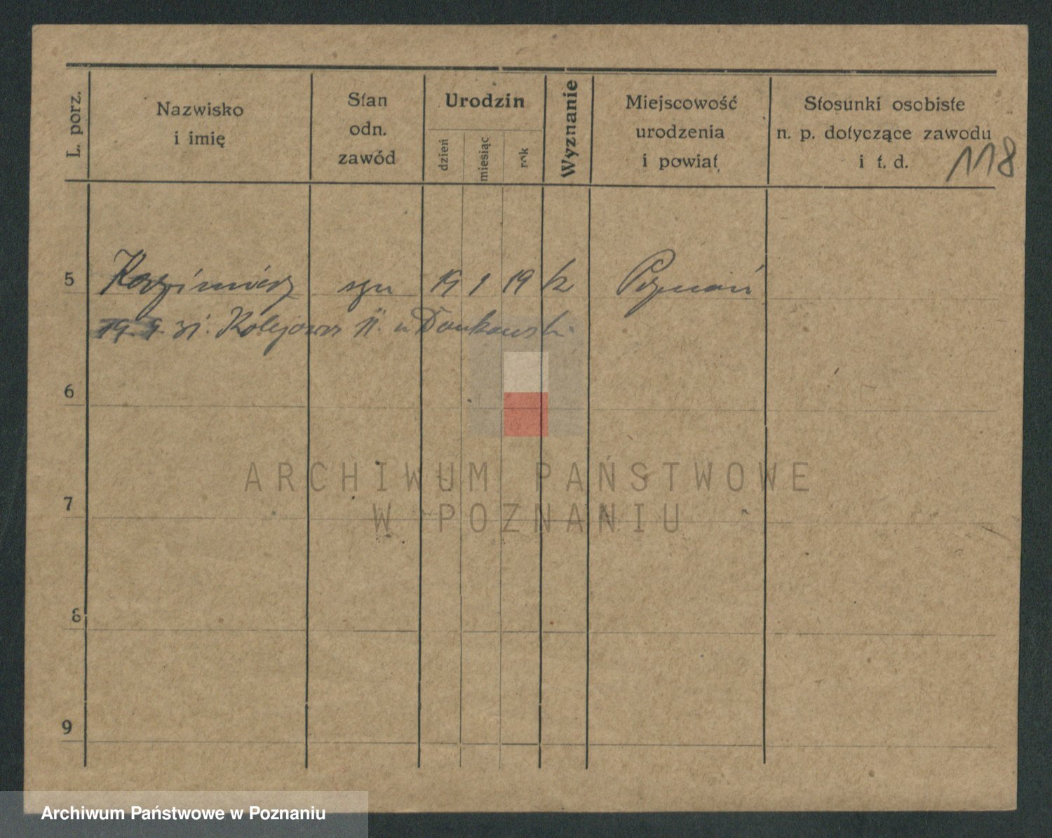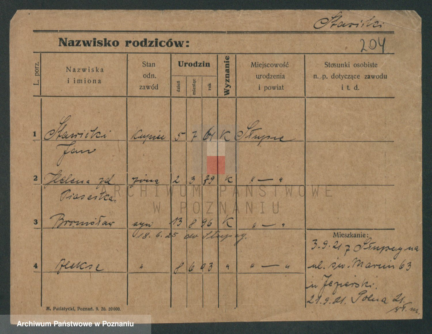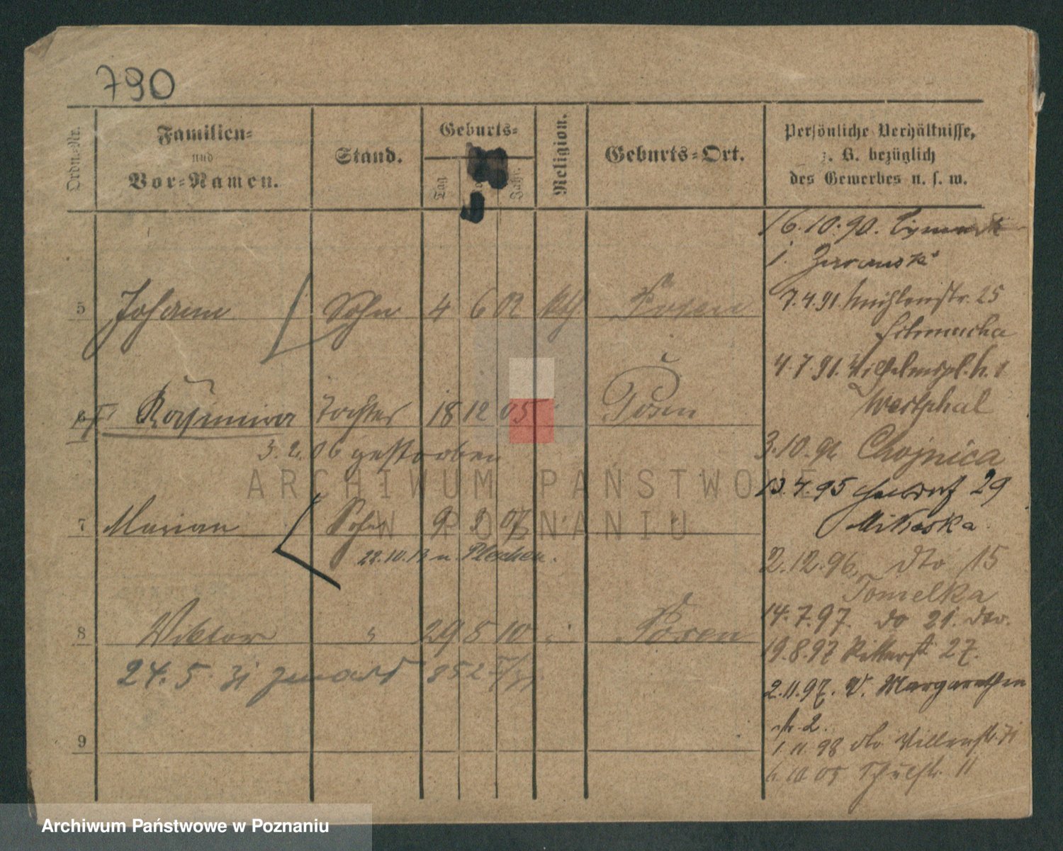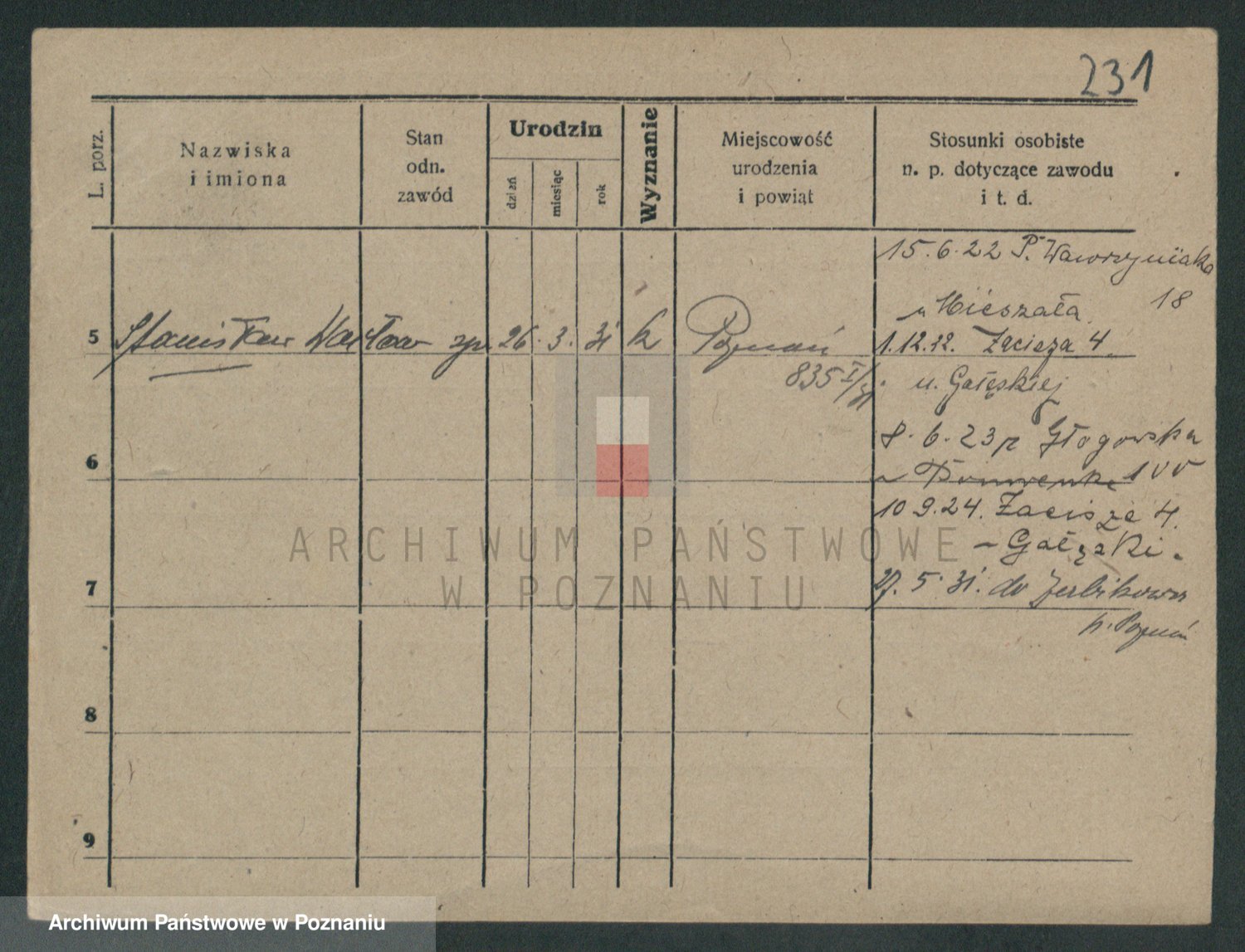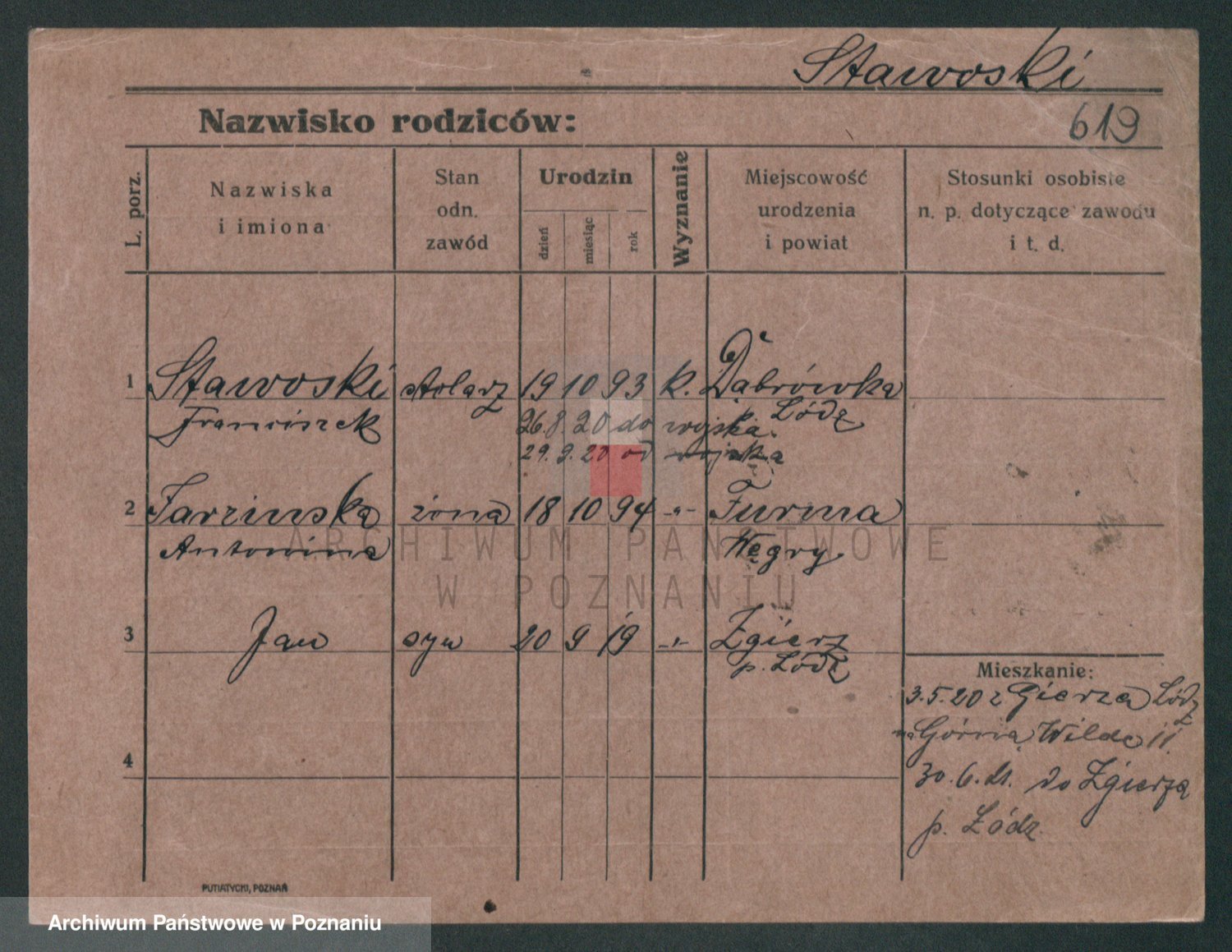 Podgląd karty osobowej dostępny jest po kliknięciu na nazwisko lub ikonkę karty. Można dokonywać powiększenia (ikony na górze) lub przechodzić między kolejnymi skanami (strzałki po bokach).