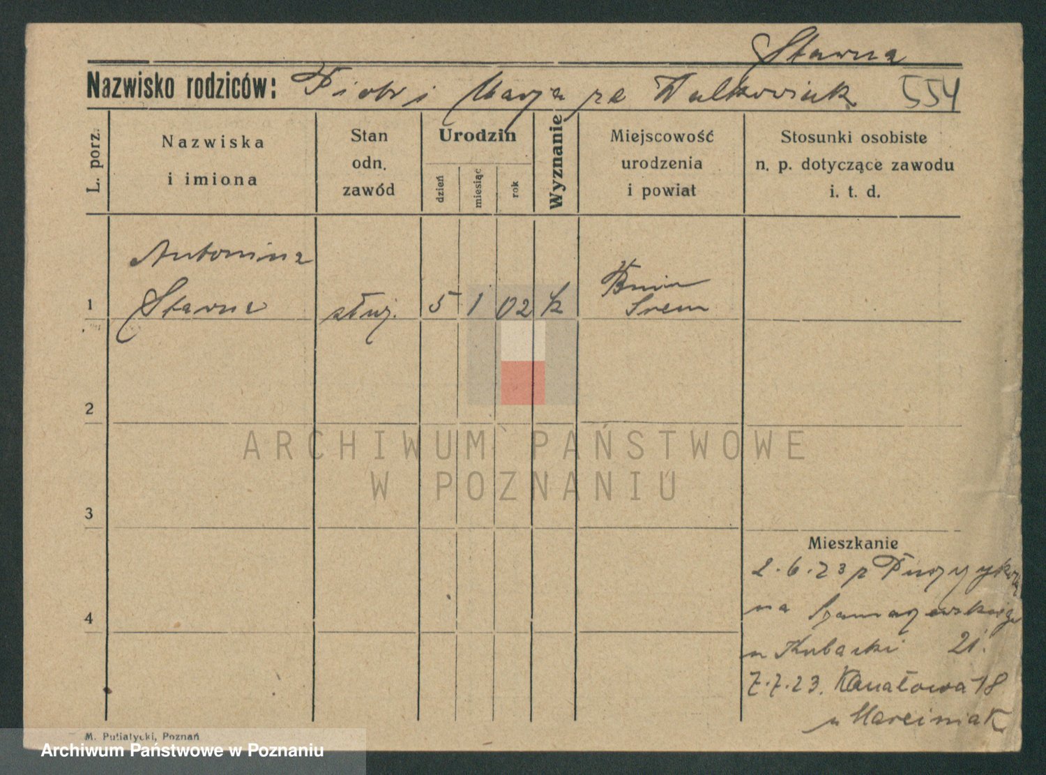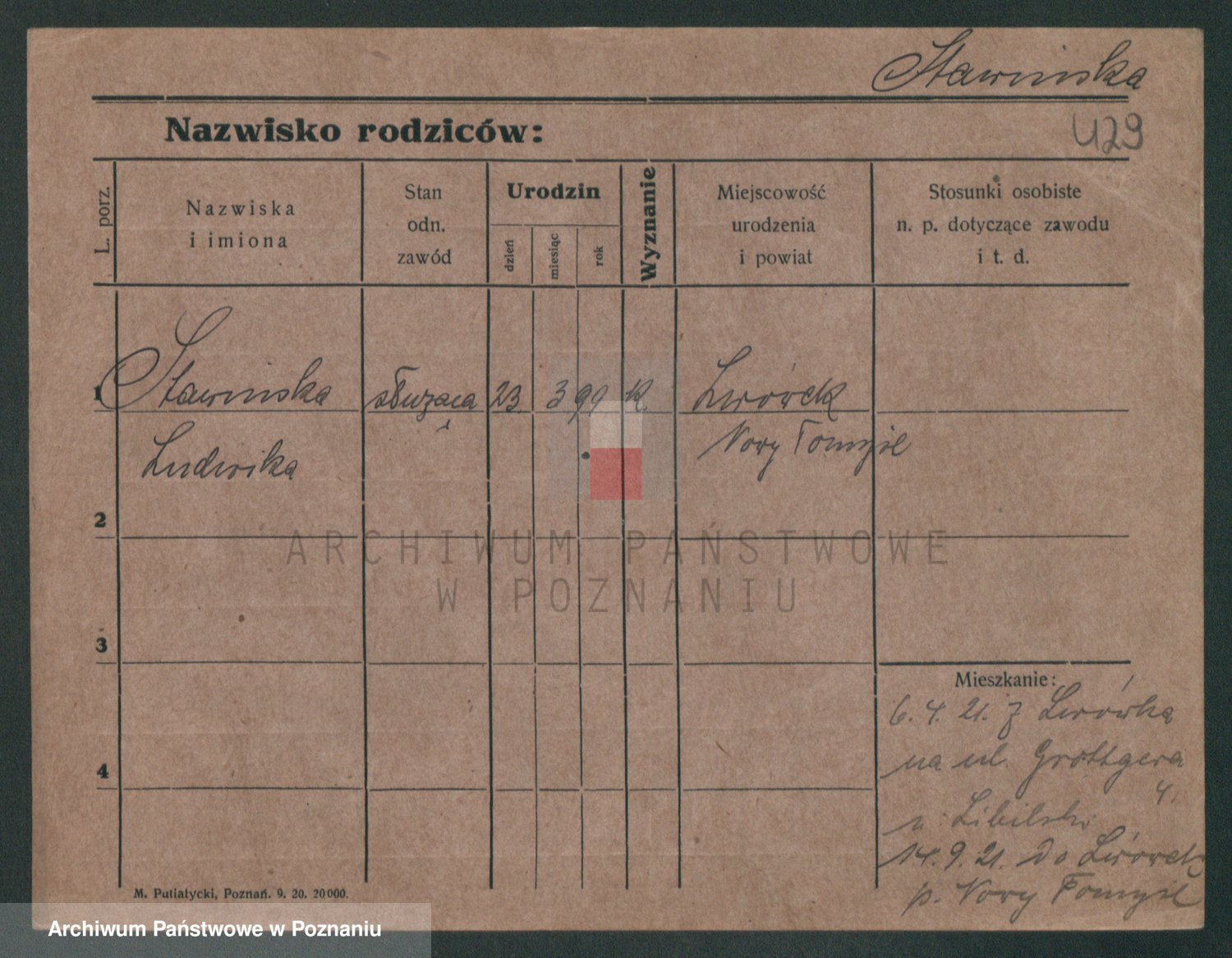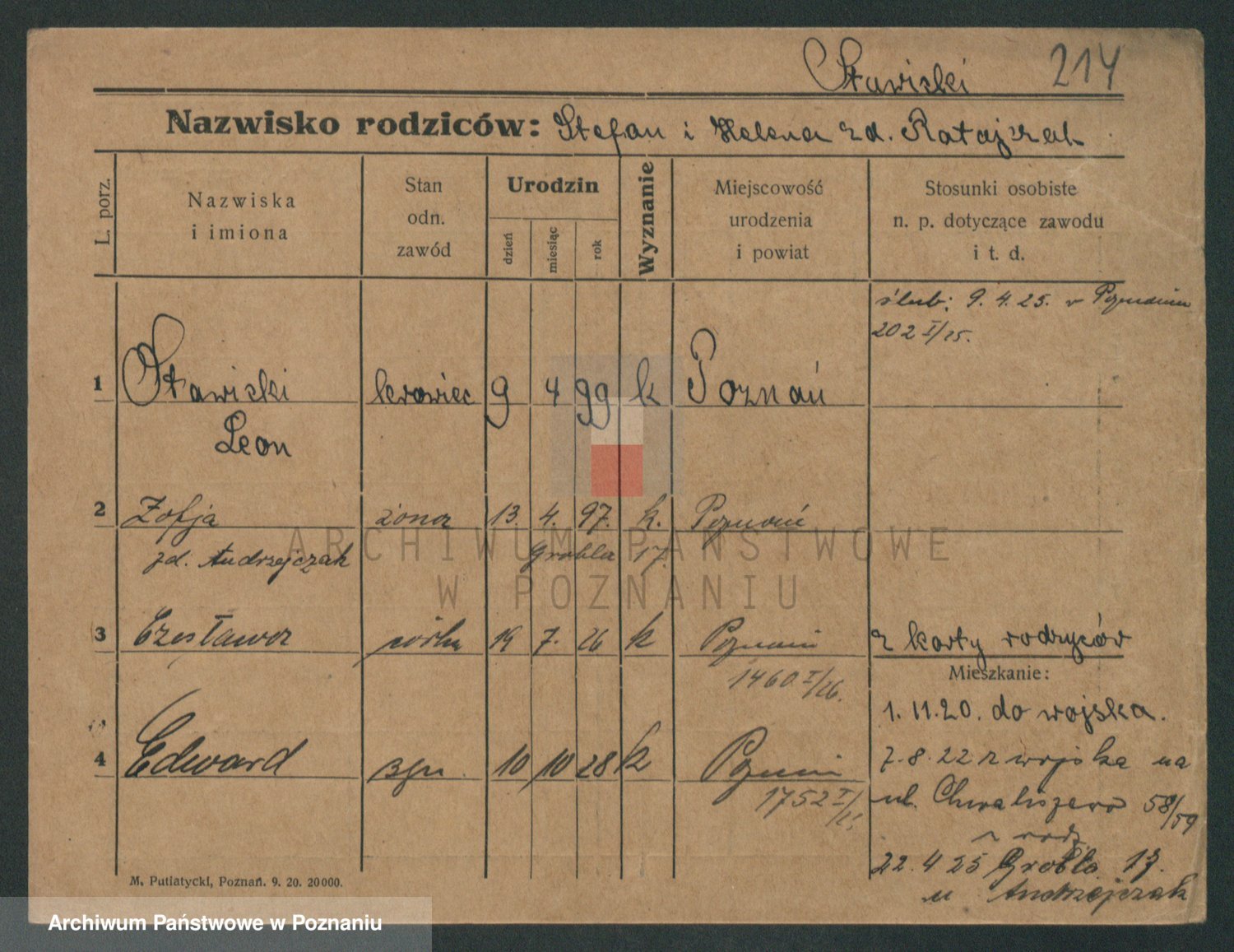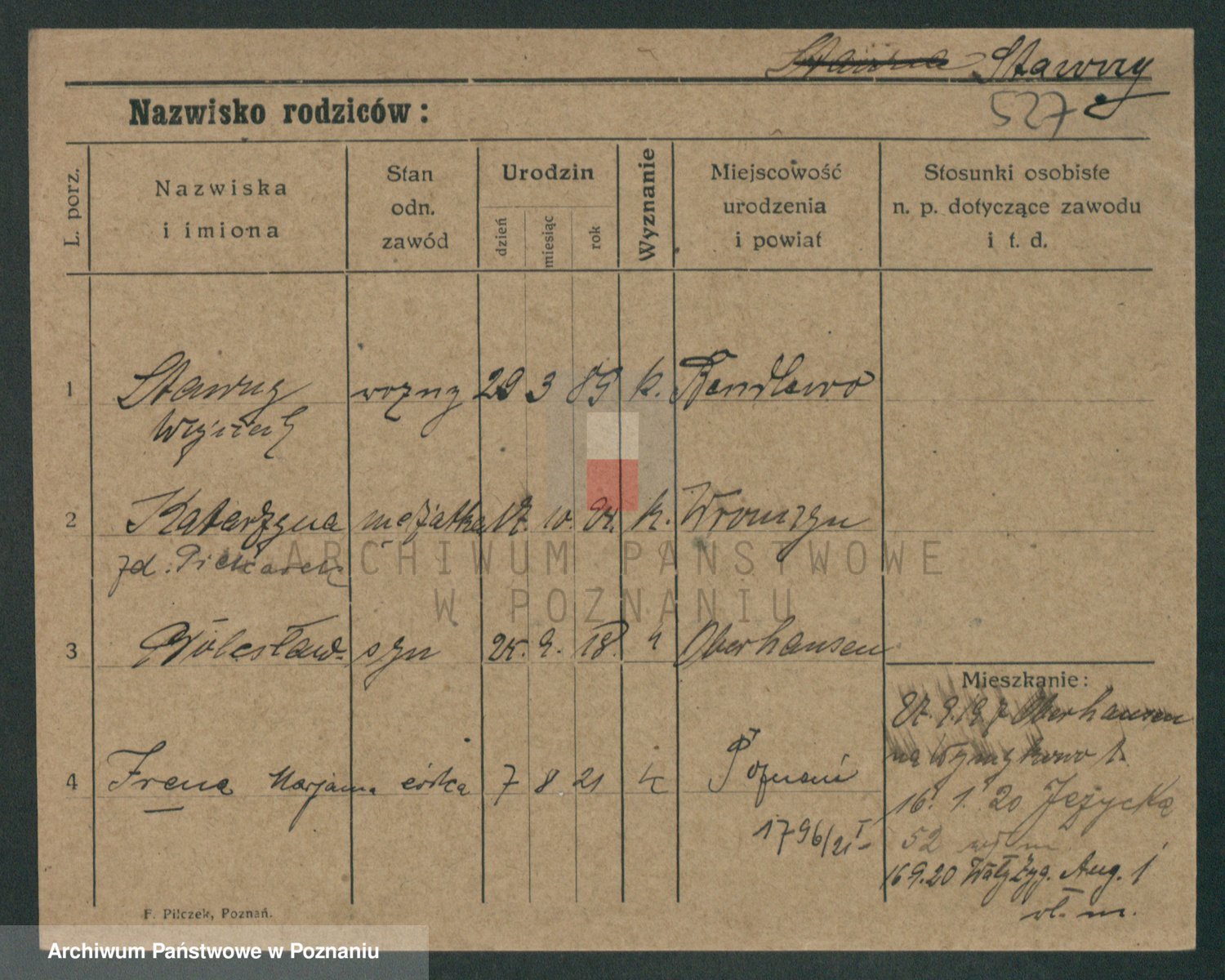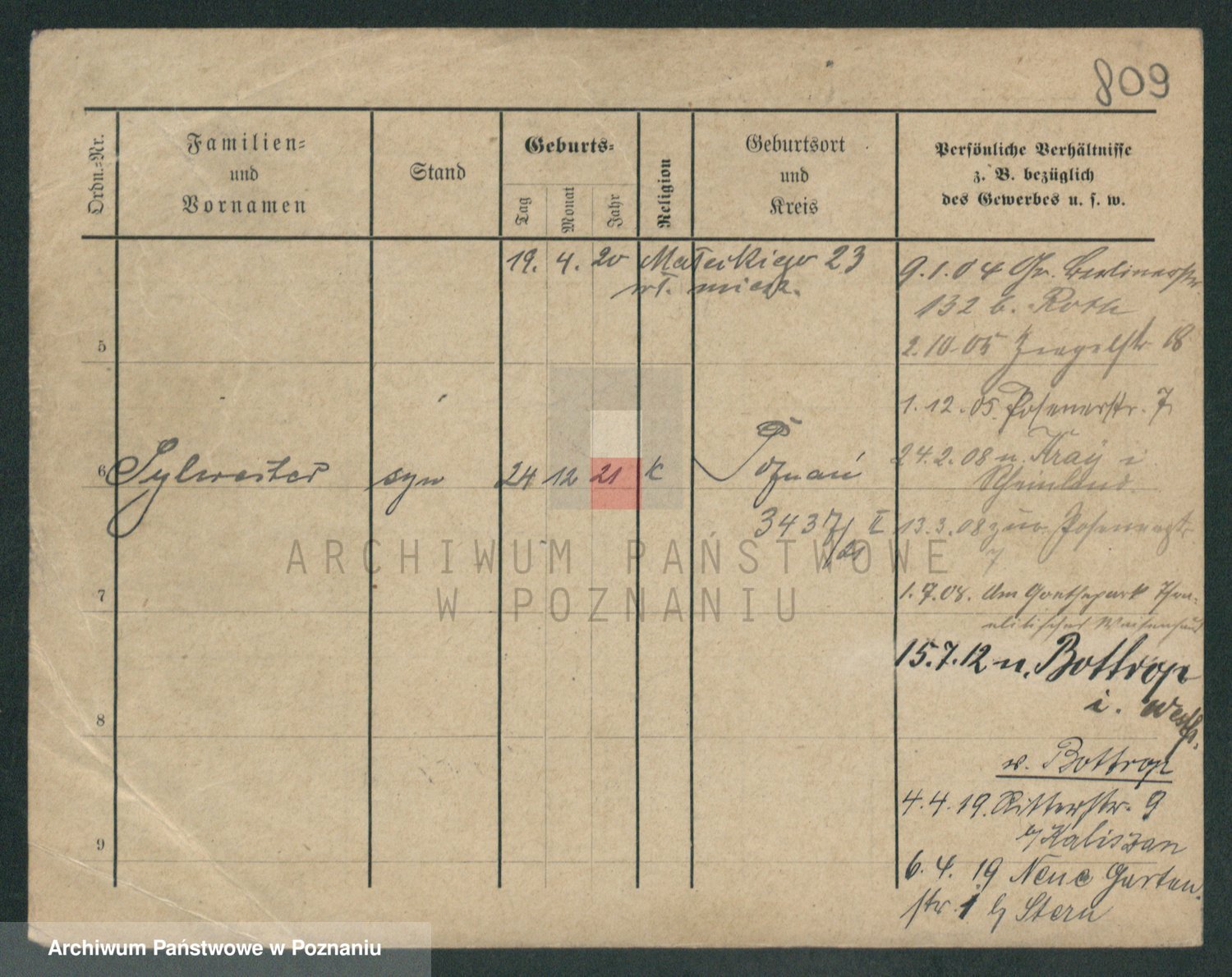 Podgląd karty osobowej dostępny jest po kliknięciu na nazwisko lub ikonkę karty. Można dokonywać powiększenia (ikony na górze) lub przechodzić między kolejnymi skanami (strzałki po bokach).