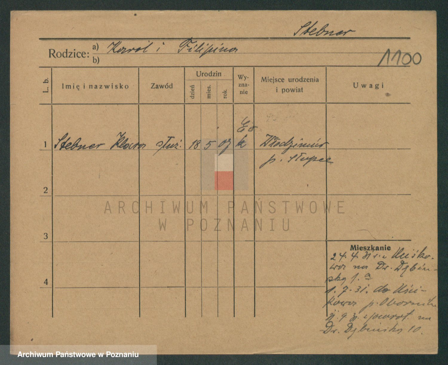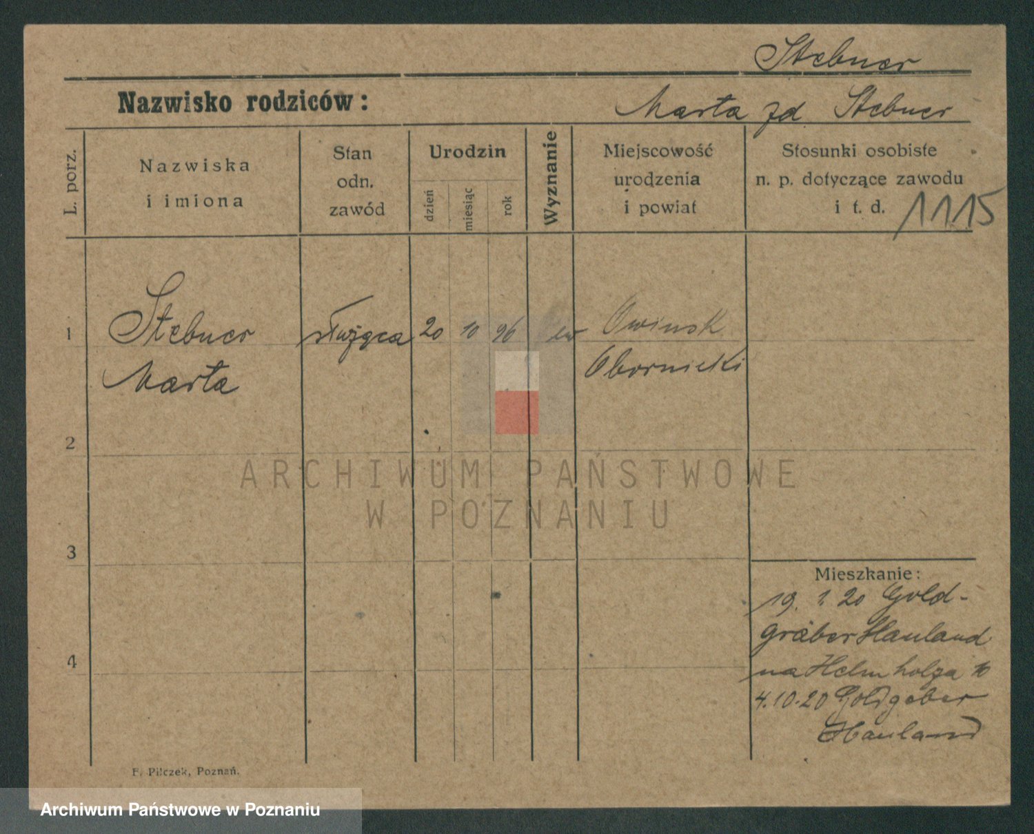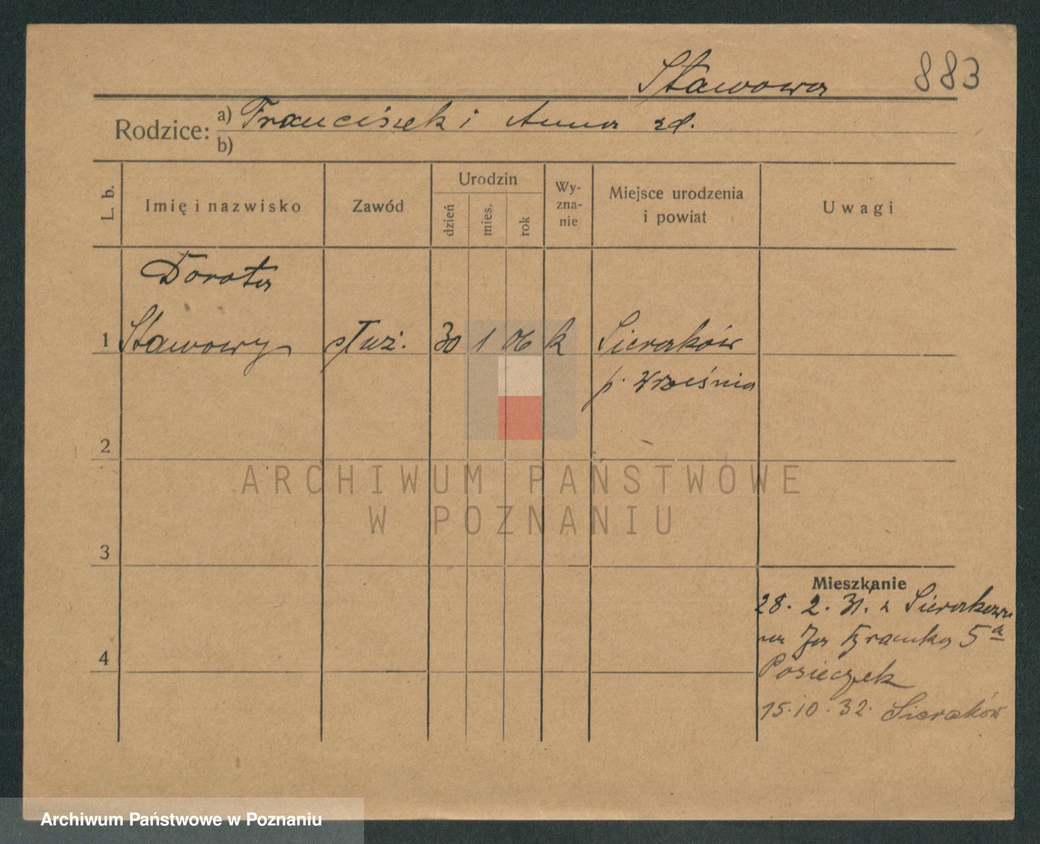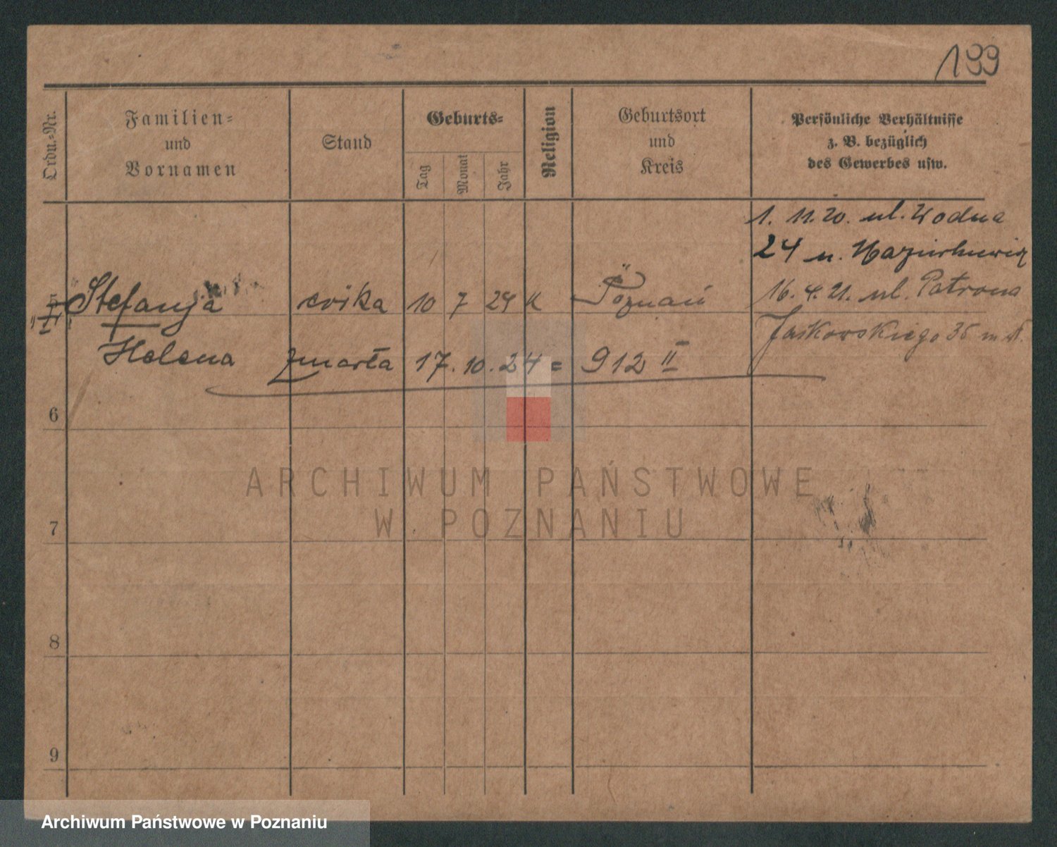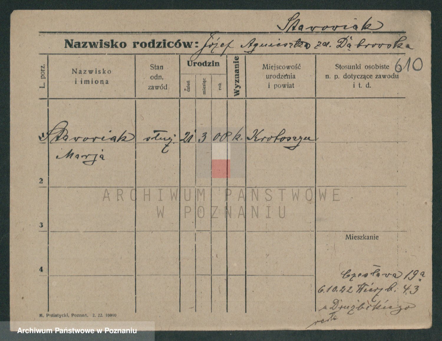 Podgląd karty osobowej dostępny jest po kliknięciu na nazwisko lub ikonkę karty. Można dokonywać powiększenia (ikony na górze) lub przechodzić między kolejnymi skanami (strzałki po bokach).