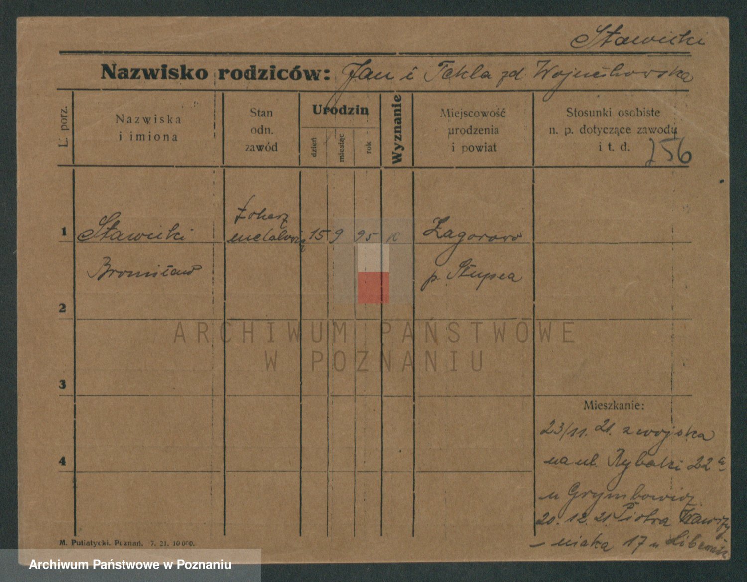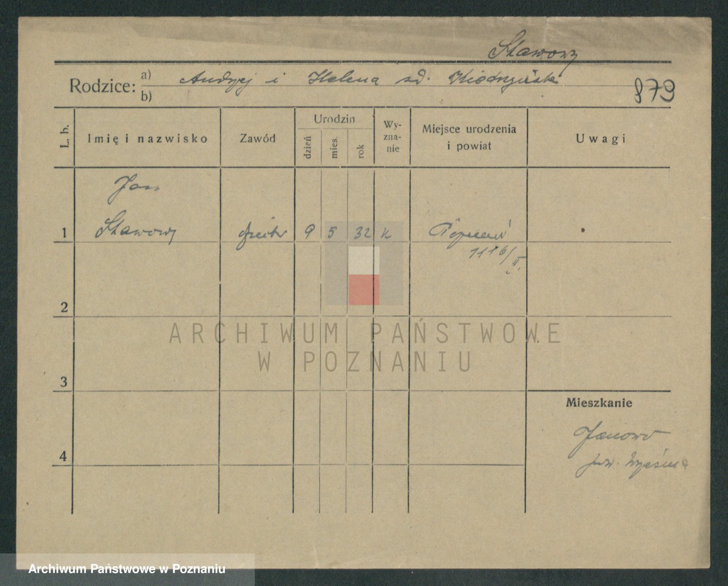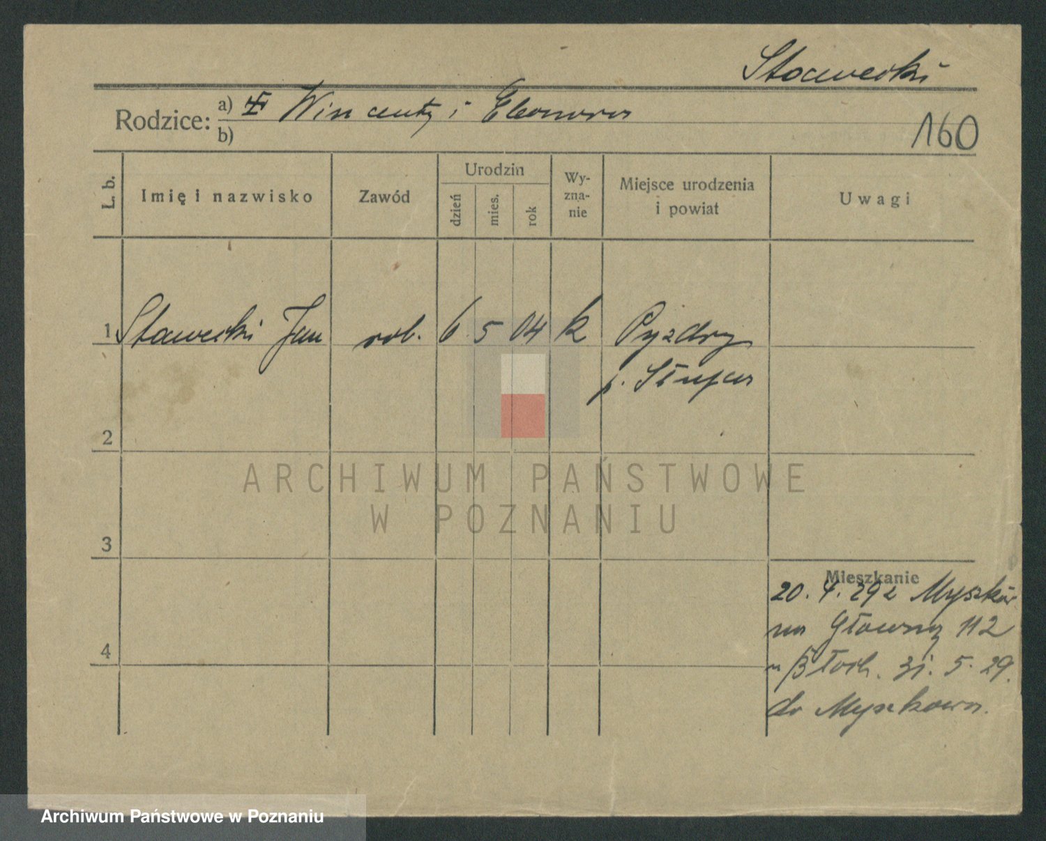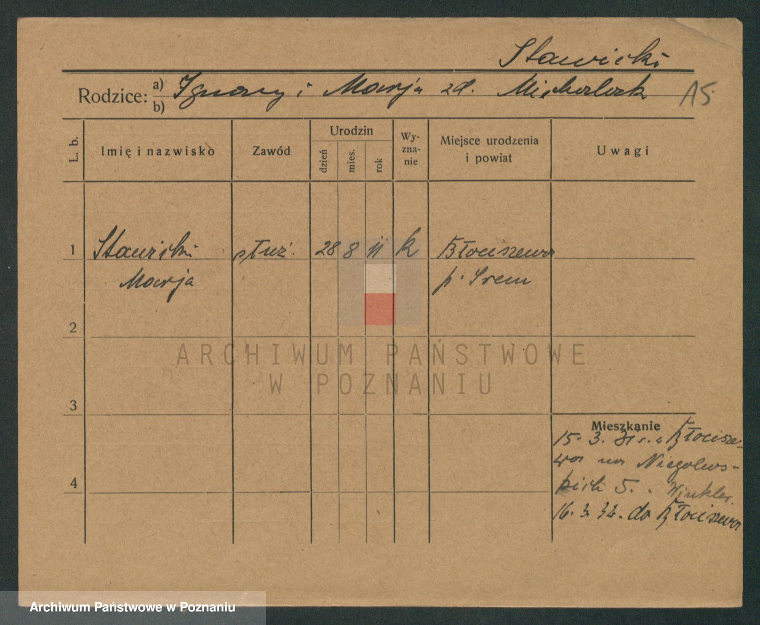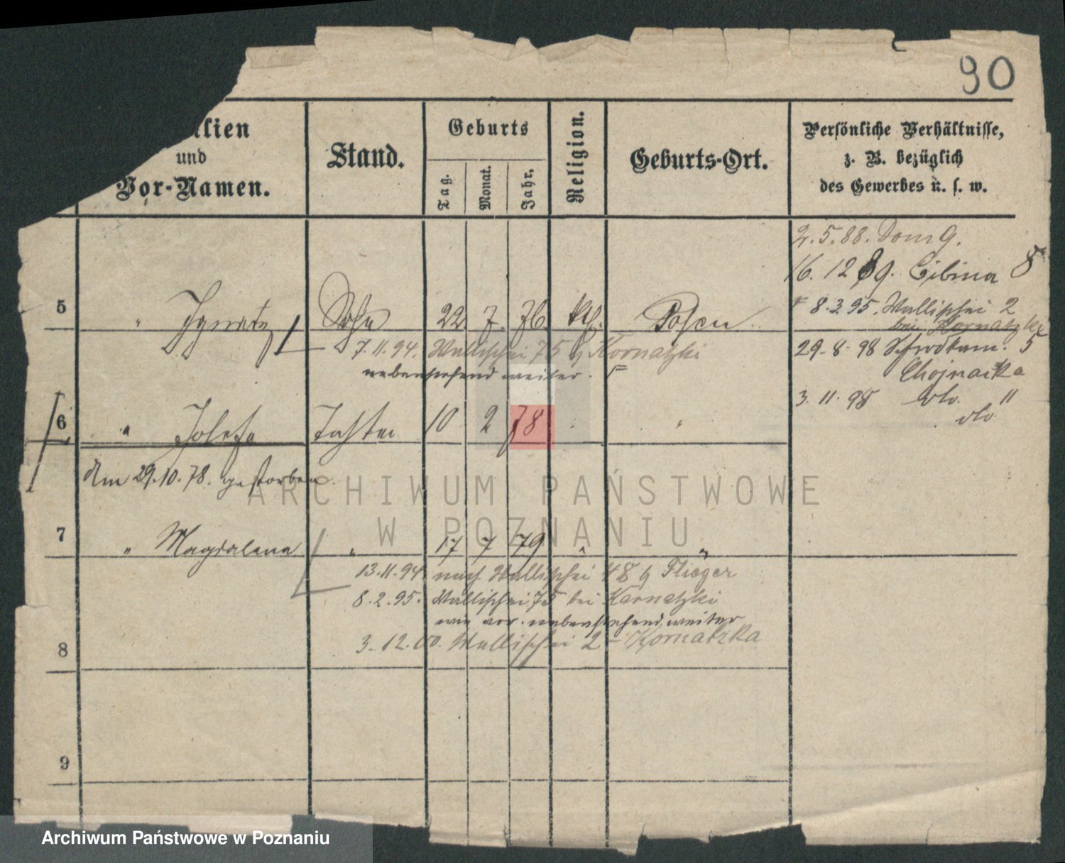 Podgląd karty osobowej dostępny jest po kliknięciu na nazwisko lub ikonkę karty. Można dokonywać powiększenia (ikony na górze) lub przechodzić między kolejnymi skanami (strzałki po bokach).