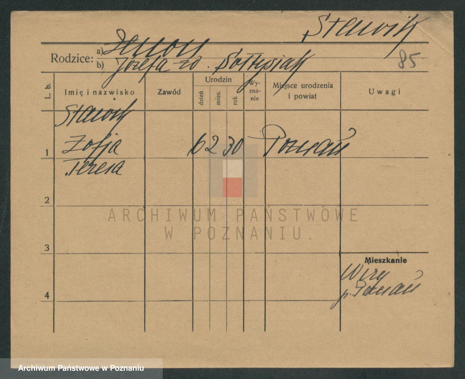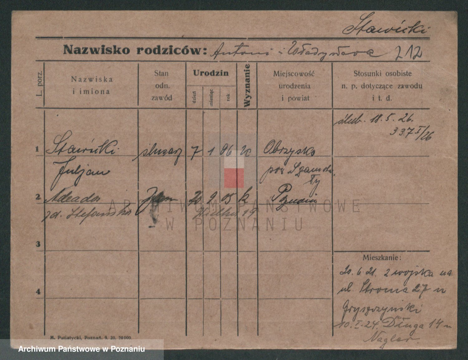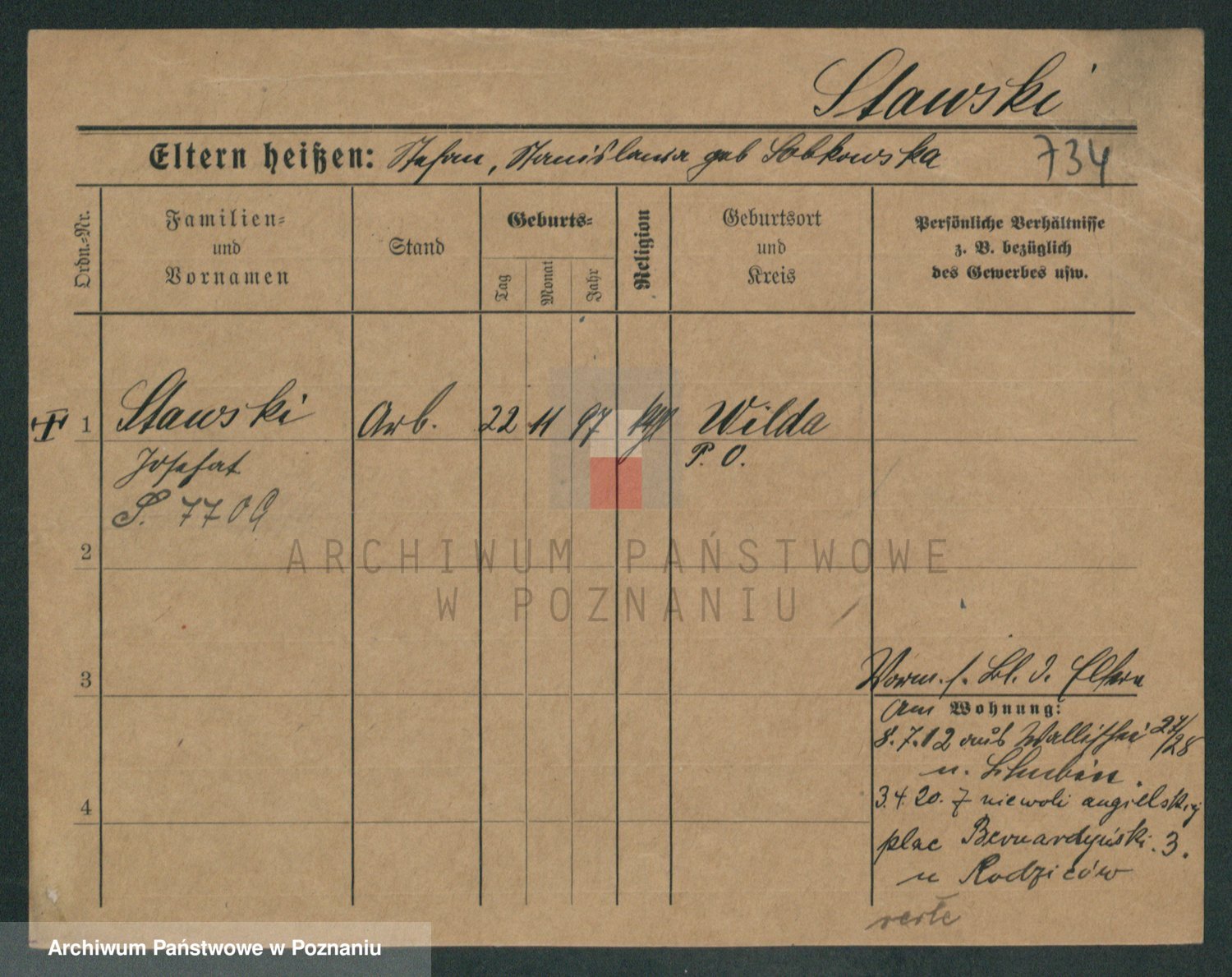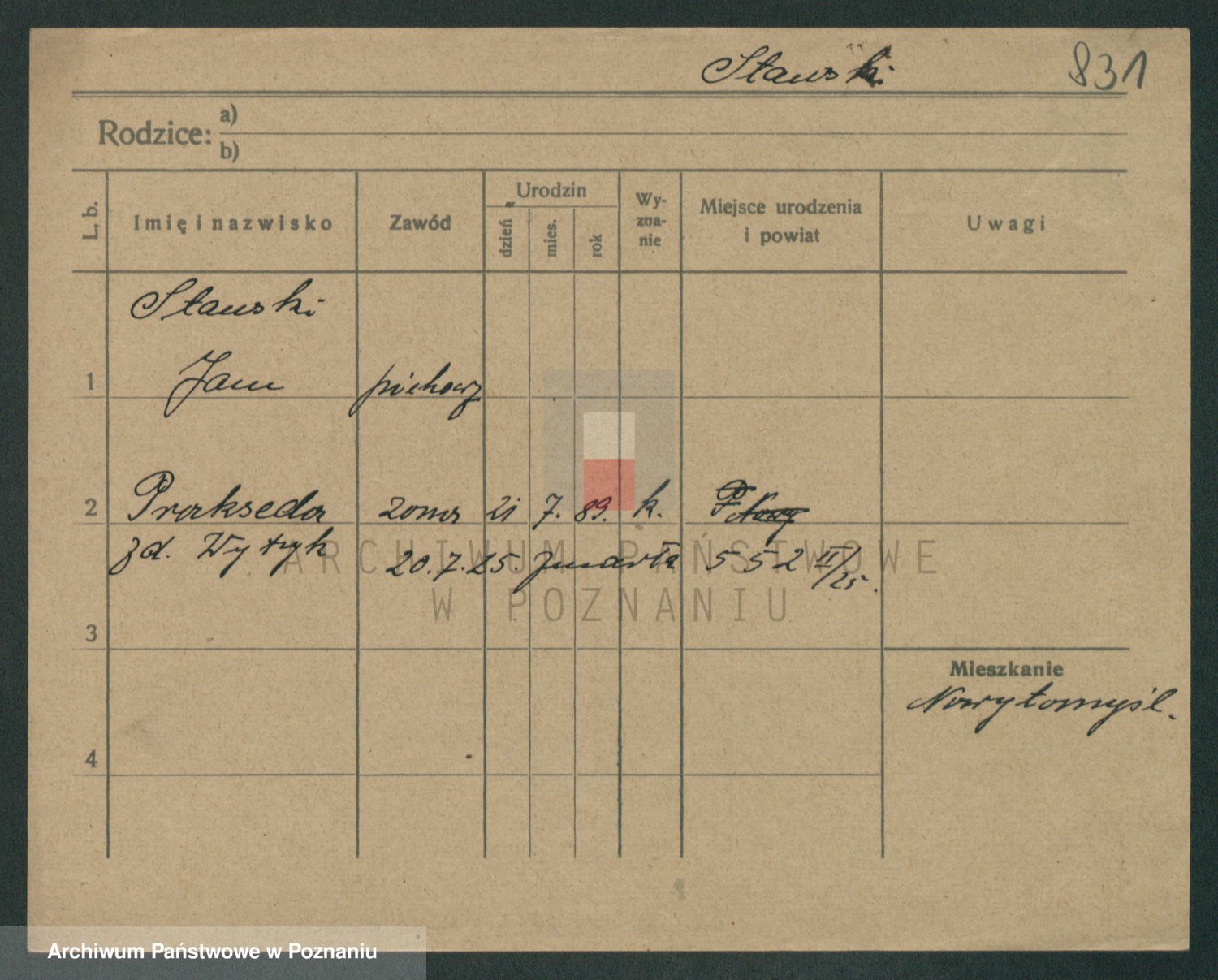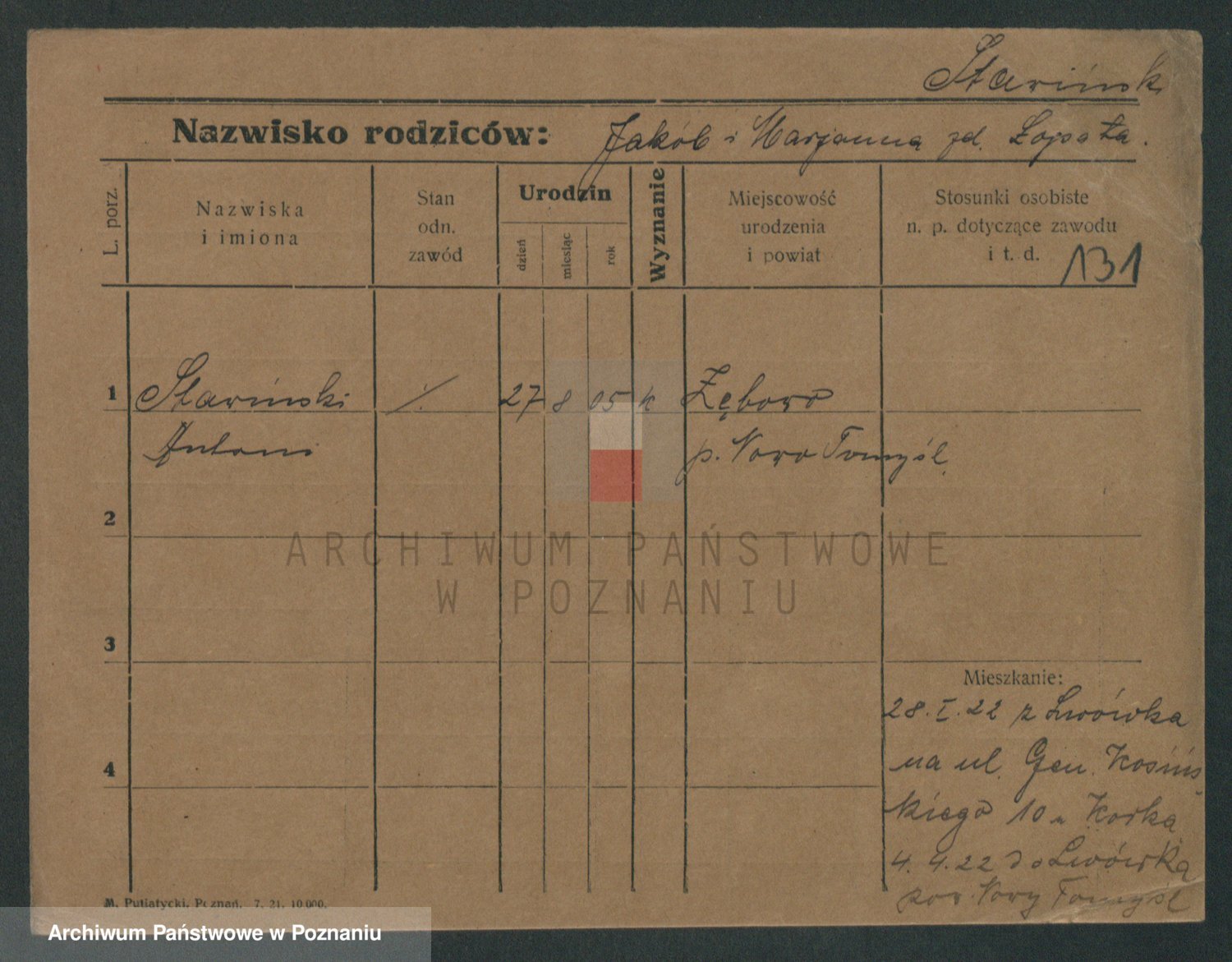 Podgląd karty osobowej dostępny jest po kliknięciu na nazwisko lub ikonkę karty. Można dokonywać powiększenia (ikony na górze) lub przechodzić między kolejnymi skanami (strzałki po bokach).