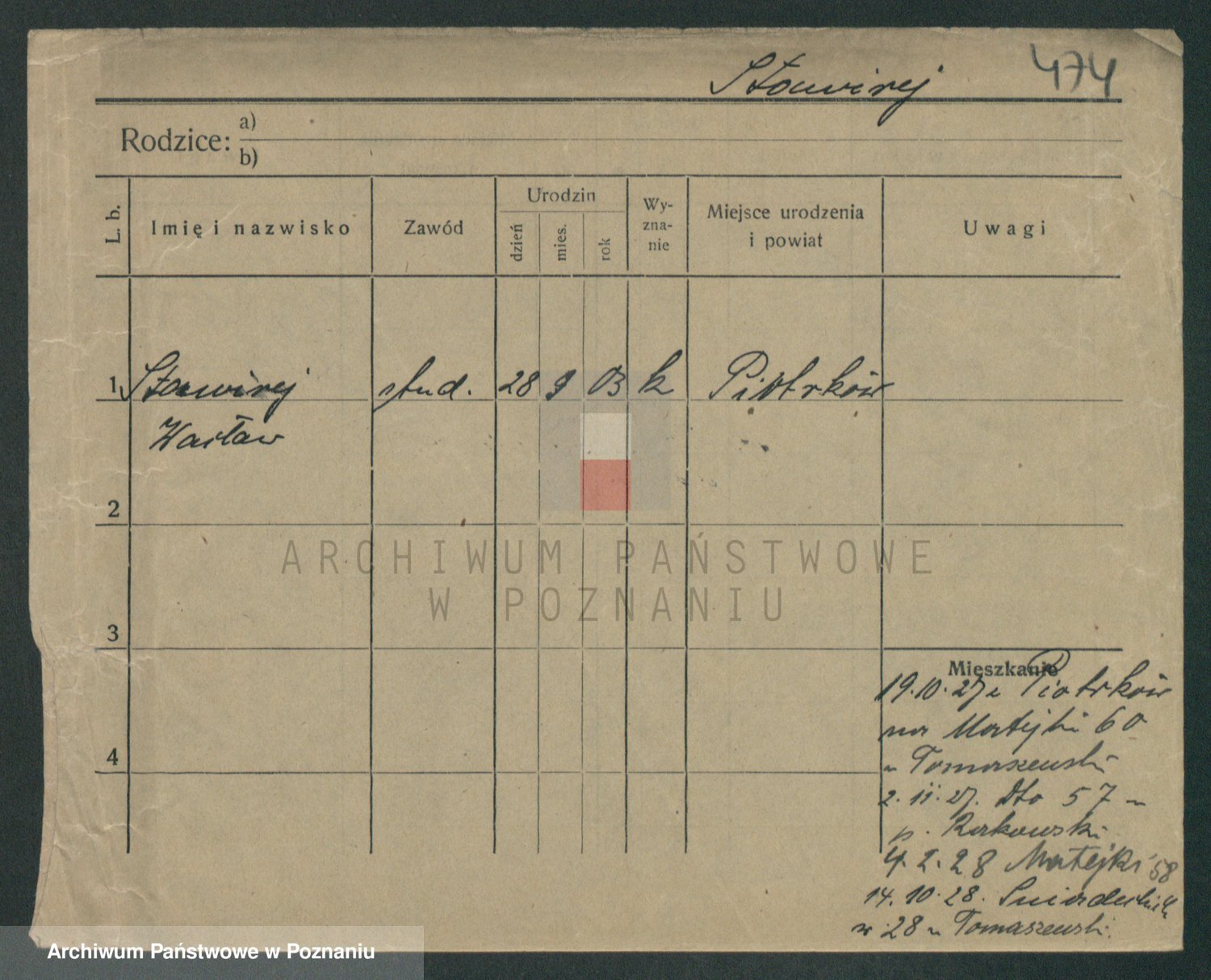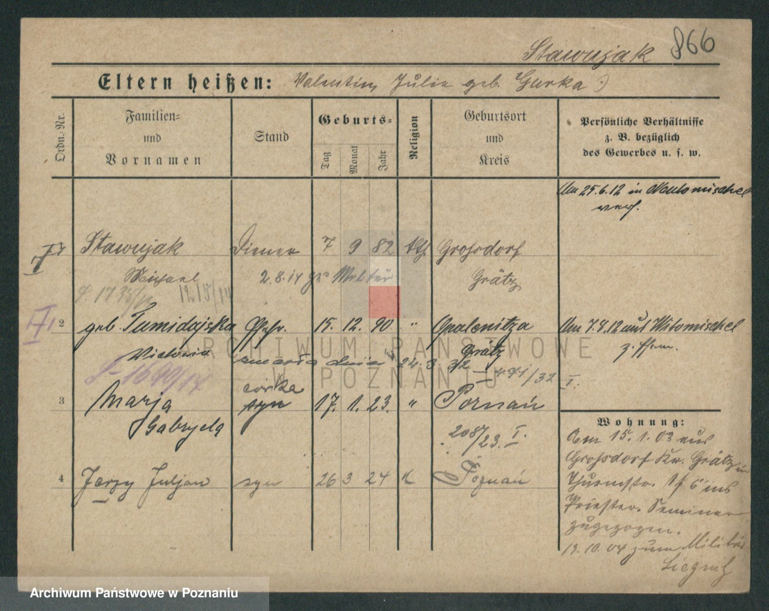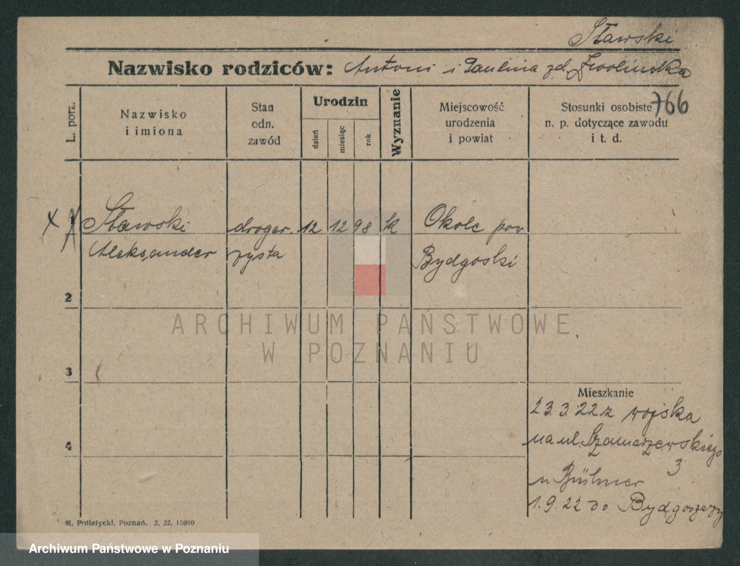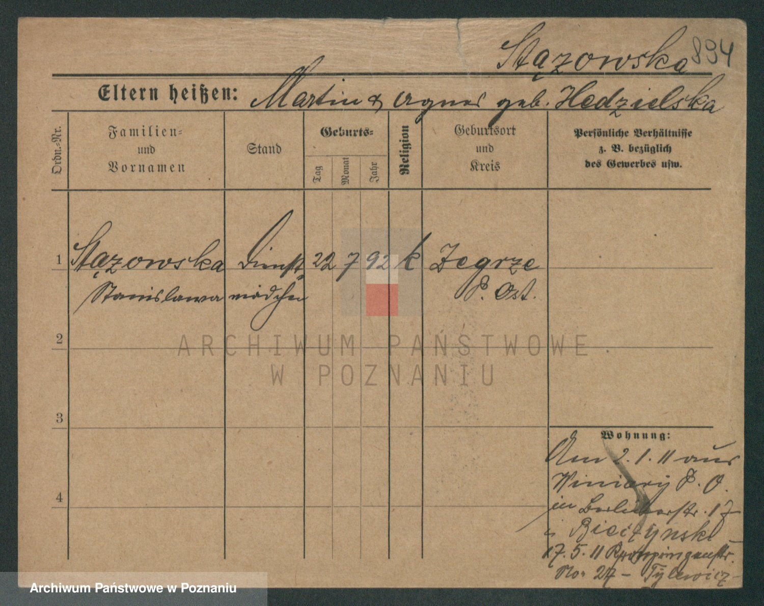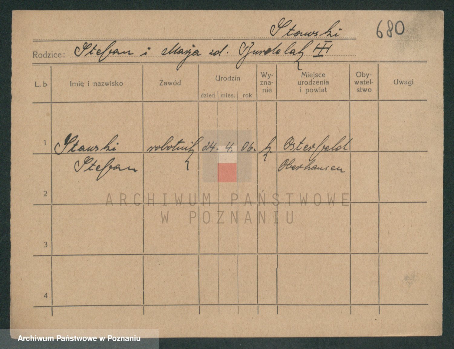 Podgląd karty osobowej dostępny jest po kliknięciu na nazwisko lub ikonkę karty. Można dokonywać powiększenia (ikony na górze) lub przechodzić między kolejnymi skanami (strzałki po bokach).