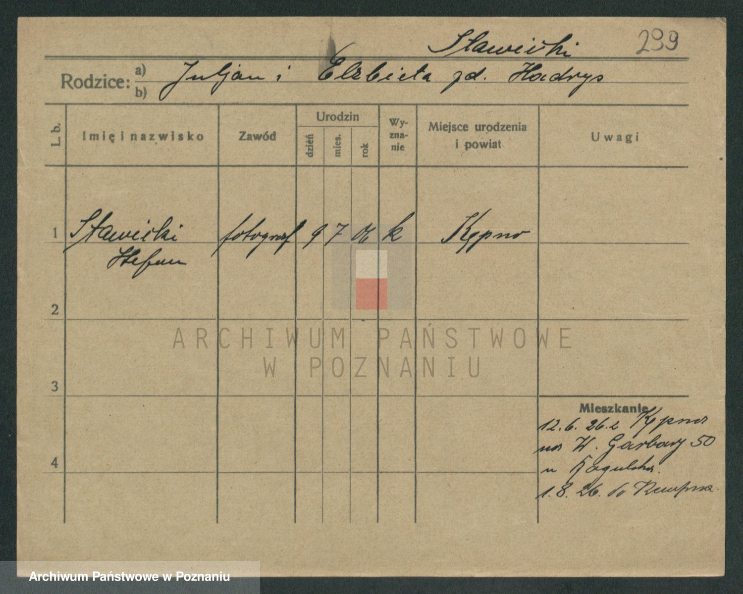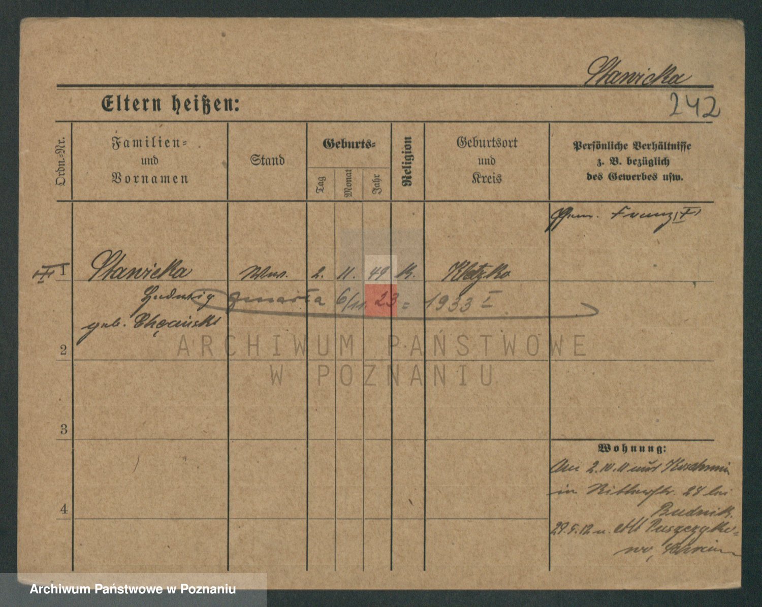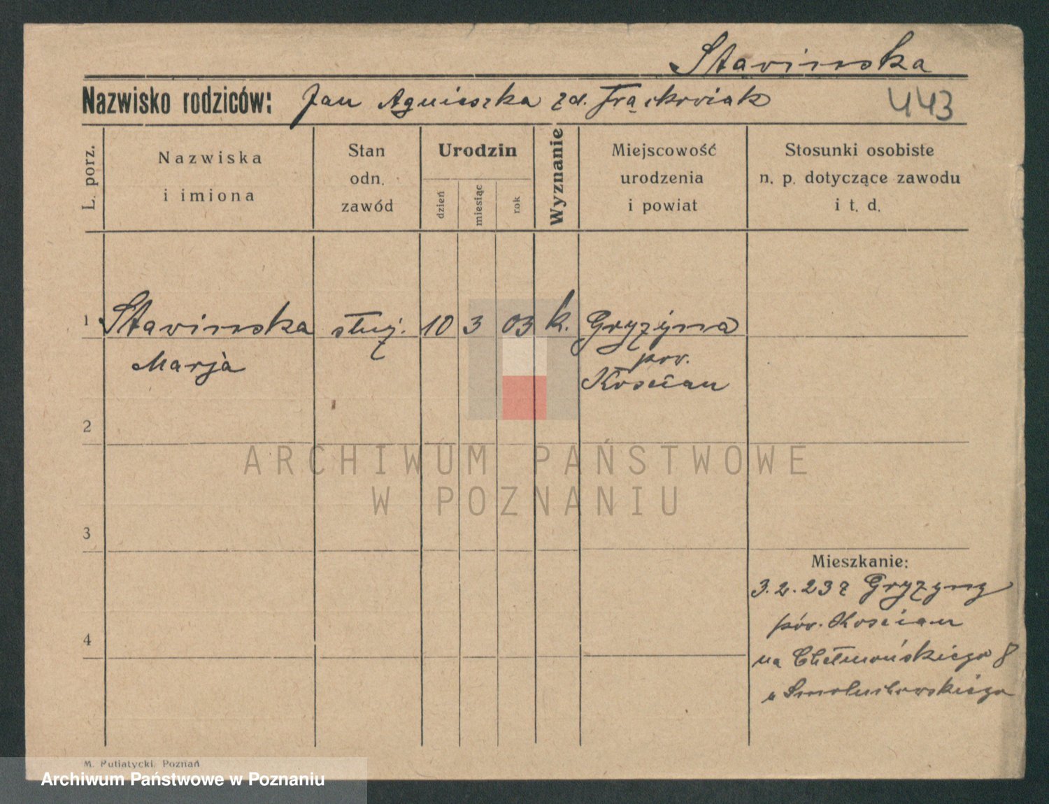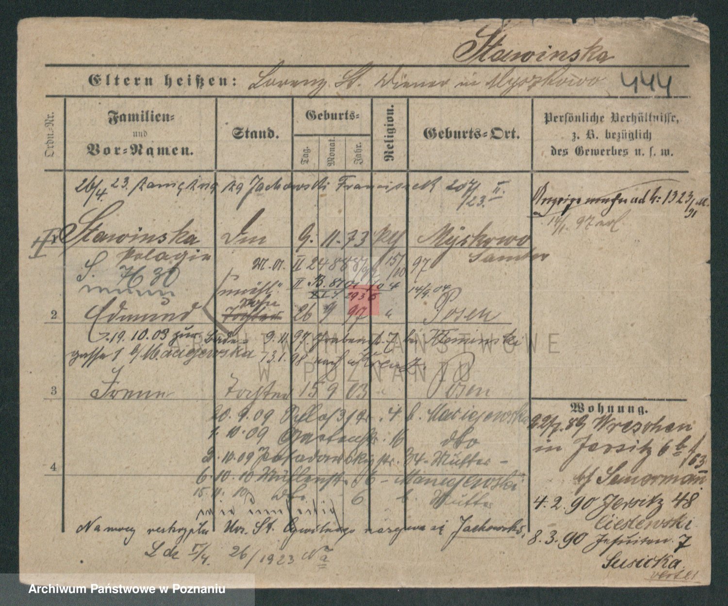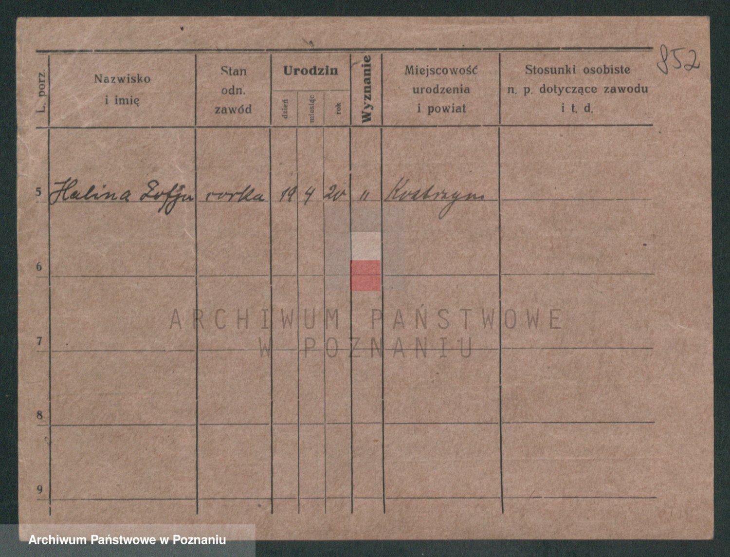 Podgląd karty osobowej dostępny jest po kliknięciu na nazwisko lub ikonkę karty. Można dokonywać powiększenia (ikony na górze) lub przechodzić między kolejnymi skanami (strzałki po bokach).