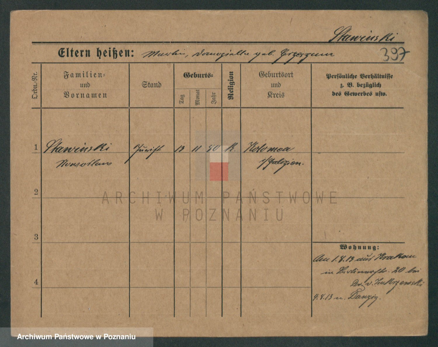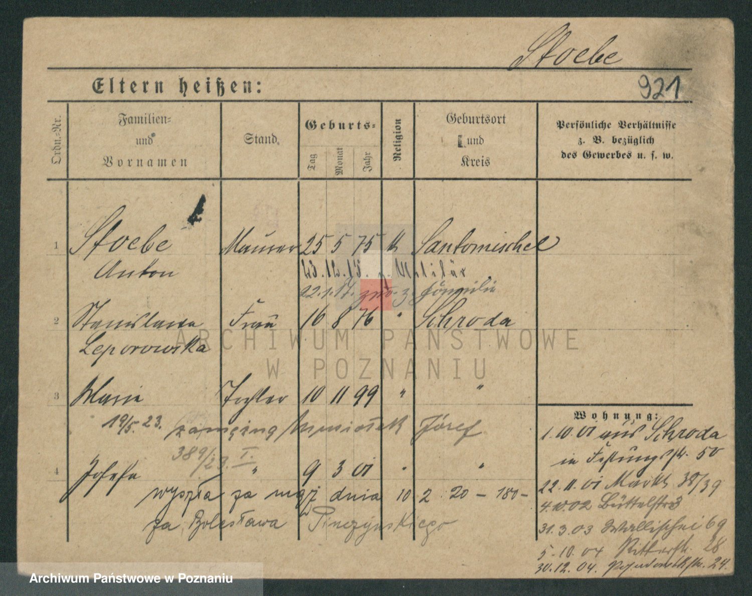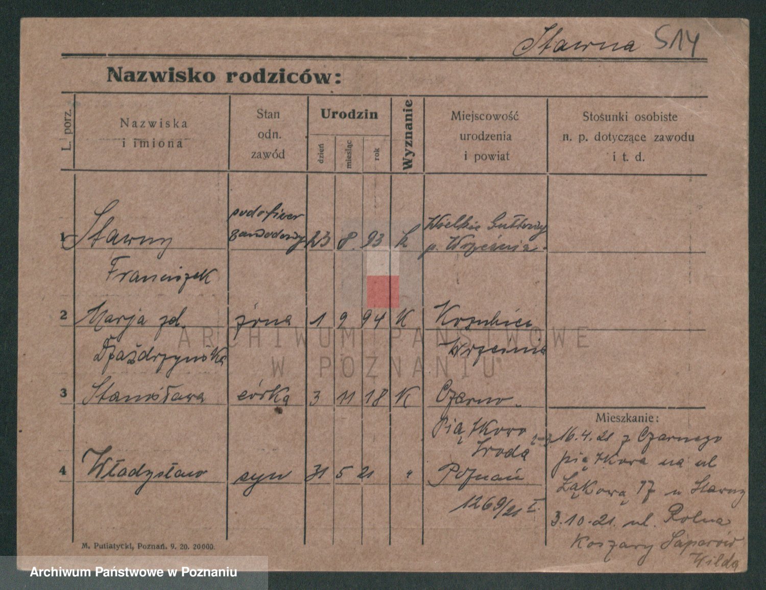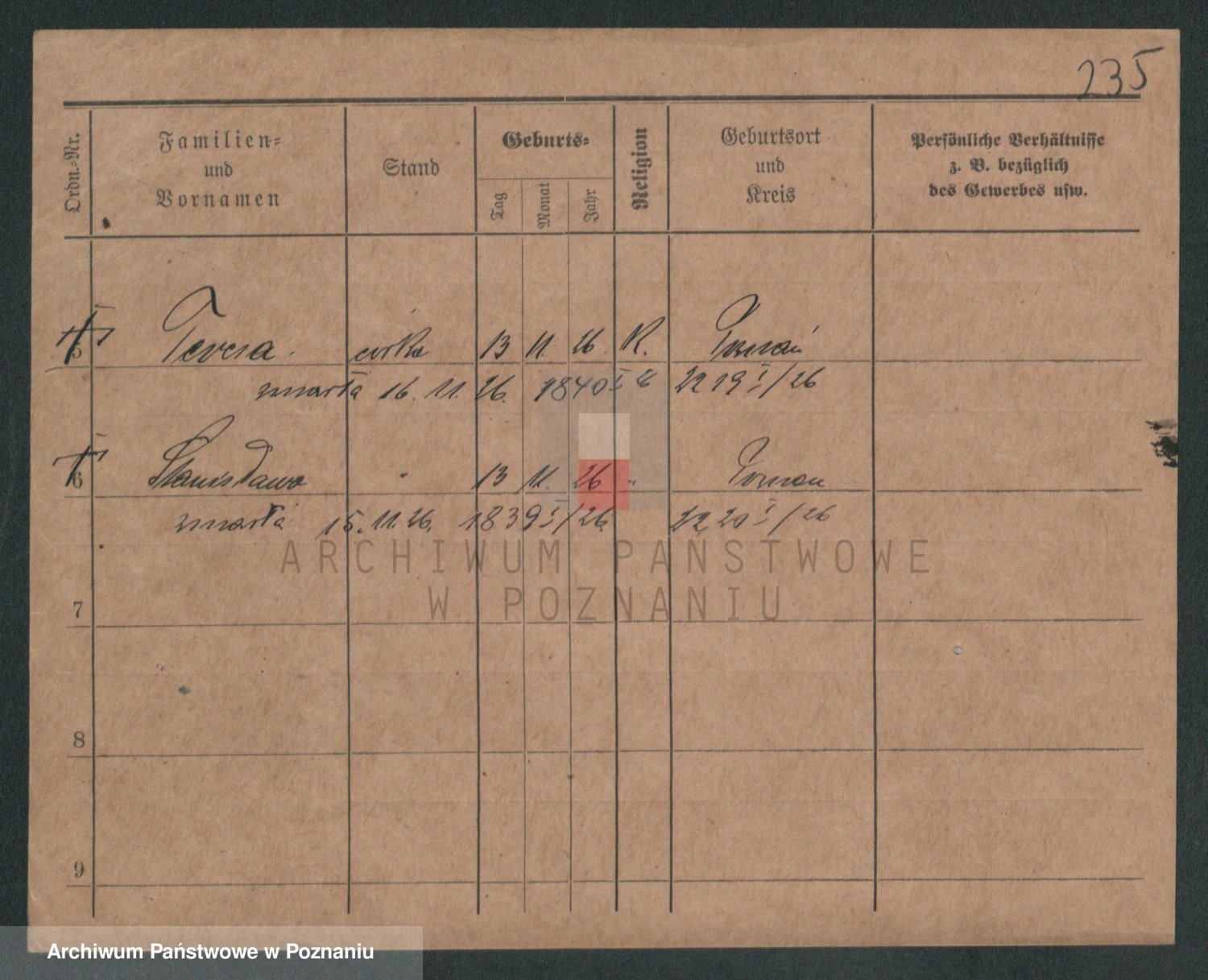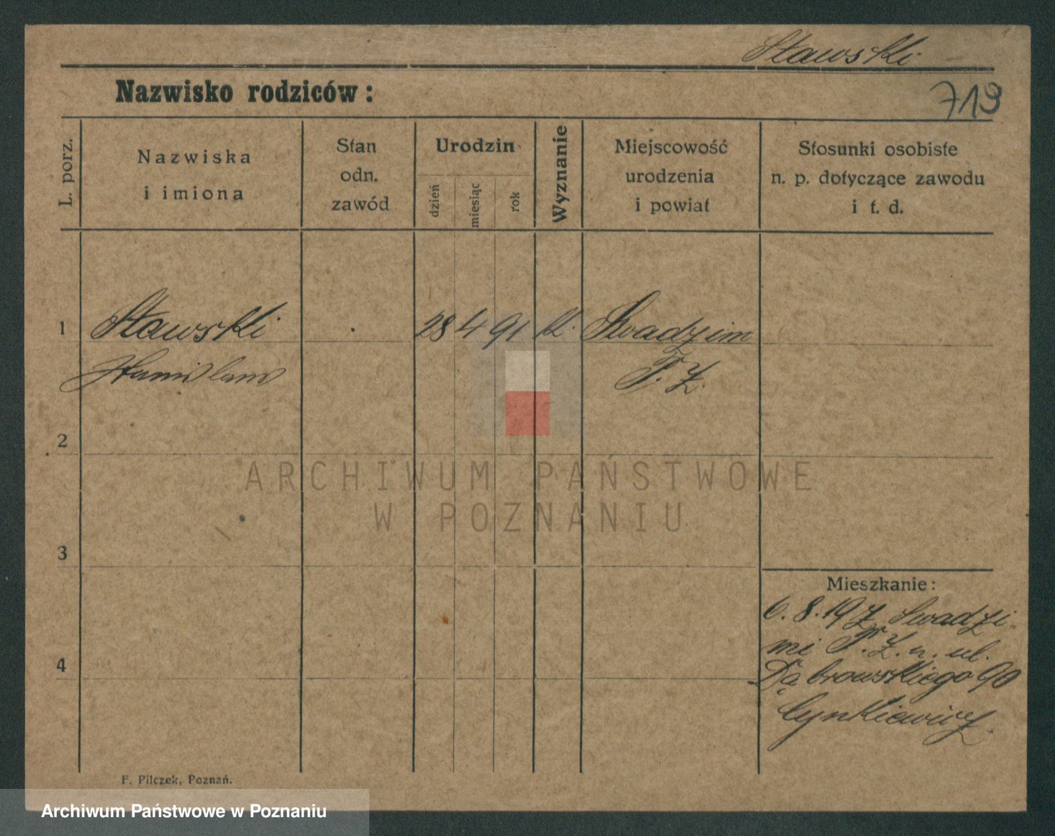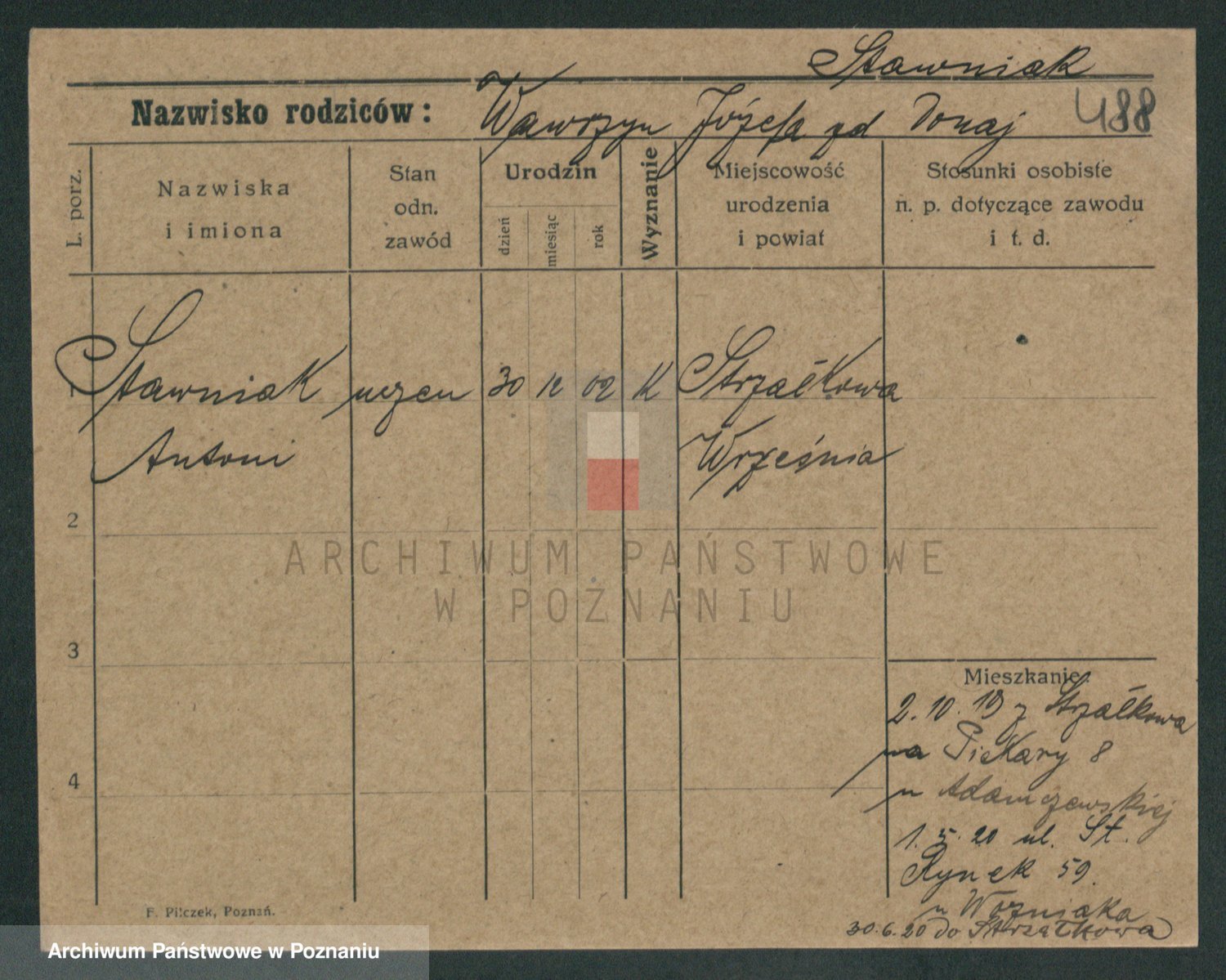 Podgląd karty osobowej dostępny jest po kliknięciu na nazwisko lub ikonkę karty. Można dokonywać powiększenia (ikony na górze) lub przechodzić między kolejnymi skanami (strzałki po bokach).