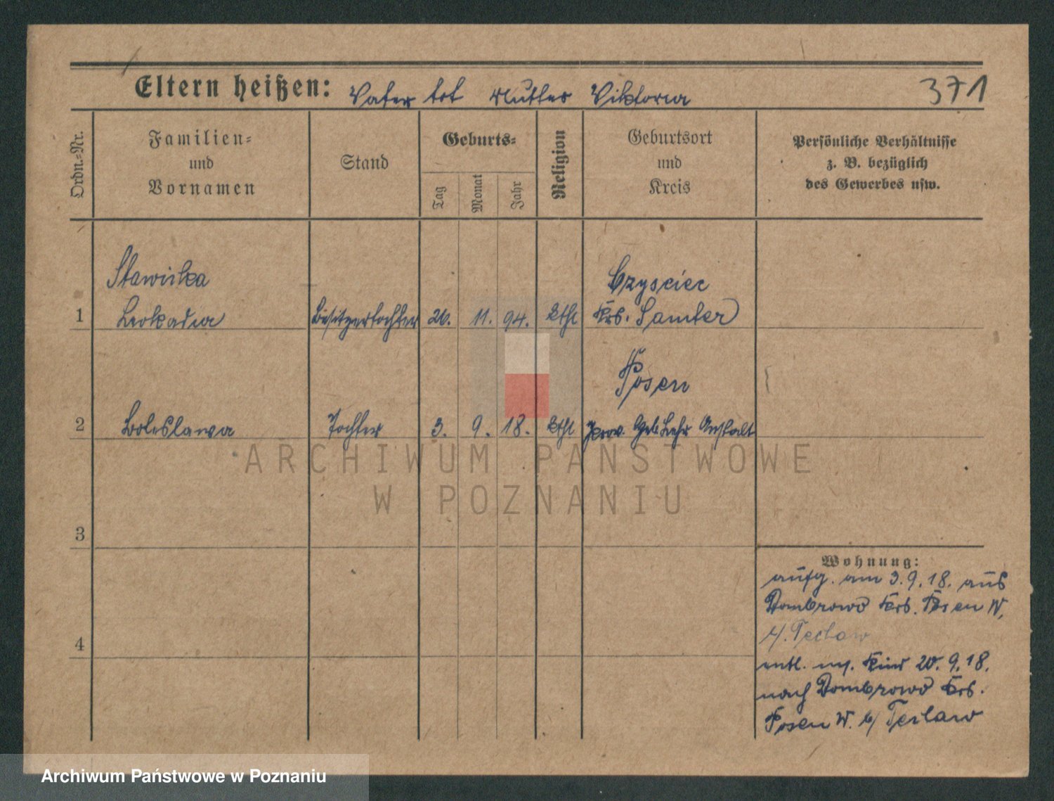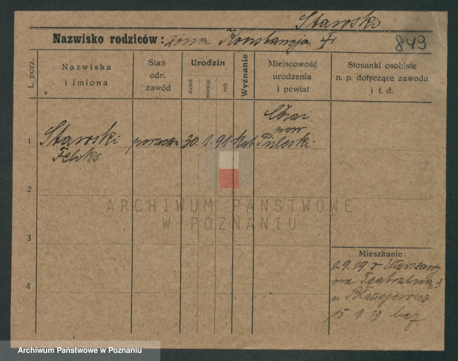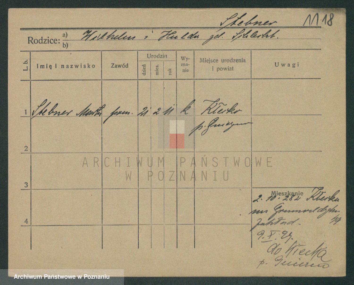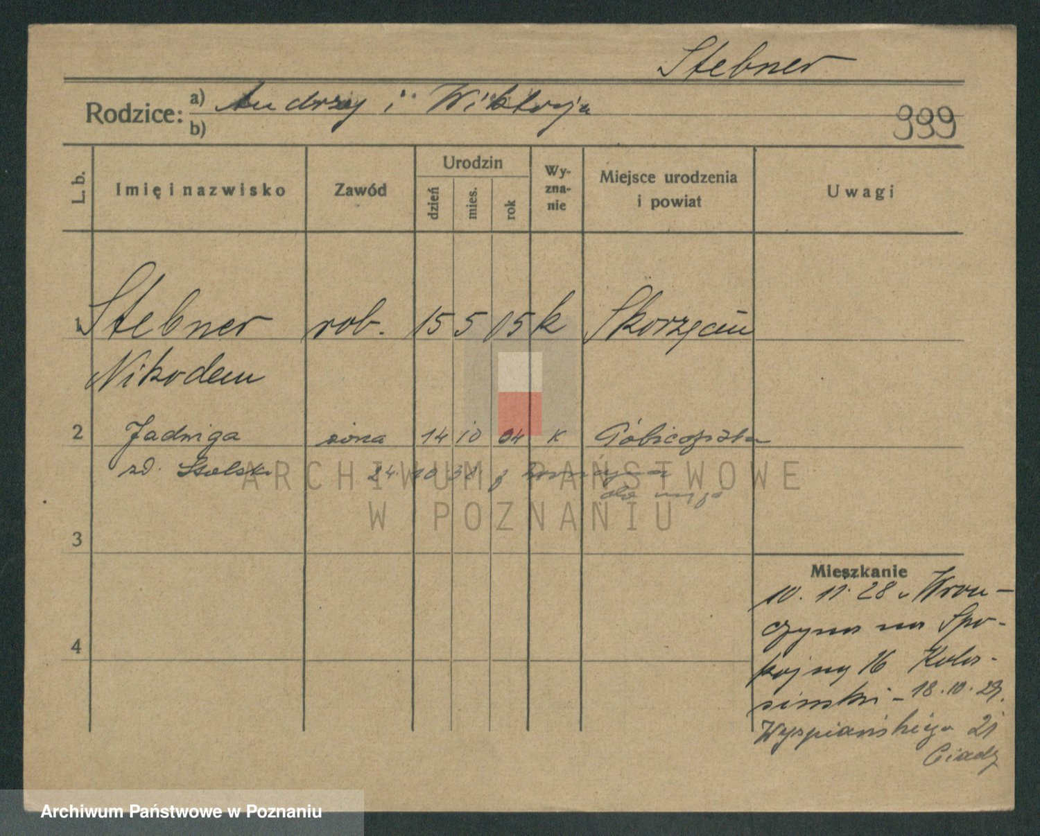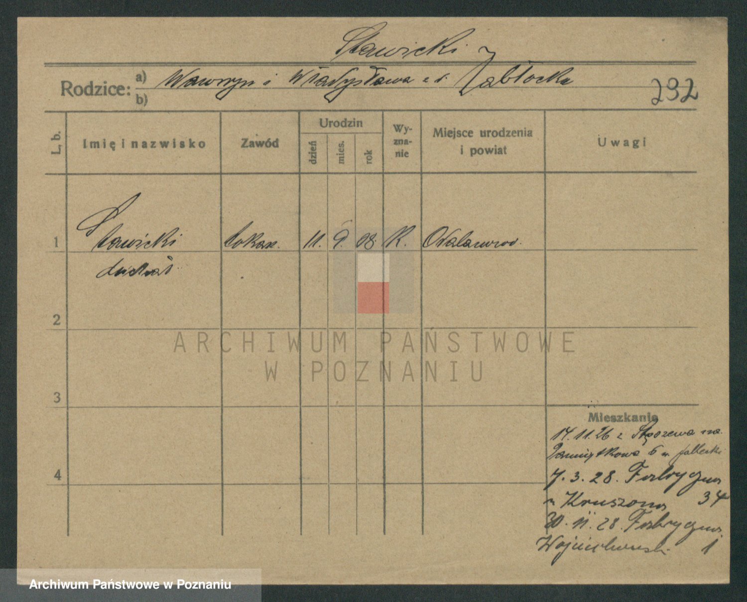 Podgląd karty osobowej dostępny jest po kliknięciu na nazwisko lub ikonkę karty. Można dokonywać powiększenia (ikony na górze) lub przechodzić między kolejnymi skanami (strzałki po bokach).