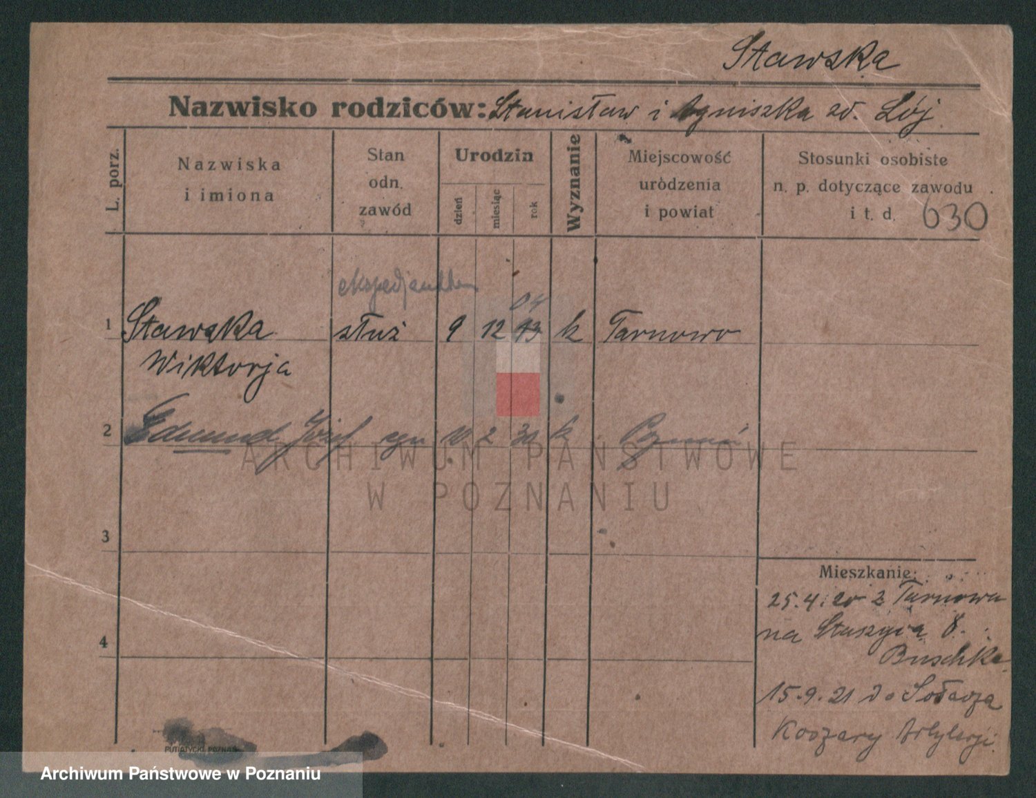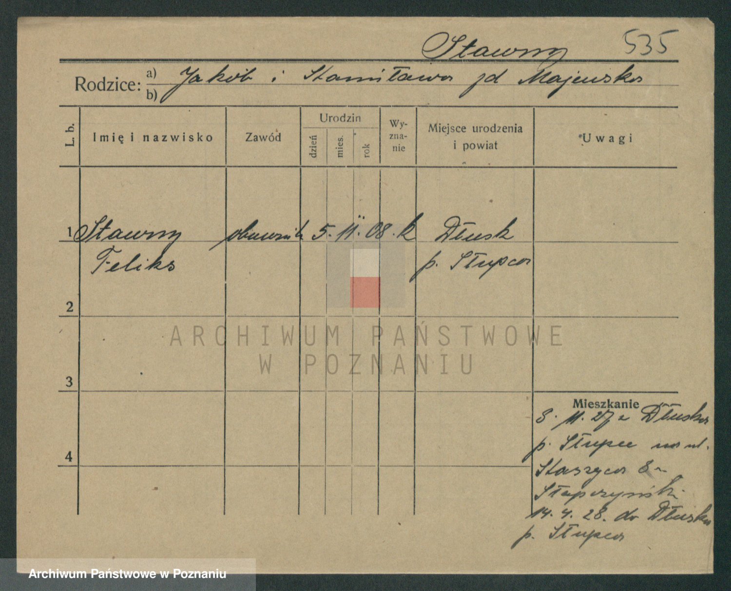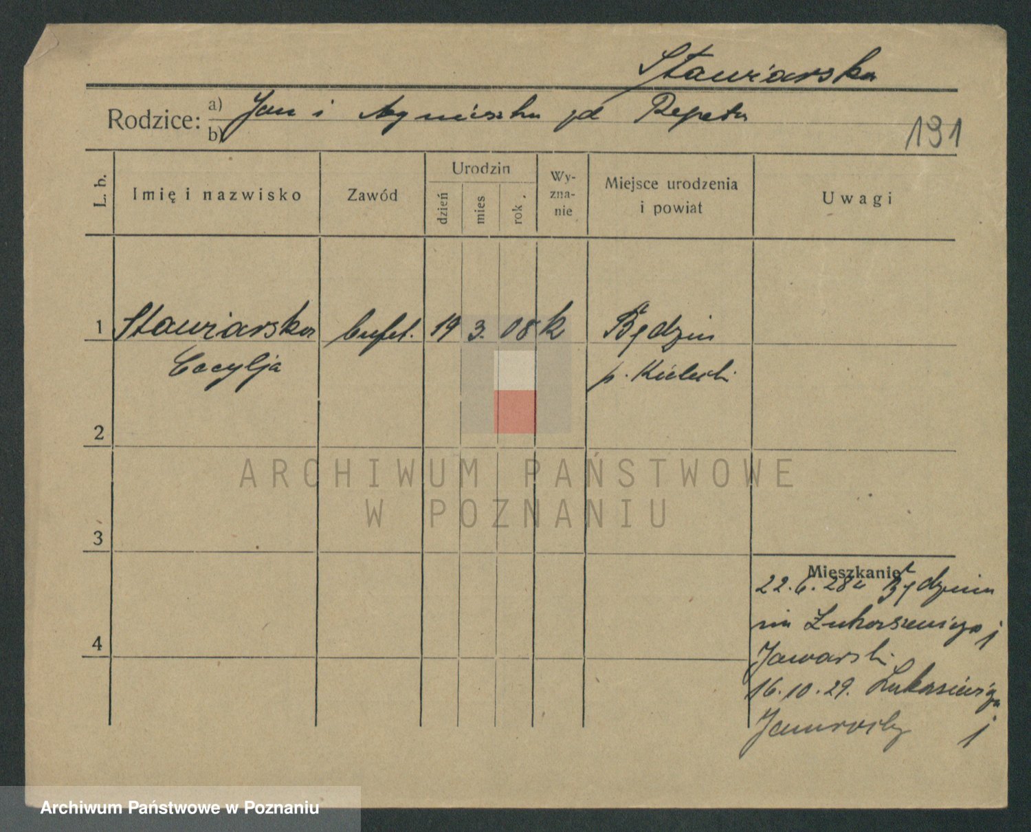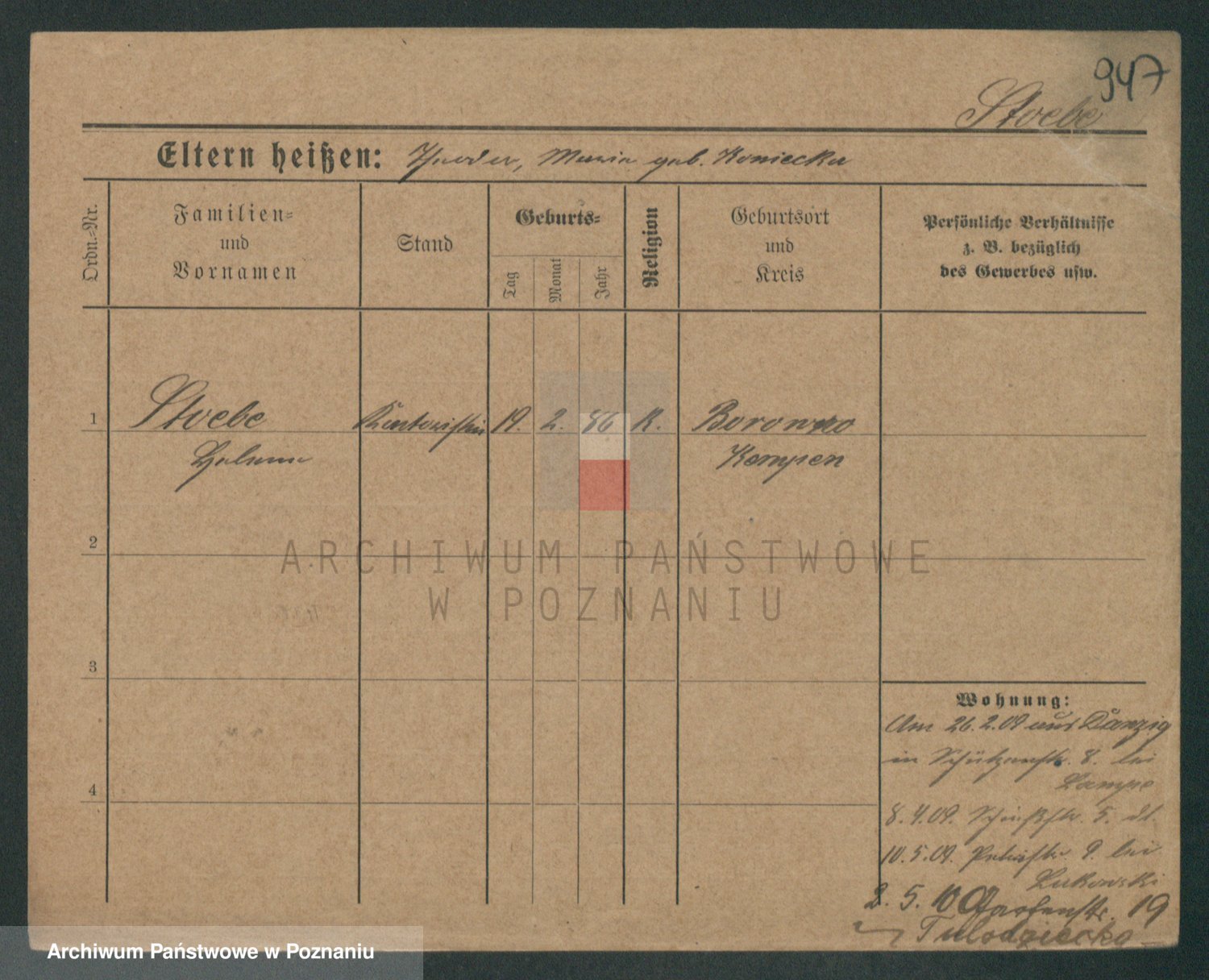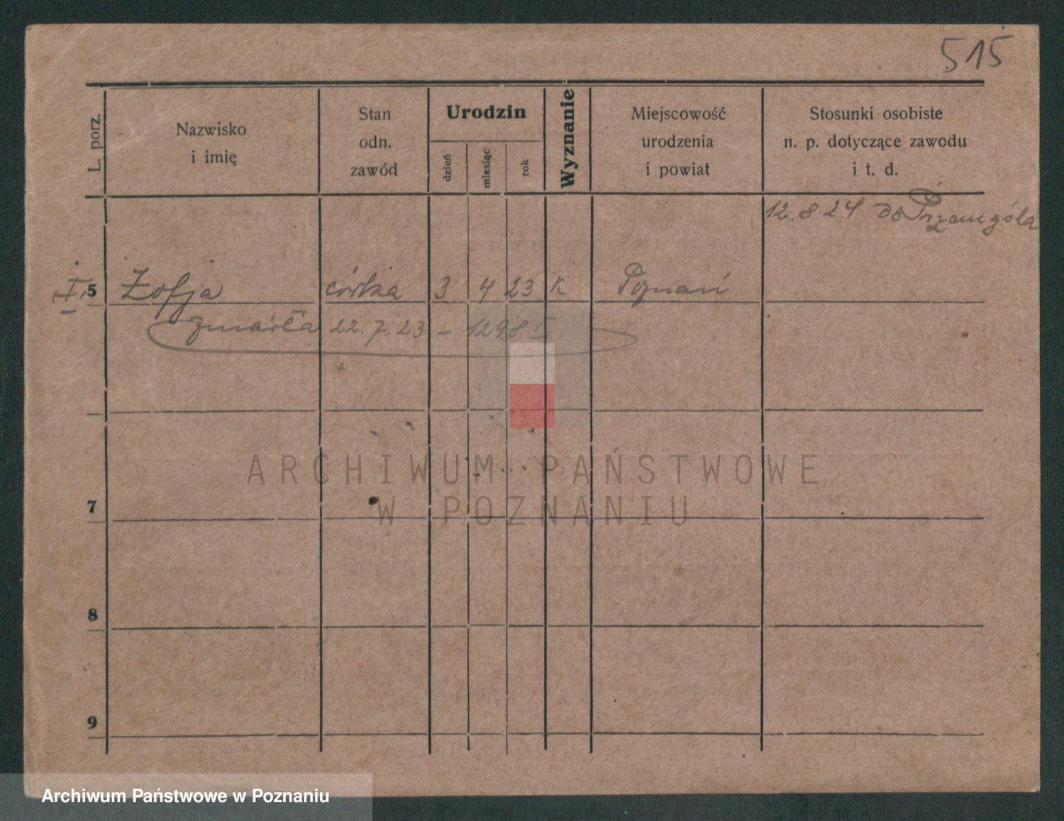 Podgląd karty osobowej dostępny jest po kliknięciu na nazwisko lub ikonkę karty. Można dokonywać powiększenia (ikony na górze) lub przechodzić między kolejnymi skanami (strzałki po bokach).
