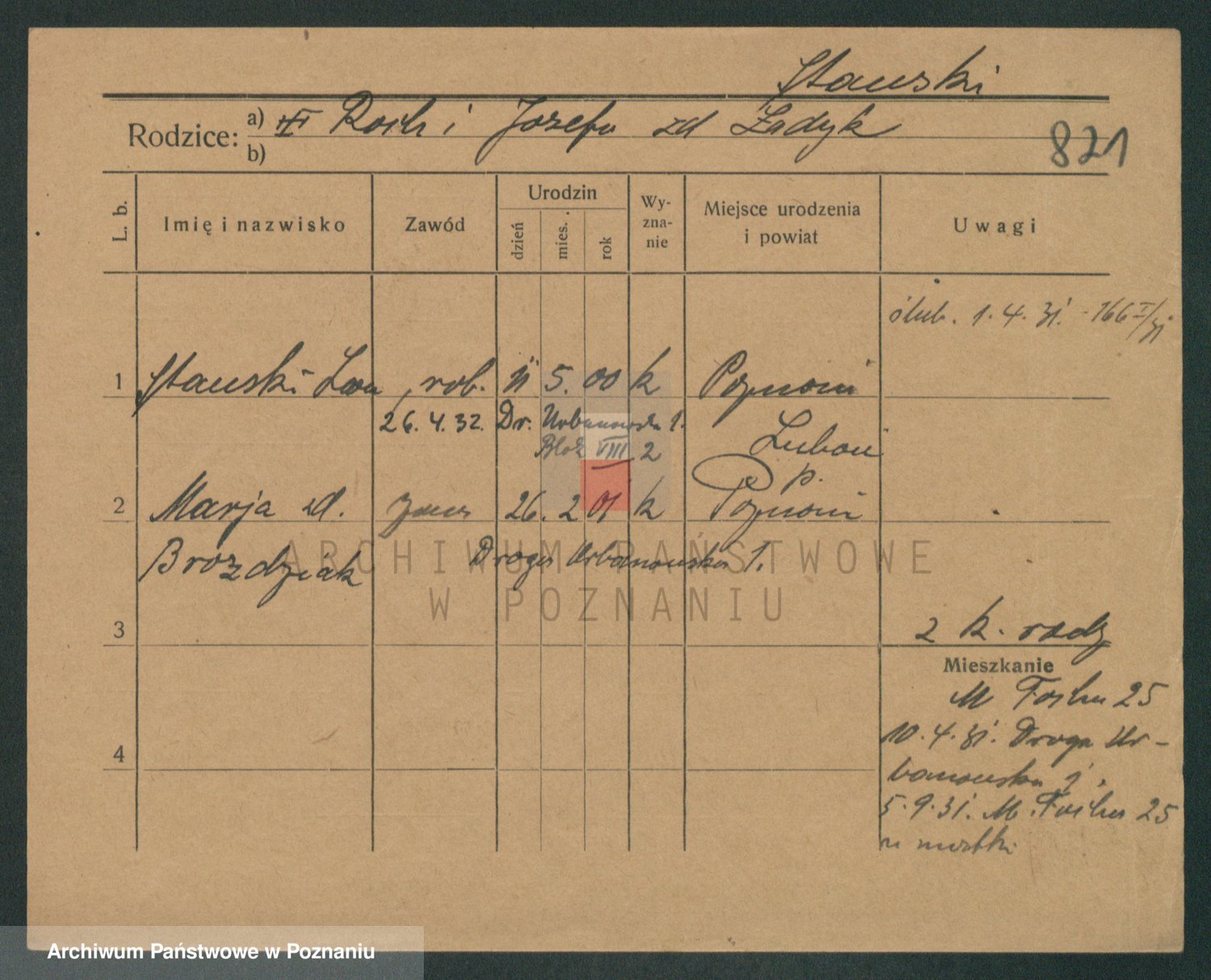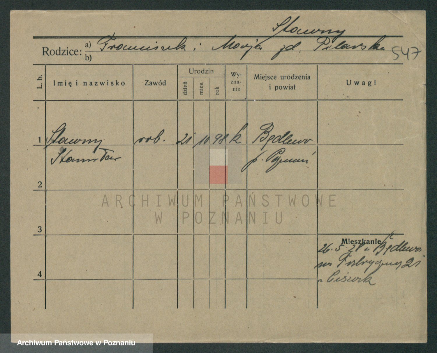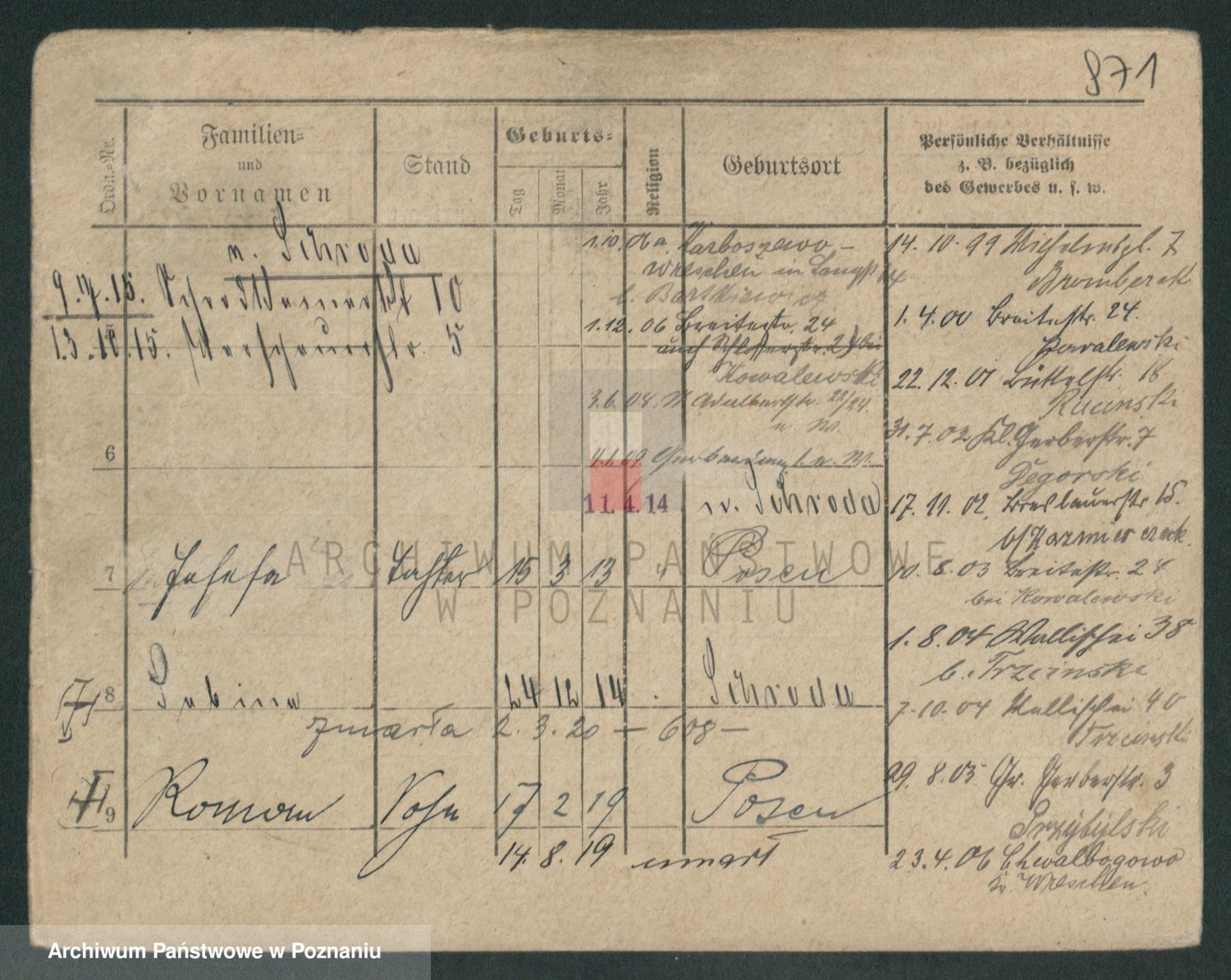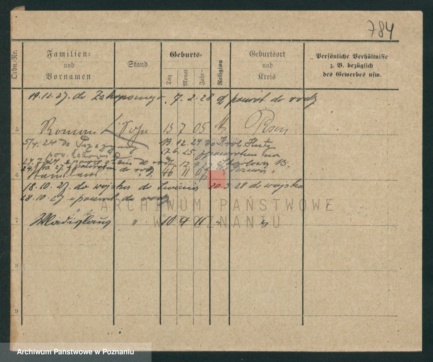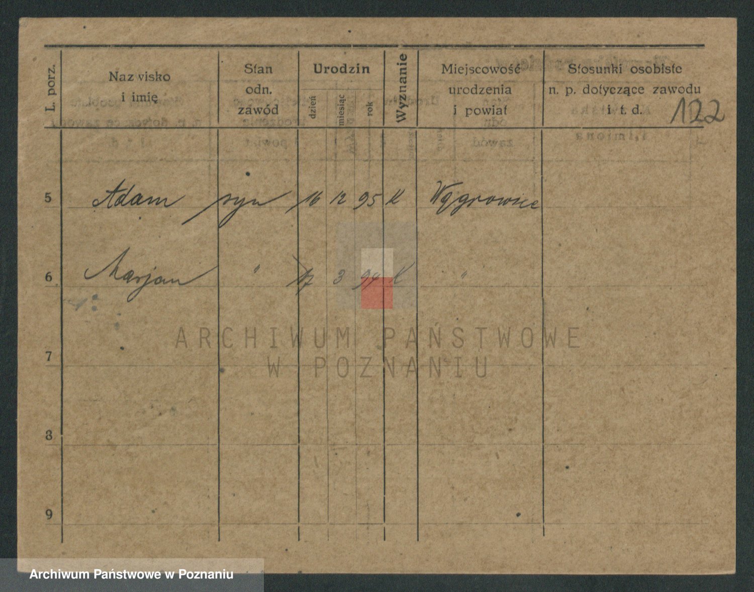 Podgląd karty osobowej dostępny jest po kliknięciu na nazwisko lub ikonkę karty. Można dokonywać powiększenia (ikony na górze) lub przechodzić między kolejnymi skanami (strzałki po bokach).