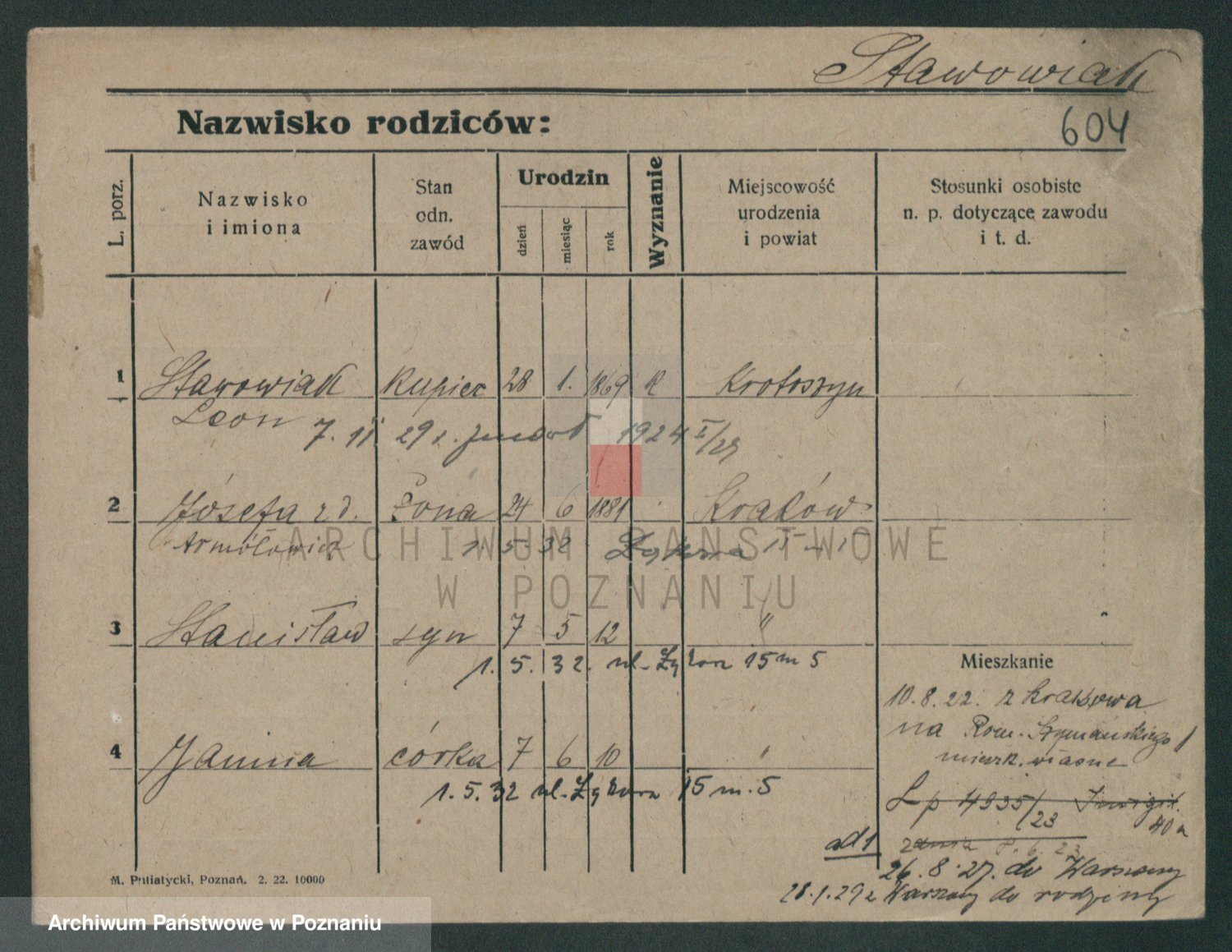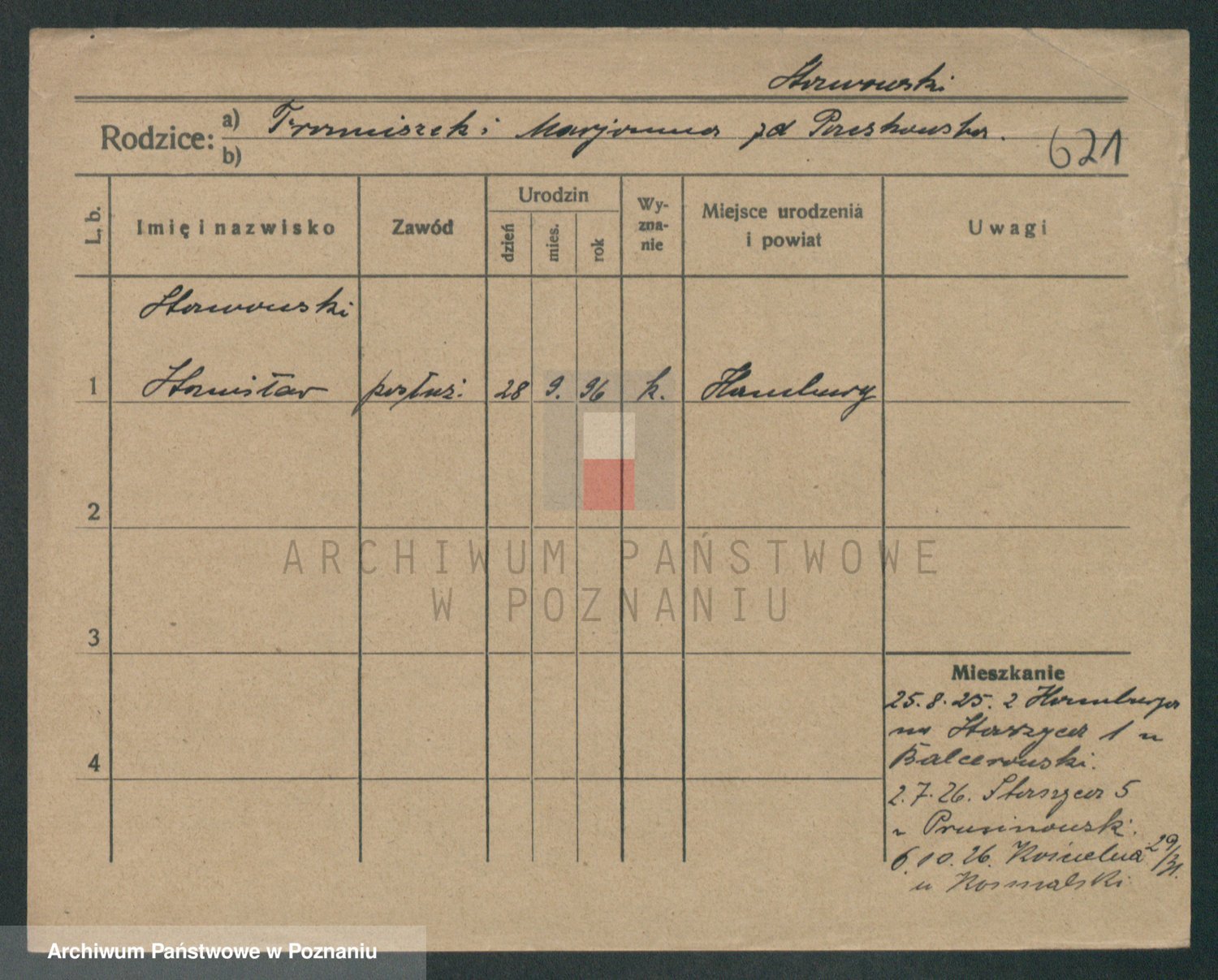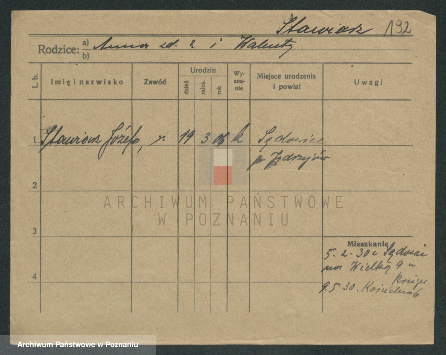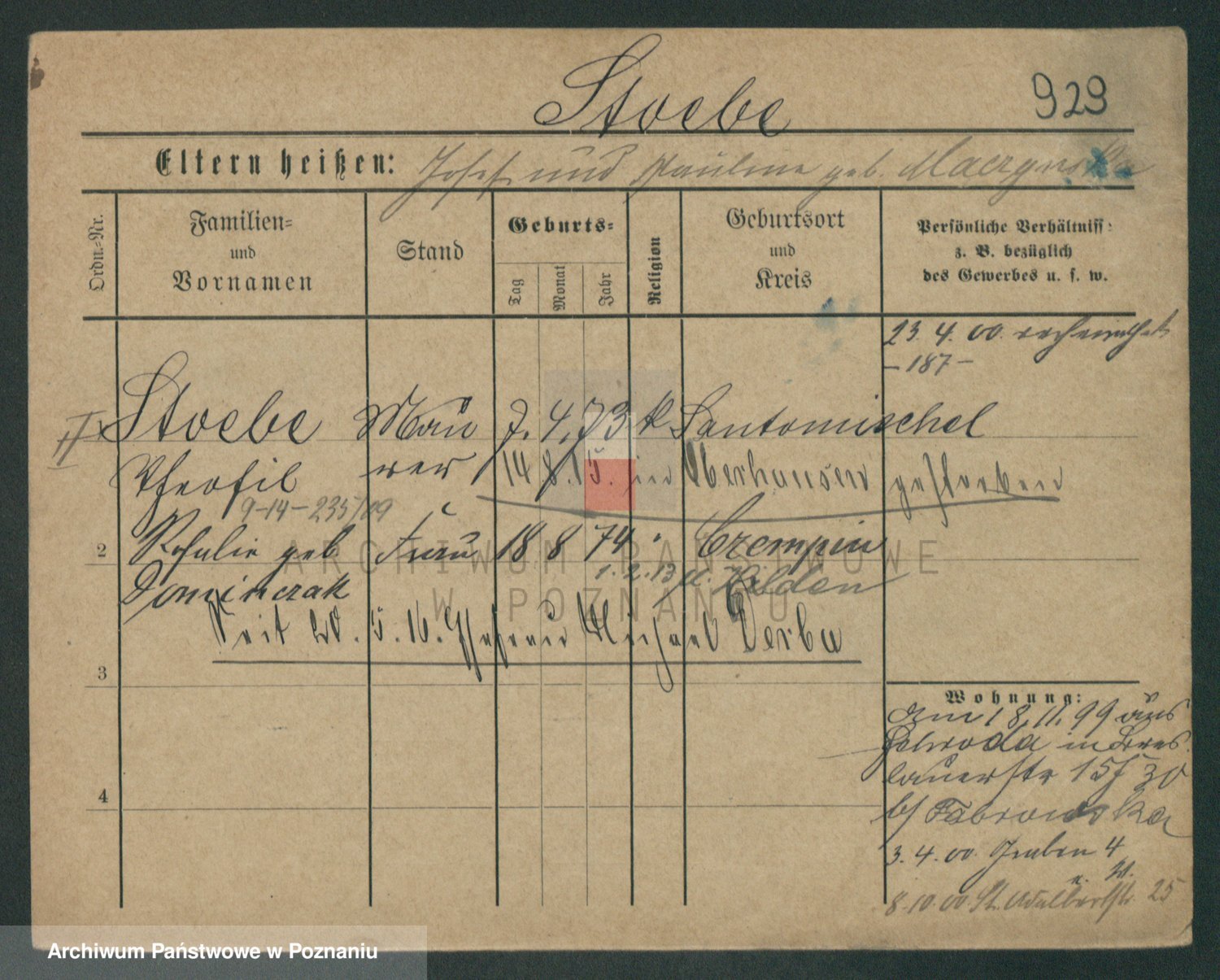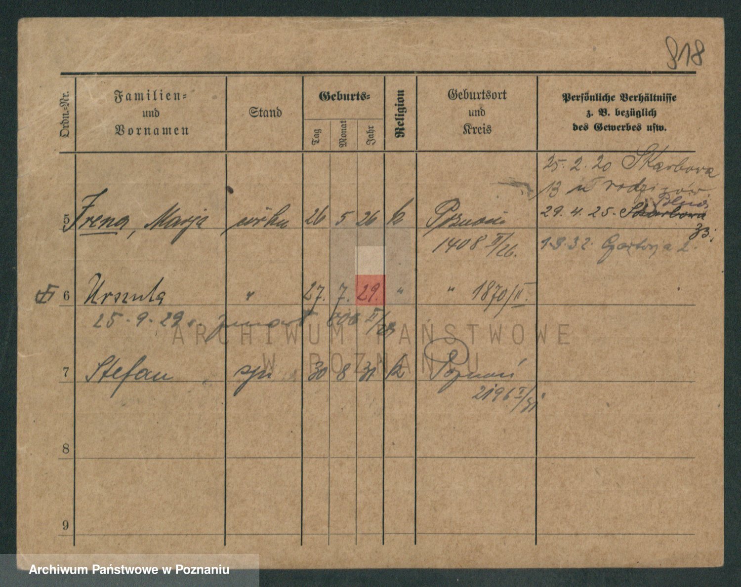 Podgląd karty osobowej dostępny jest po kliknięciu na nazwisko lub ikonkę karty. Można dokonywać powiększenia (ikony na górze) lub przechodzić między kolejnymi skanami (strzałki po bokach).