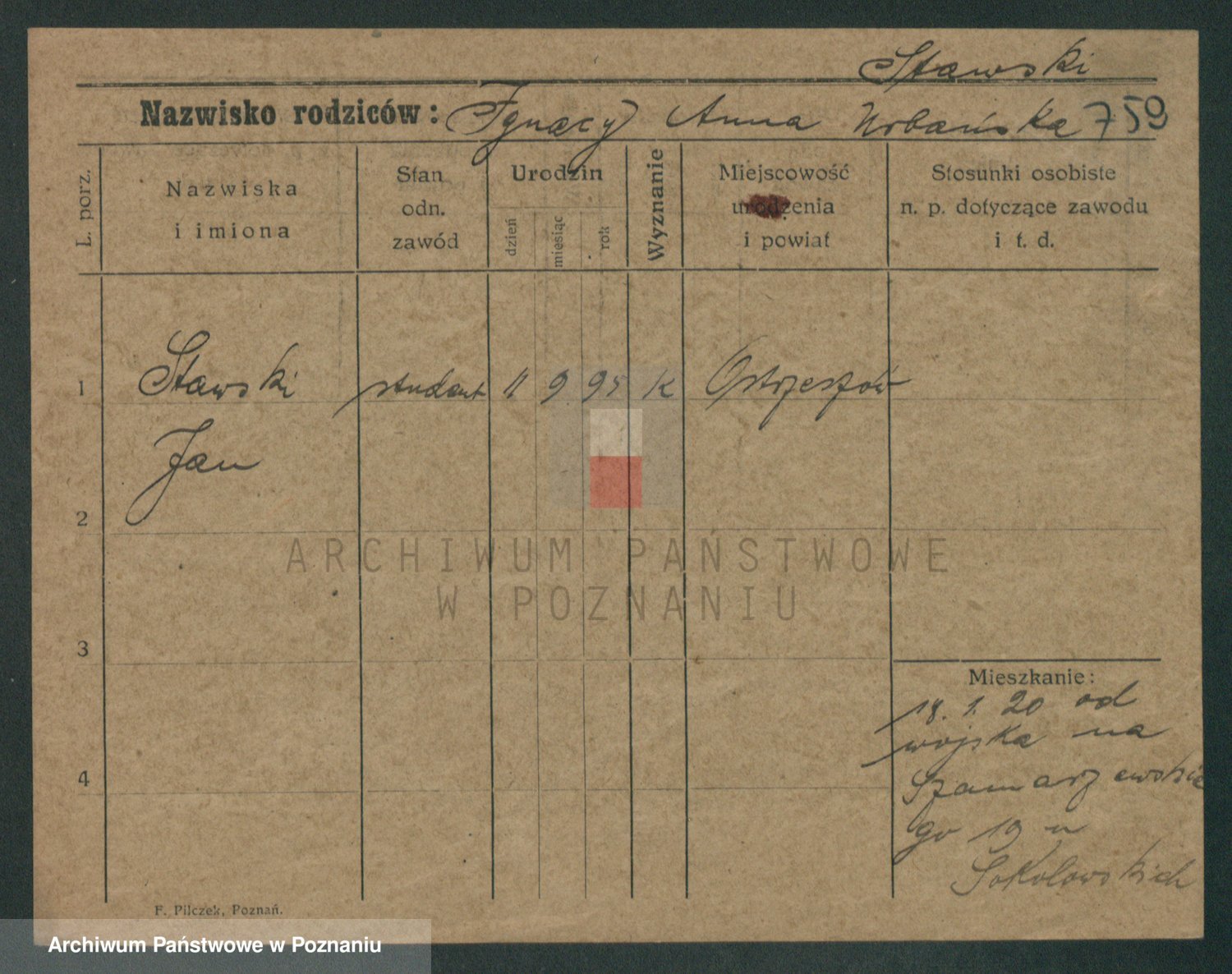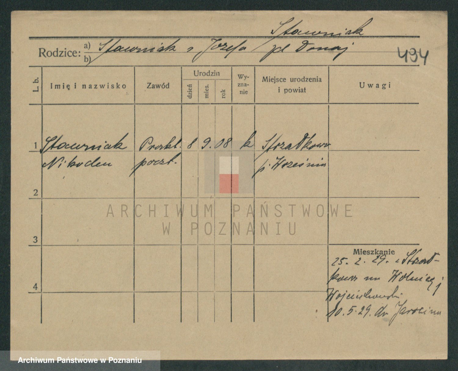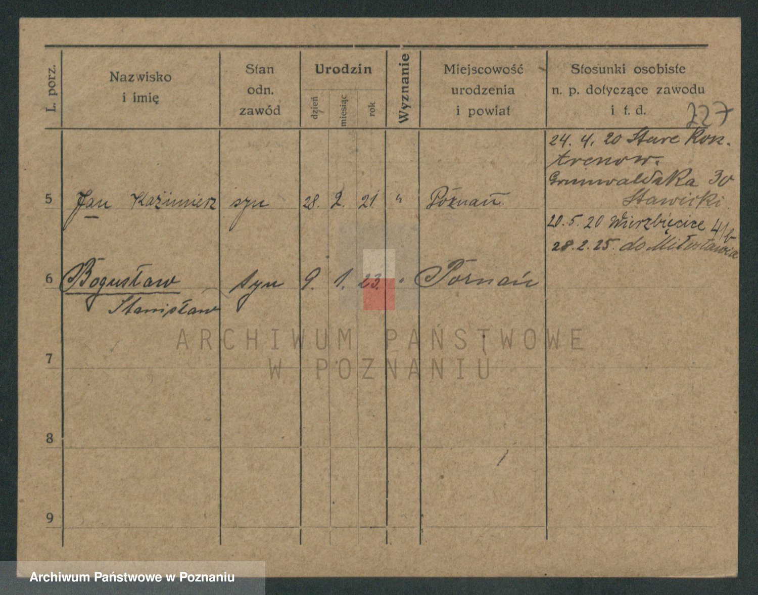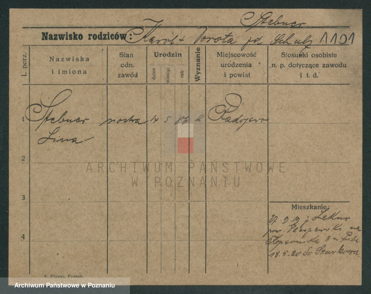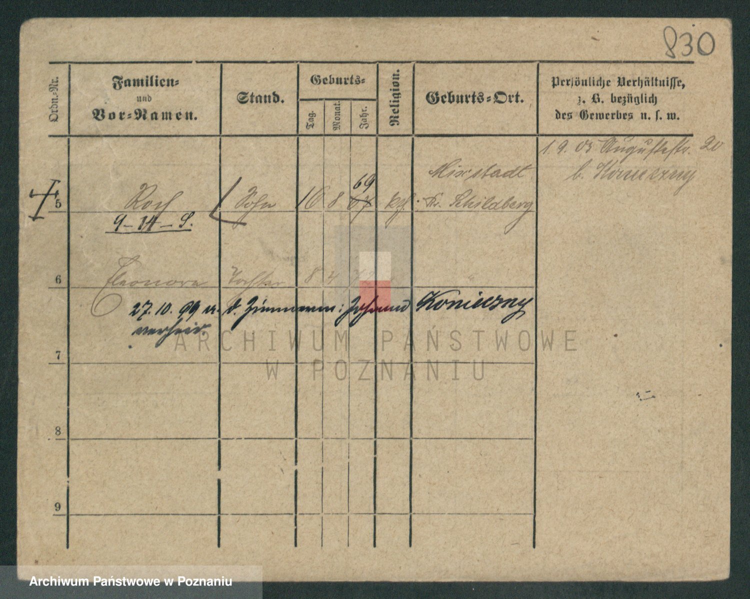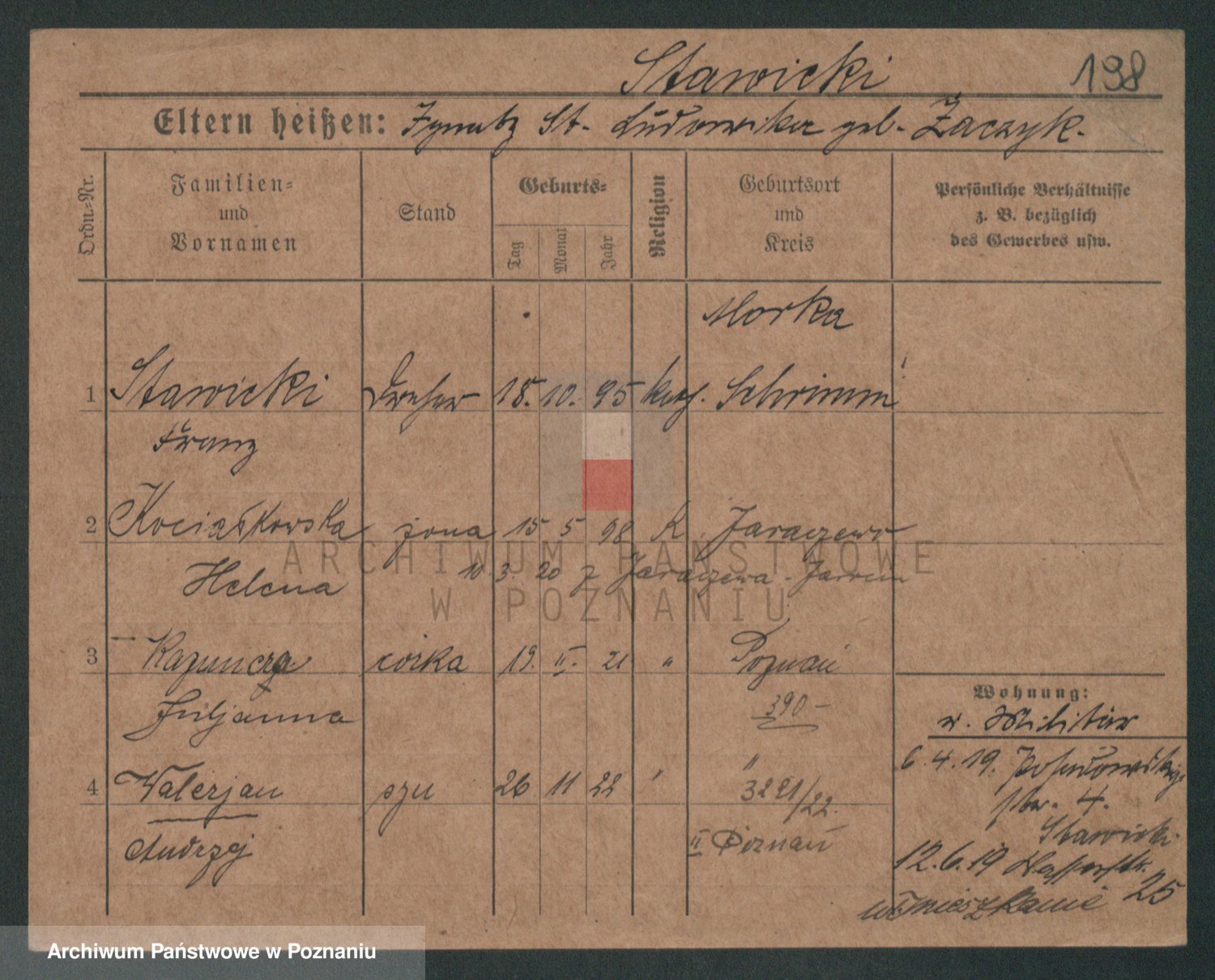 Podgląd karty osobowej dostępny jest po kliknięciu na nazwisko lub ikonkę karty. Można dokonywać powiększenia (ikony na górze) lub przechodzić między kolejnymi skanami (strzałki po bokach).