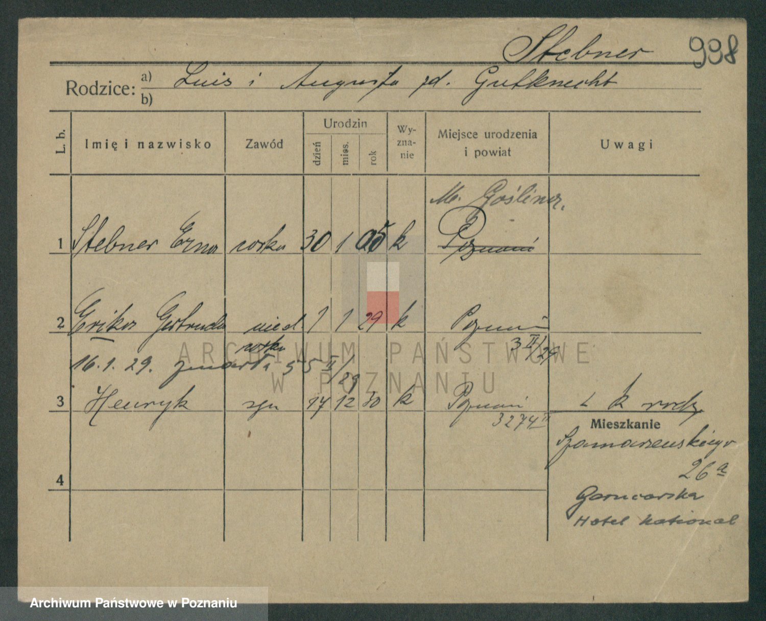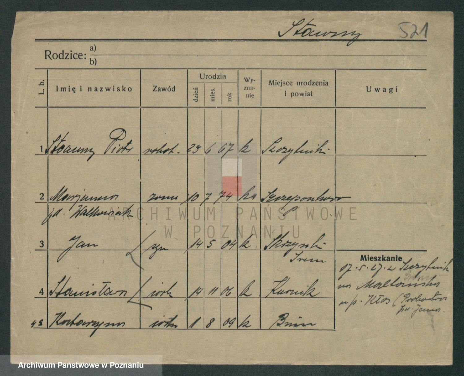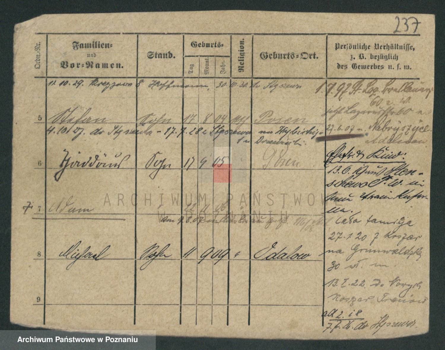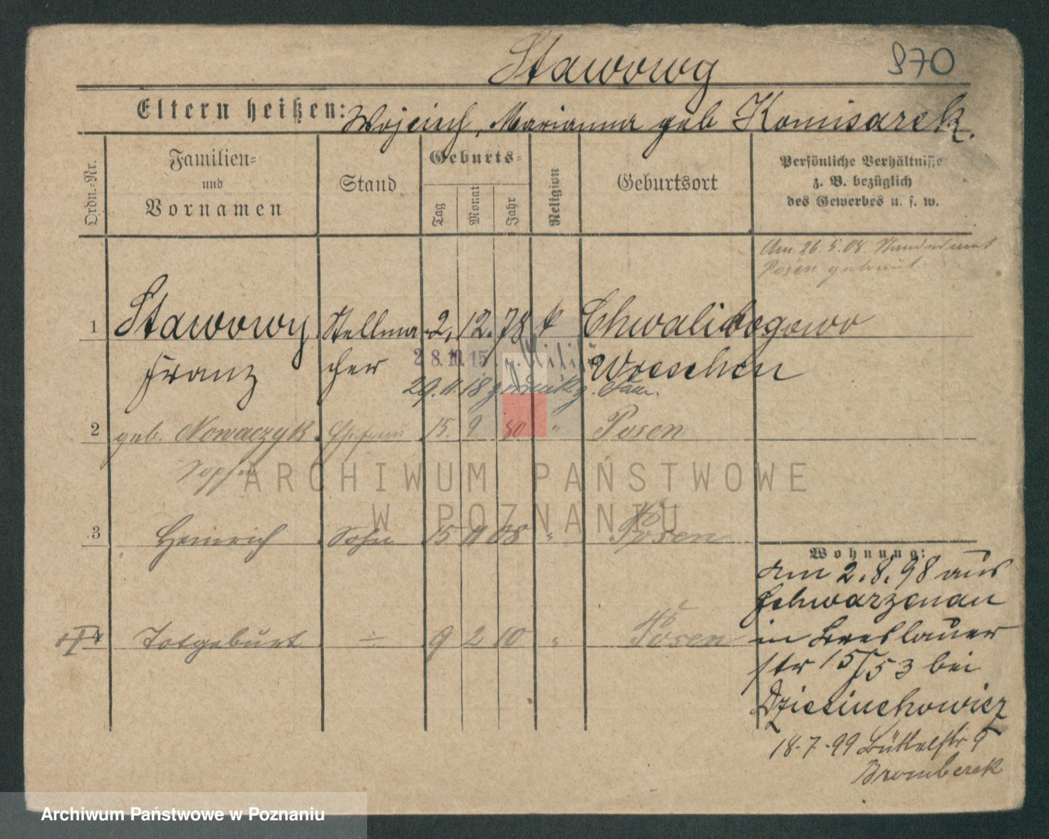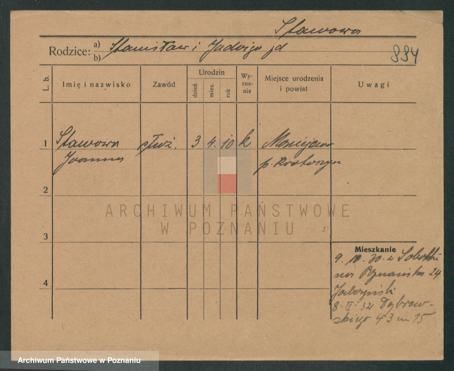 Podgląd karty osobowej dostępny jest po kliknięciu na nazwisko lub ikonkę karty. Można dokonywać powiększenia (ikony na górze) lub przechodzić między kolejnymi skanami (strzałki po bokach).