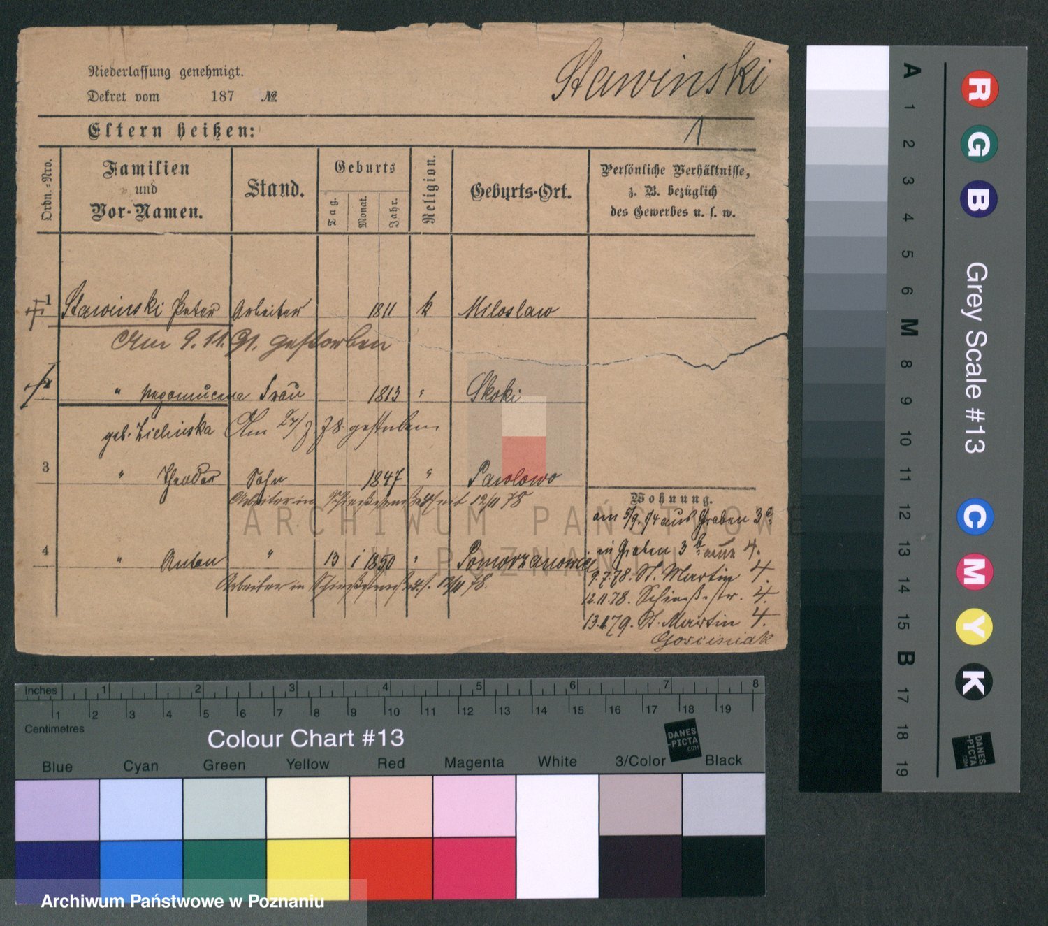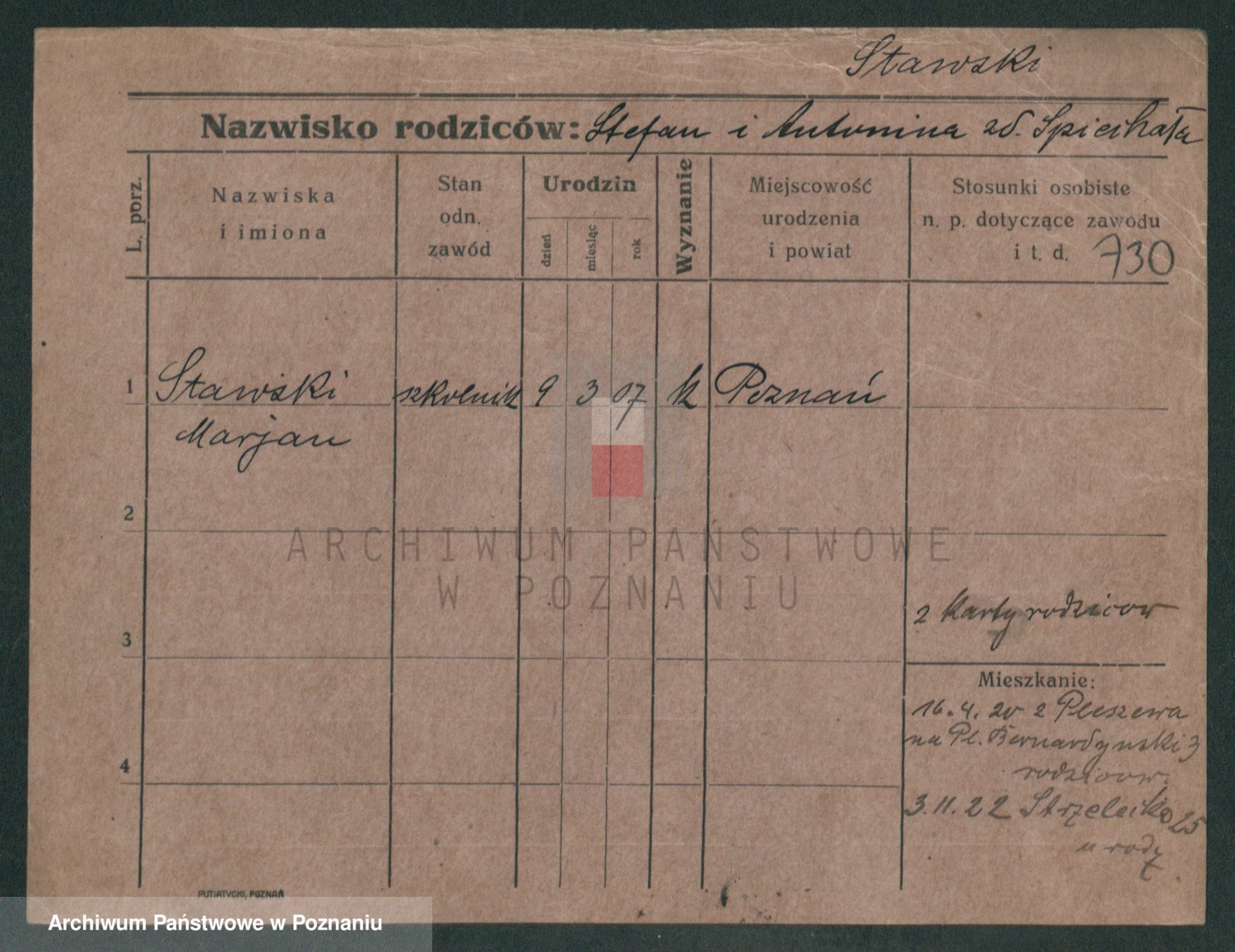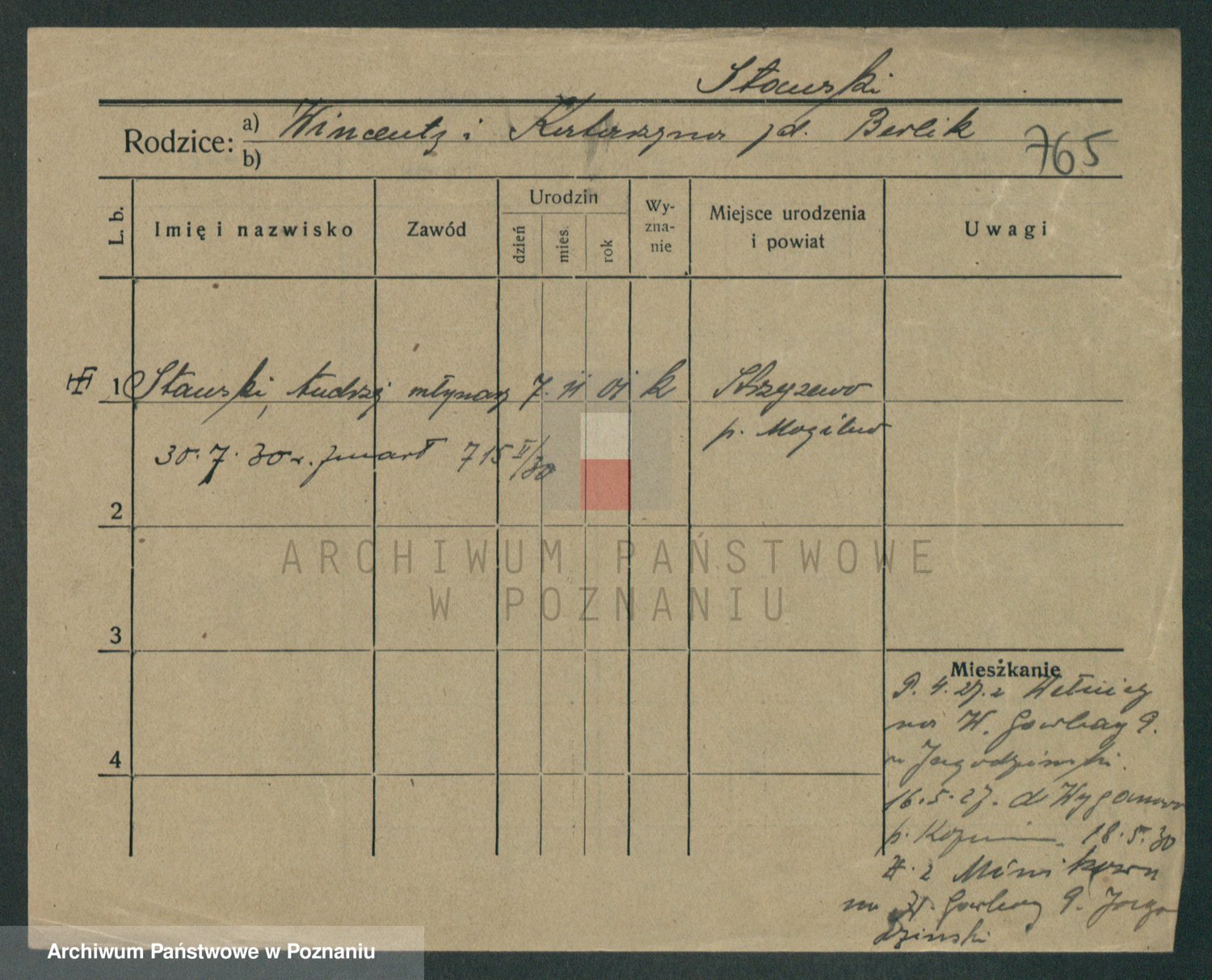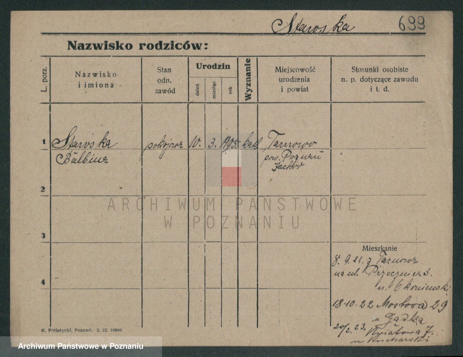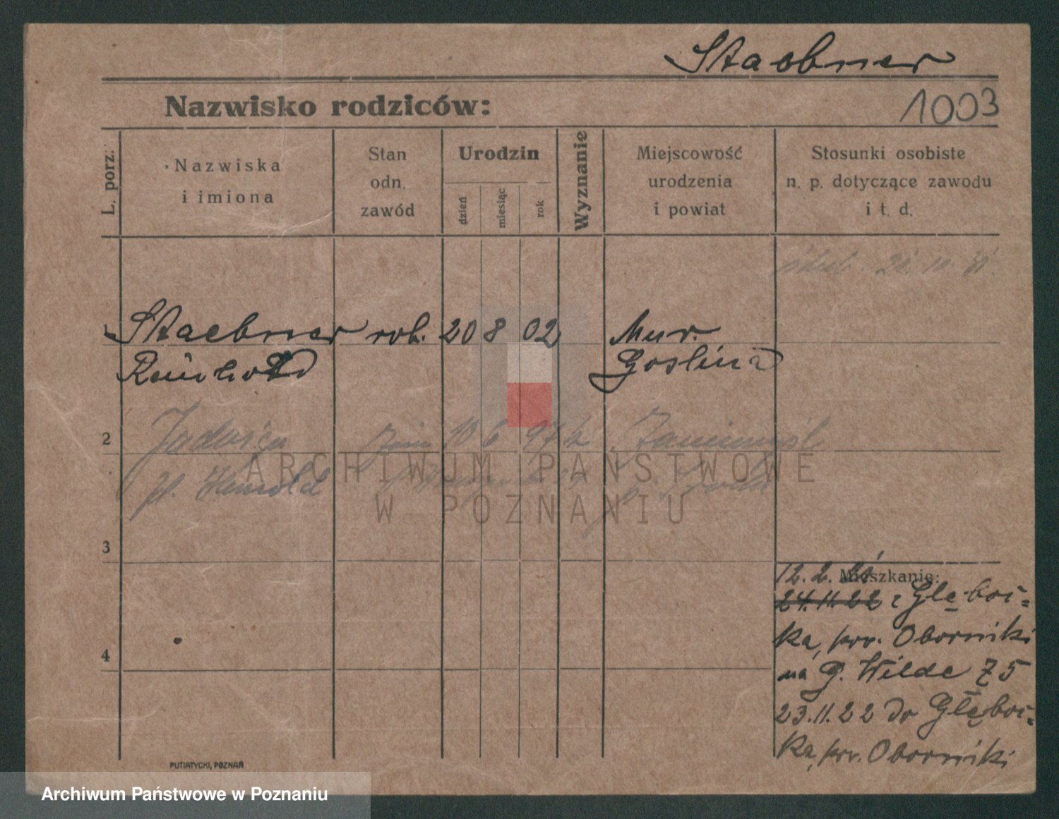 Podgląd karty osobowej dostępny jest po kliknięciu na nazwisko lub ikonkę karty. Można dokonywać powiększenia (ikony na górze) lub przechodzić między kolejnymi skanami (strzałki po bokach).