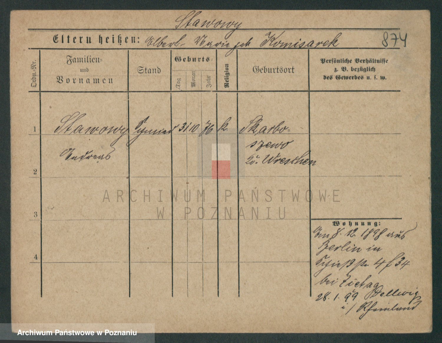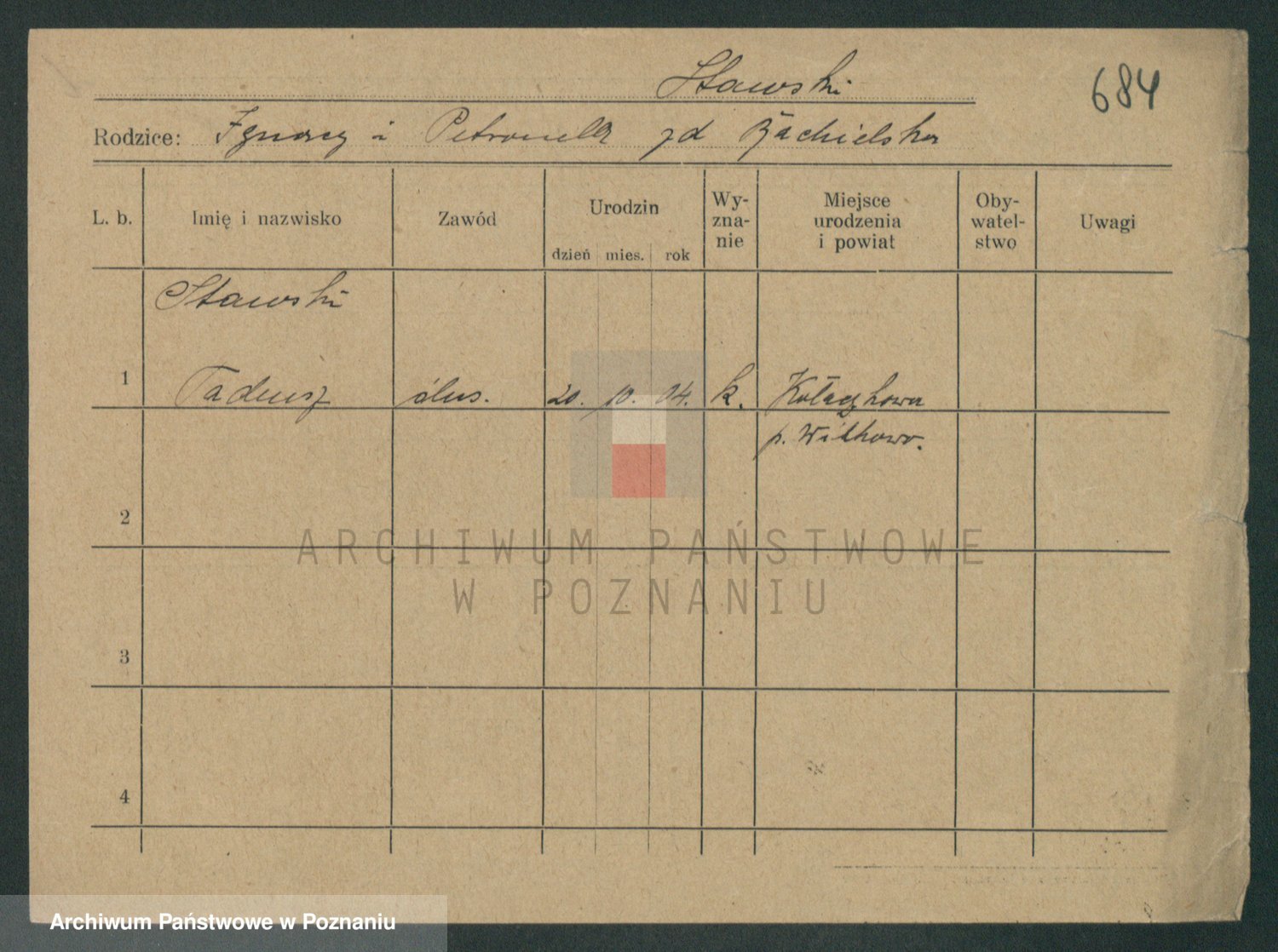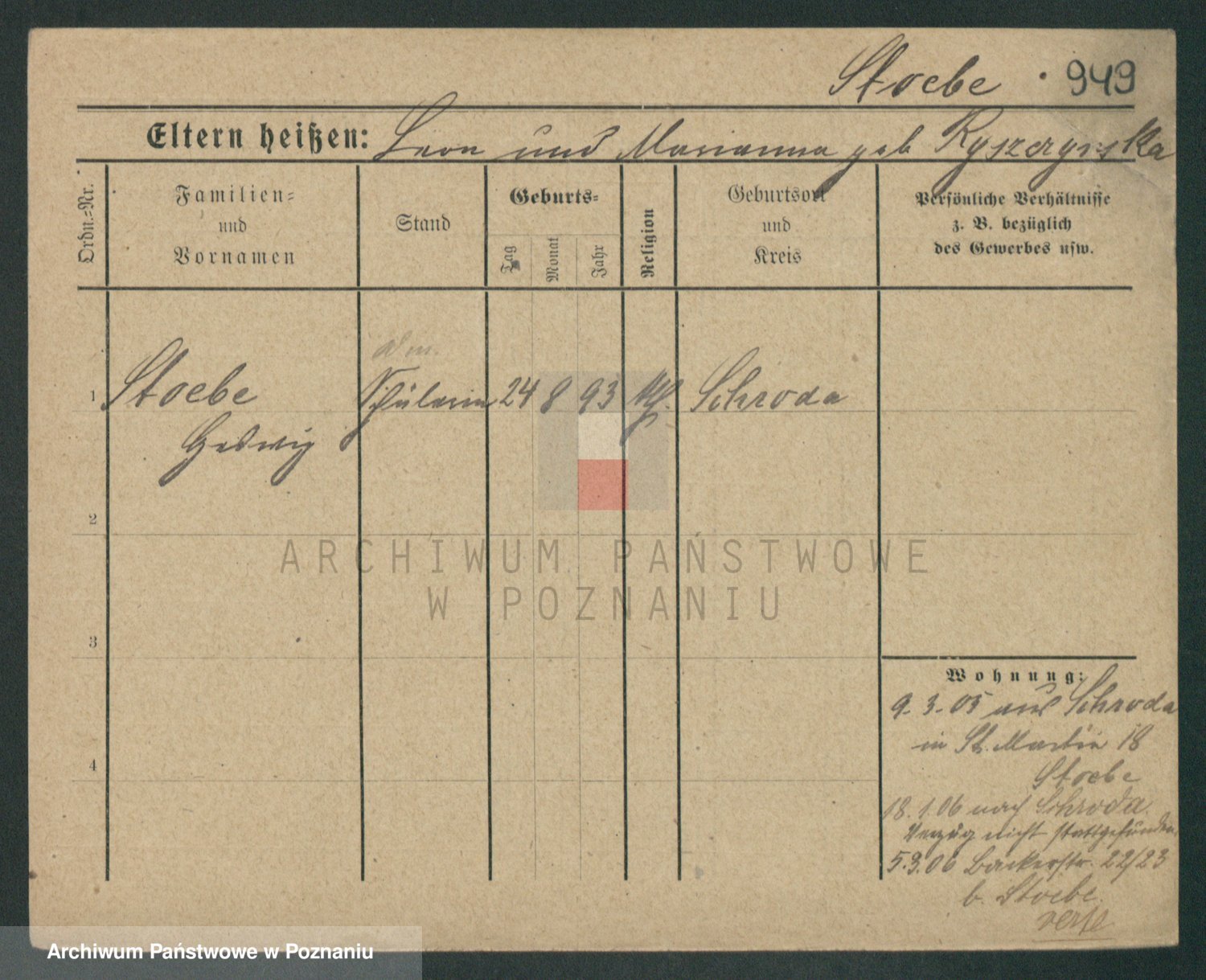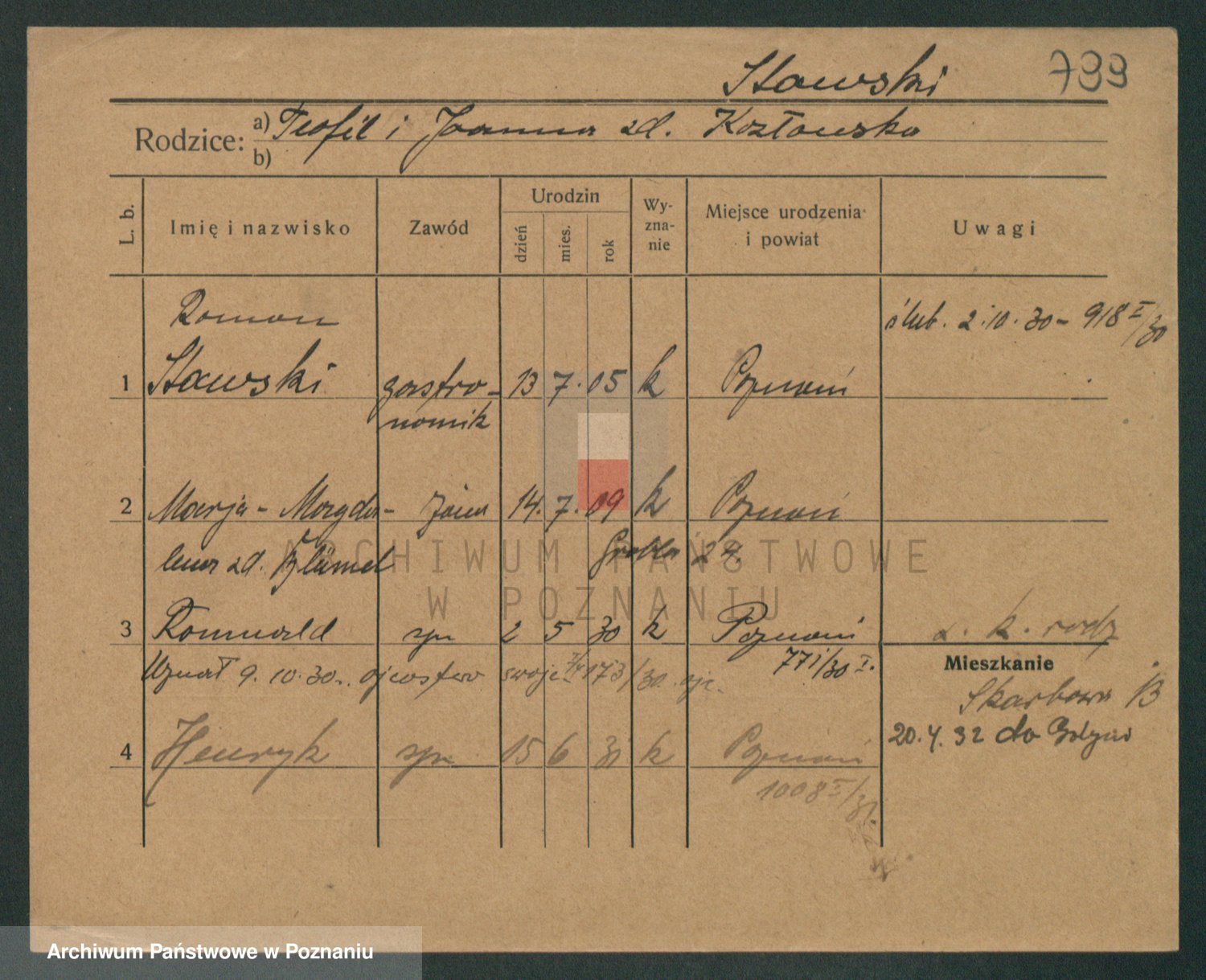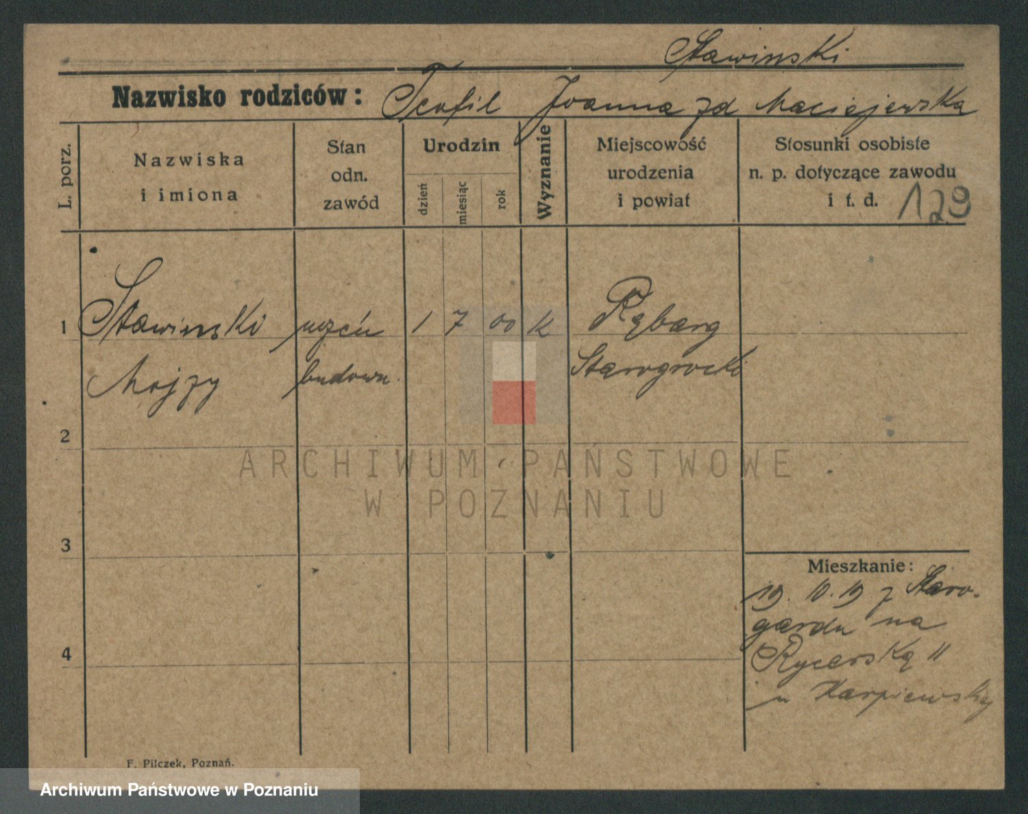 Podgląd karty osobowej dostępny jest po kliknięciu na nazwisko lub ikonkę karty. Można dokonywać powiększenia (ikony na górze) lub przechodzić między kolejnymi skanami (strzałki po bokach).