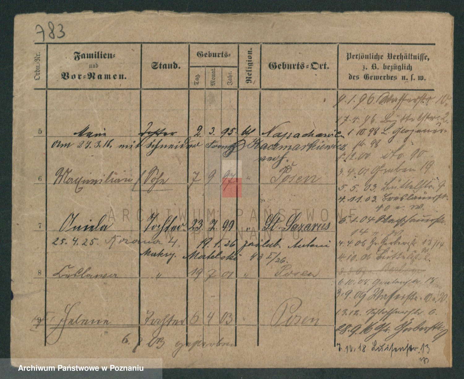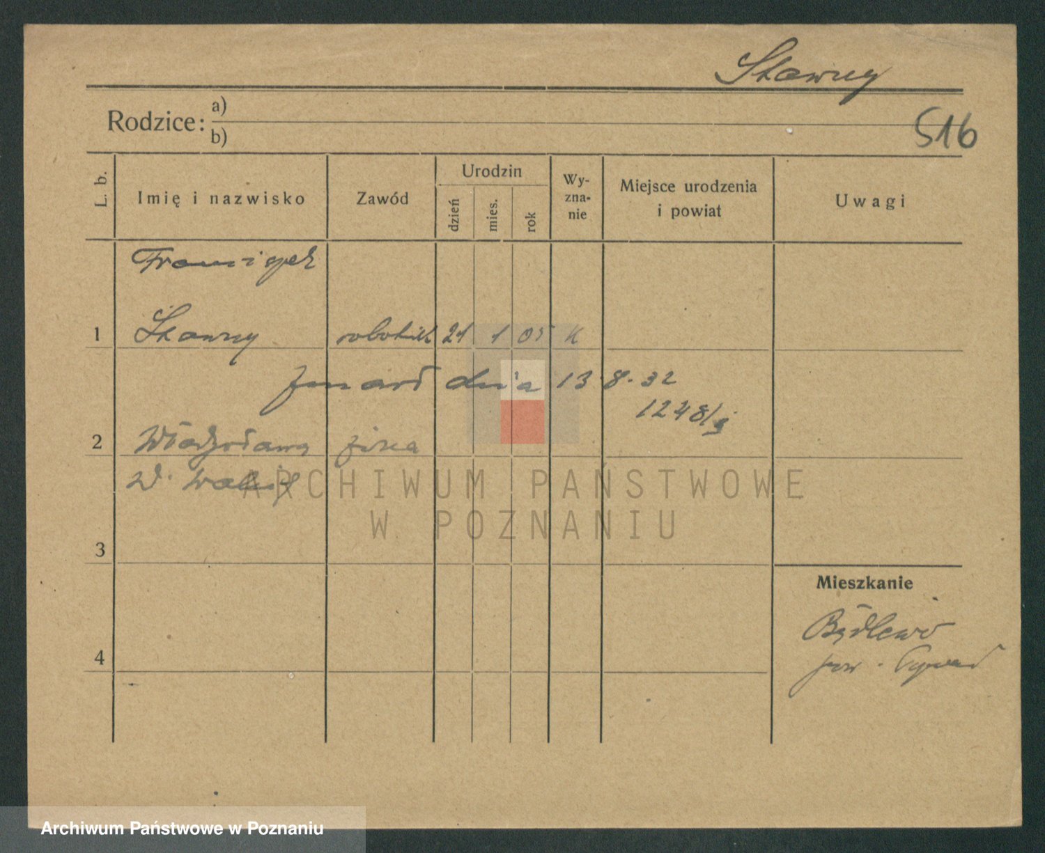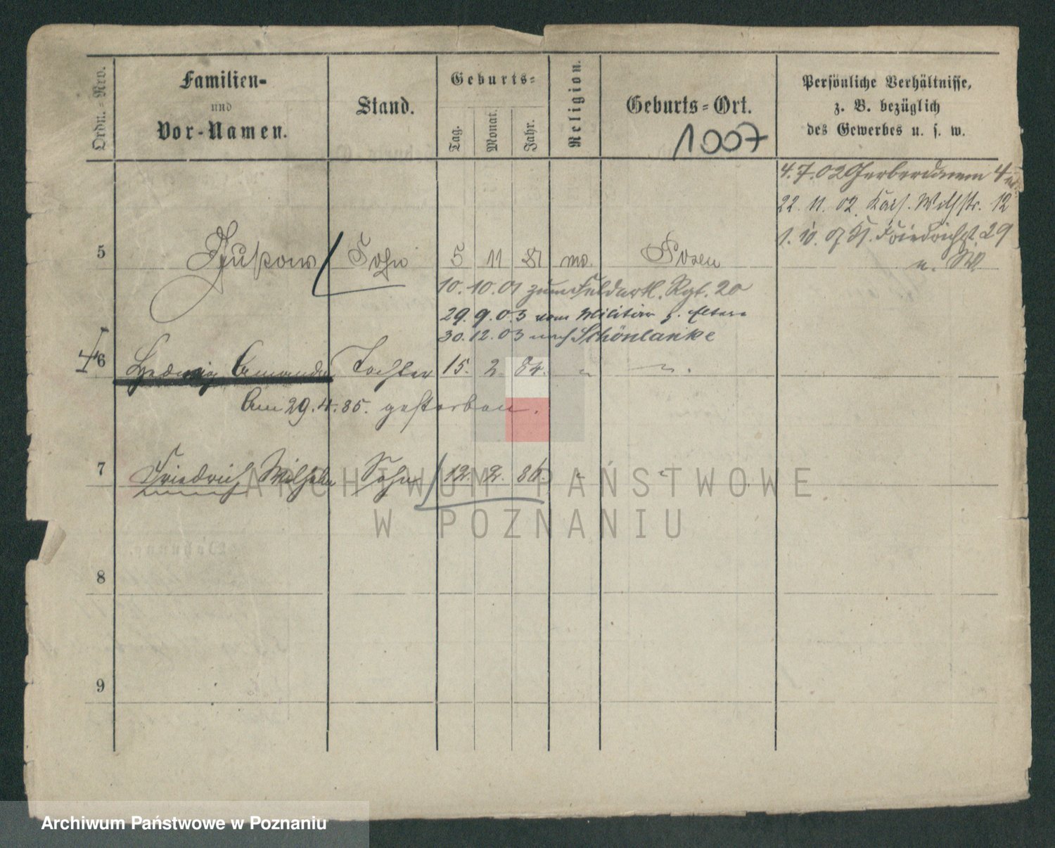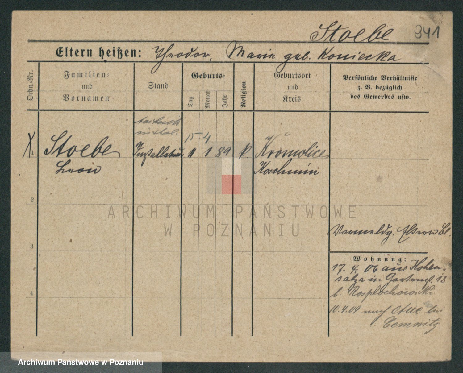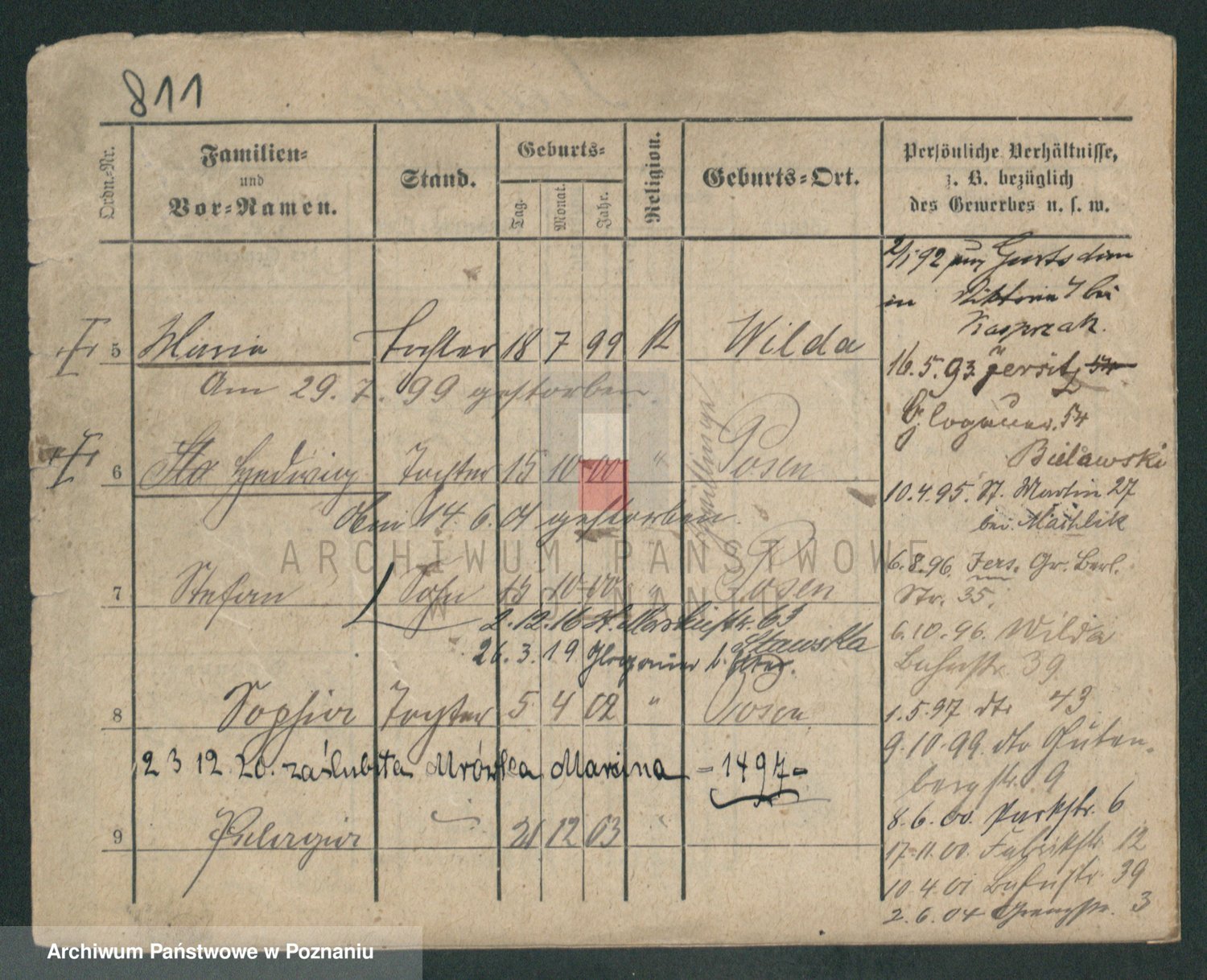 Podgląd karty osobowej dostępny jest po kliknięciu na nazwisko lub ikonkę karty. Można dokonywać powiększenia (ikony na górze) lub przechodzić między kolejnymi skanami (strzałki po bokach).