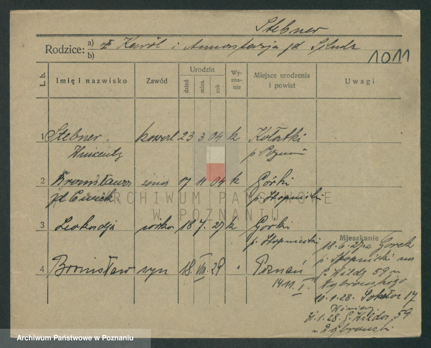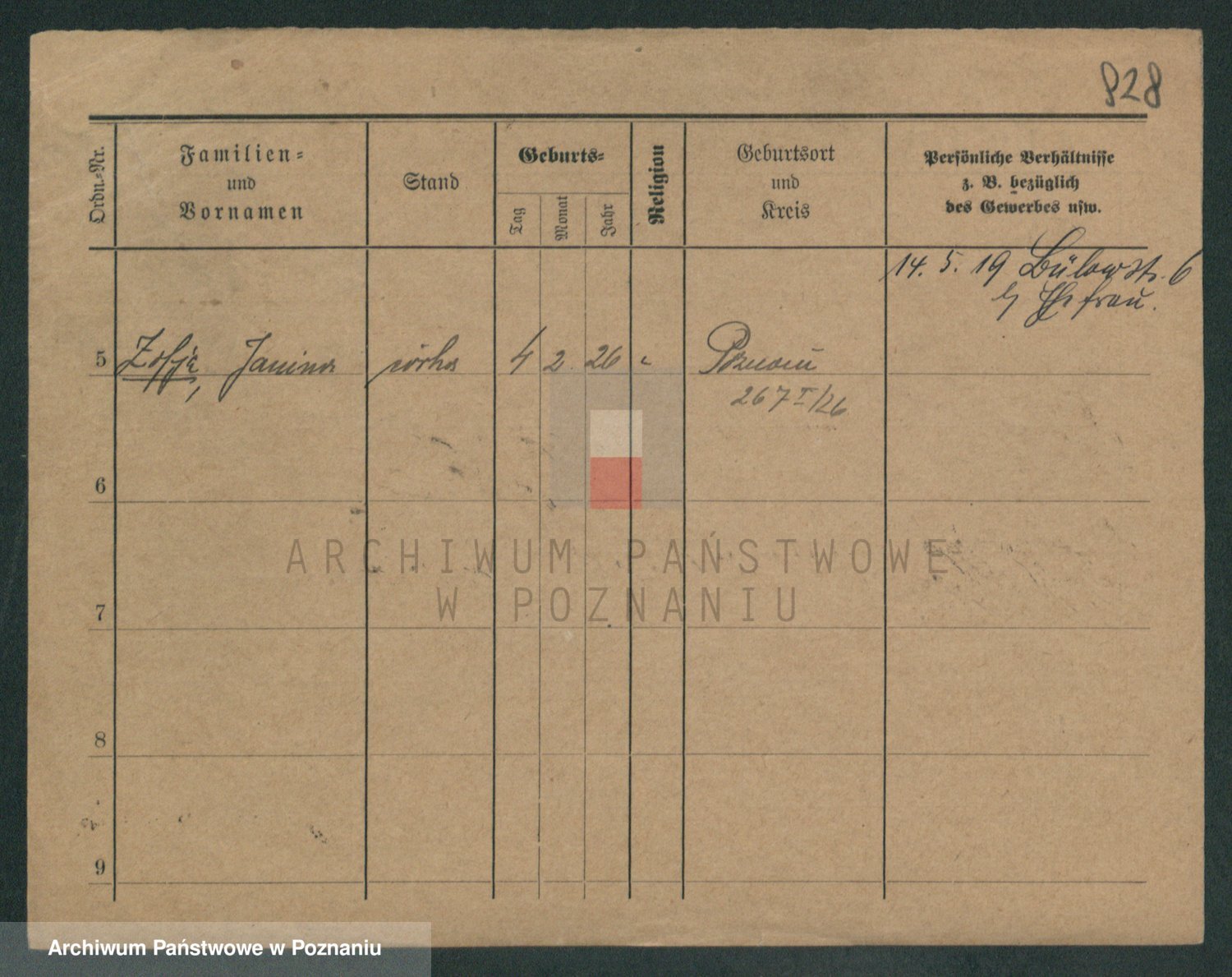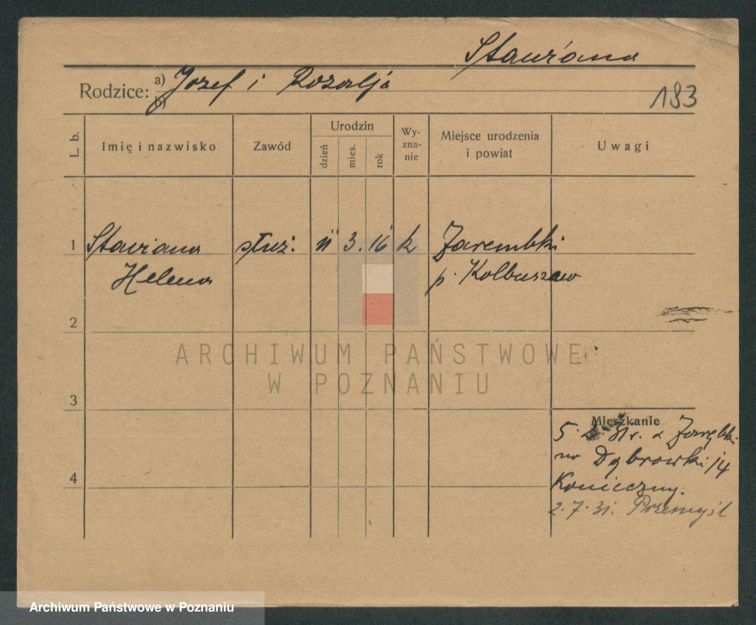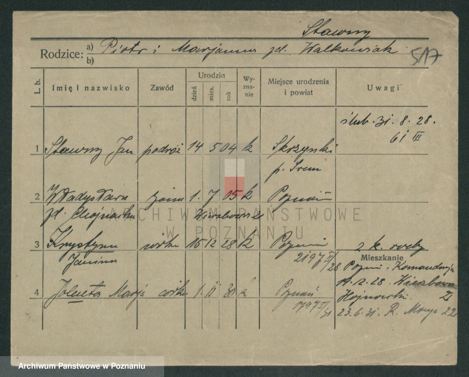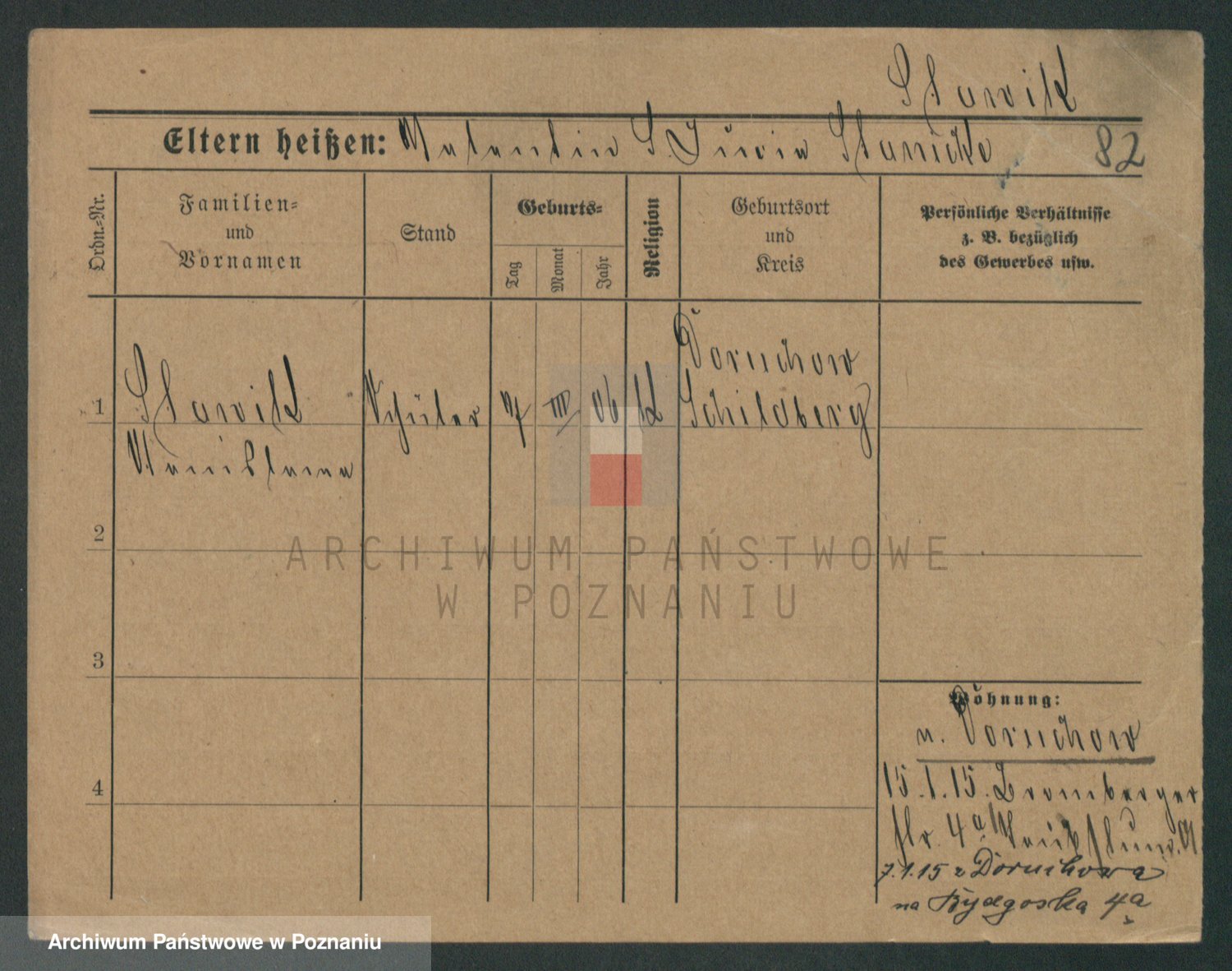 Podgląd karty osobowej dostępny jest po kliknięciu na nazwisko lub ikonkę karty. Można dokonywać powiększenia (ikony na górze) lub przechodzić między kolejnymi skanami (strzałki po bokach).