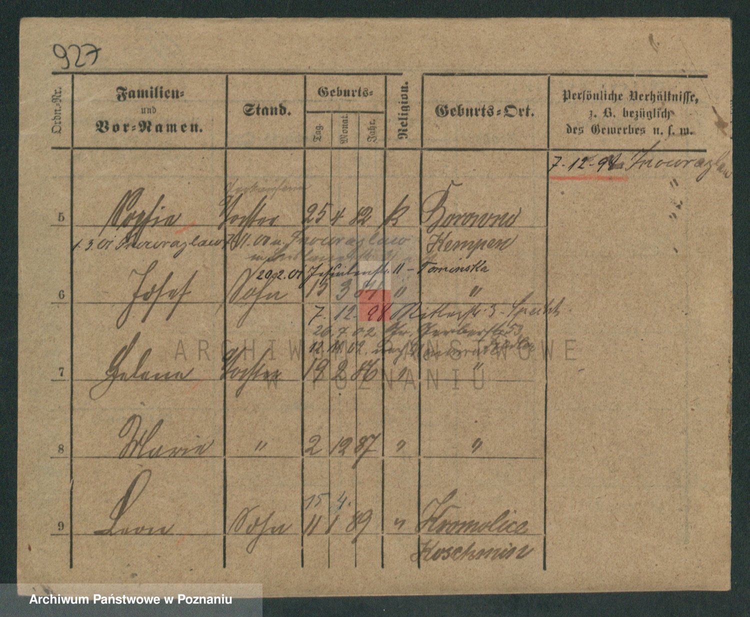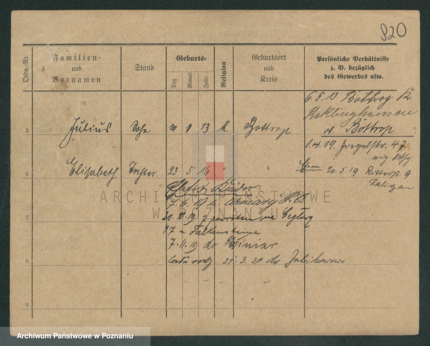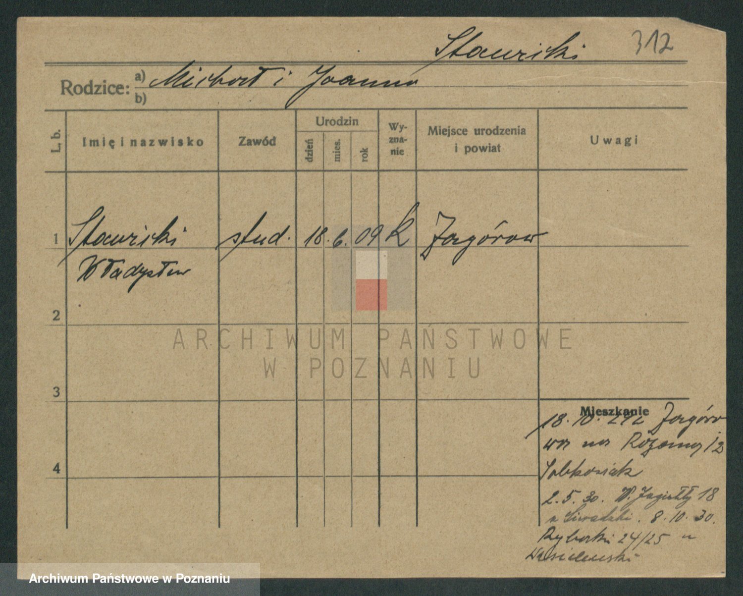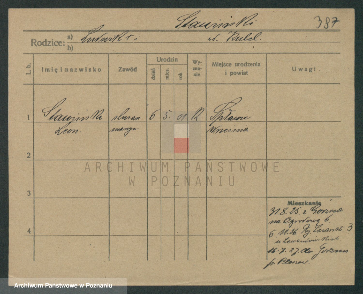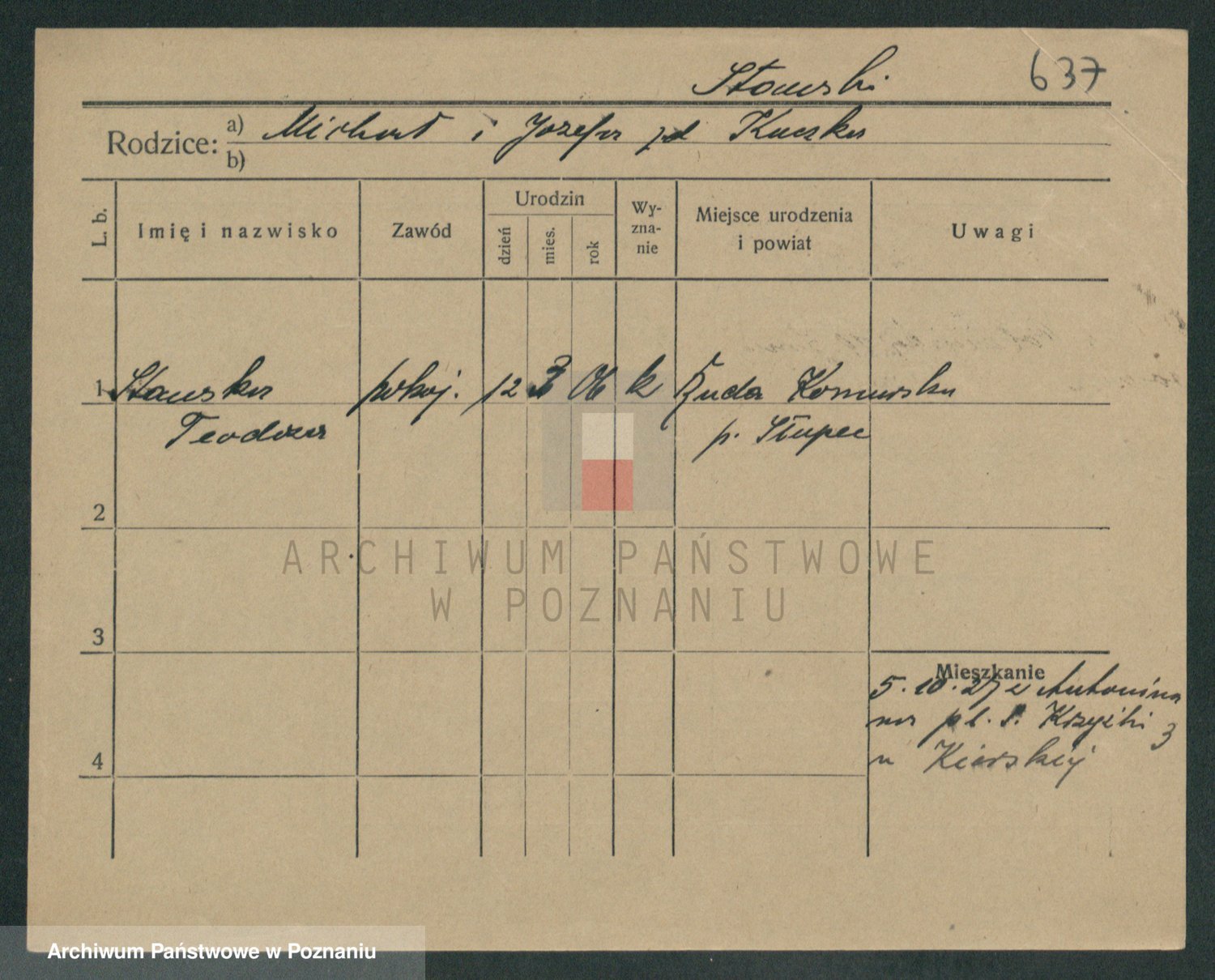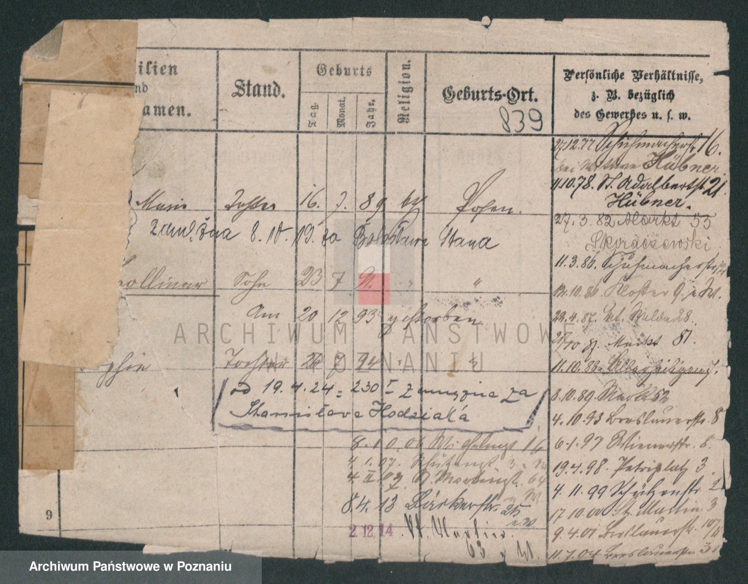 Podgląd karty osobowej dostępny jest po kliknięciu na nazwisko lub ikonkę karty. Można dokonywać powiększenia (ikony na górze) lub przechodzić między kolejnymi skanami (strzałki po bokach).