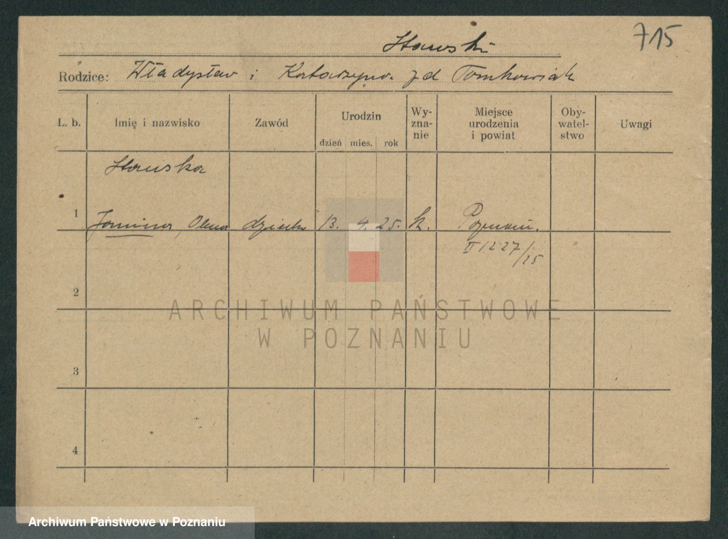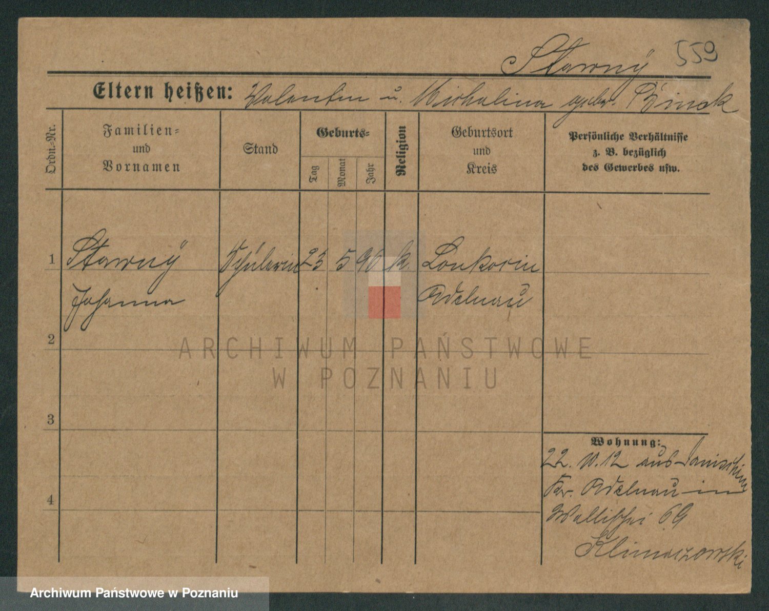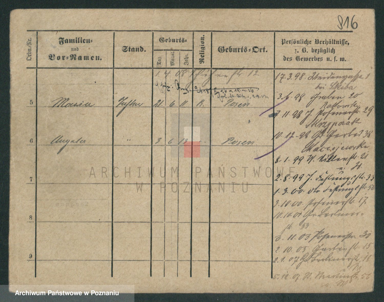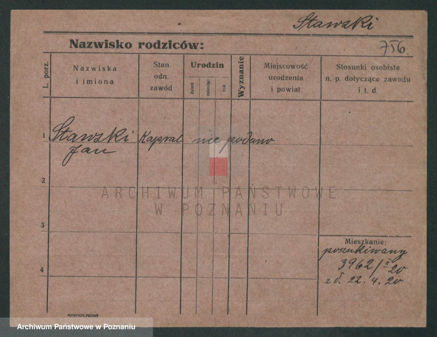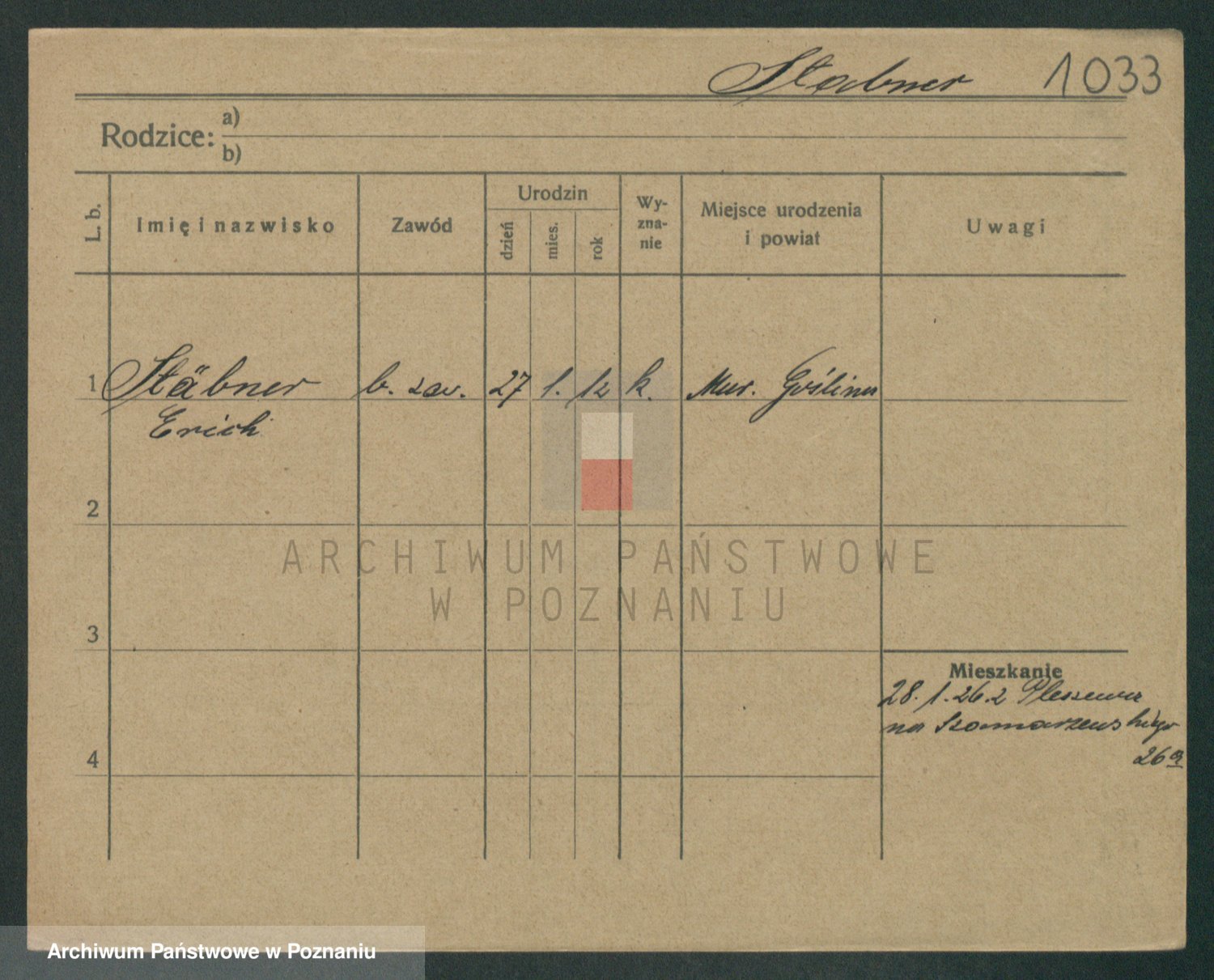 Podgląd karty osobowej dostępny jest po kliknięciu na nazwisko lub ikonkę karty. Można dokonywać powiększenia (ikony na górze) lub przechodzić między kolejnymi skanami (strzałki po bokach).