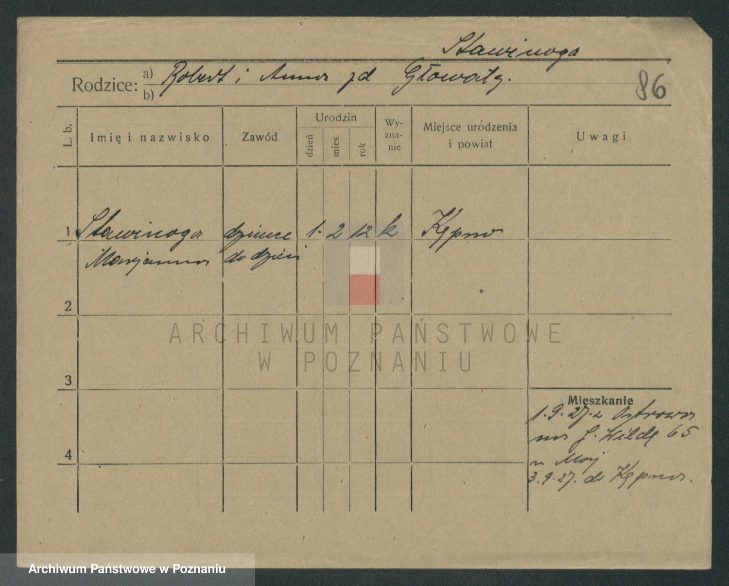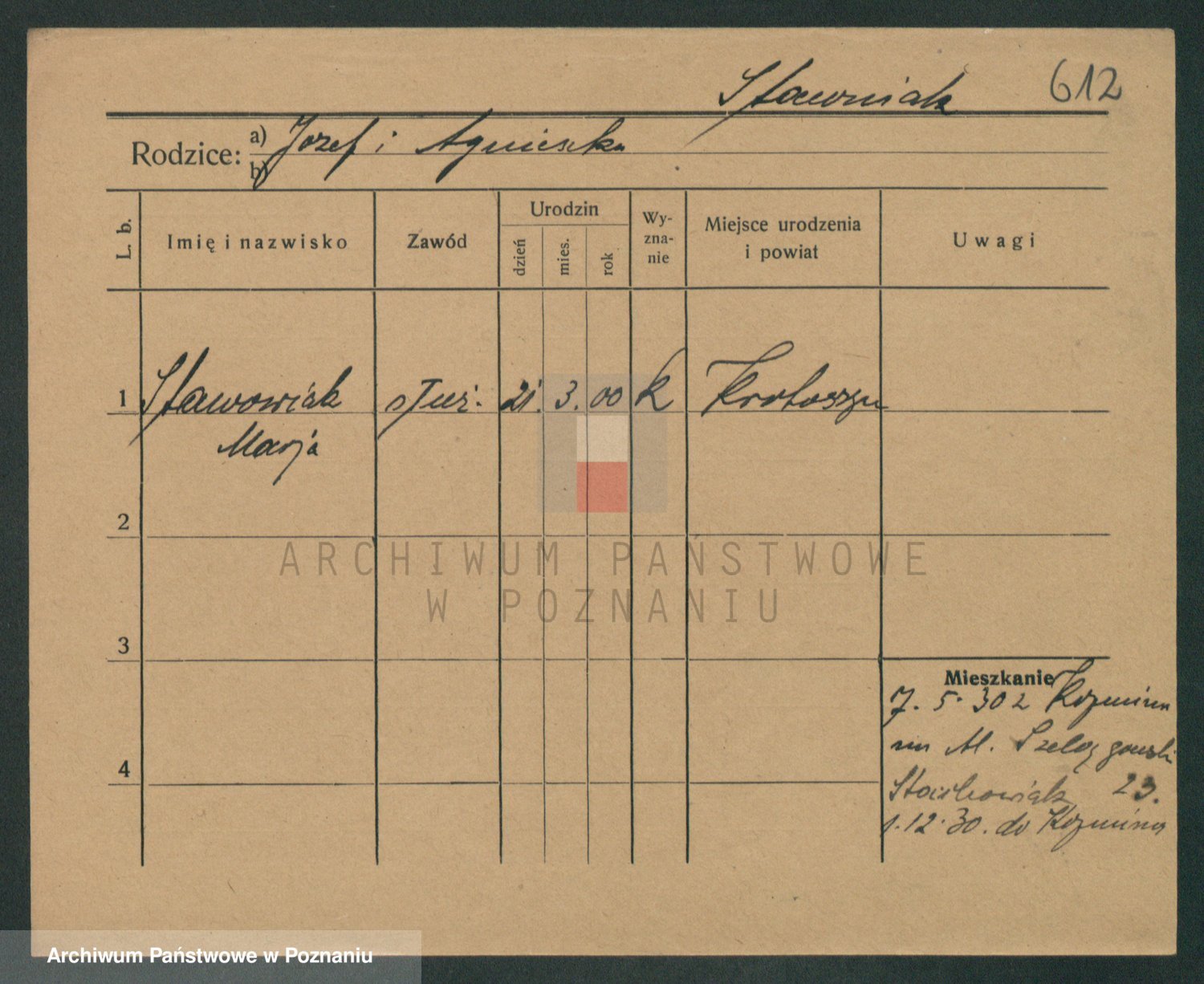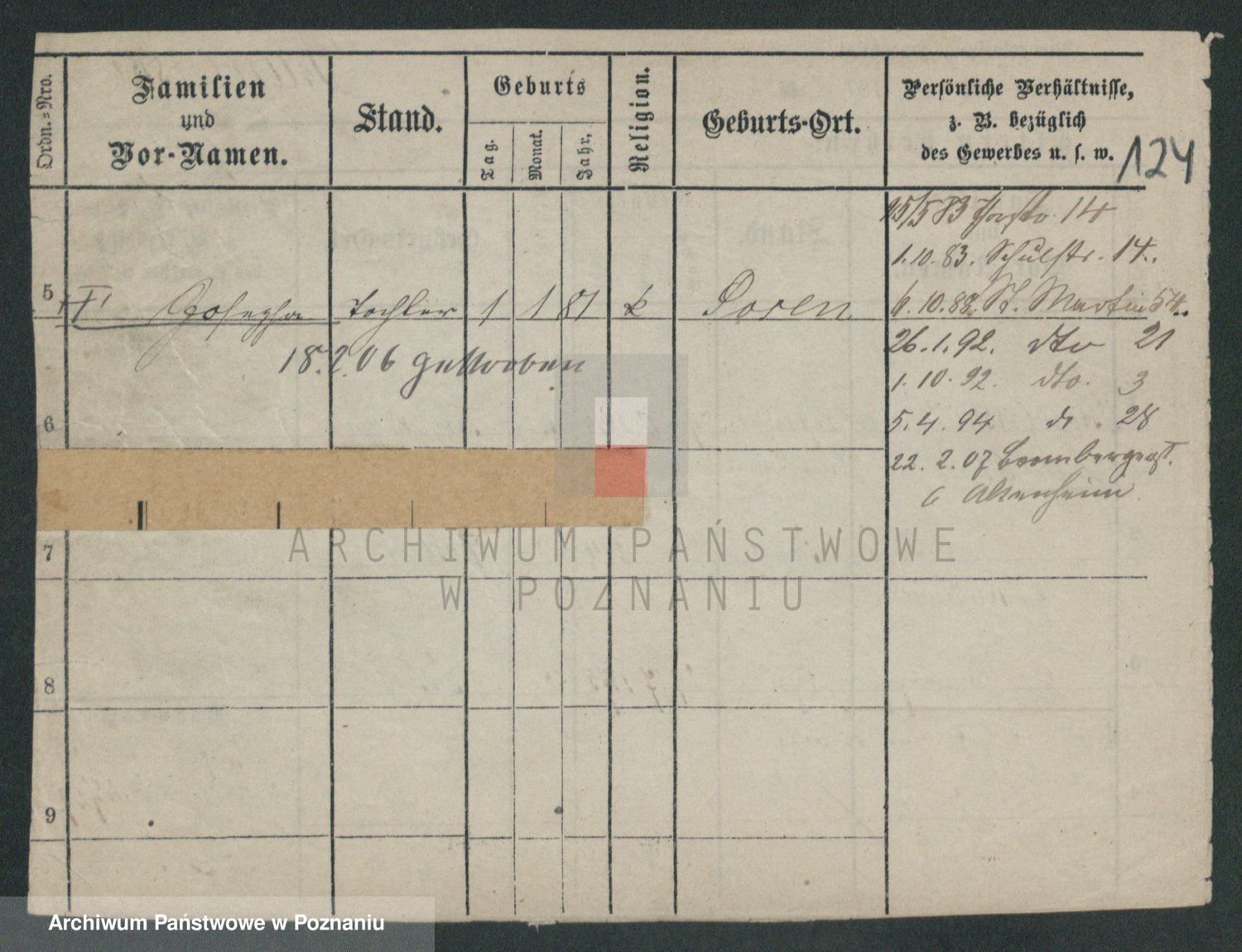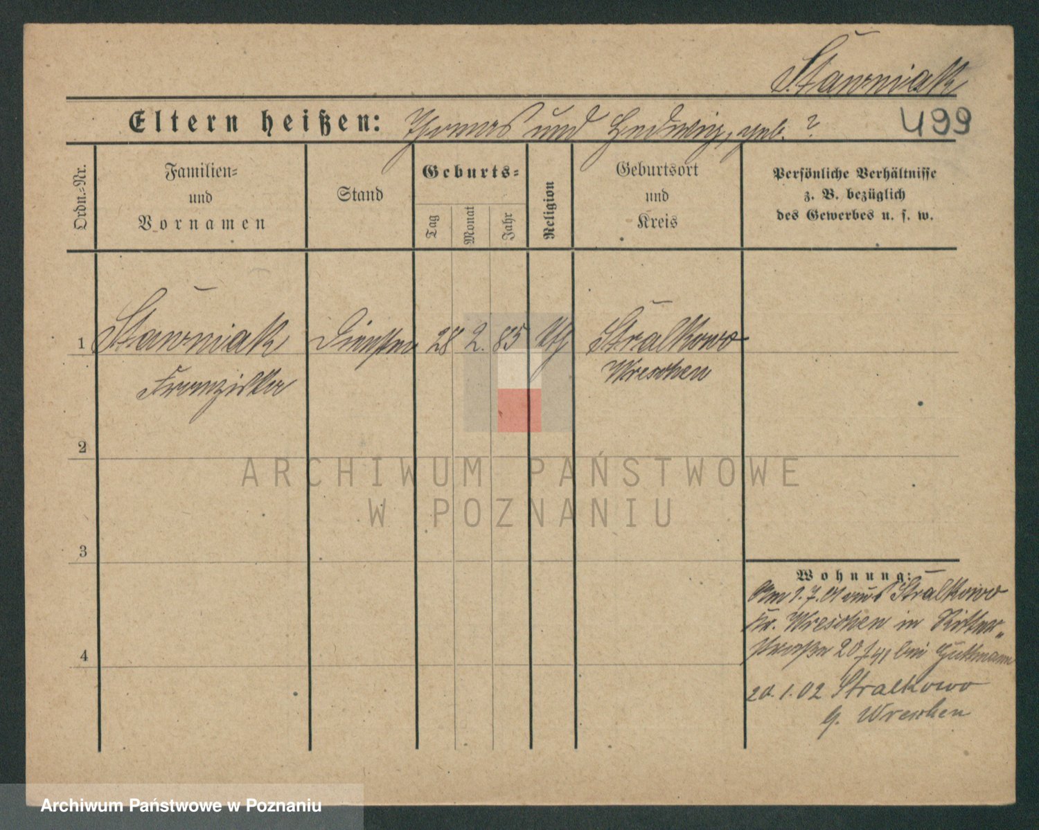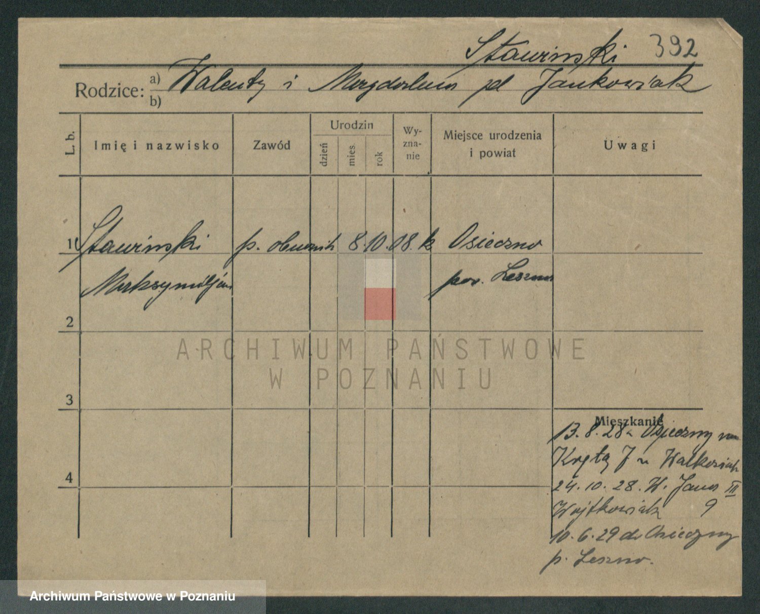 Podgląd karty osobowej dostępny jest po kliknięciu na nazwisko lub ikonkę karty. Można dokonywać powiększenia (ikony na górze) lub przechodzić między kolejnymi skanami (strzałki po bokach).
