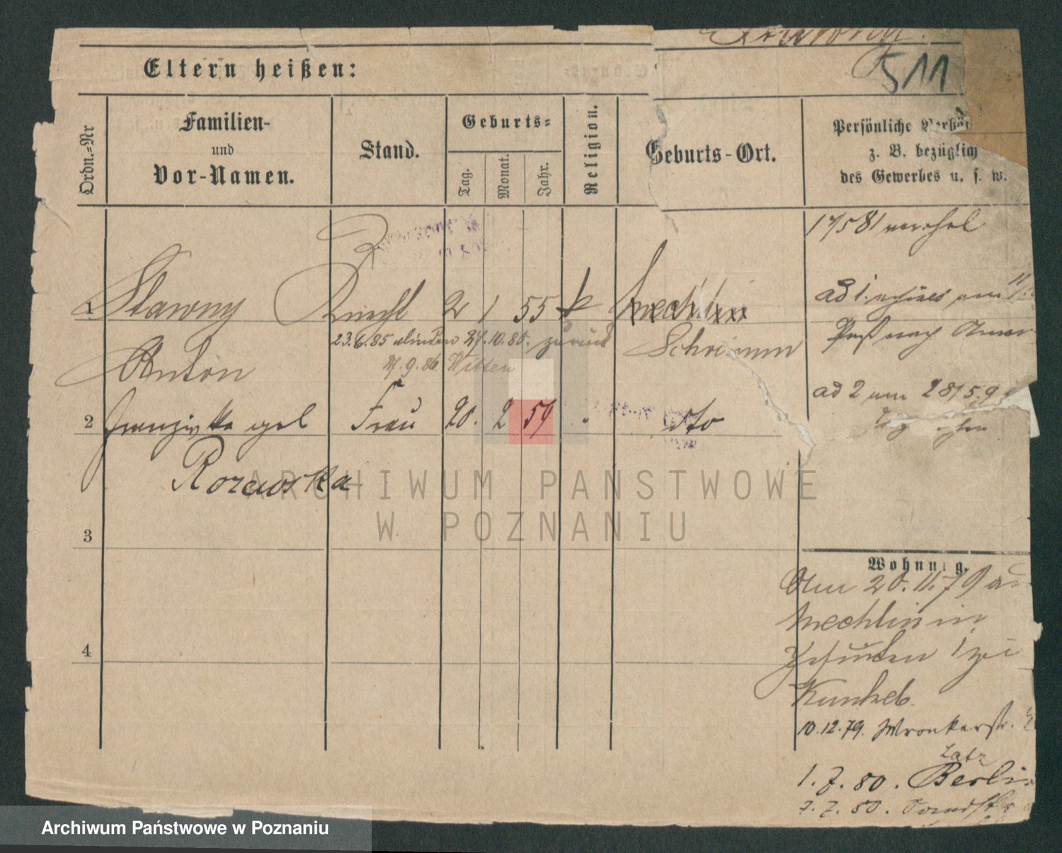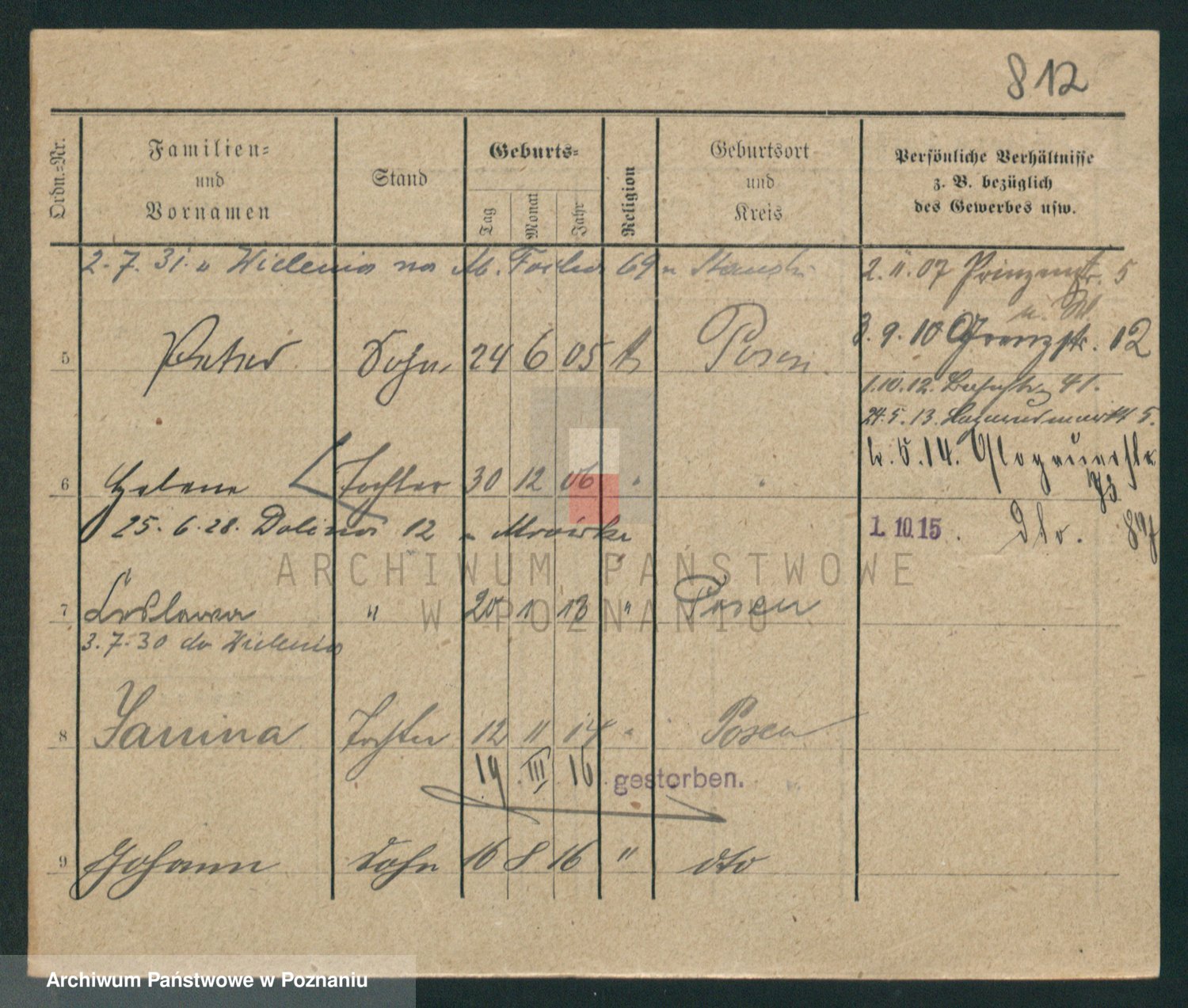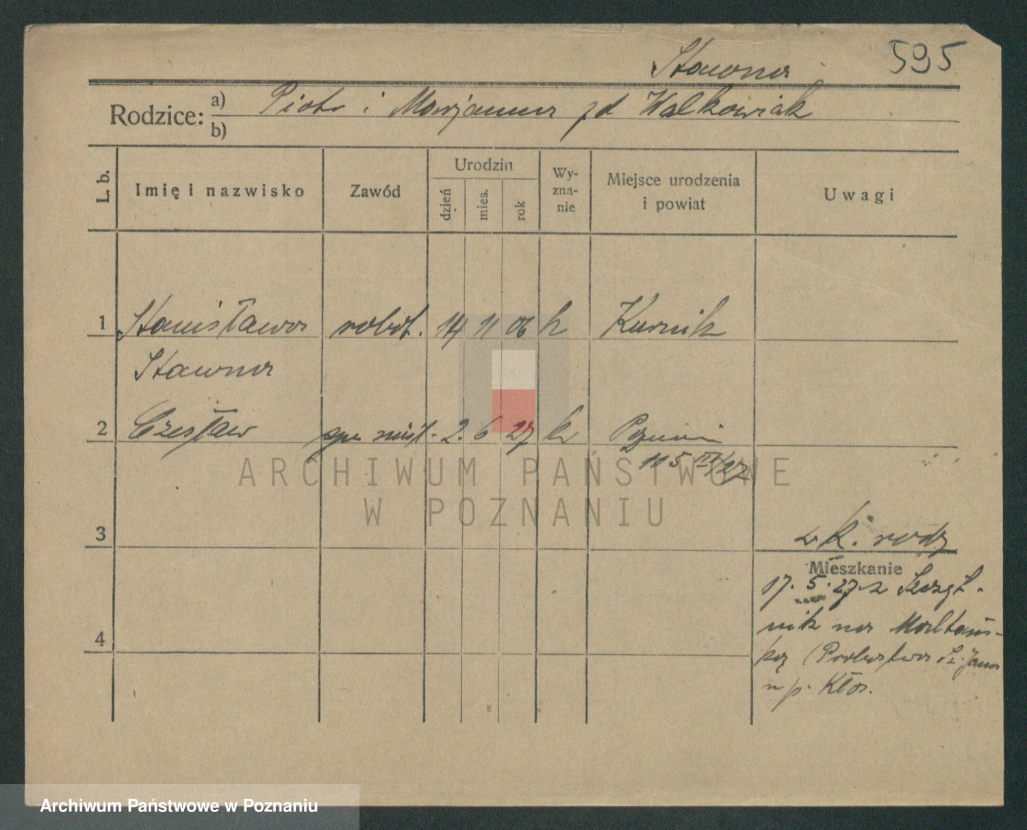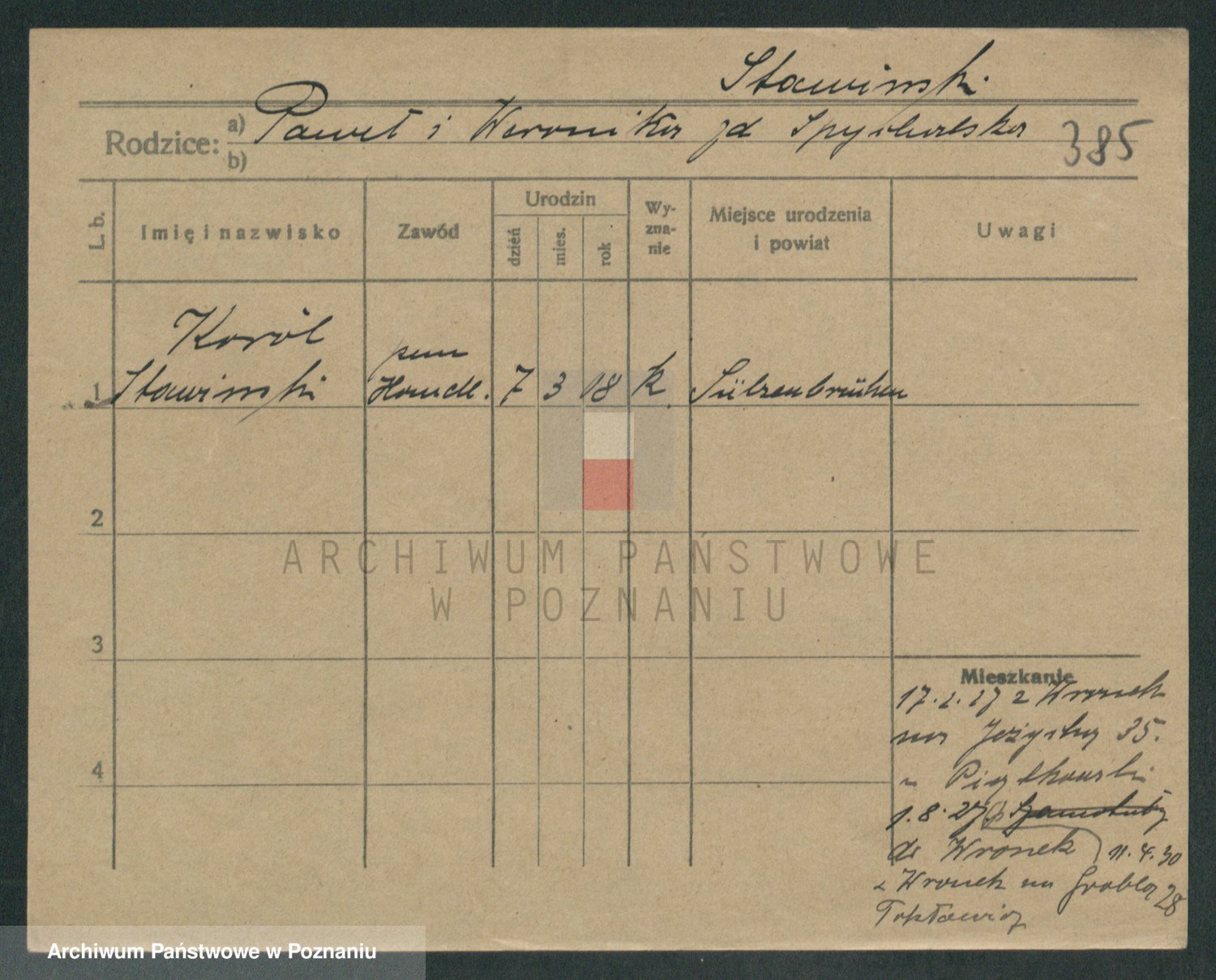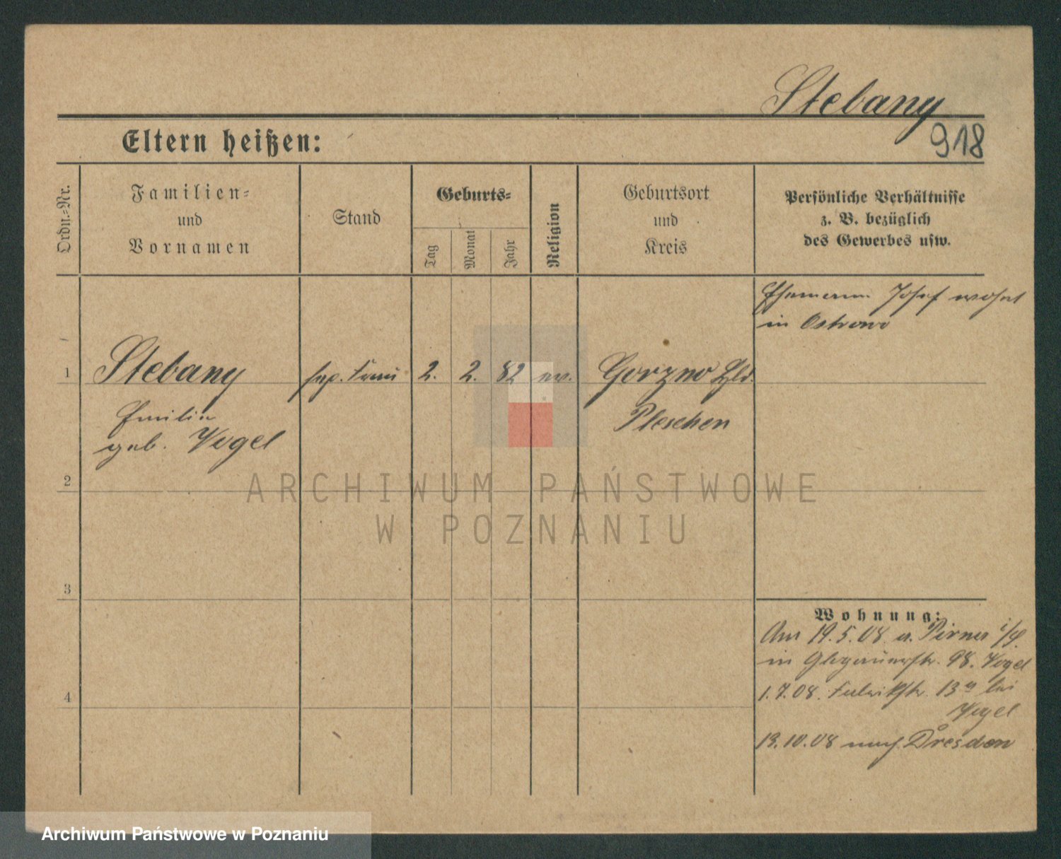 Podgląd karty osobowej dostępny jest po kliknięciu na nazwisko lub ikonkę karty. Można dokonywać powiększenia (ikony na górze) lub przechodzić między kolejnymi skanami (strzałki po bokach).