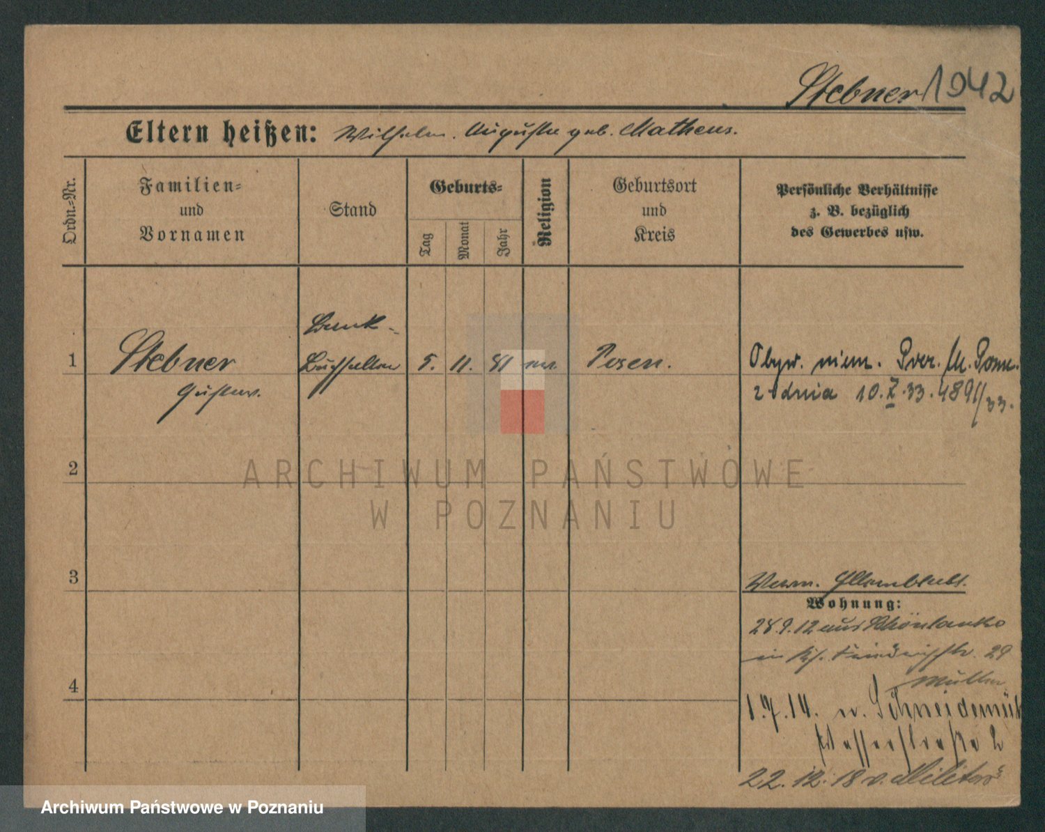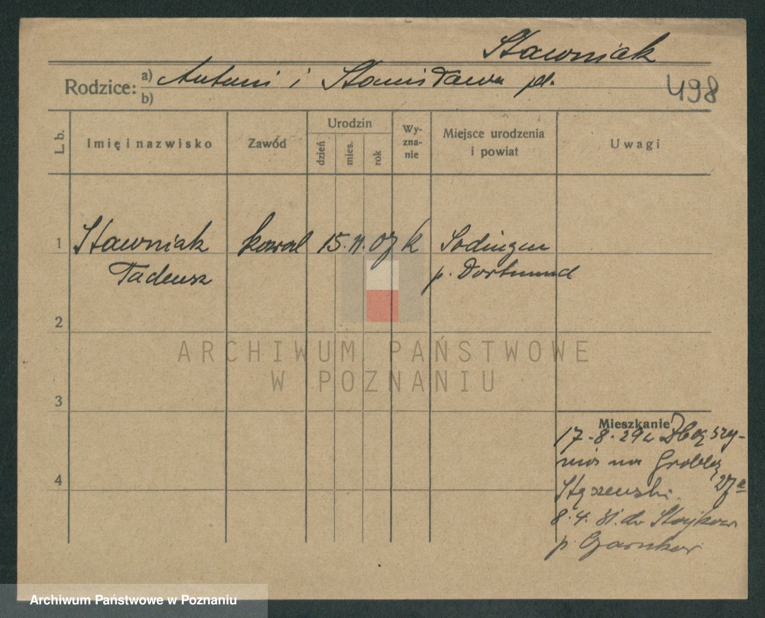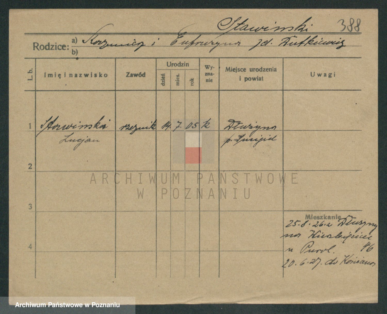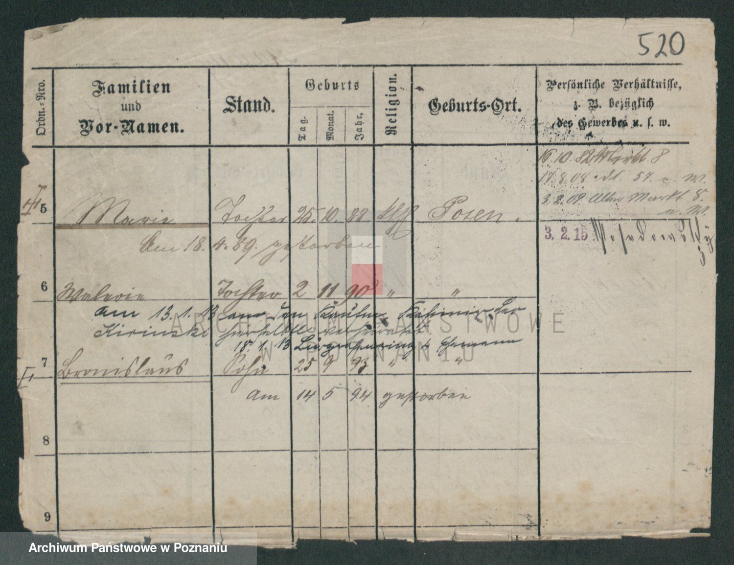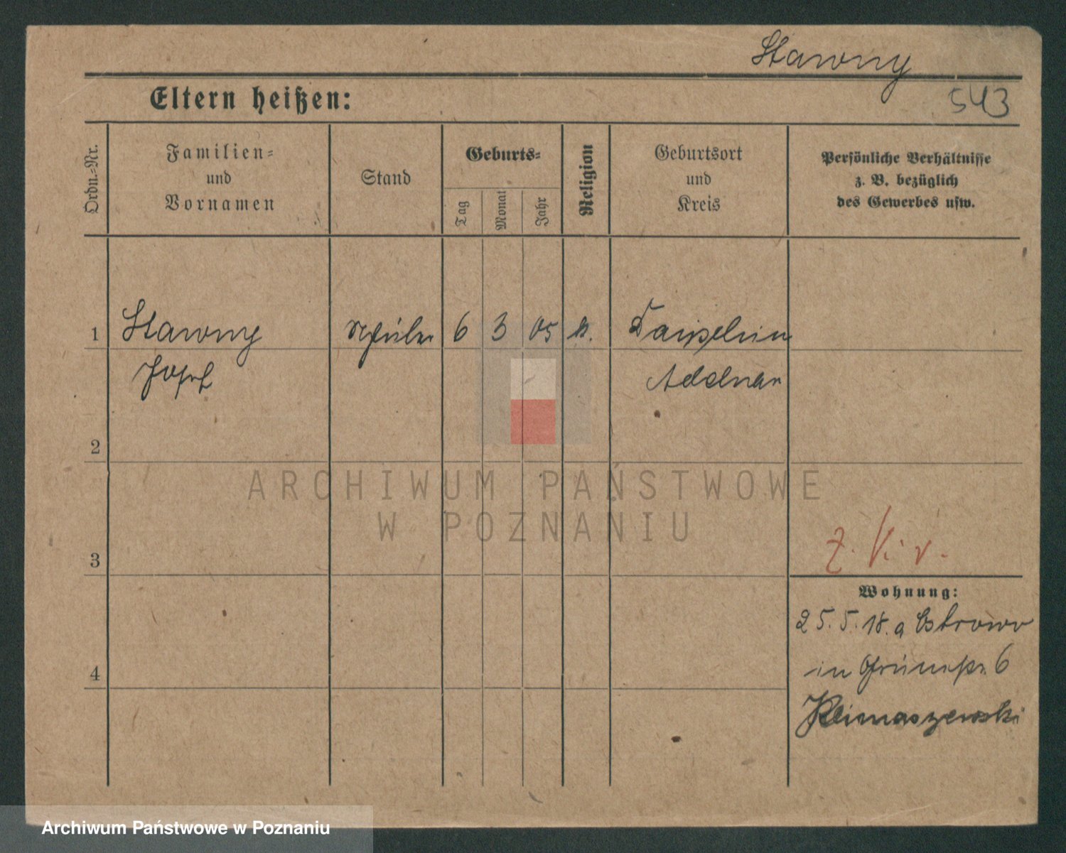 Podgląd karty osobowej dostępny jest po kliknięciu na nazwisko lub ikonkę karty. Można dokonywać powiększenia (ikony na górze) lub przechodzić między kolejnymi skanami (strzałki po bokach).