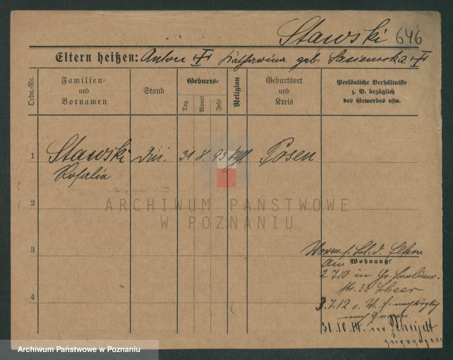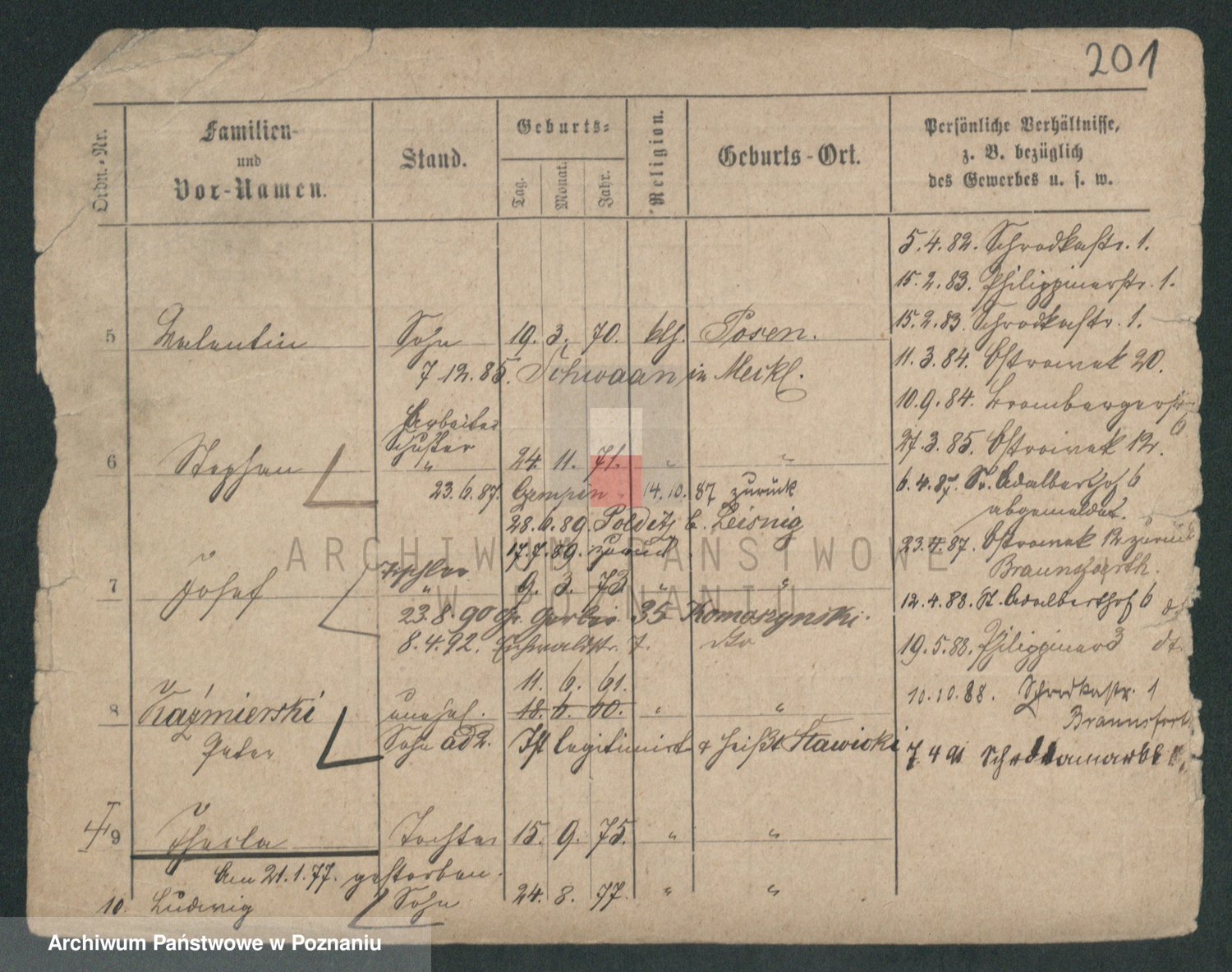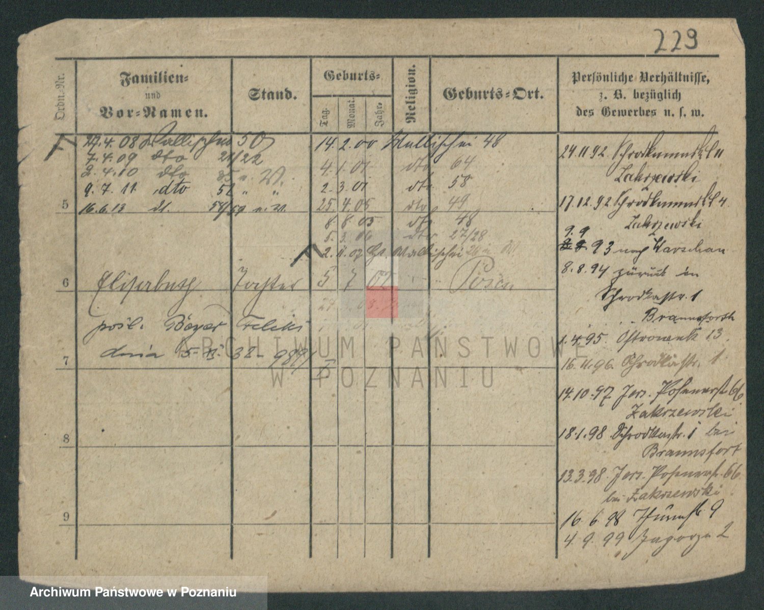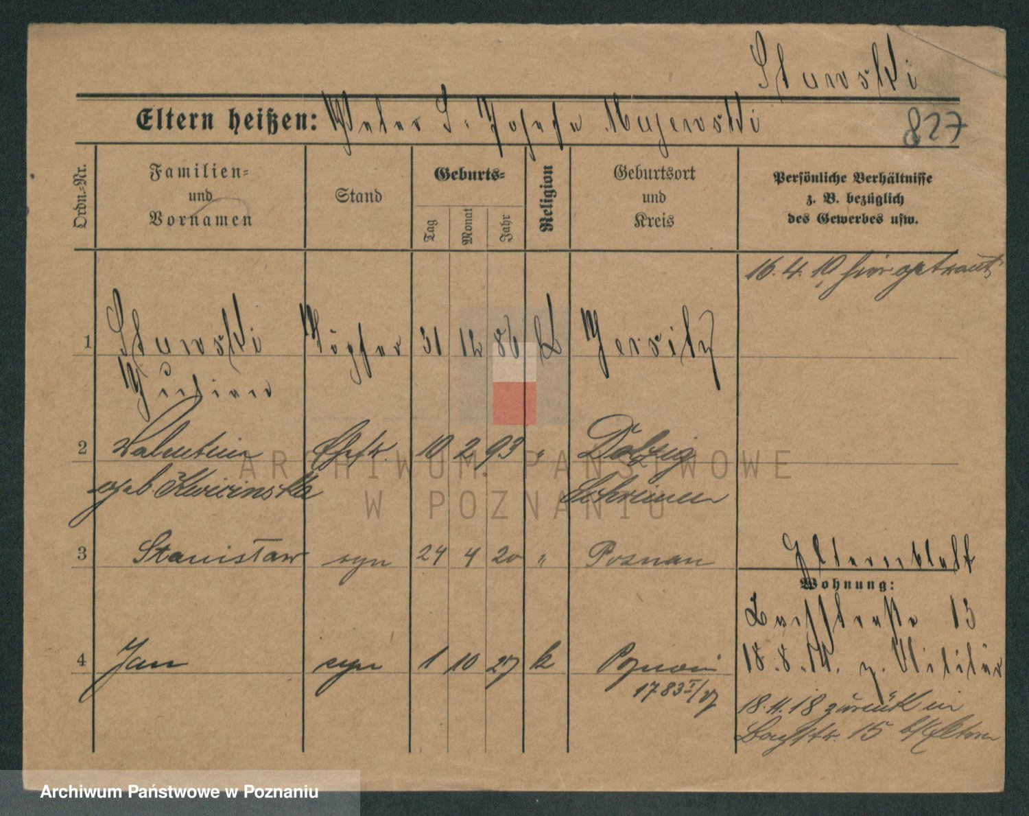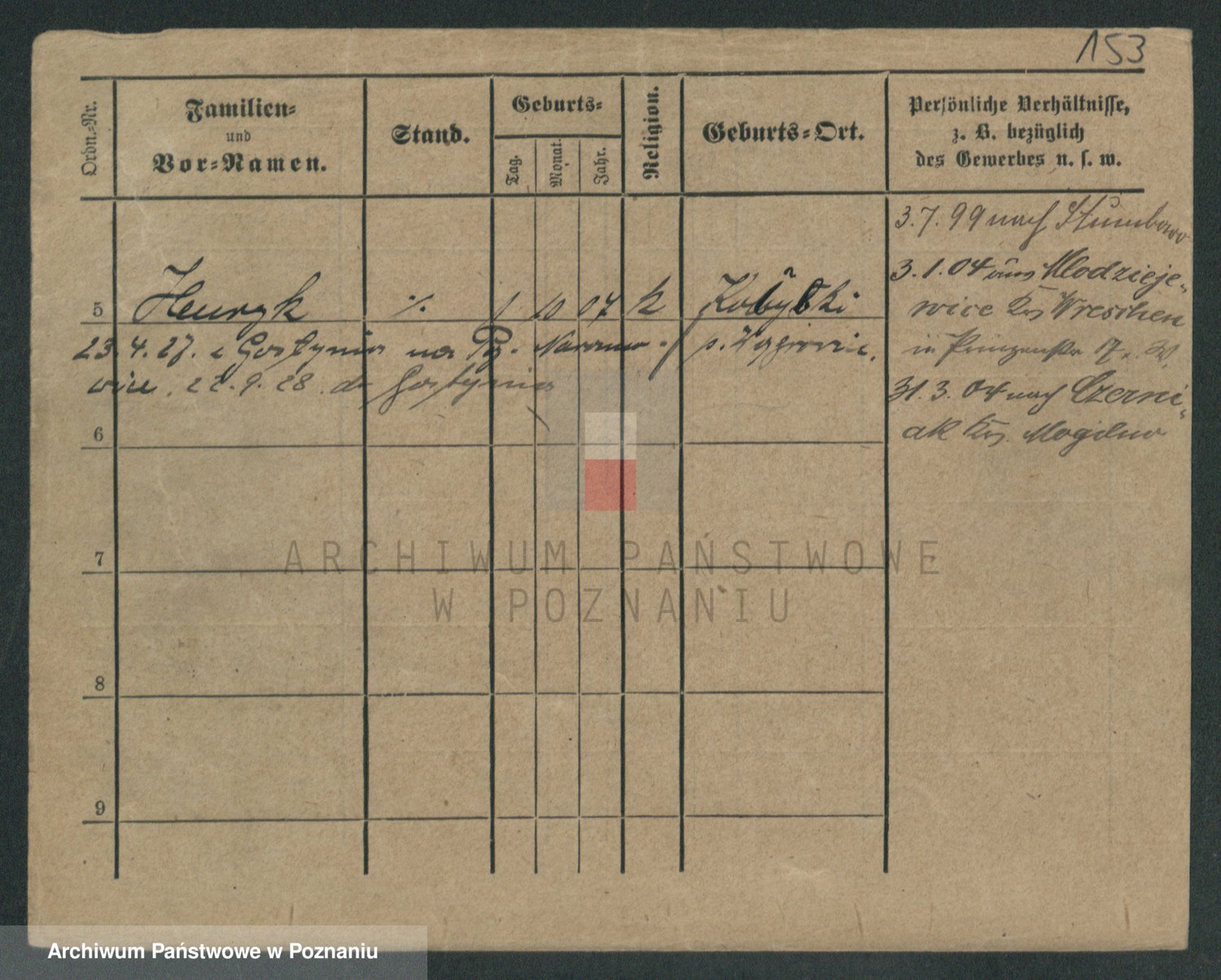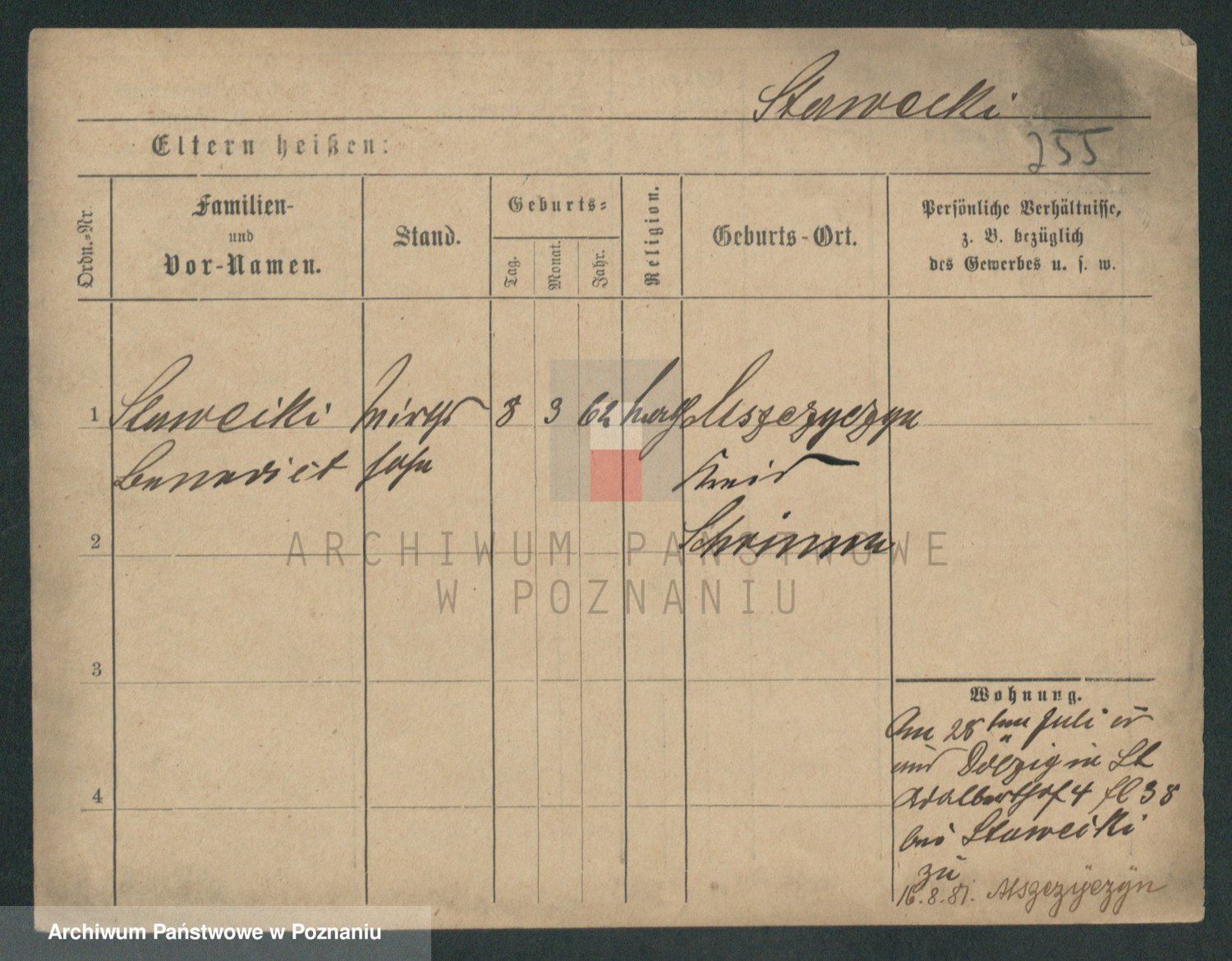 Podgląd karty osobowej dostępny jest po kliknięciu na nazwisko lub ikonkę karty. Można dokonywać powiększenia (ikony na górze) lub przechodzić między kolejnymi skanami (strzałki po bokach).