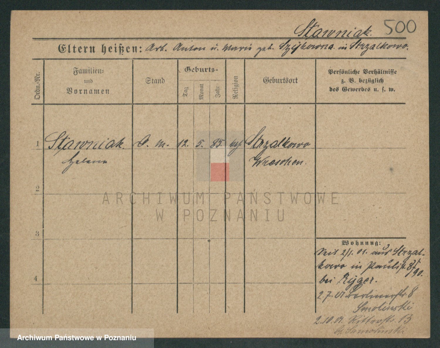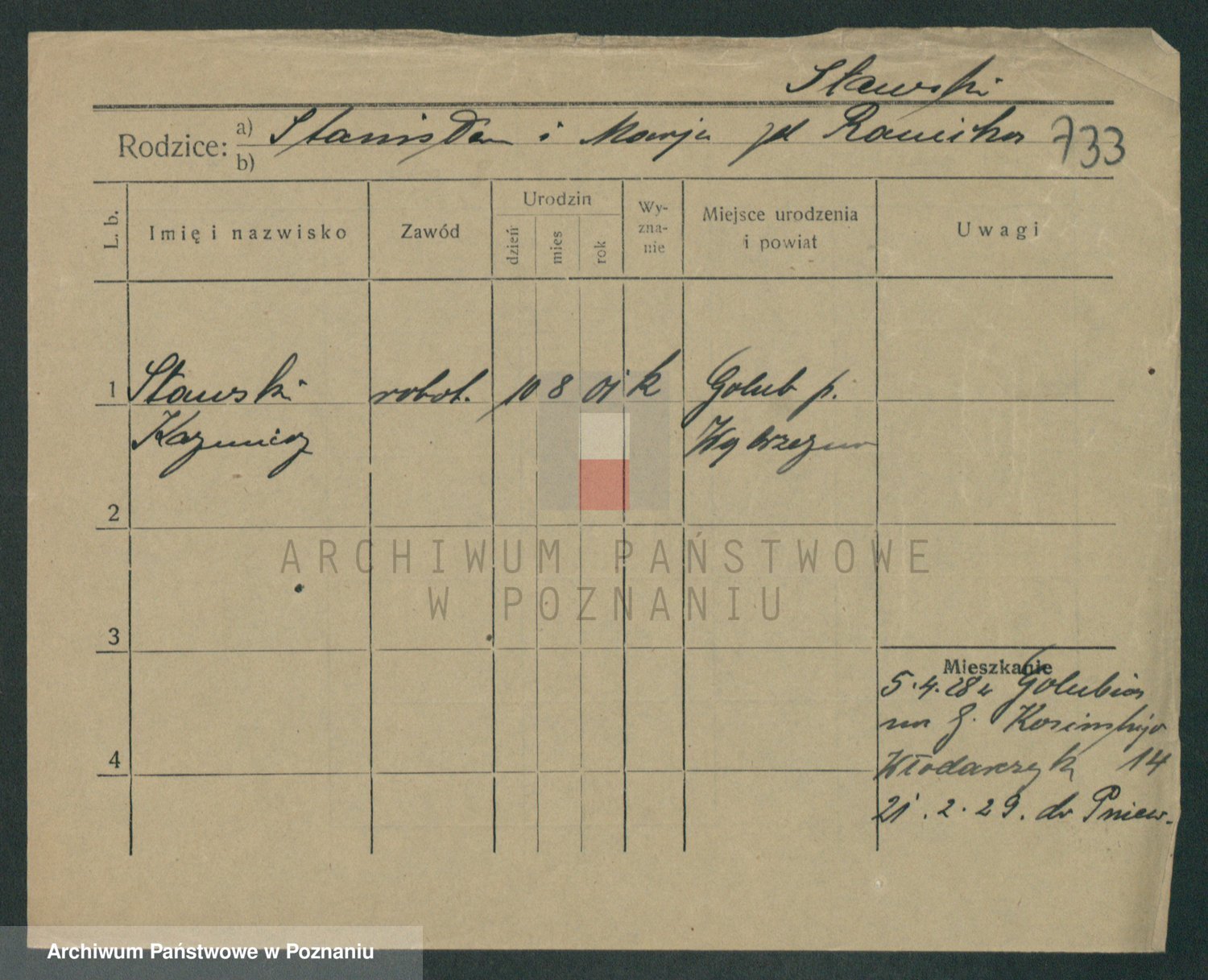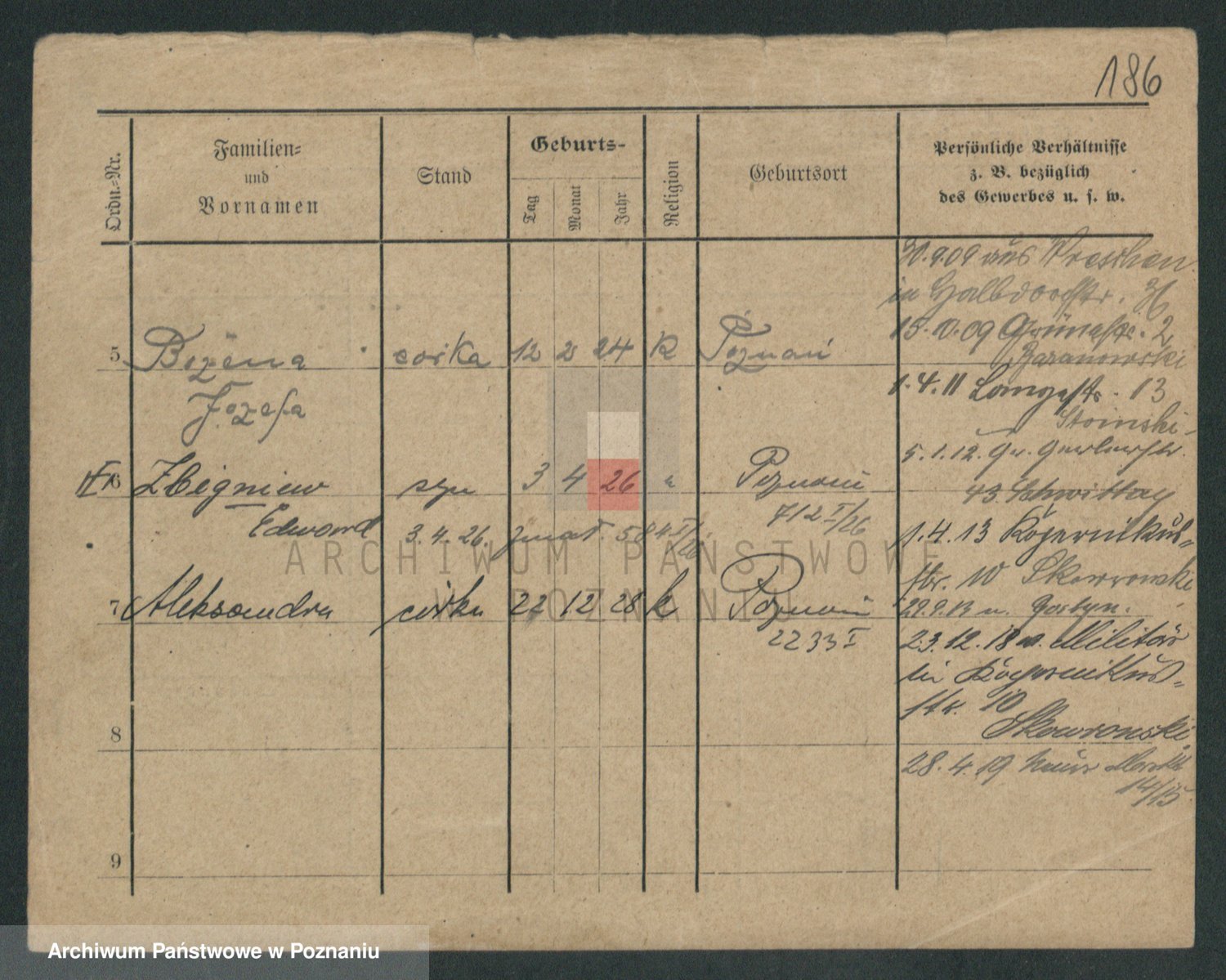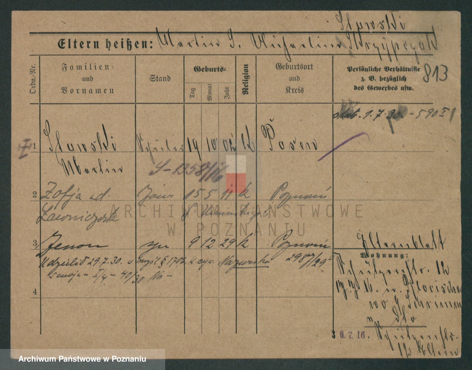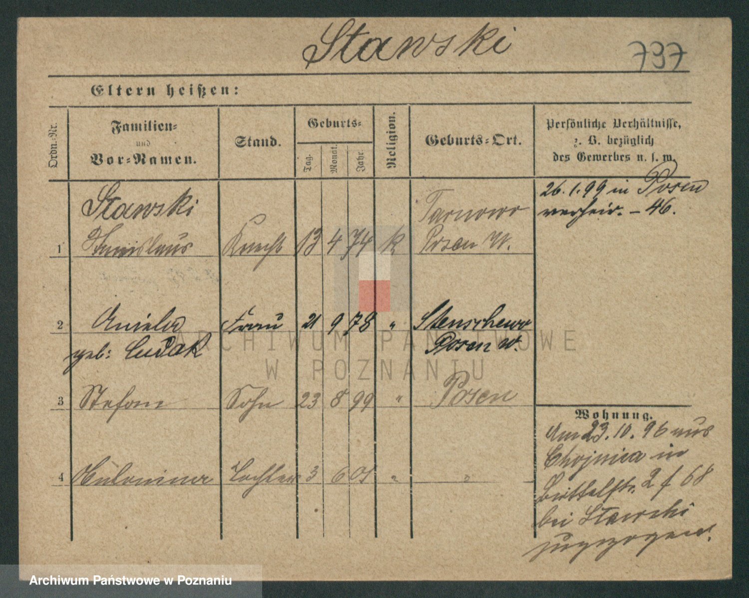 Podgląd karty osobowej dostępny jest po kliknięciu na nazwisko lub ikonkę karty. Można dokonywać powiększenia (ikony na górze) lub przechodzić między kolejnymi skanami (strzałki po bokach).